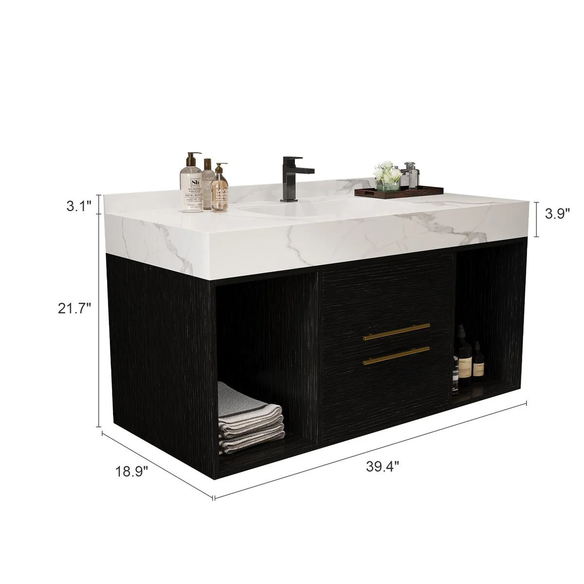 39.4?'' Floating Bathroom Vanity with Ceramic sink,Wall Hung Vanity 2 Soft Close Drawer and white slate top - 39'4" x 18'9"