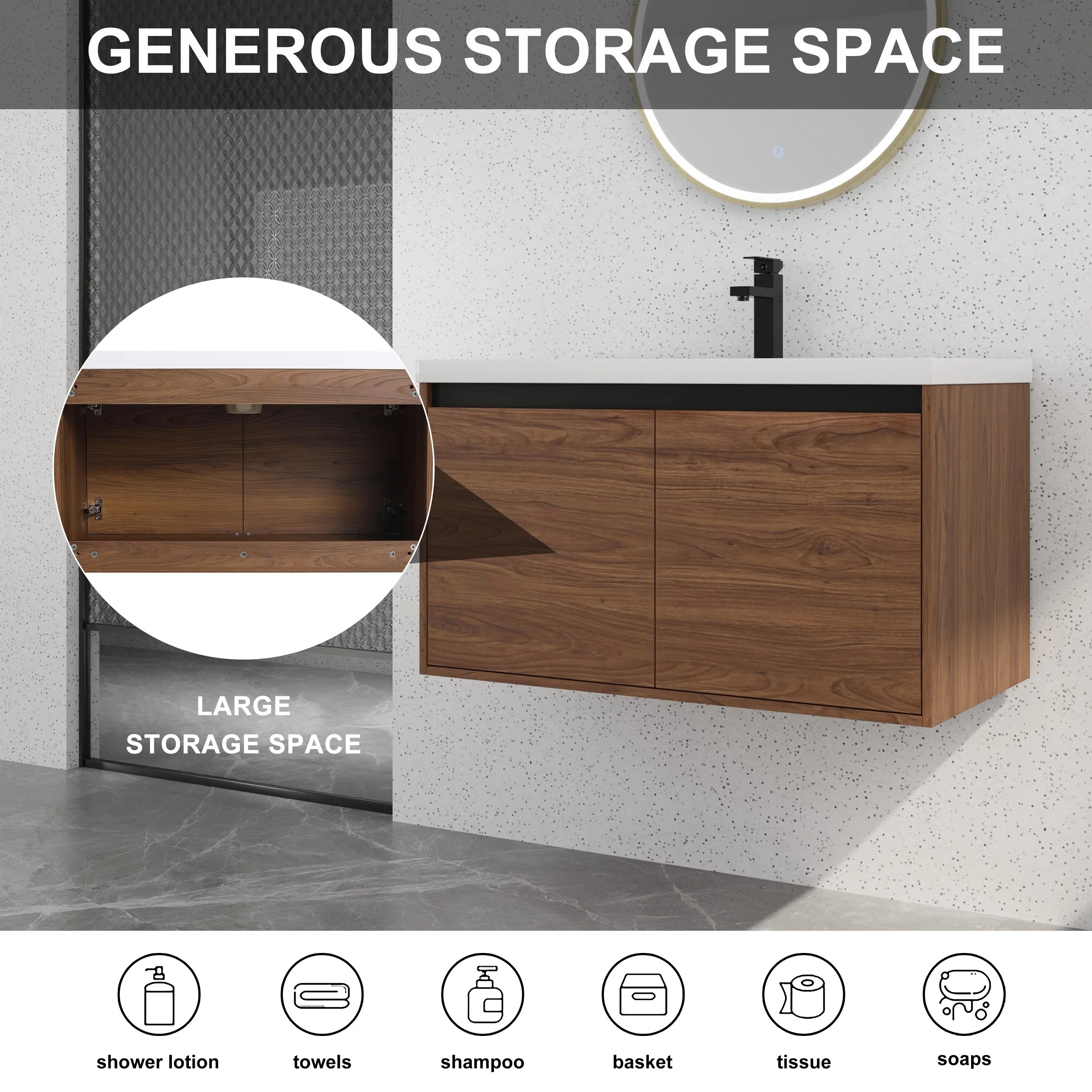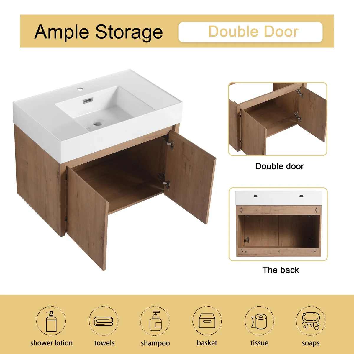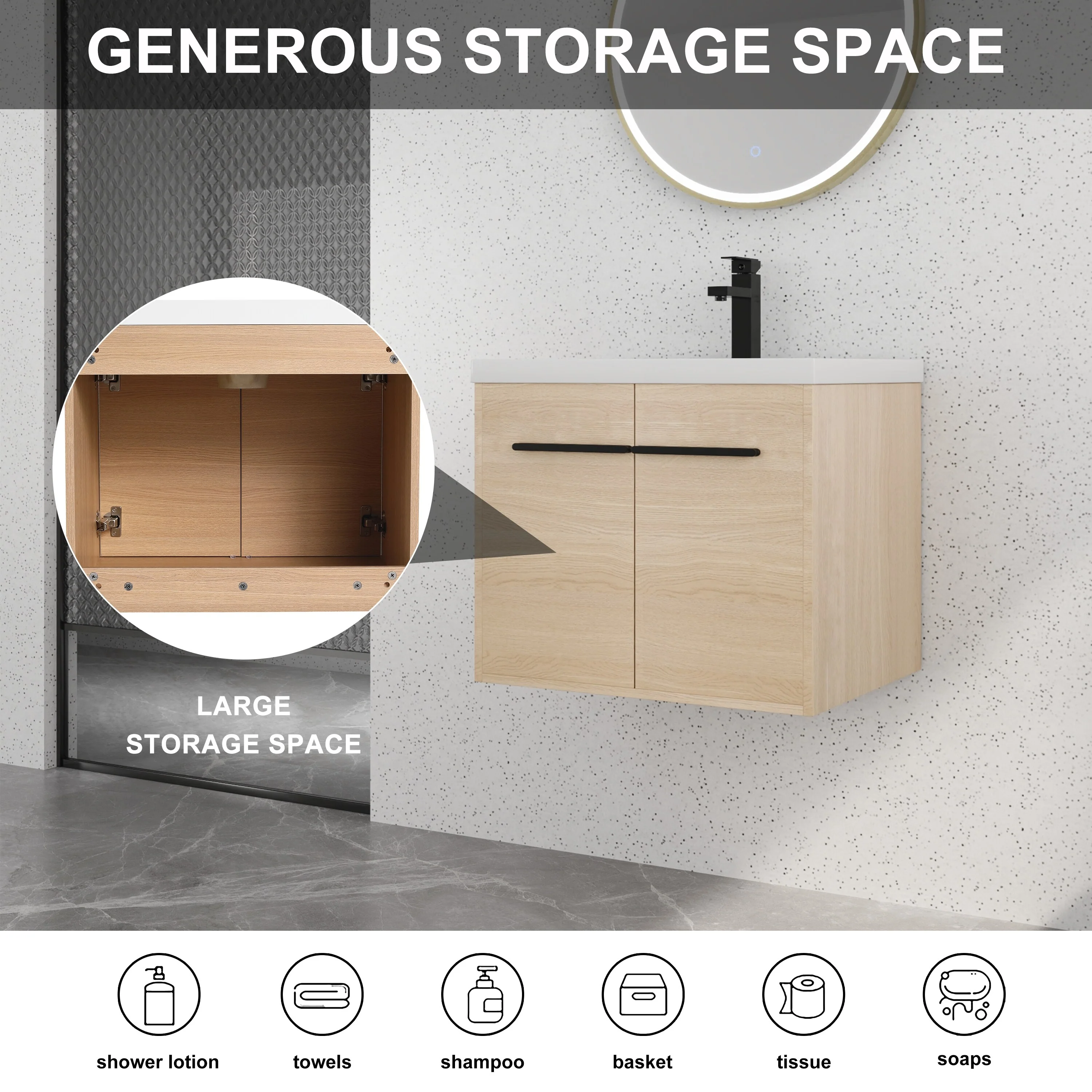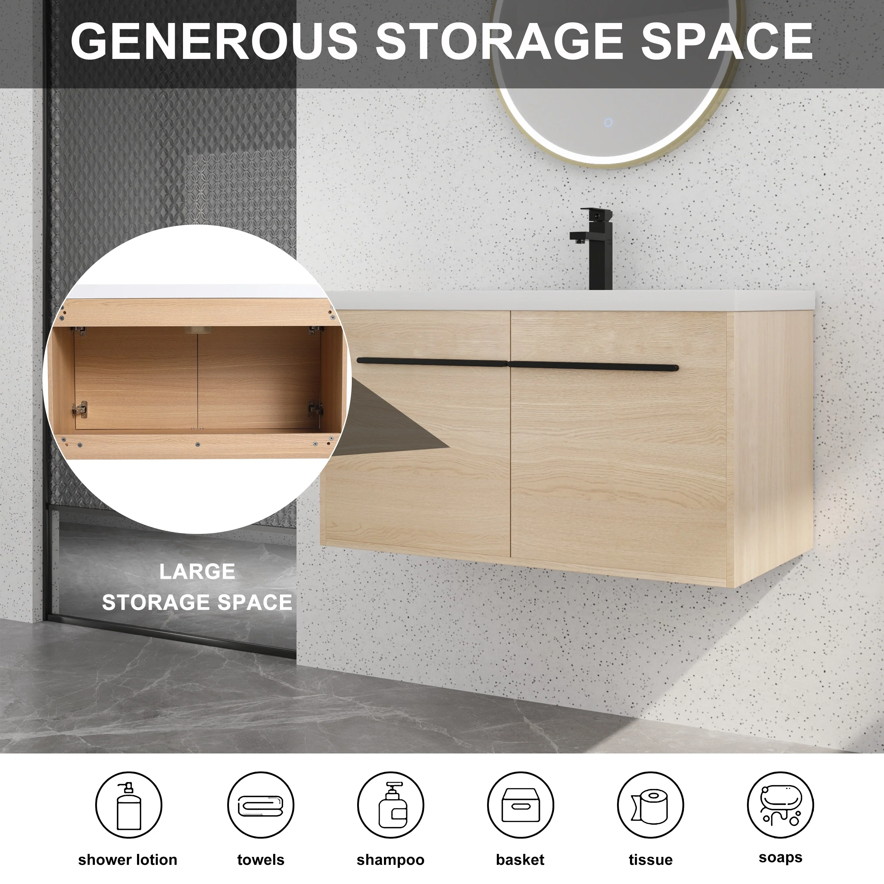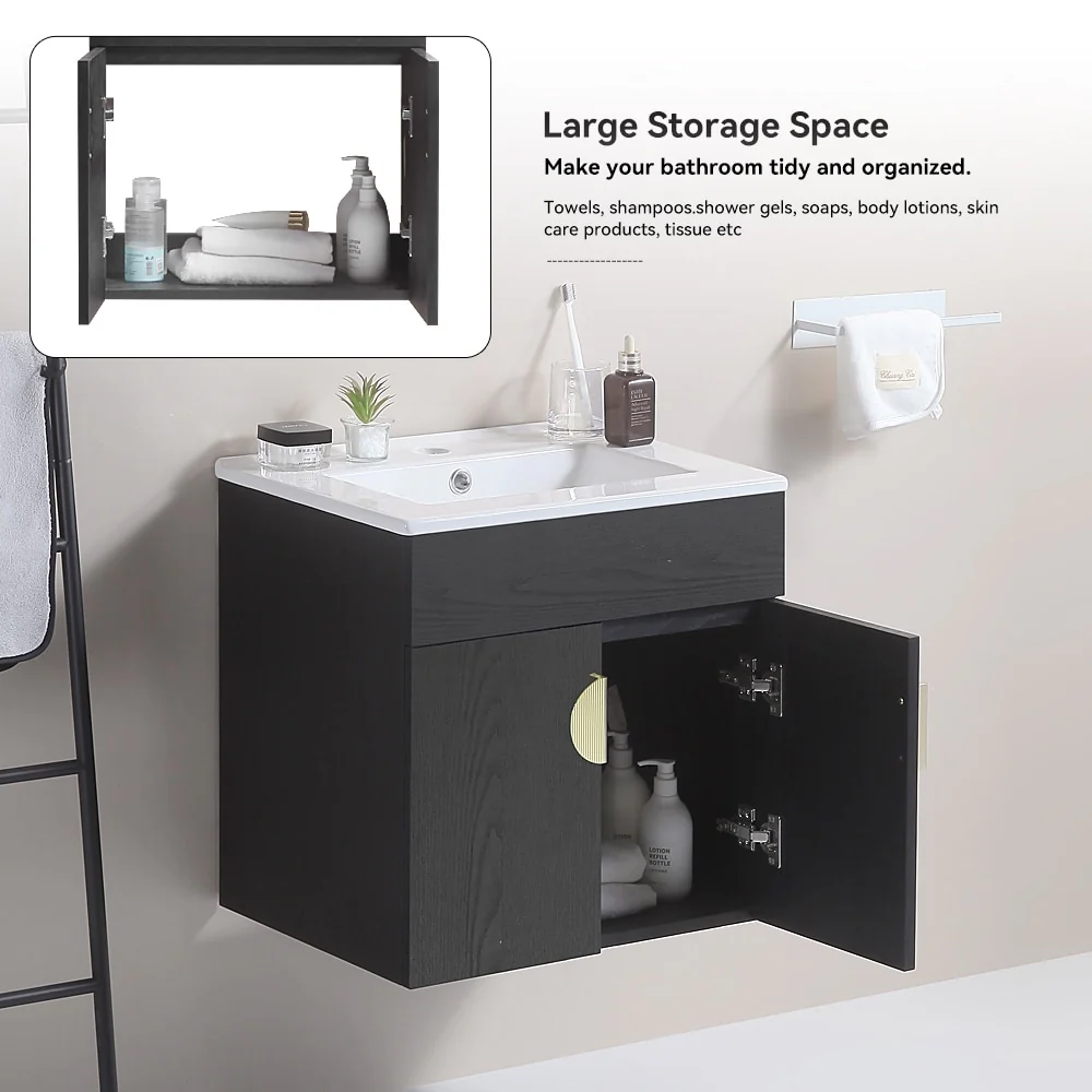 Wall Mounted Bathroom Vanity with Sink & Large Storage Space