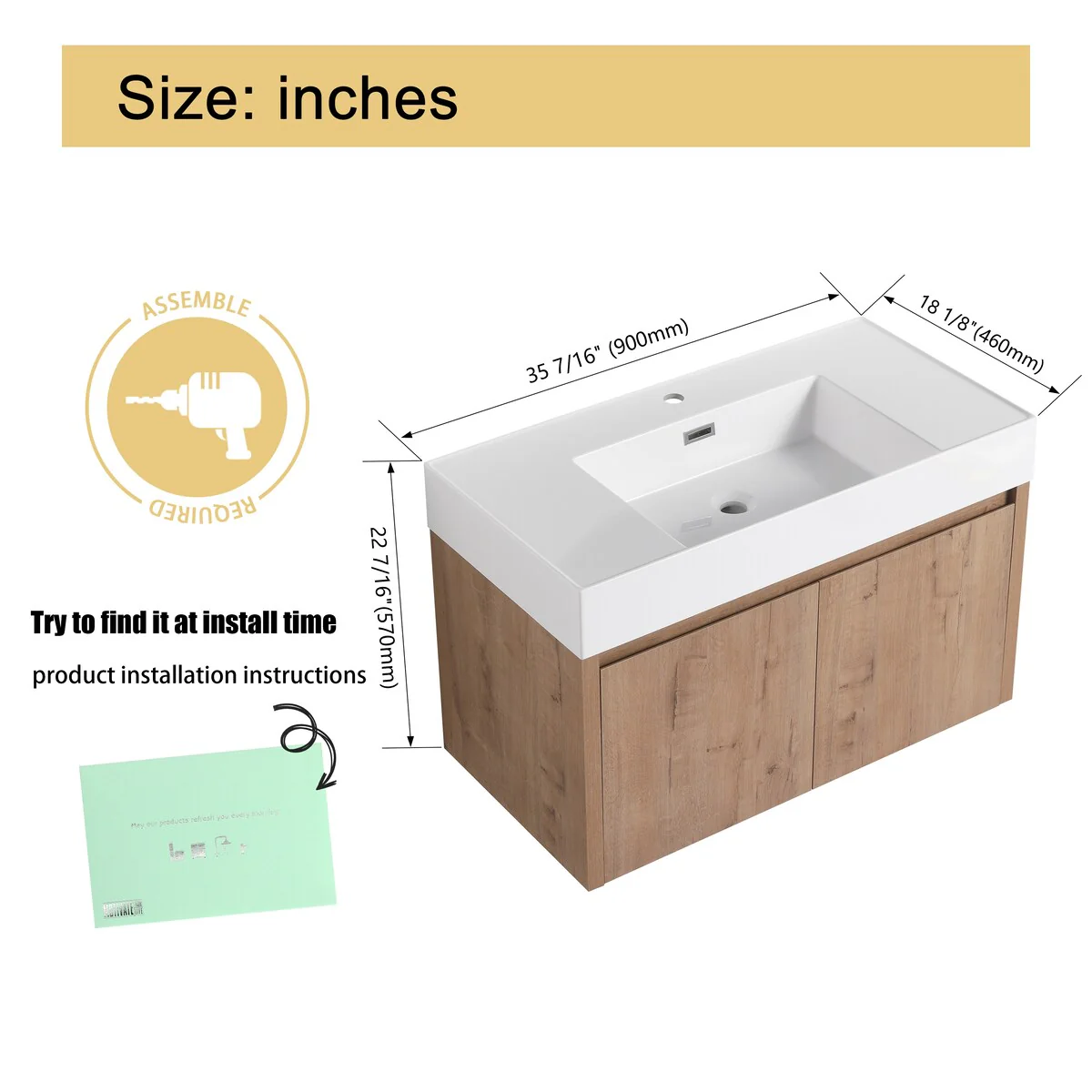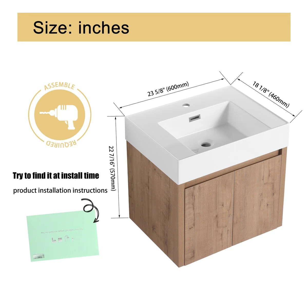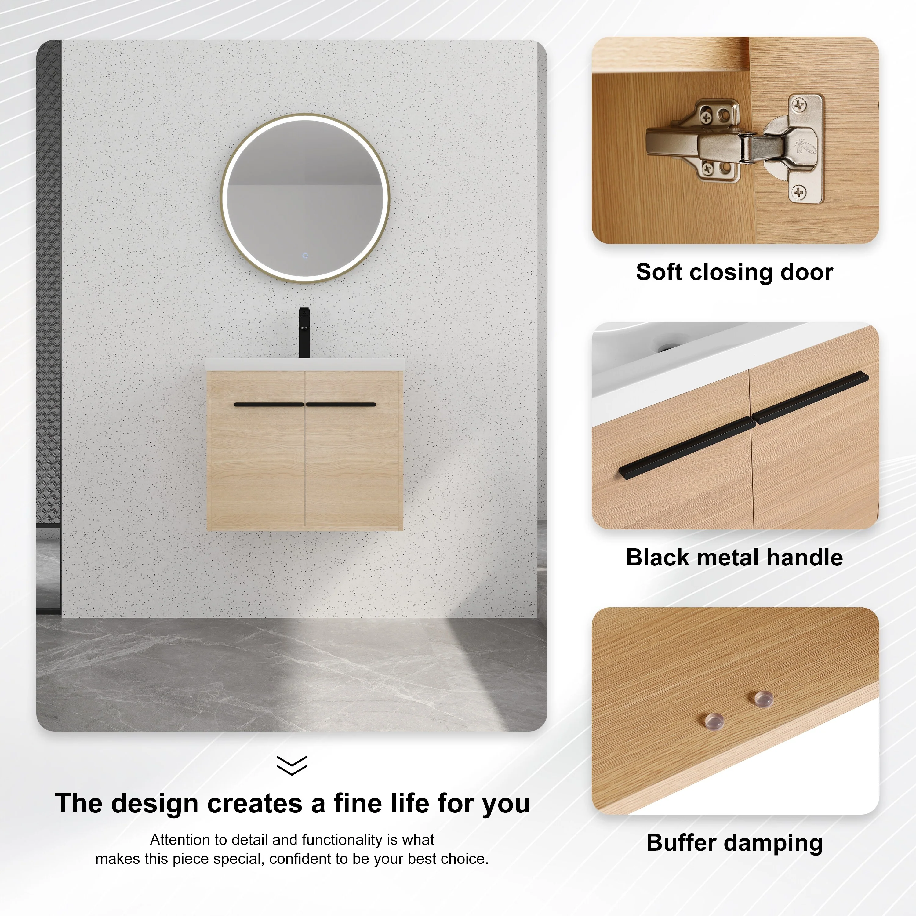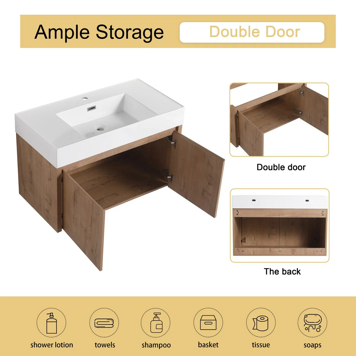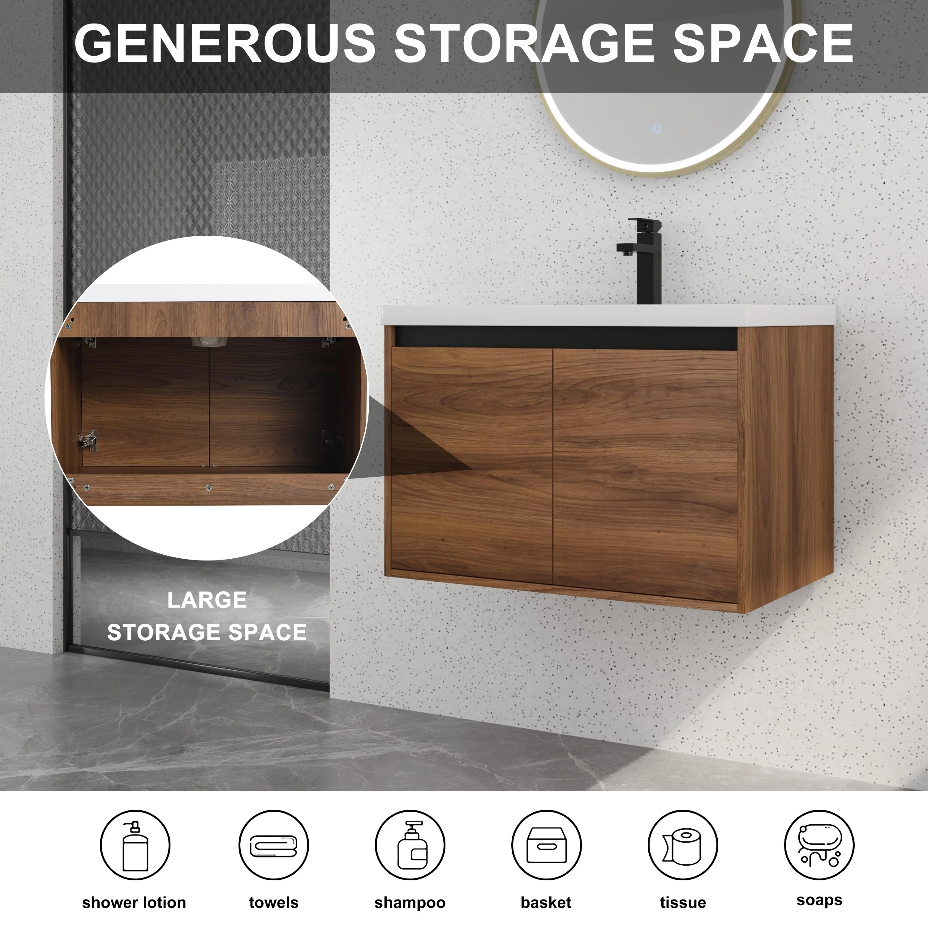Wall Mounted Bathroom Vanity with Sink & Large Storage Space