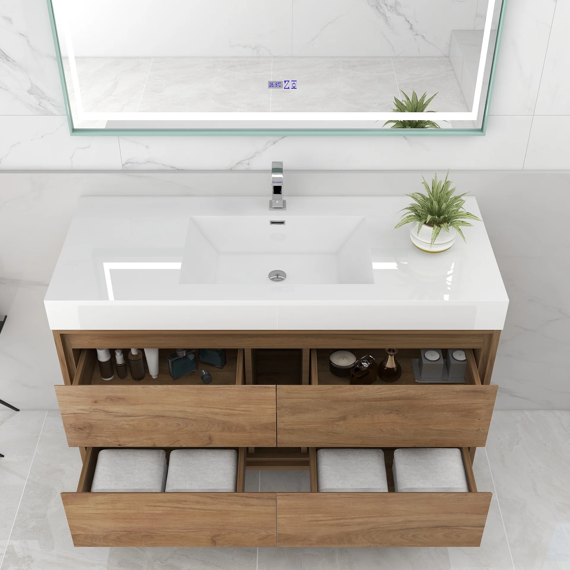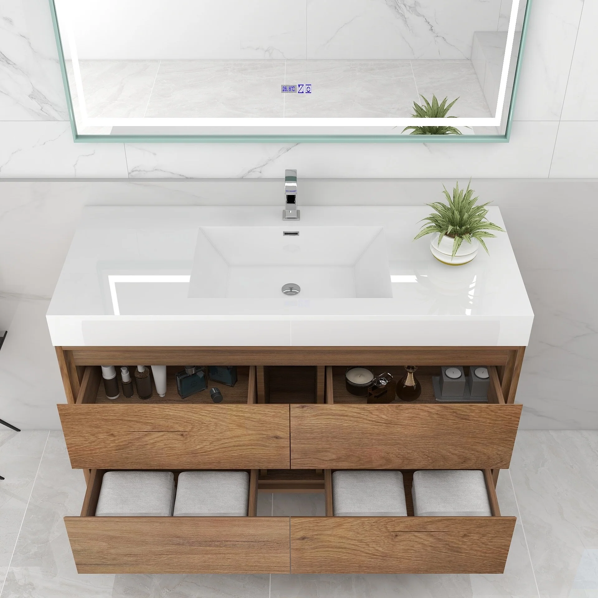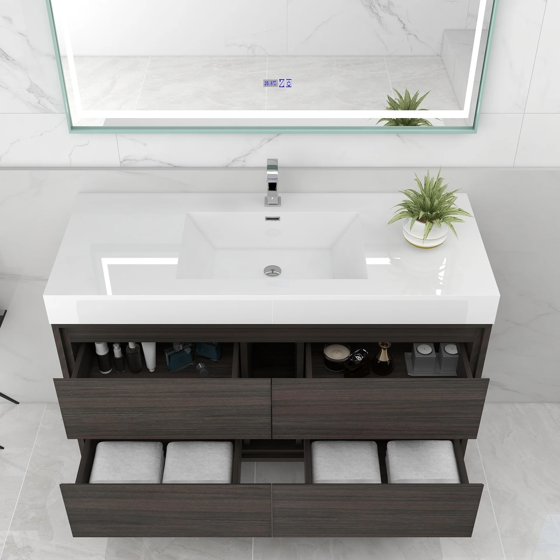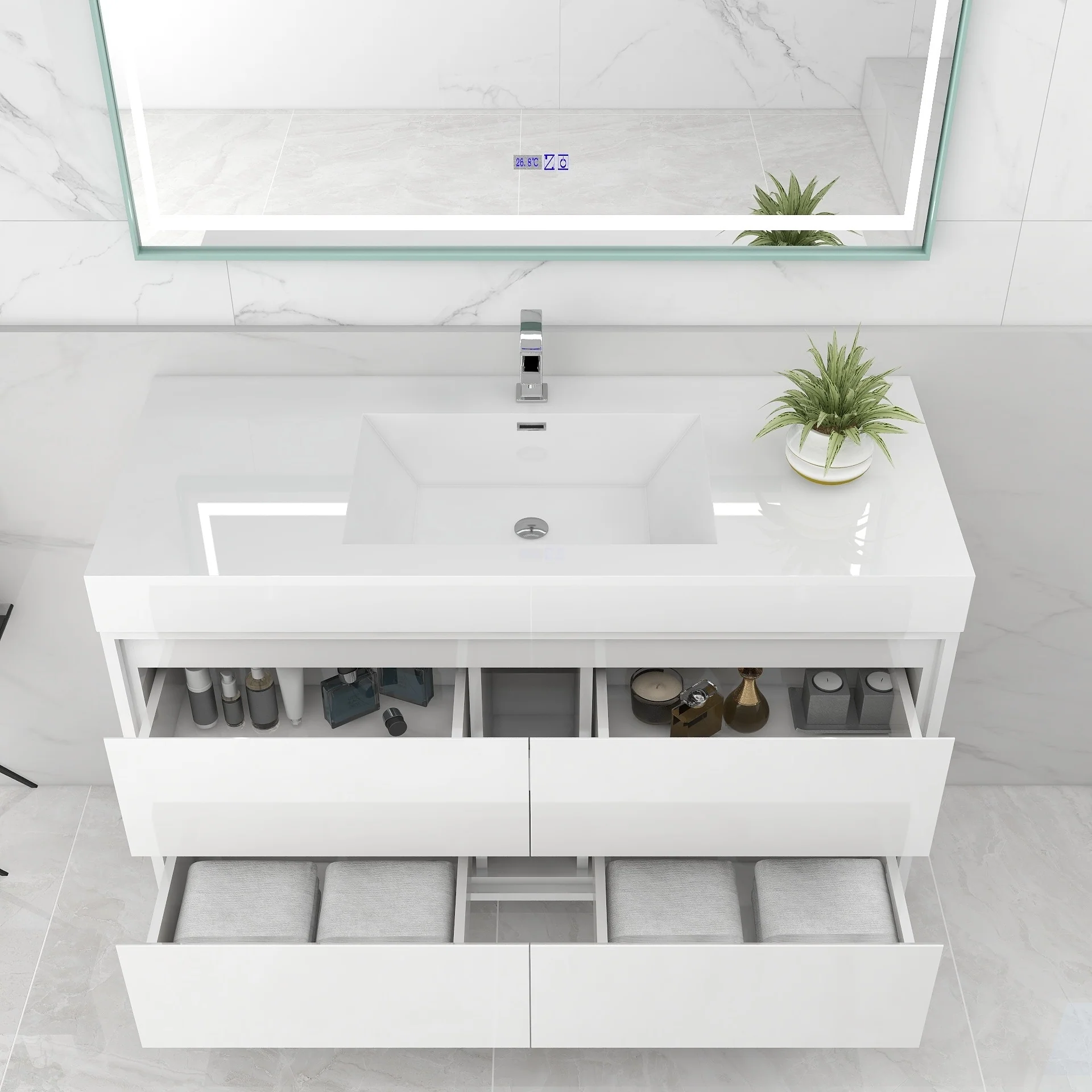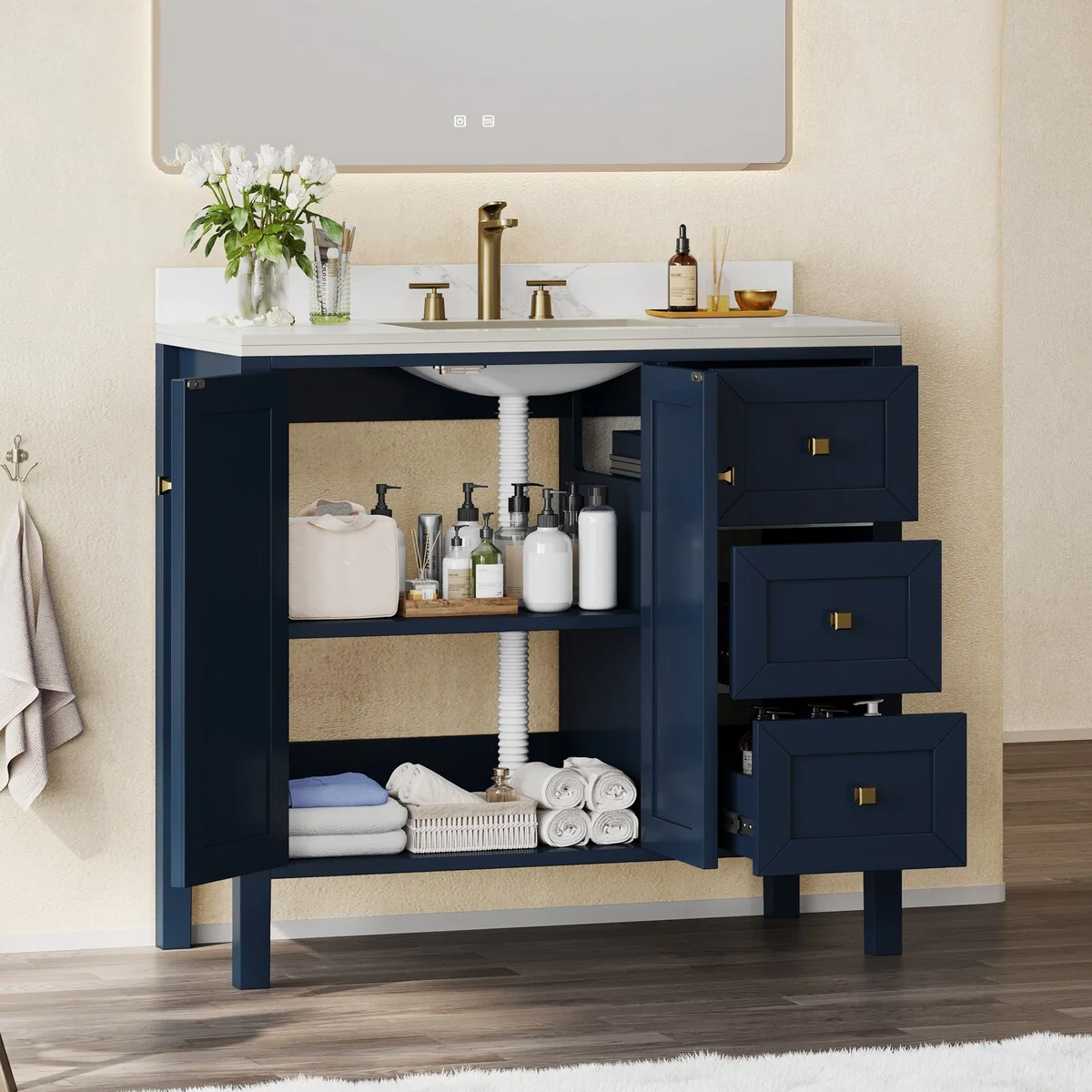 Wall Mounted Bathroom Vanity with Sink & Large Storage Space