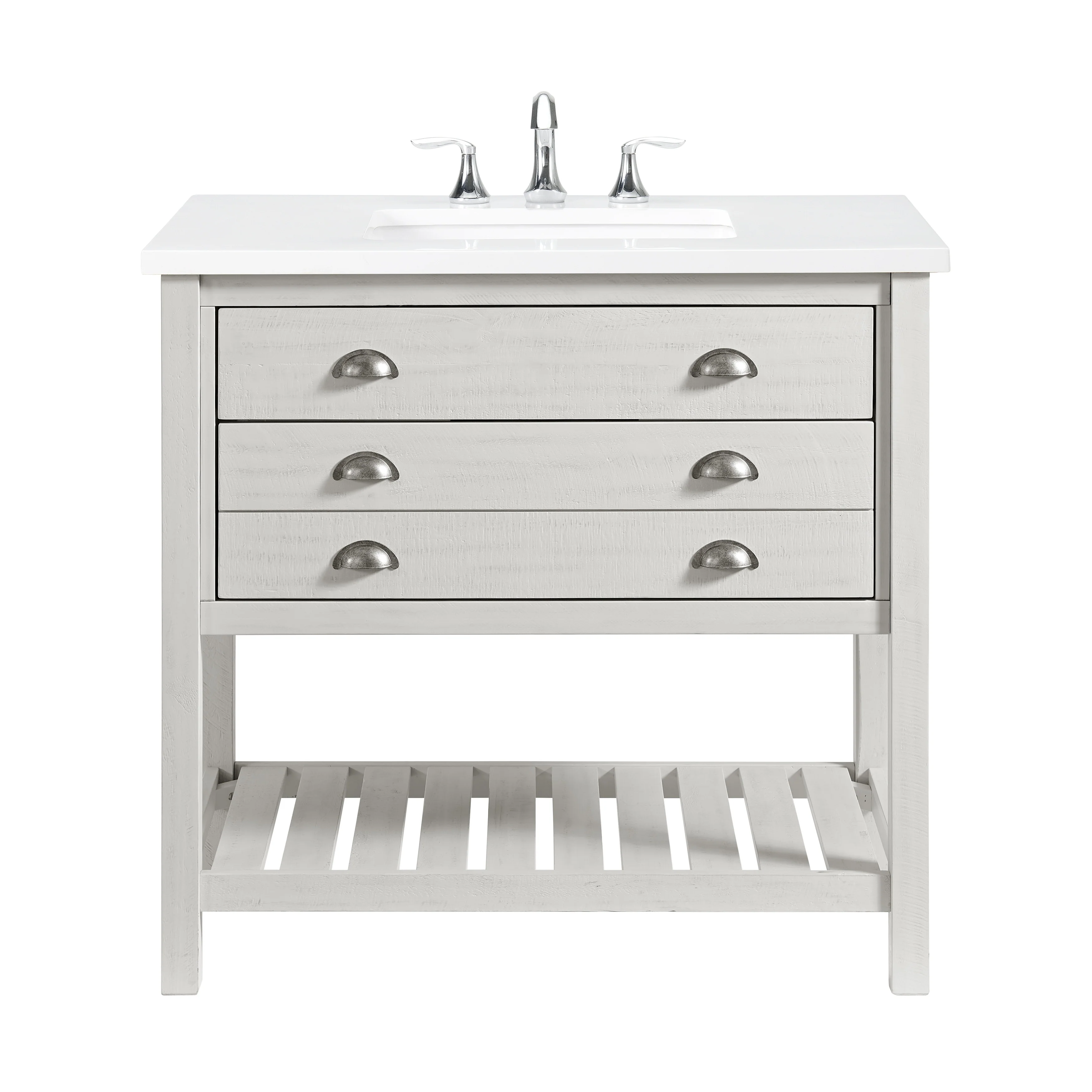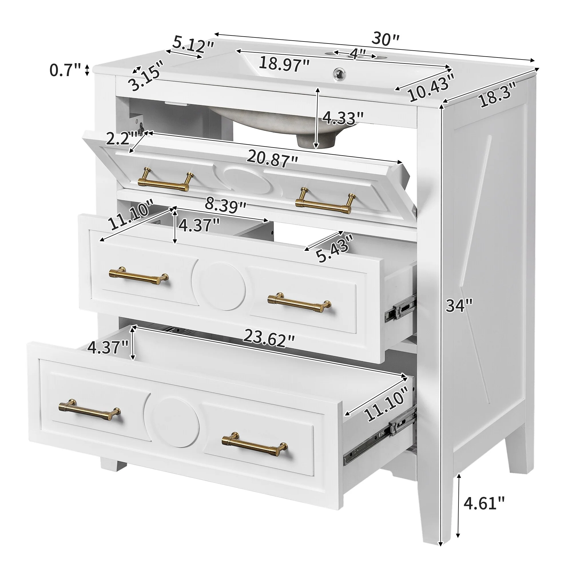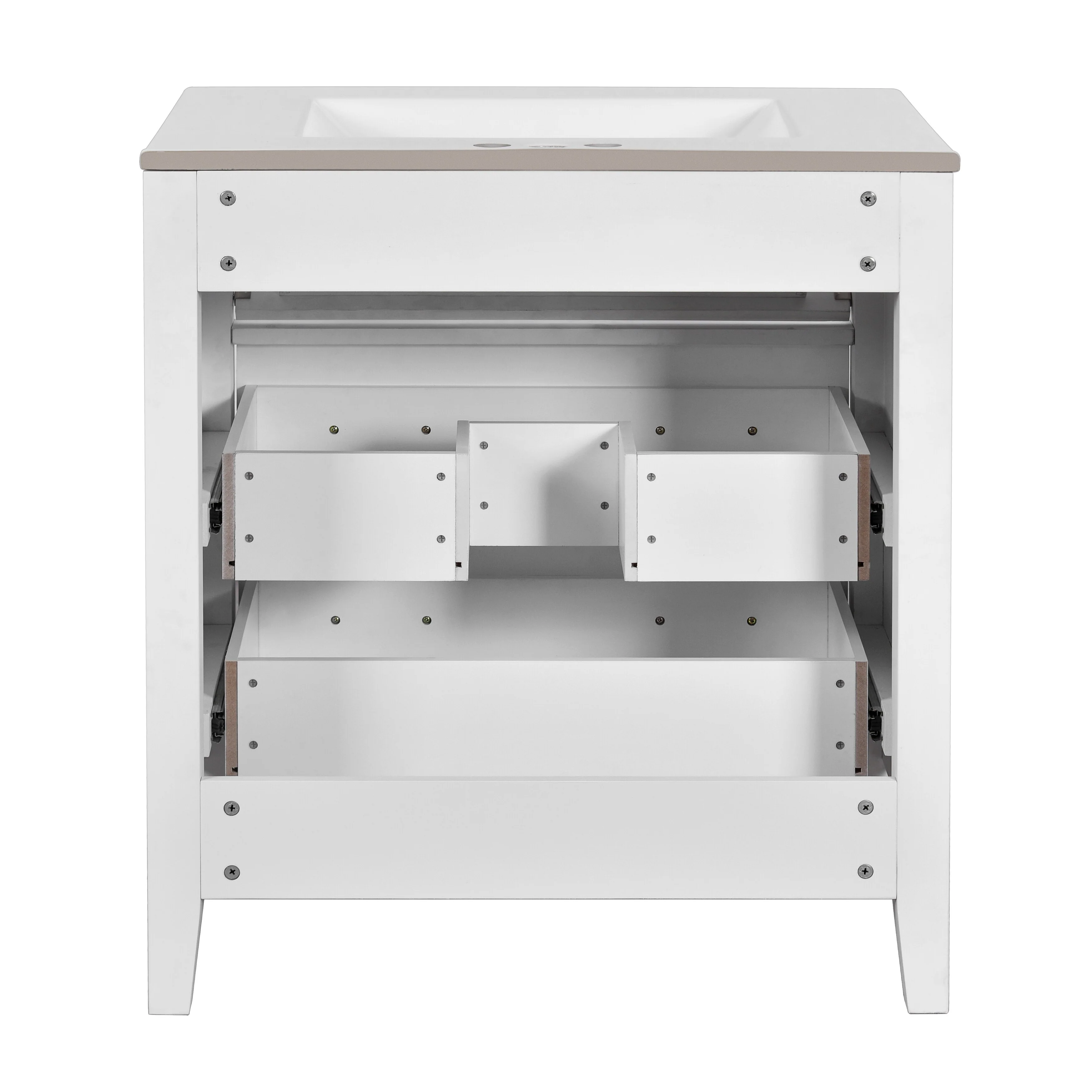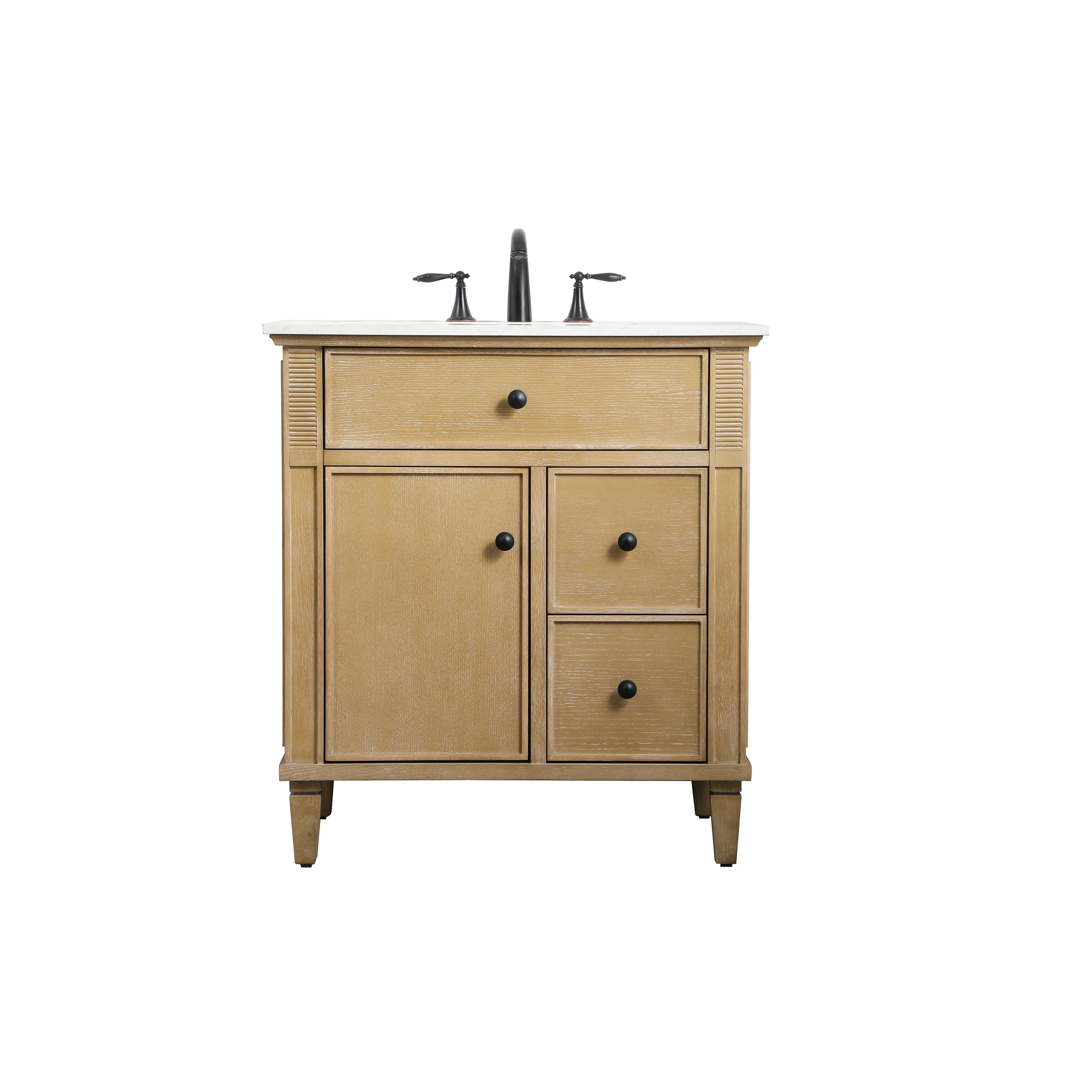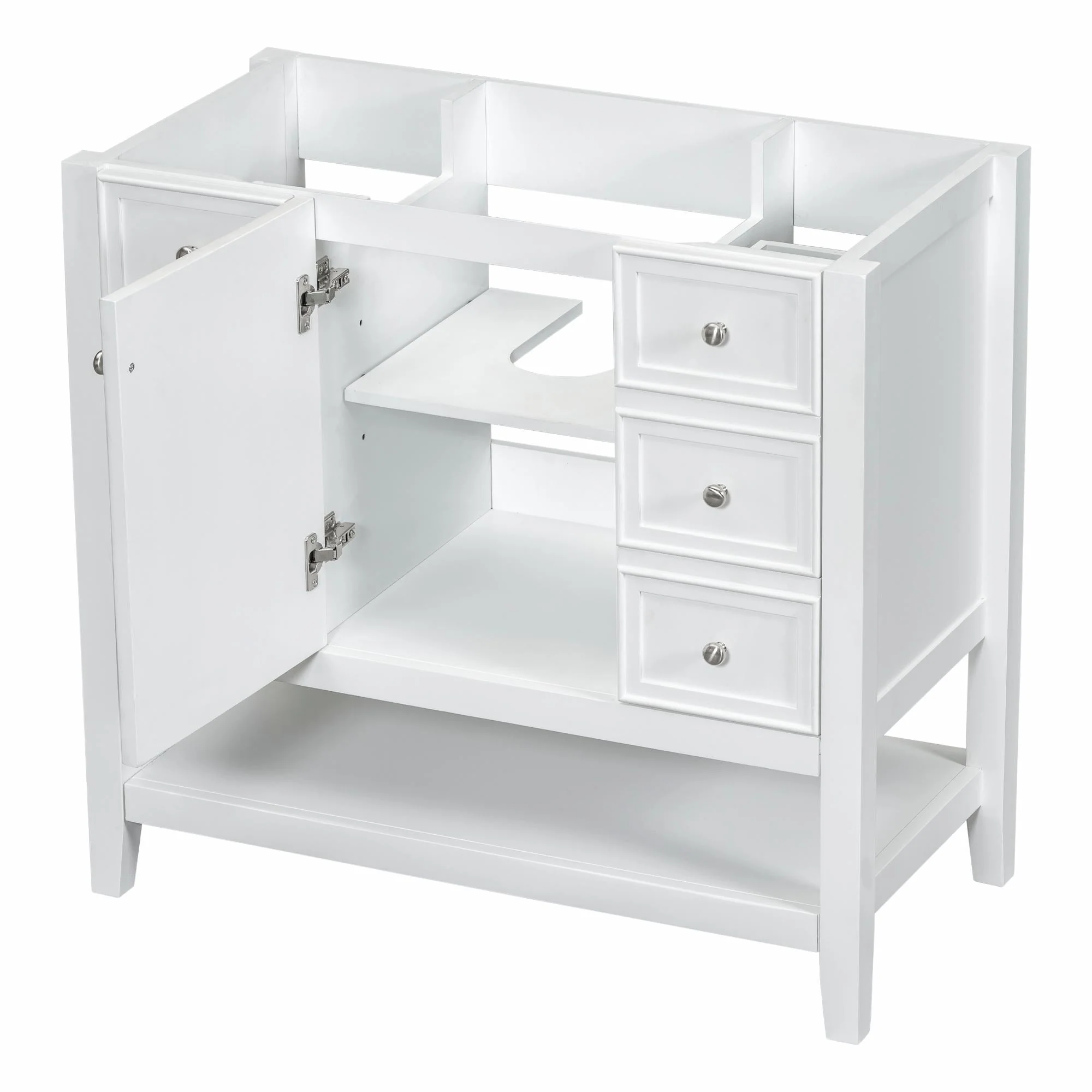30" White Bathroom Vanity with Ceramic Sink and 3 Drawers, Retro Free-Standing Vanity Set - 30 in W Ceramic,Solid Wood+MDF