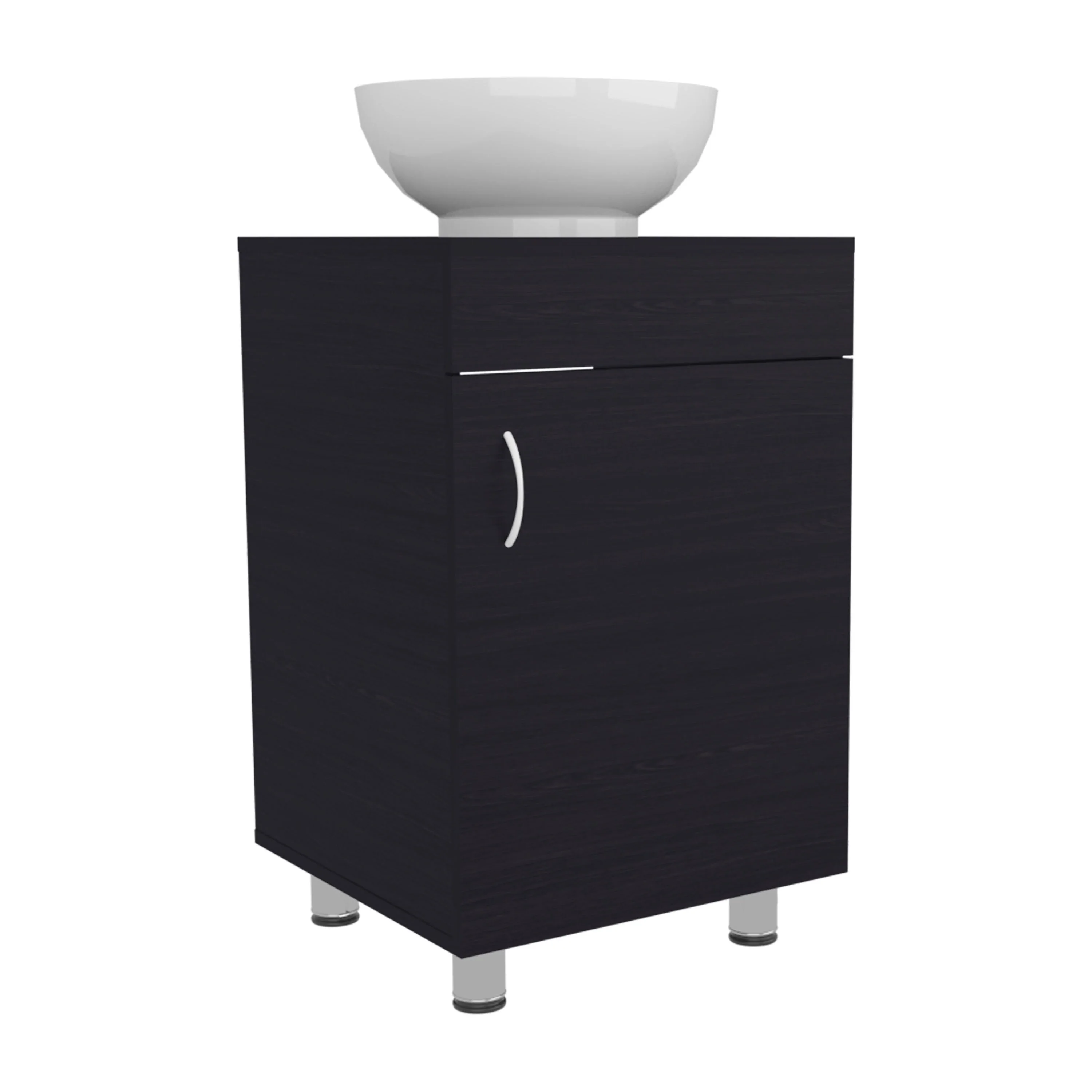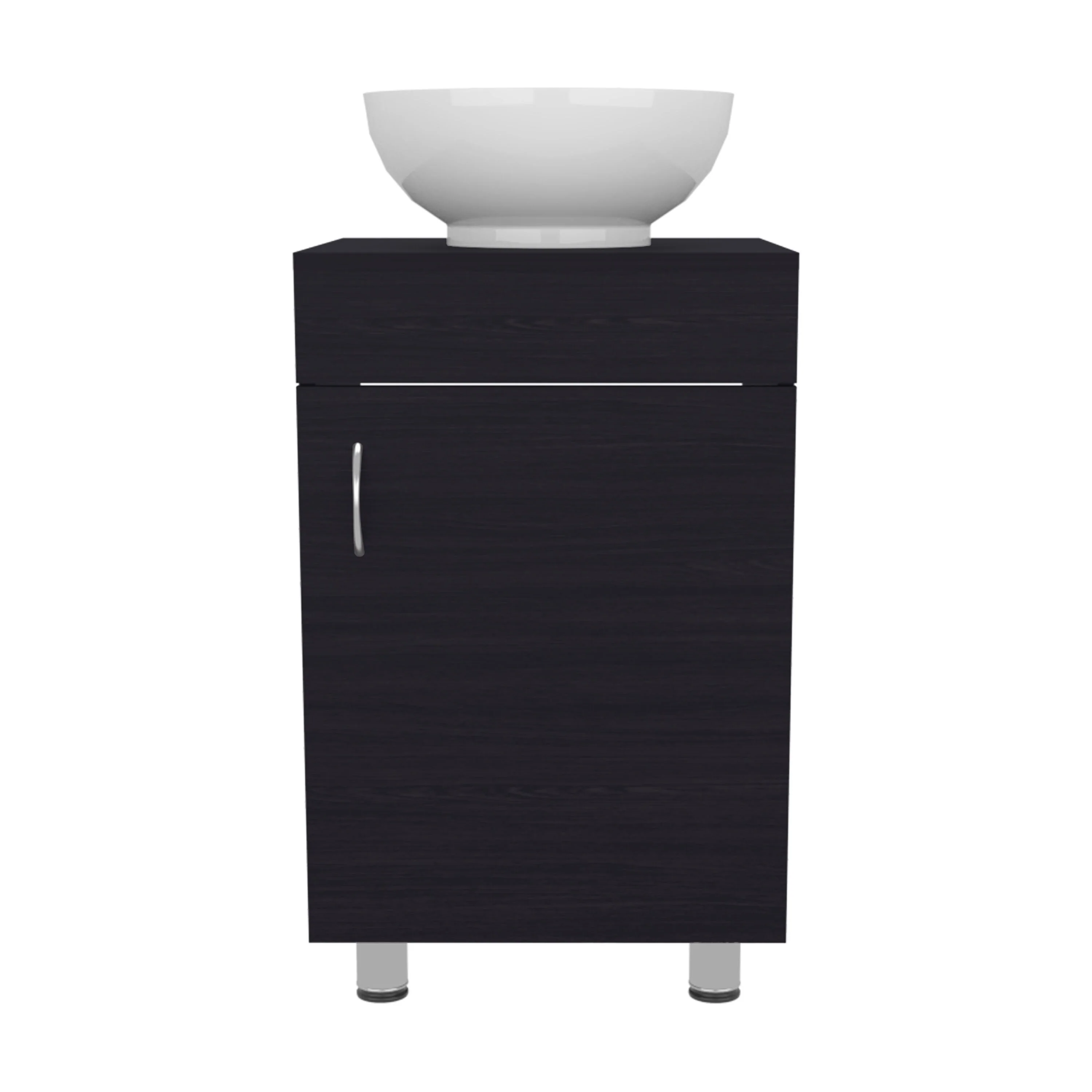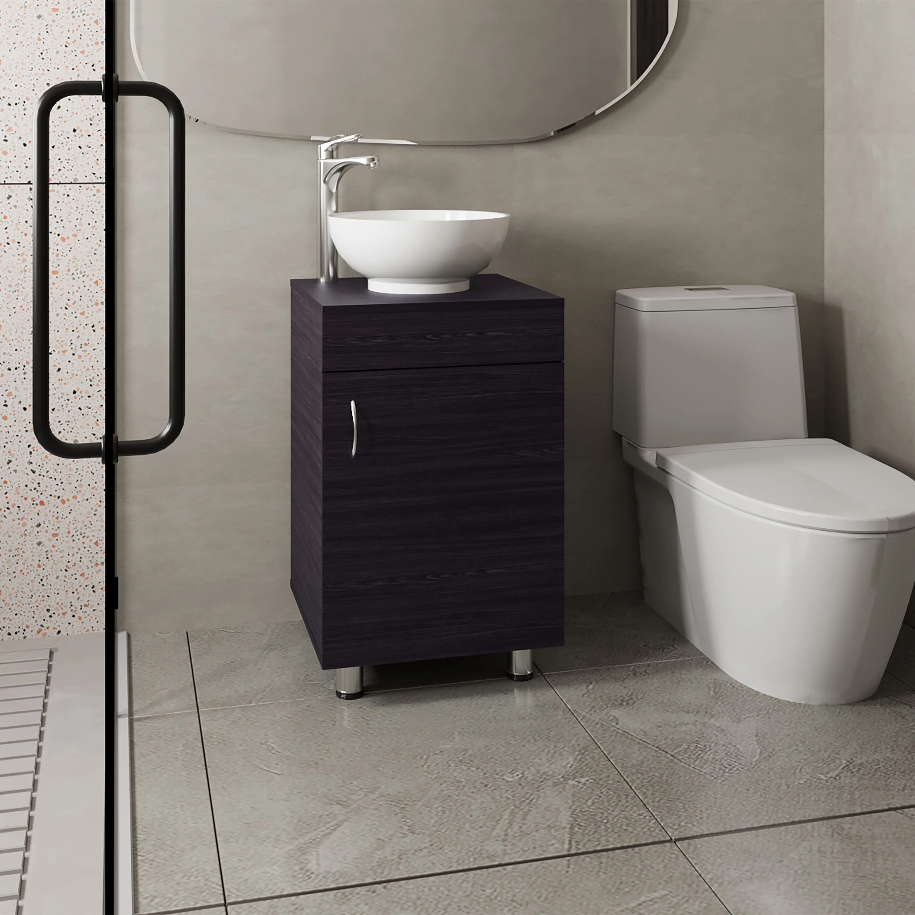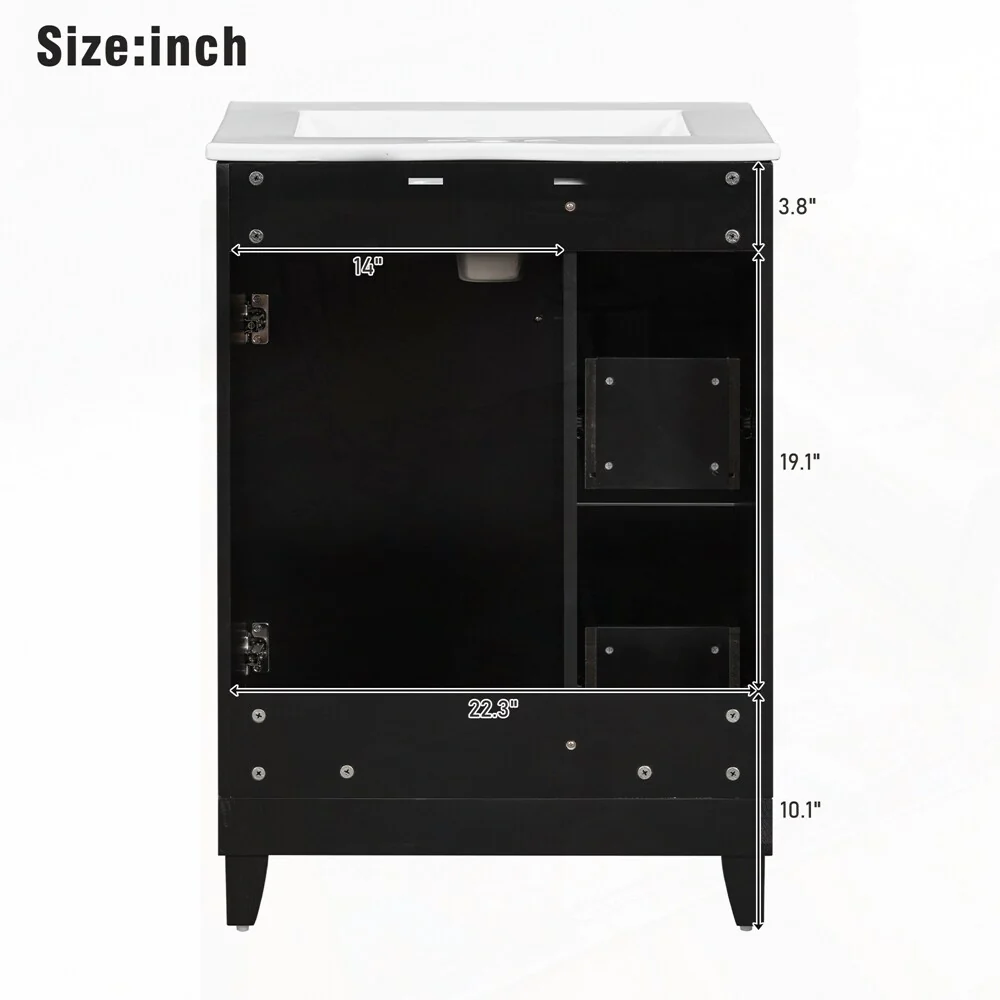 18" Wide Free Standing One Door Vanity,With Vessel Porcelain Sink,Bathroom Storage,Black