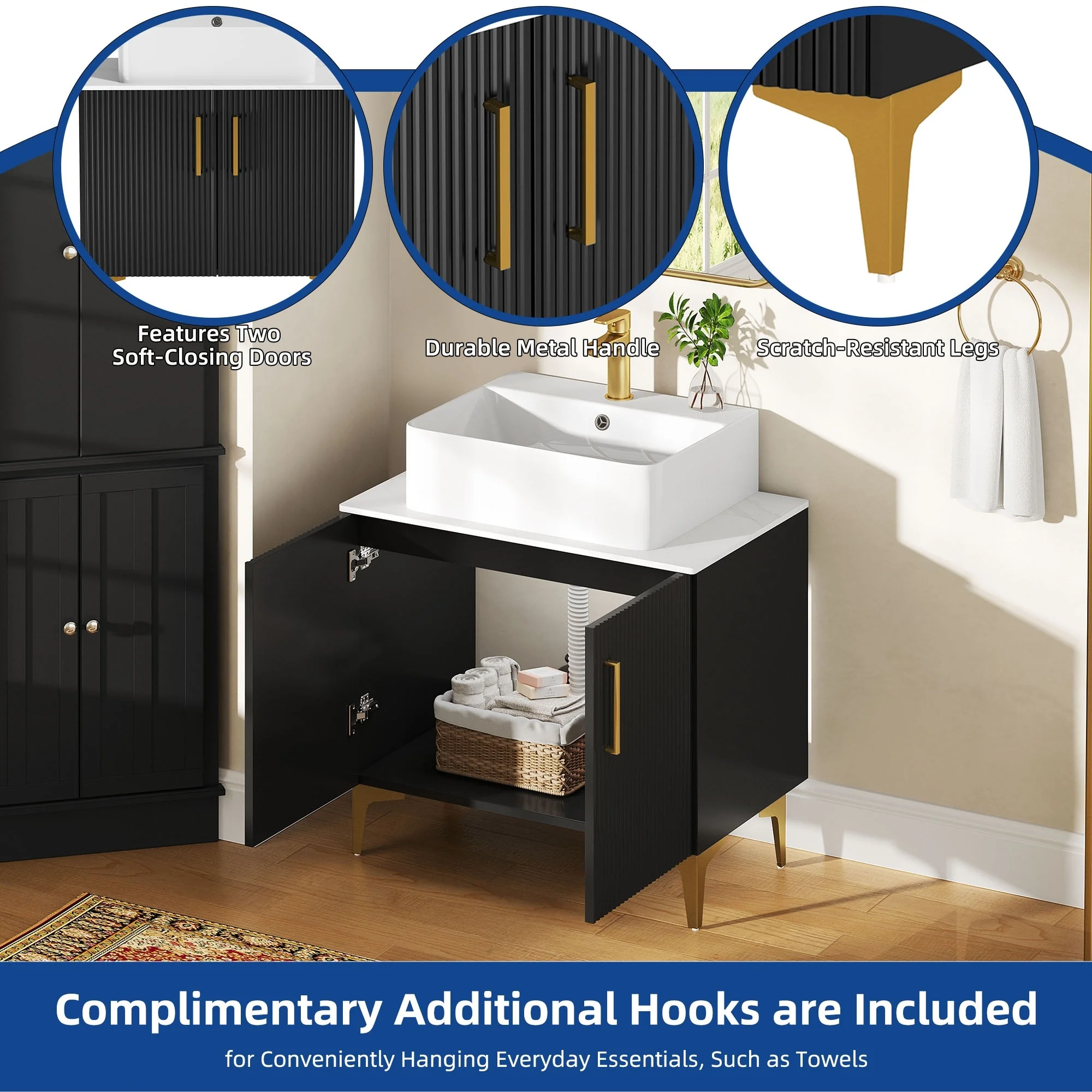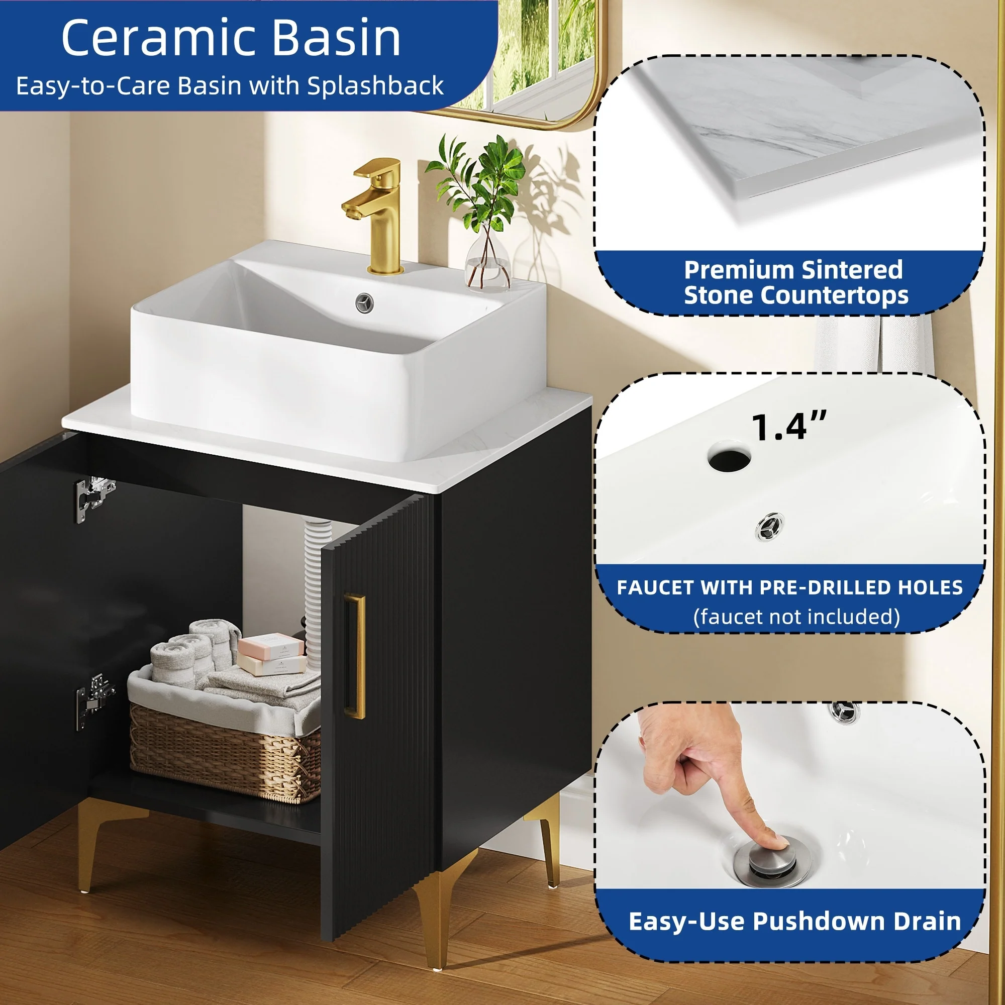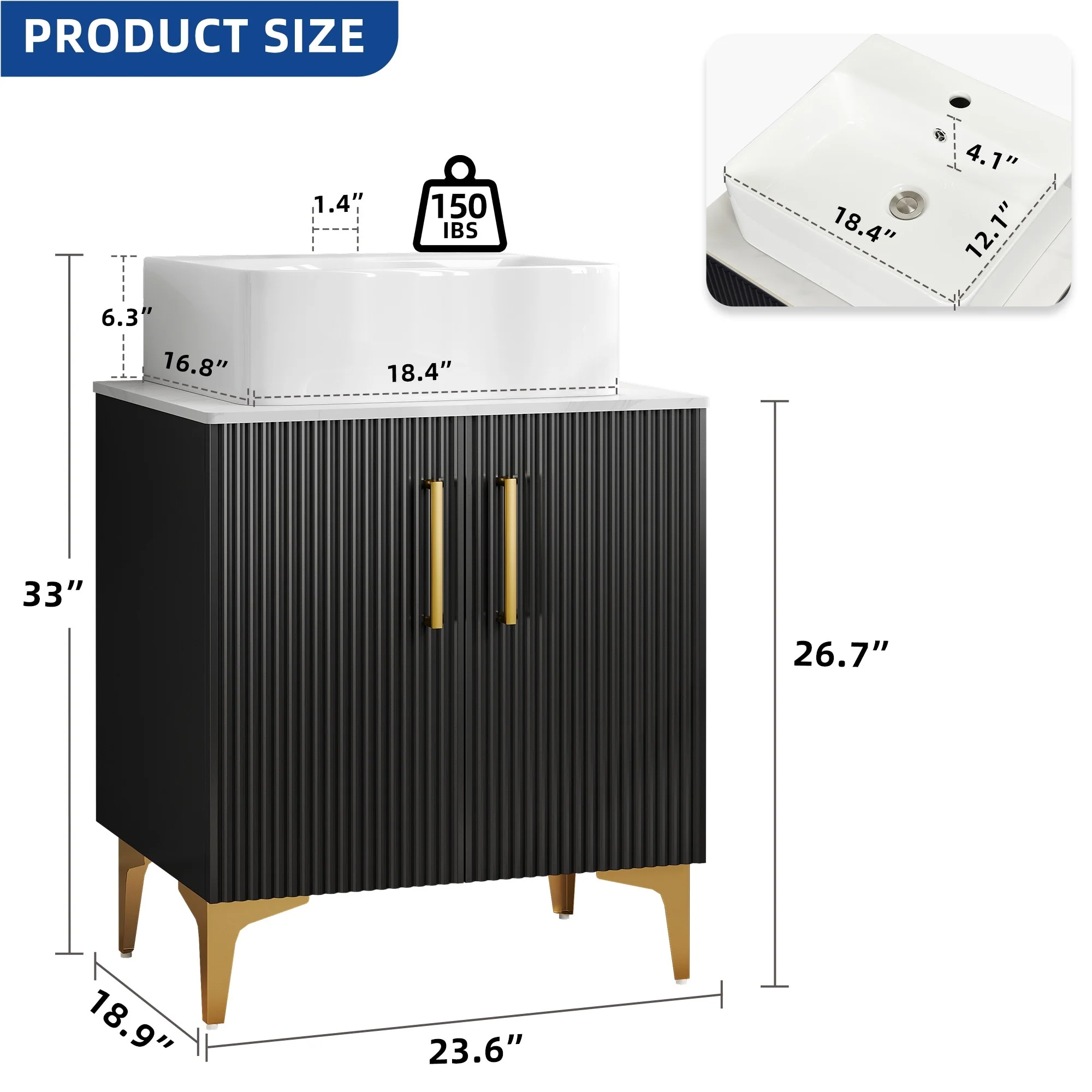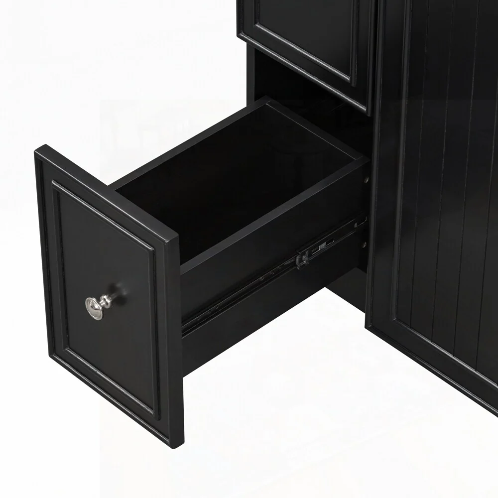 18" Wide Free Standing One Door Vanity,With Vessel Porcelain Sink,Bathroom Storage,Black