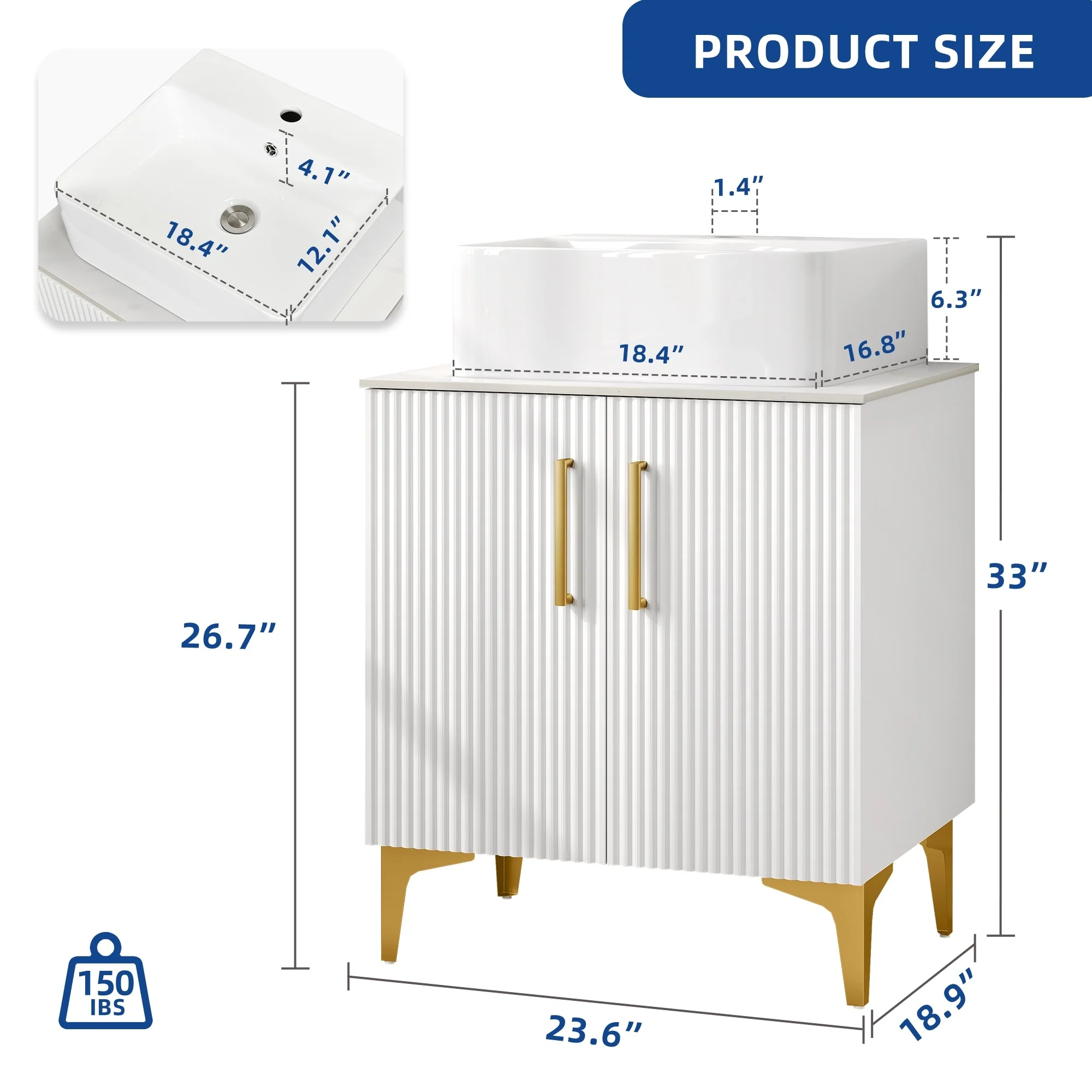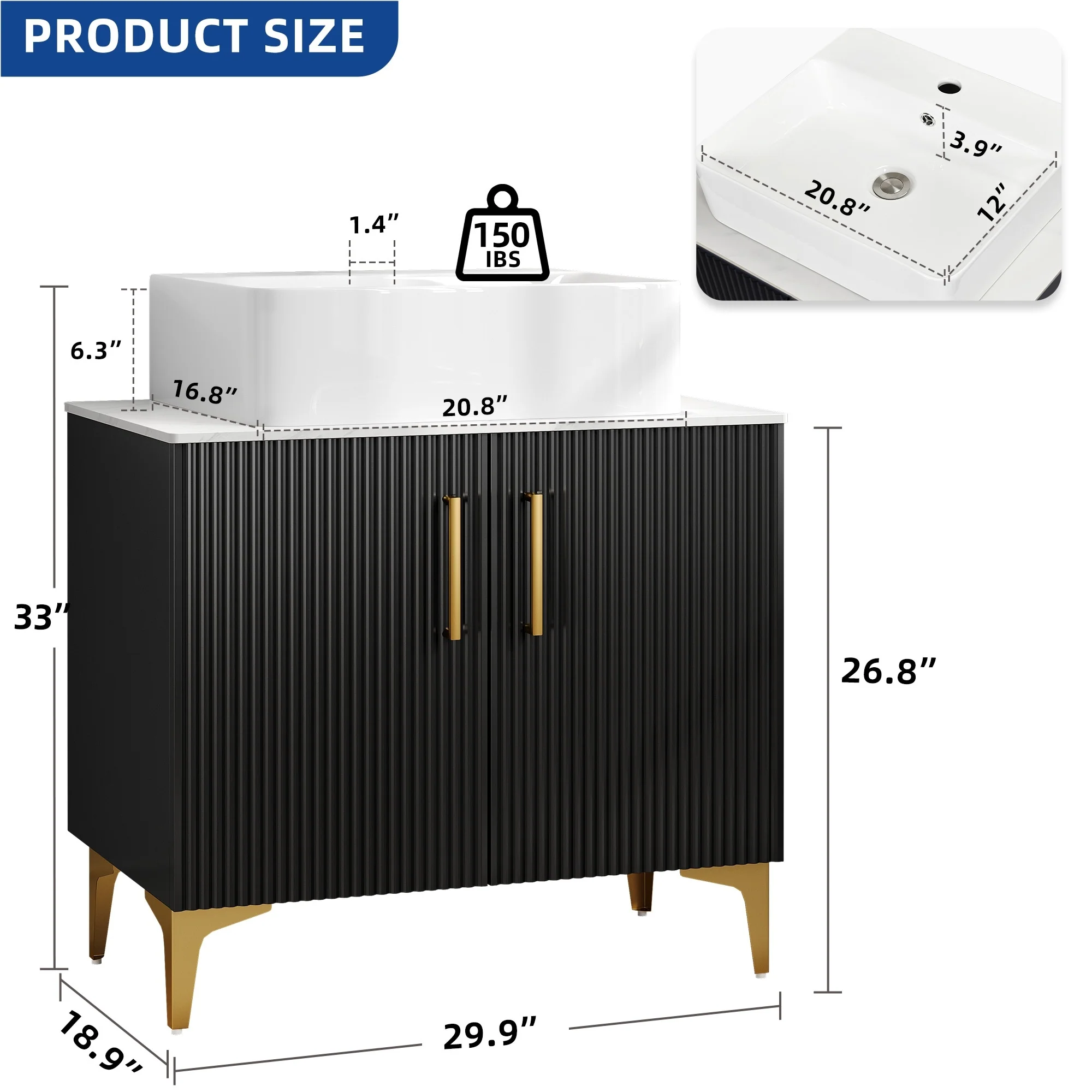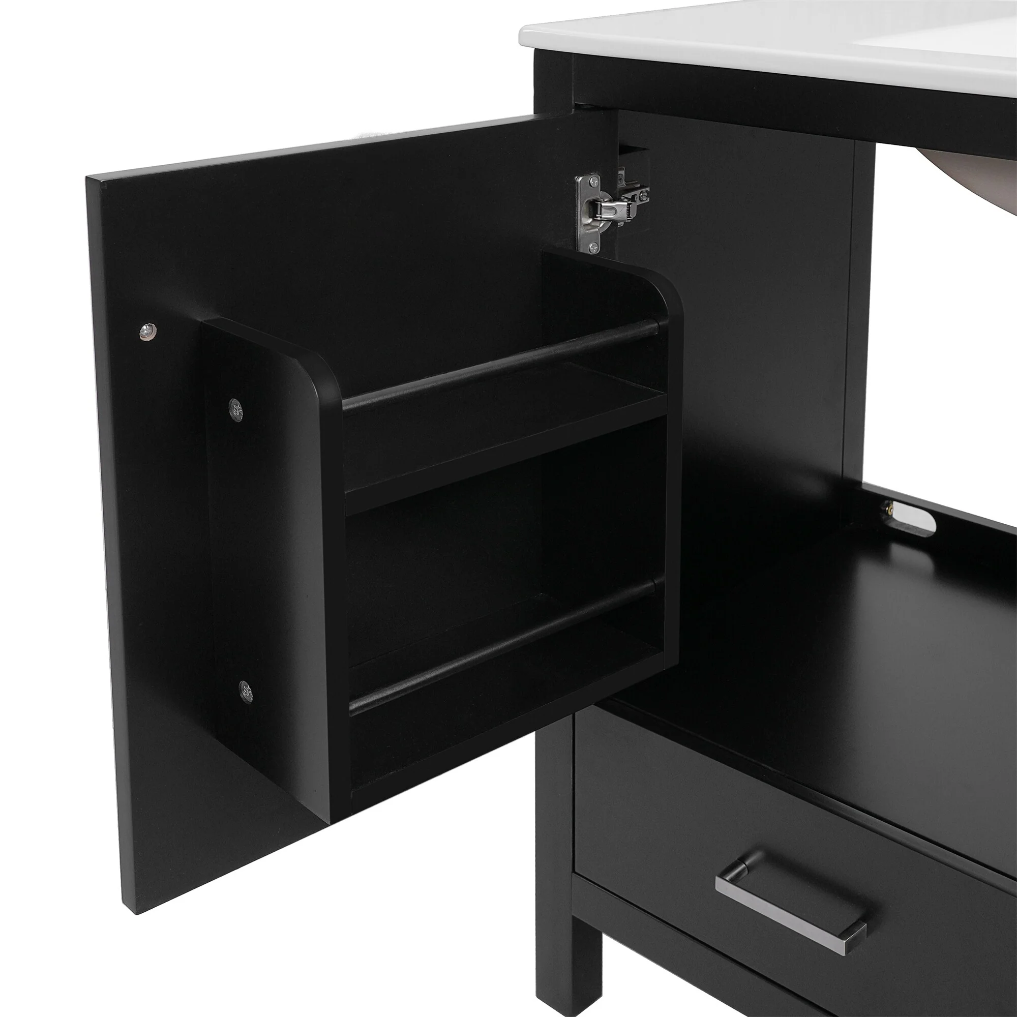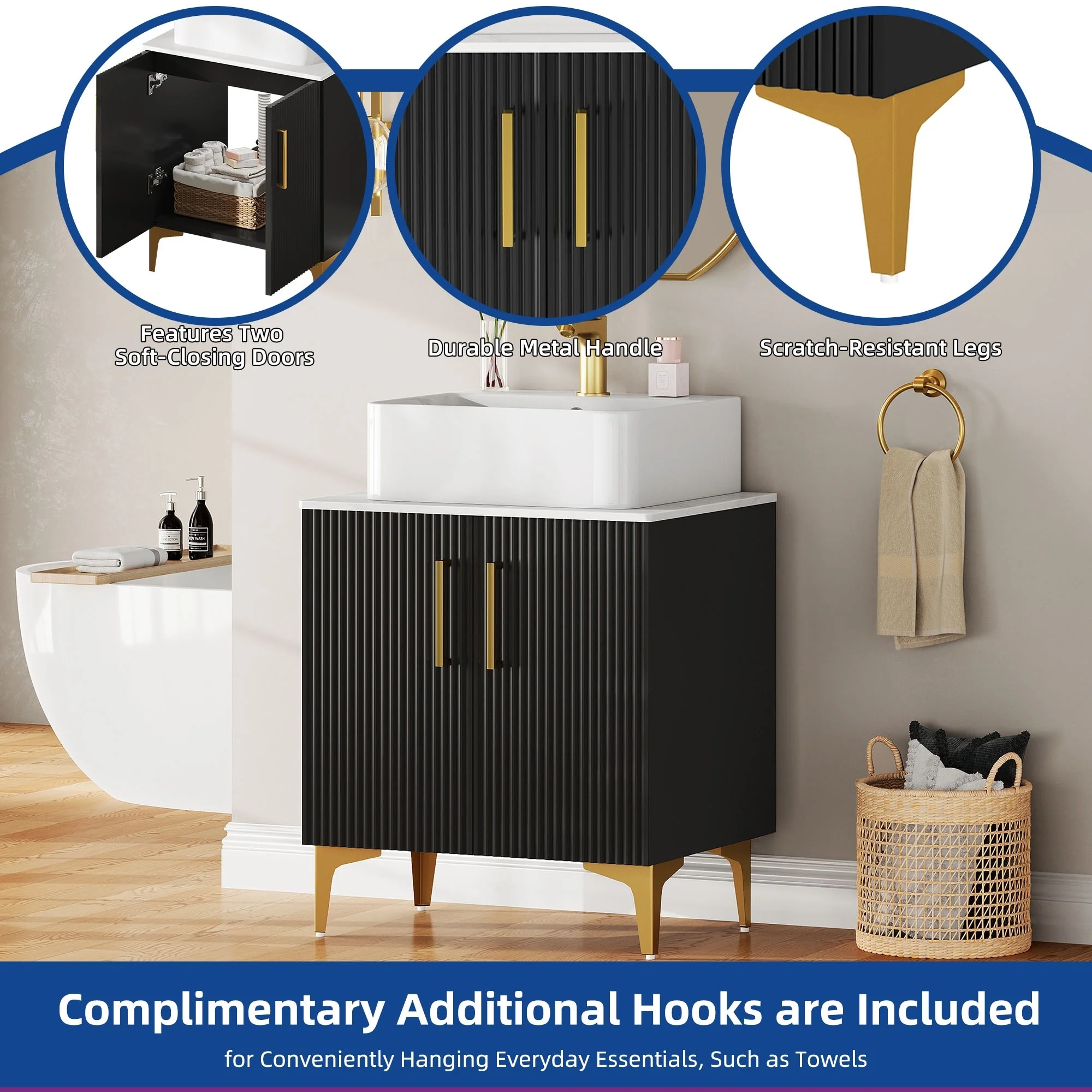 18" Wide Free Standing One Door Vanity,With Vessel Porcelain Sink,Bathroom Storage,Black