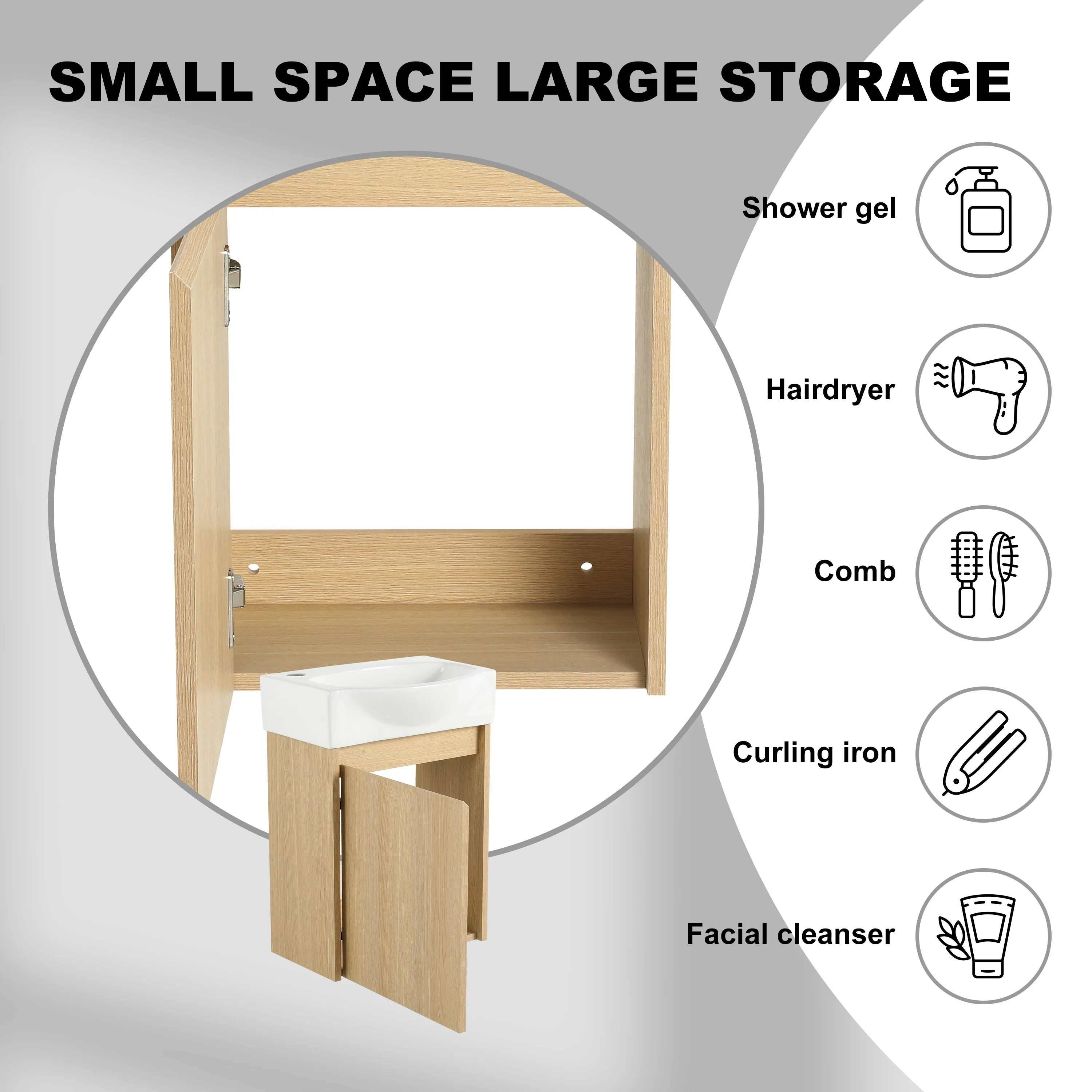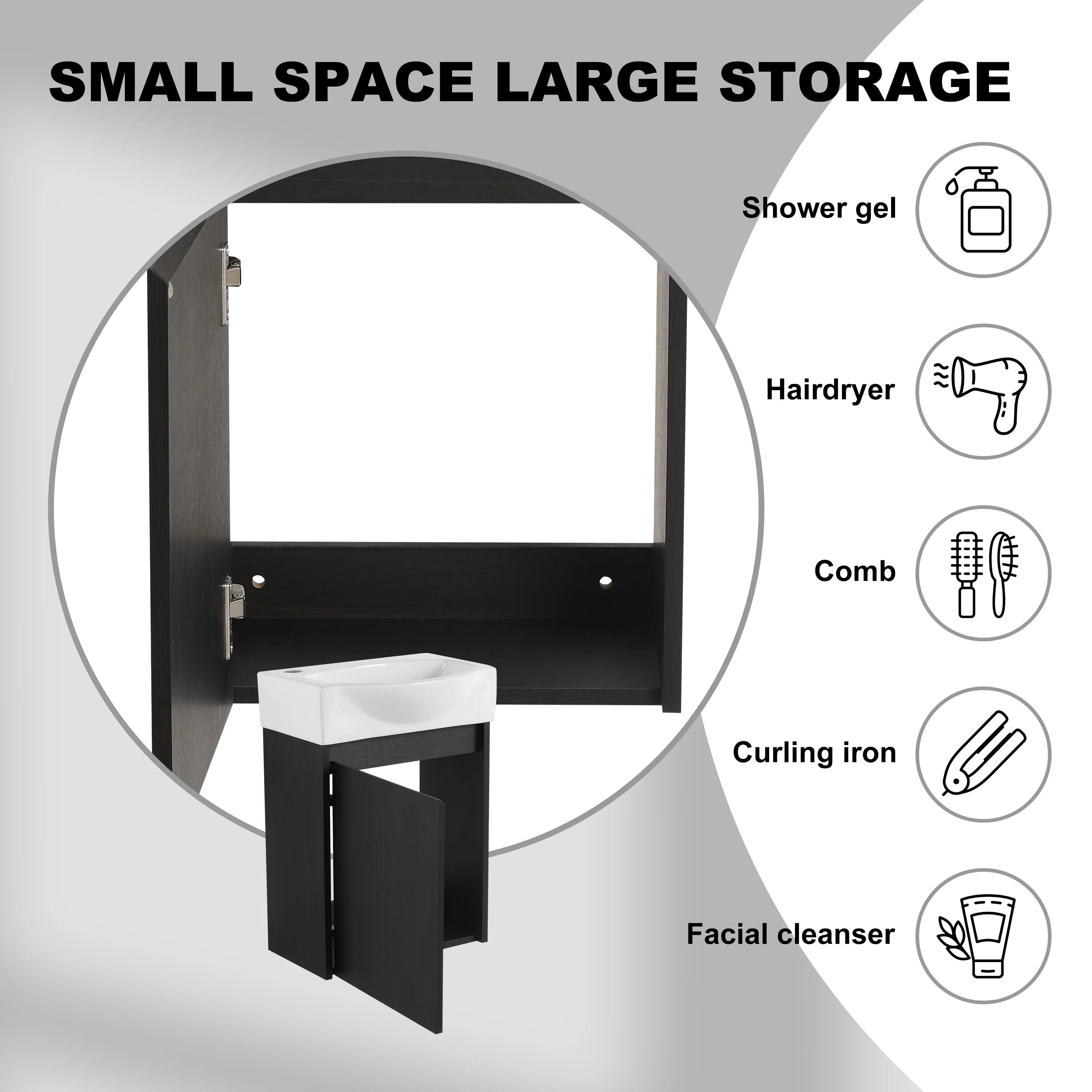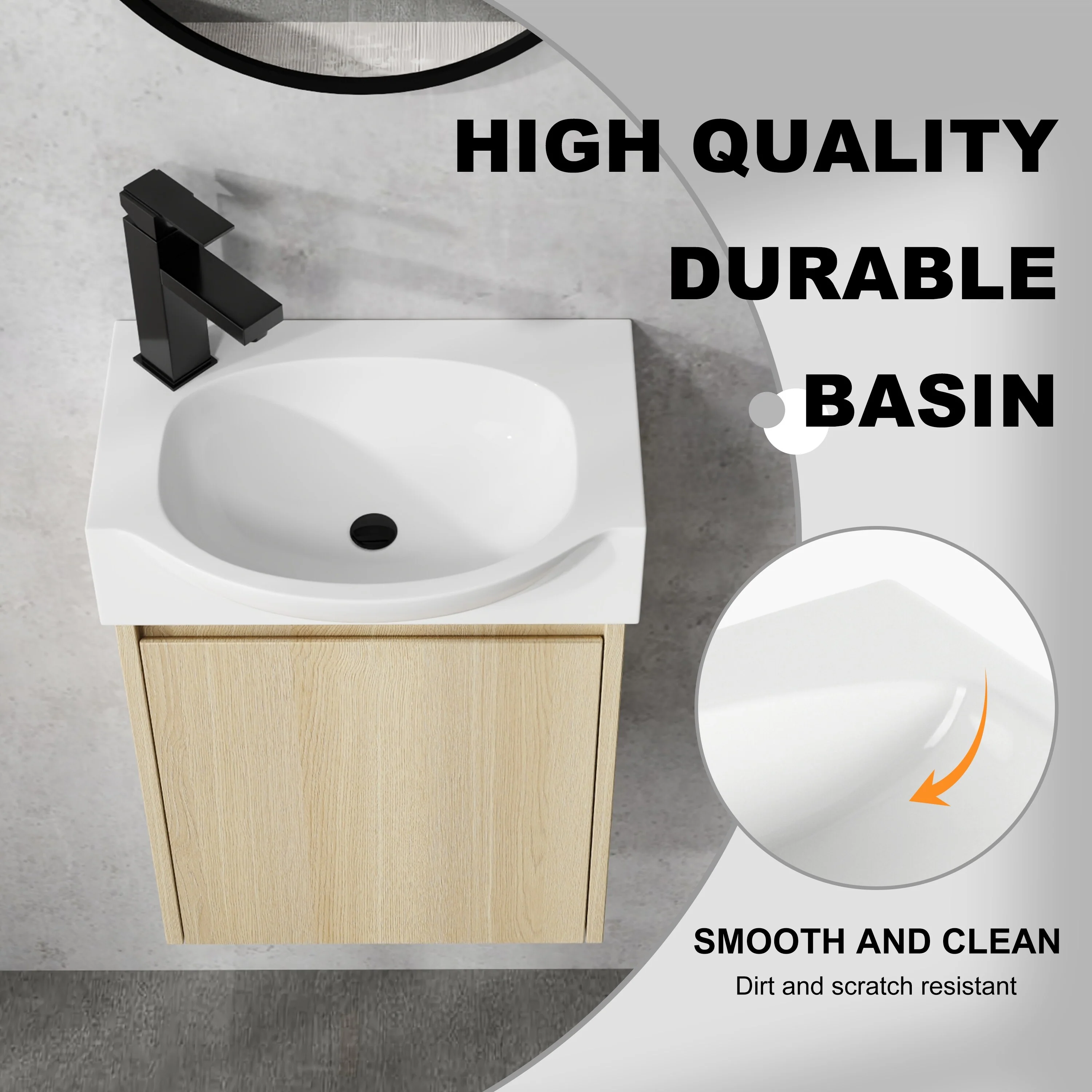 Bathroom Vanity With Sink In 16/20/24/30/36 Inch, Floating Bathroom Vanity With Soft Close Door