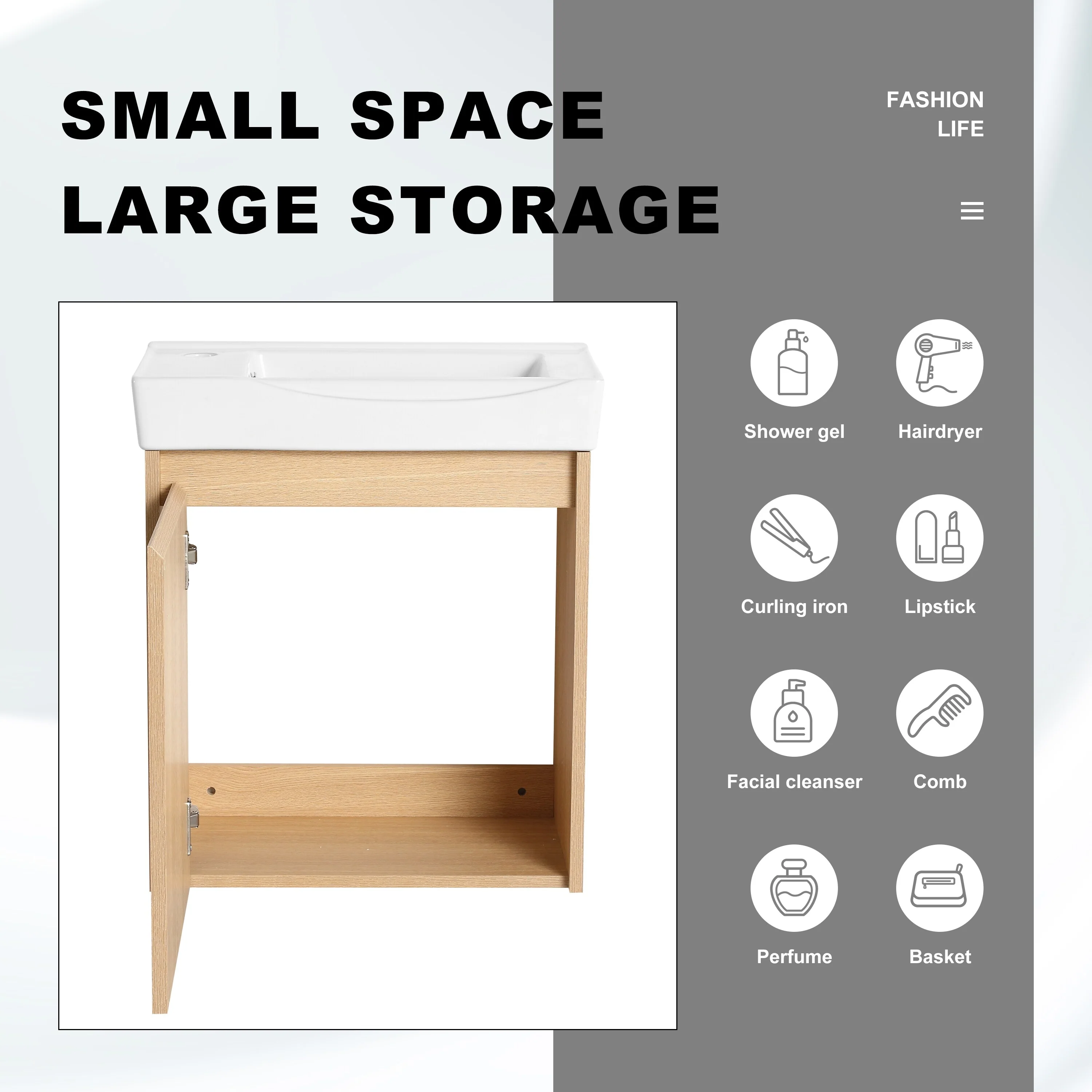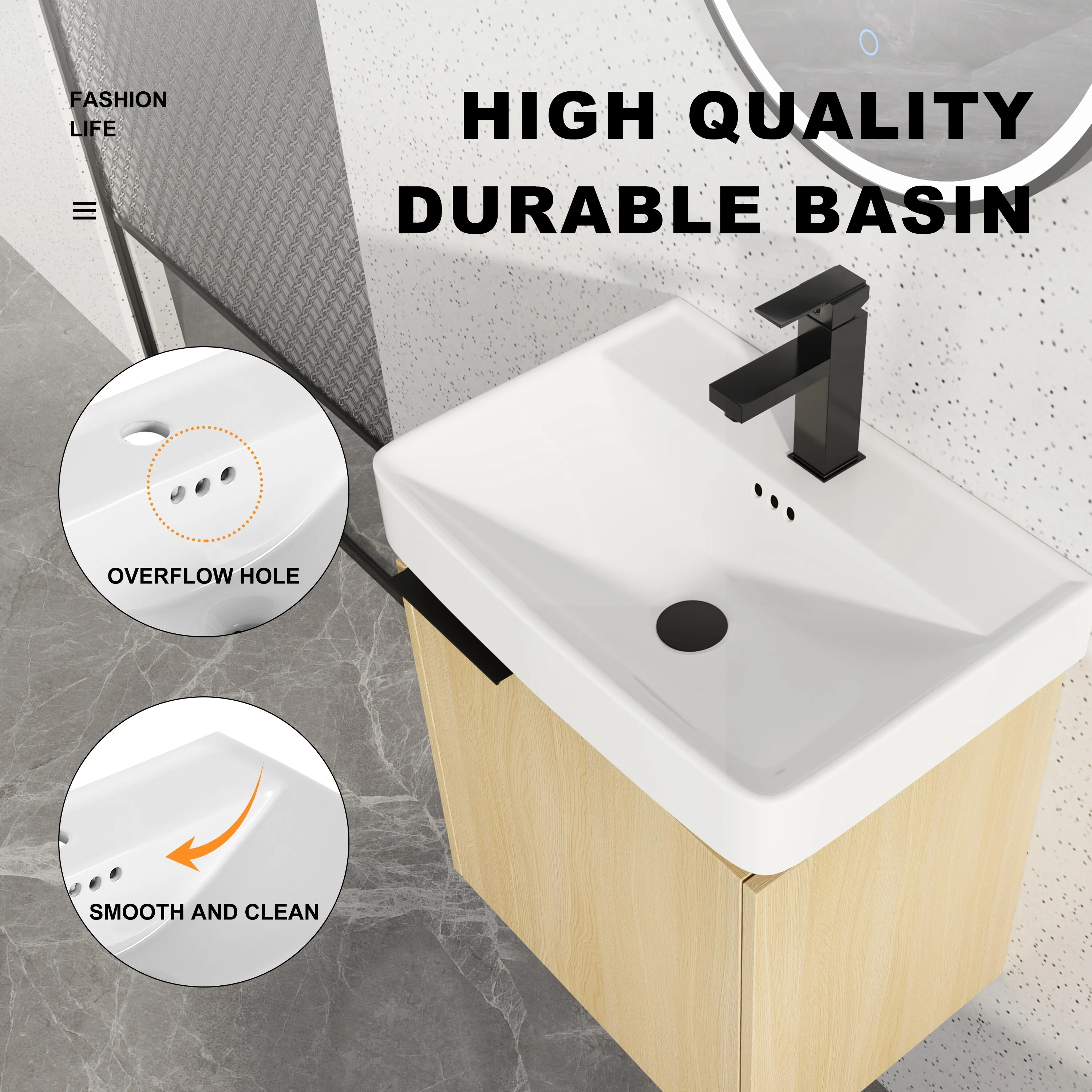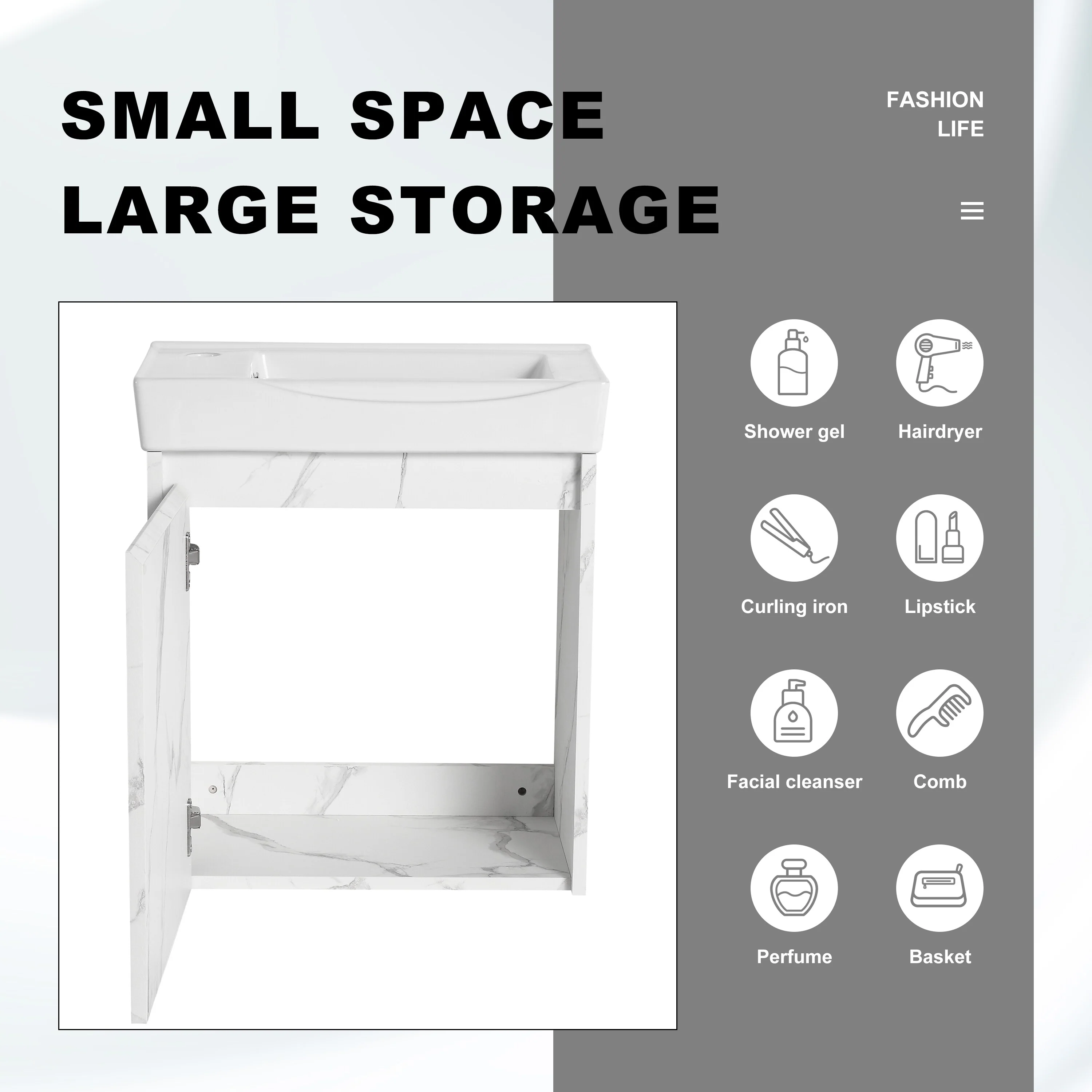 Bathroom Vanity With Sink In 16/20/24/30/36 Inch, Floating Bathroom Vanity With Soft Close Door