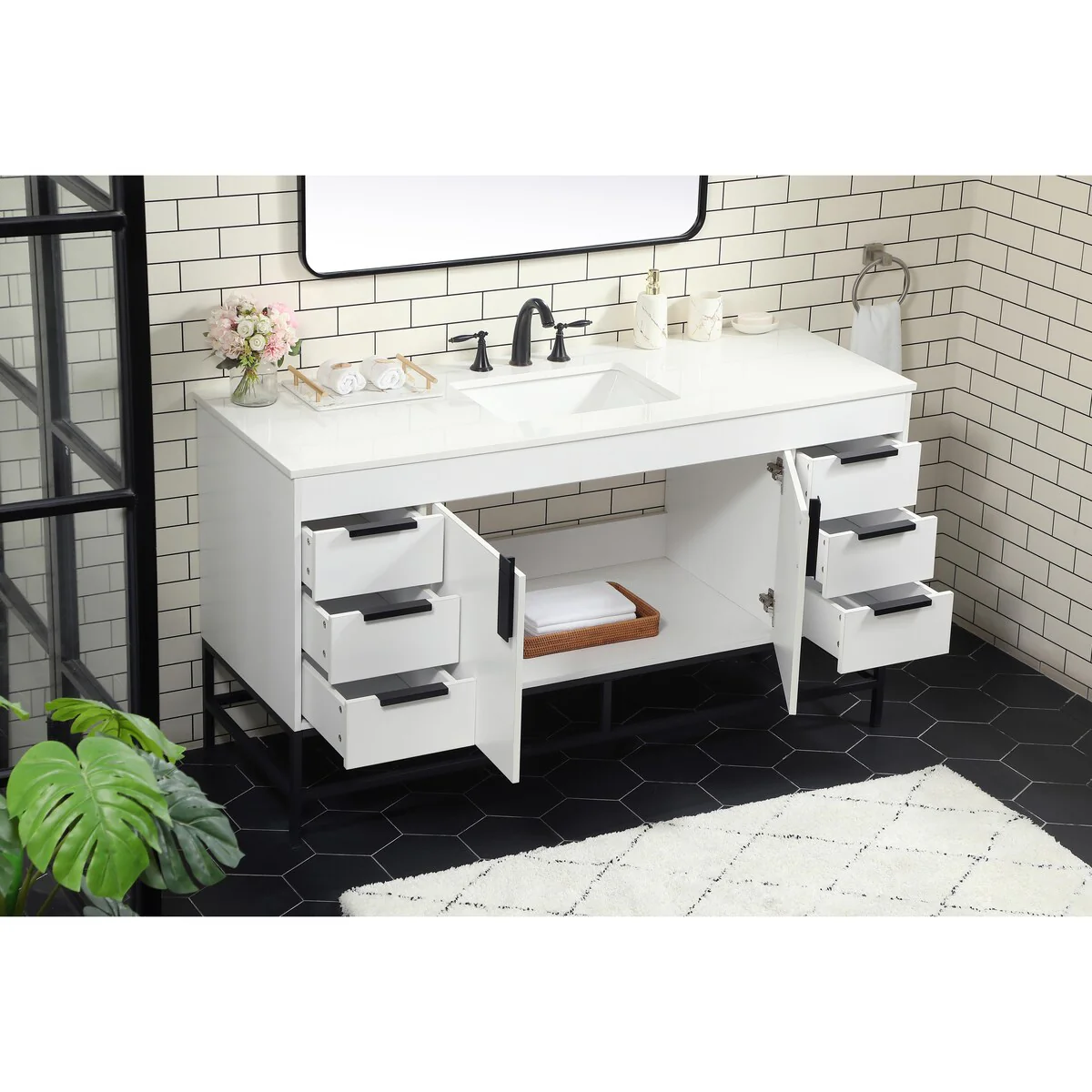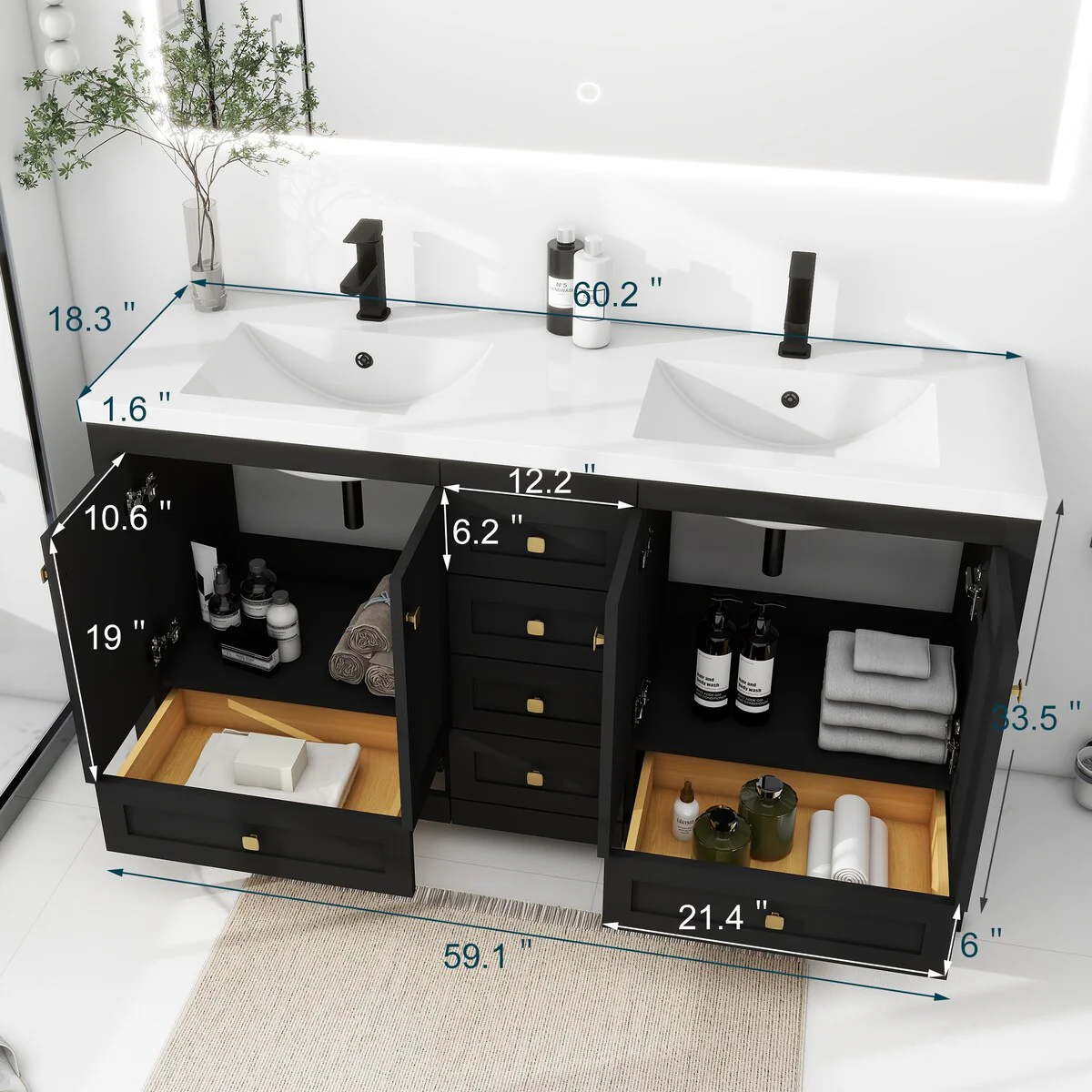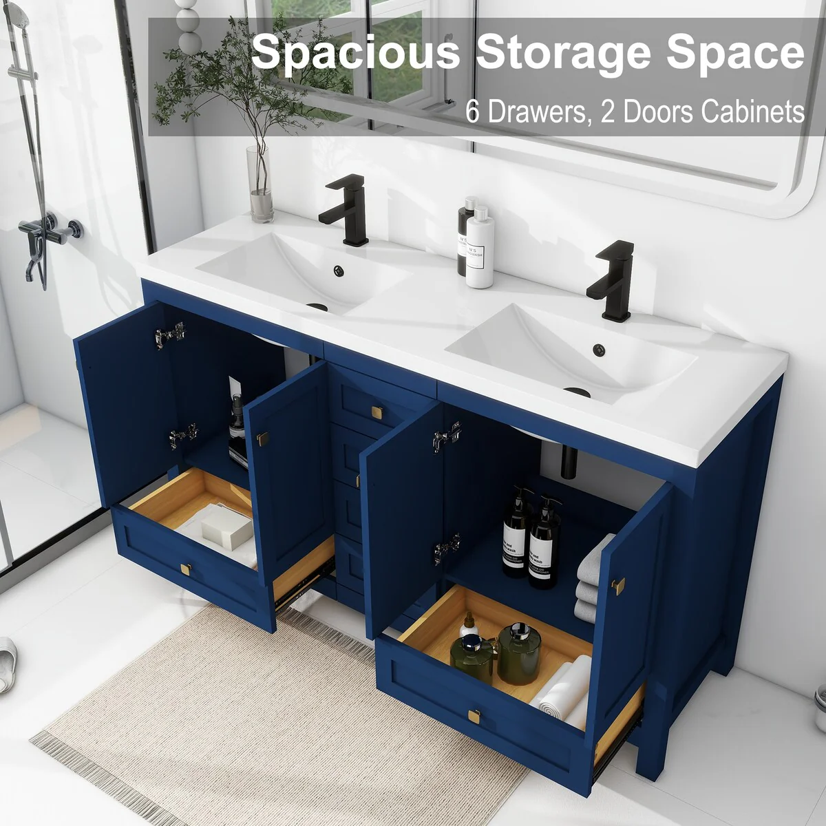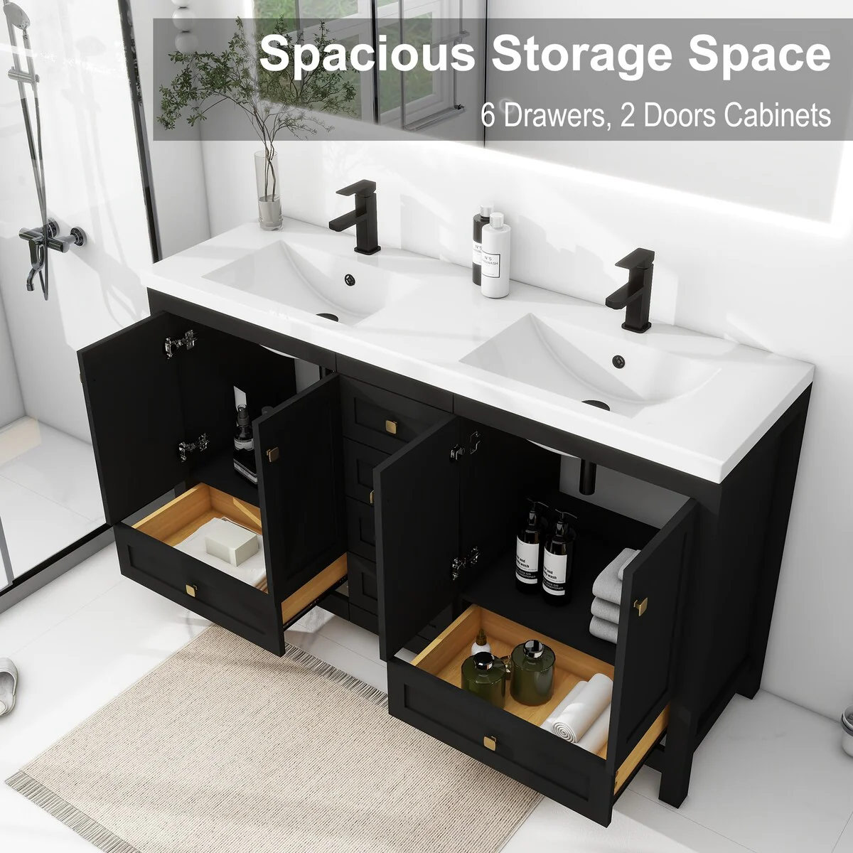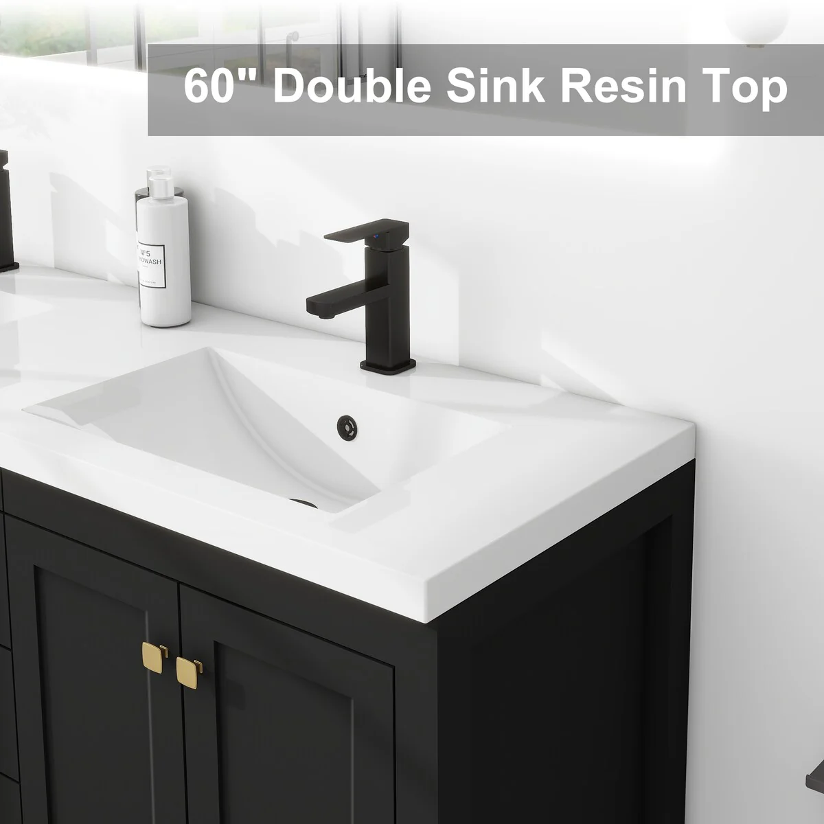 60" Bathroom Vanity Cabinet with Resin Drop in Sink Top Matte Black Faucet