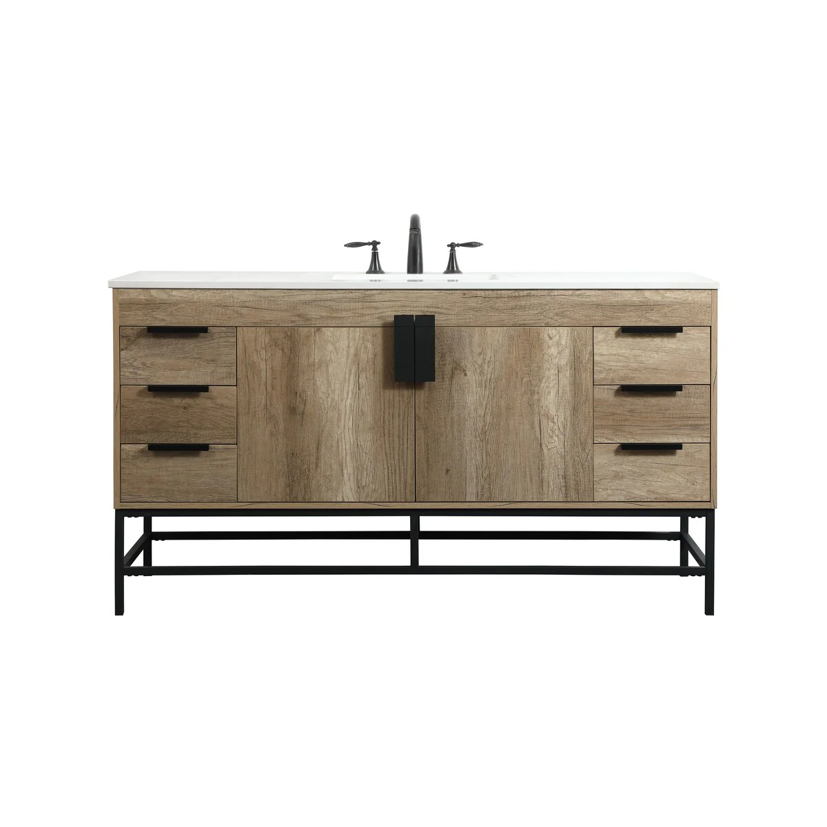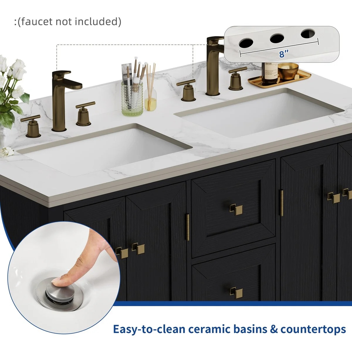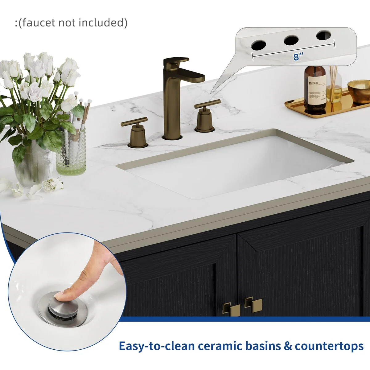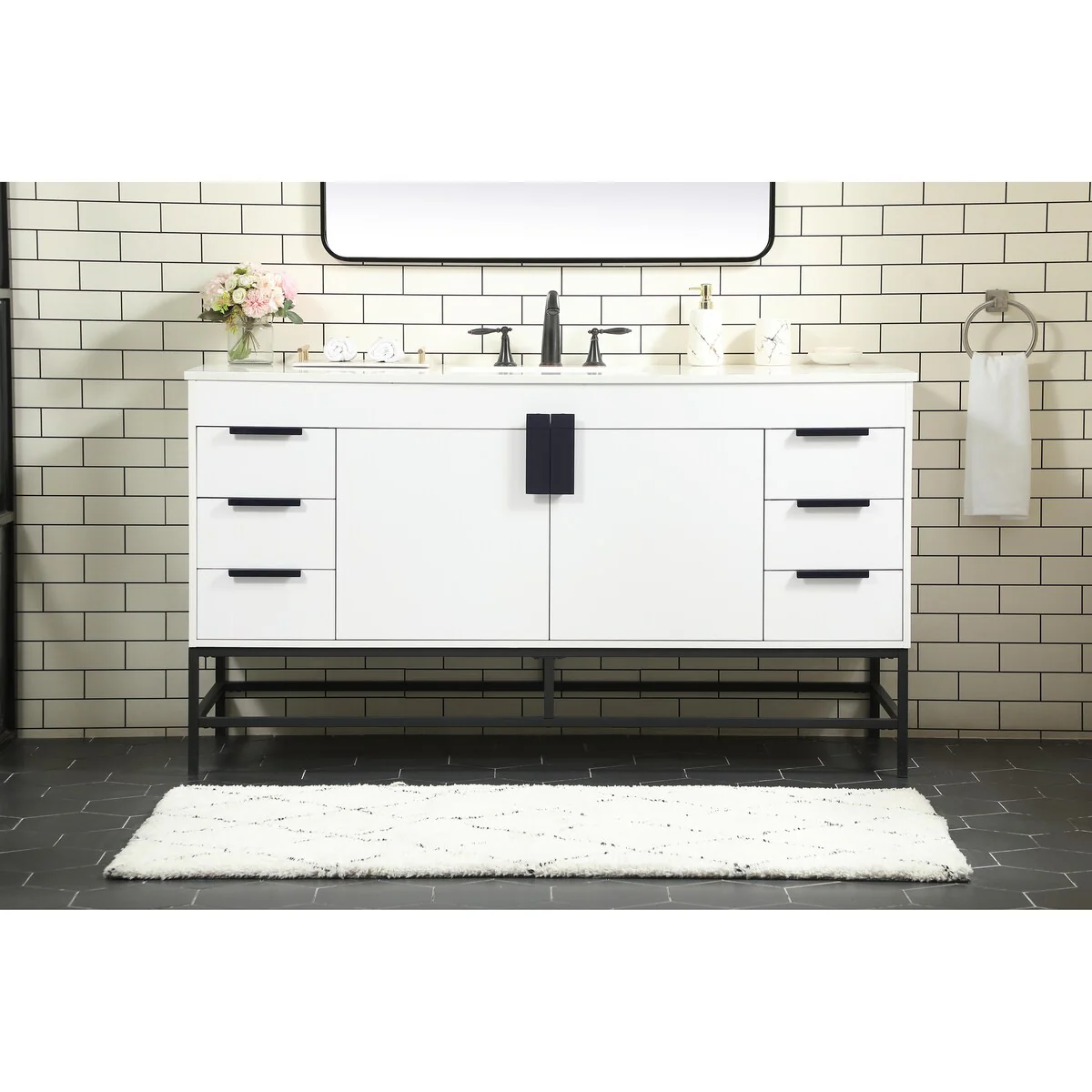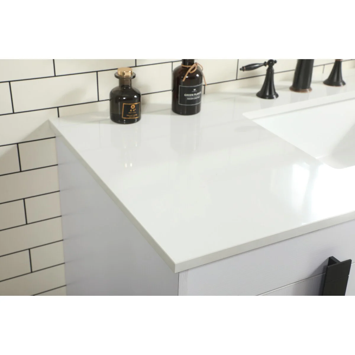 60" Bathroom Vanity Cabinet with Resin Drop in Sink Top Matte Black Faucet