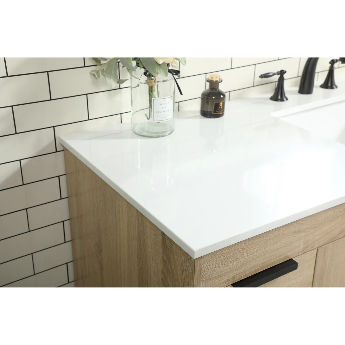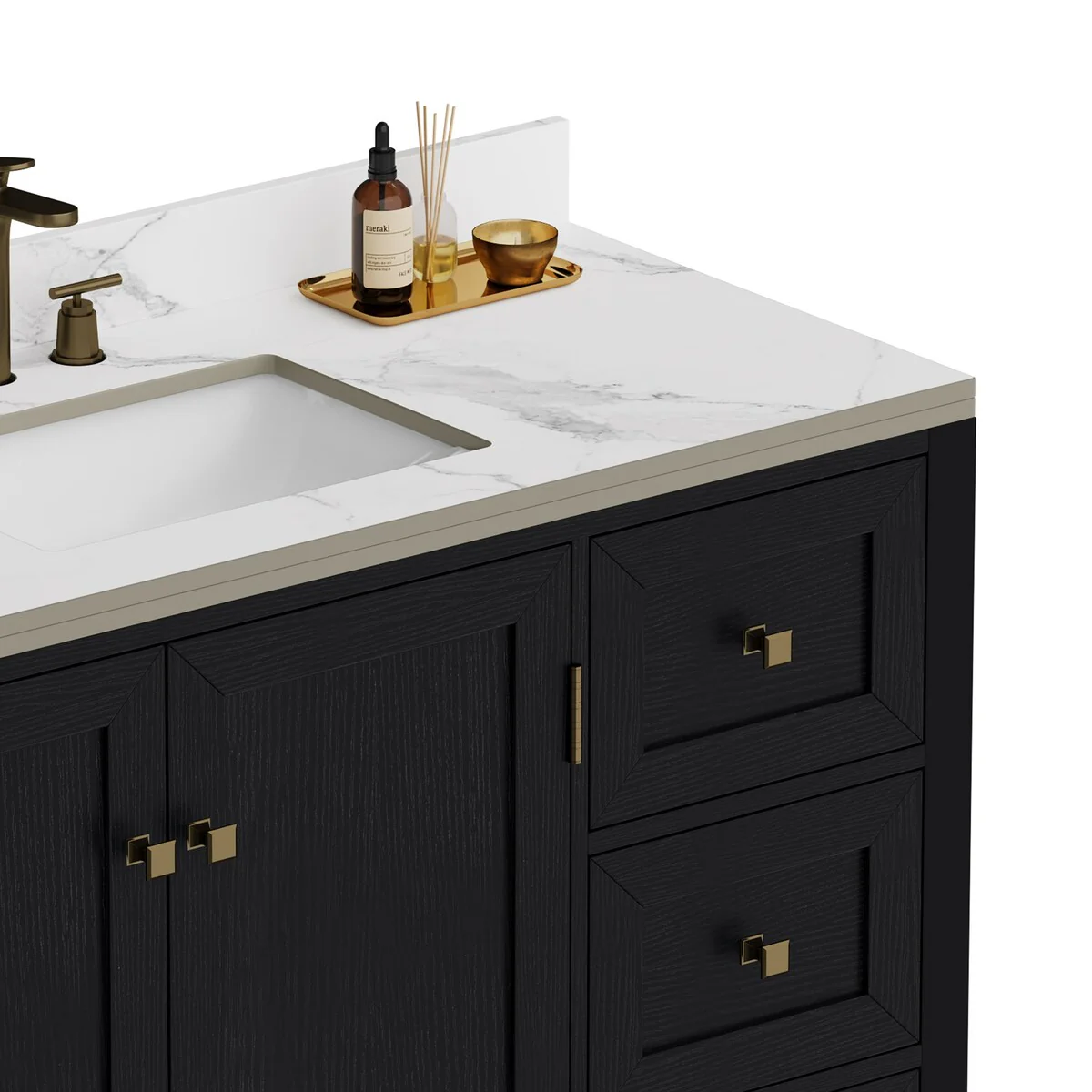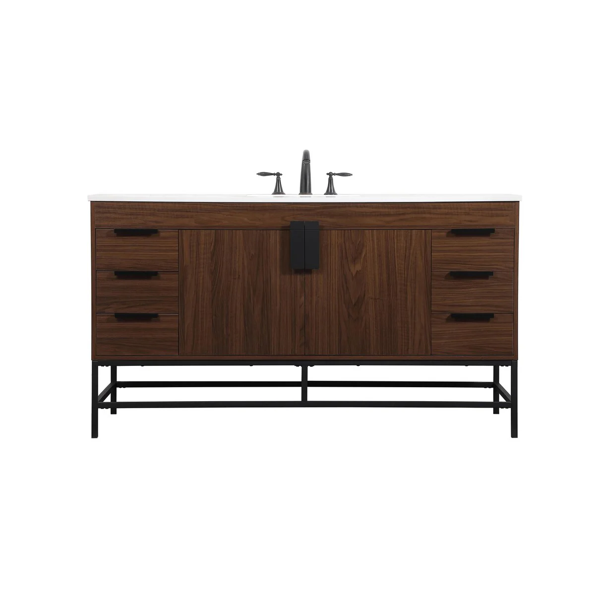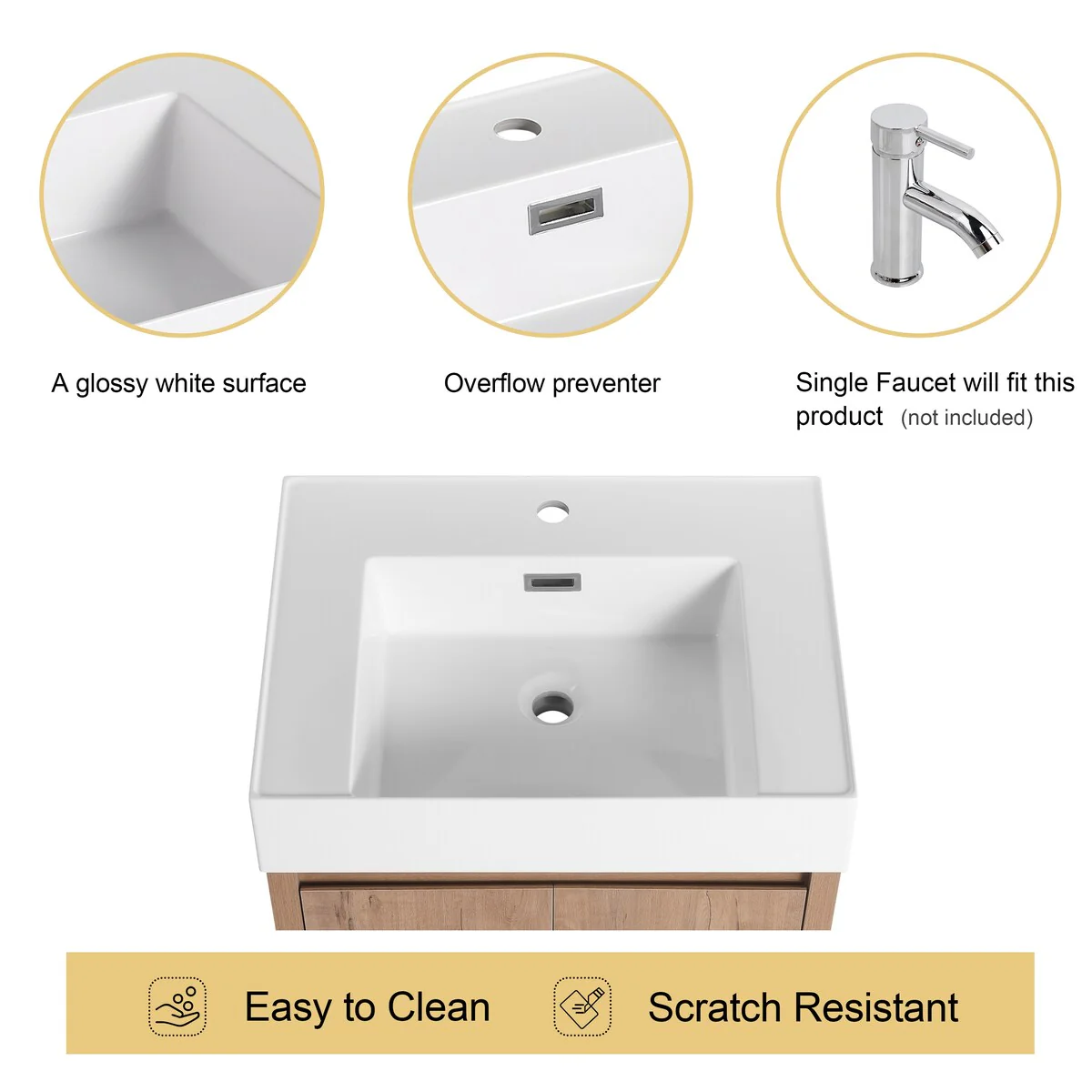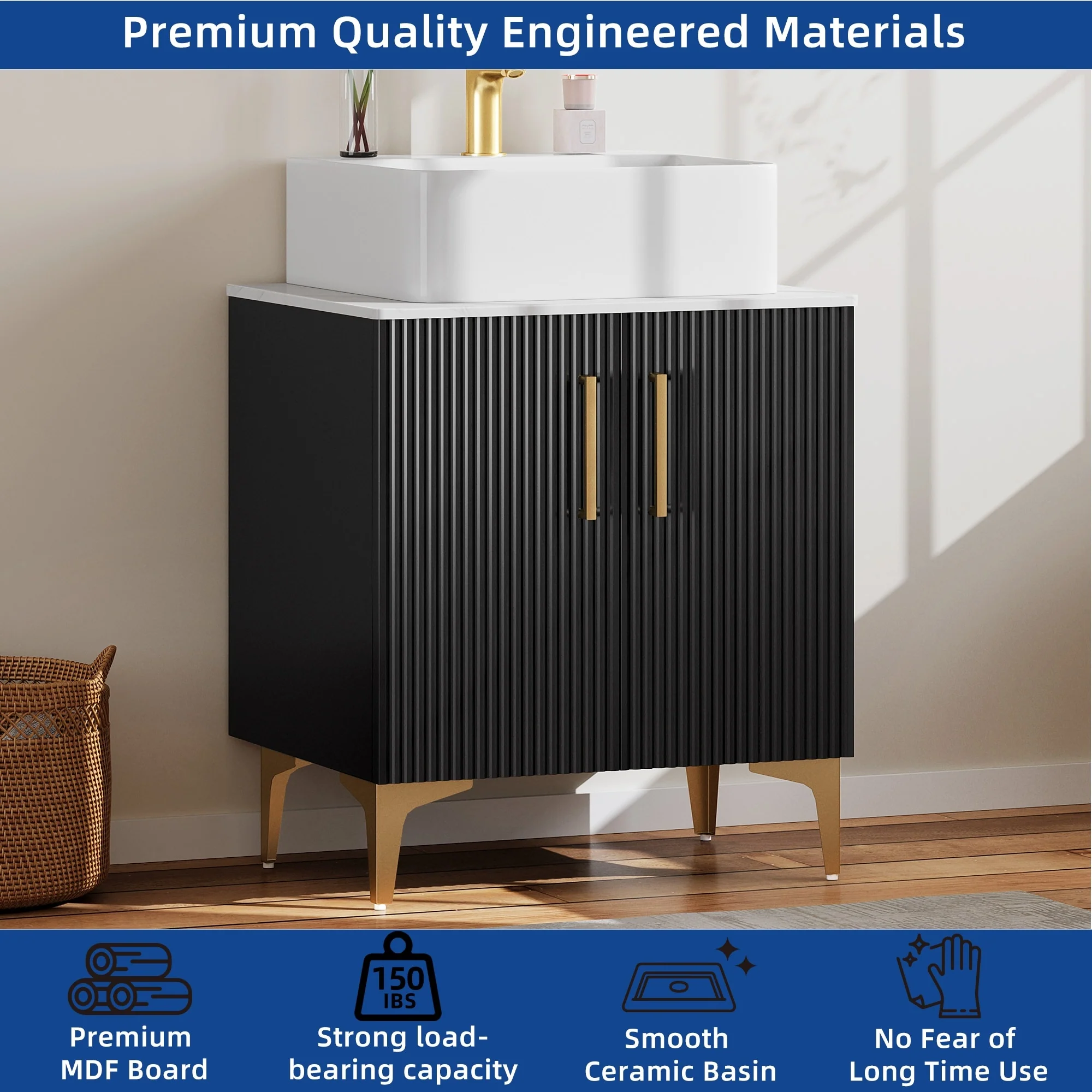 60" Bathroom Vanity Cabinet with Resin Drop in Sink Top Matte Black Faucet