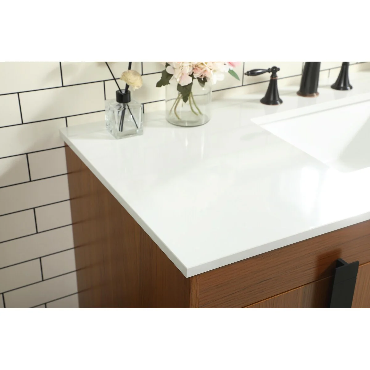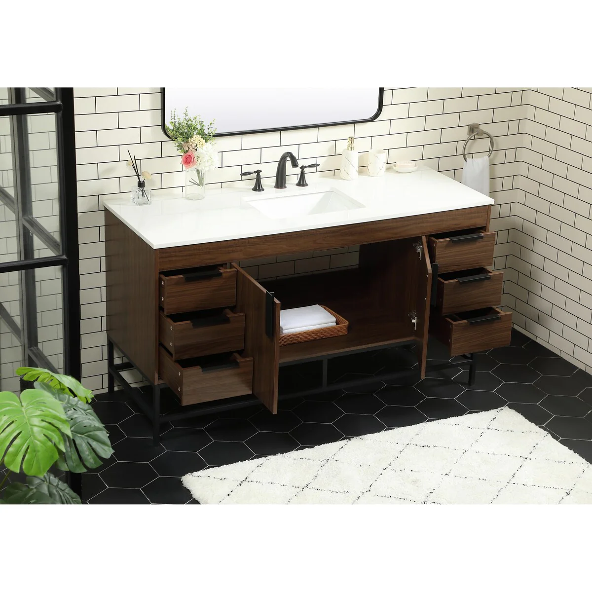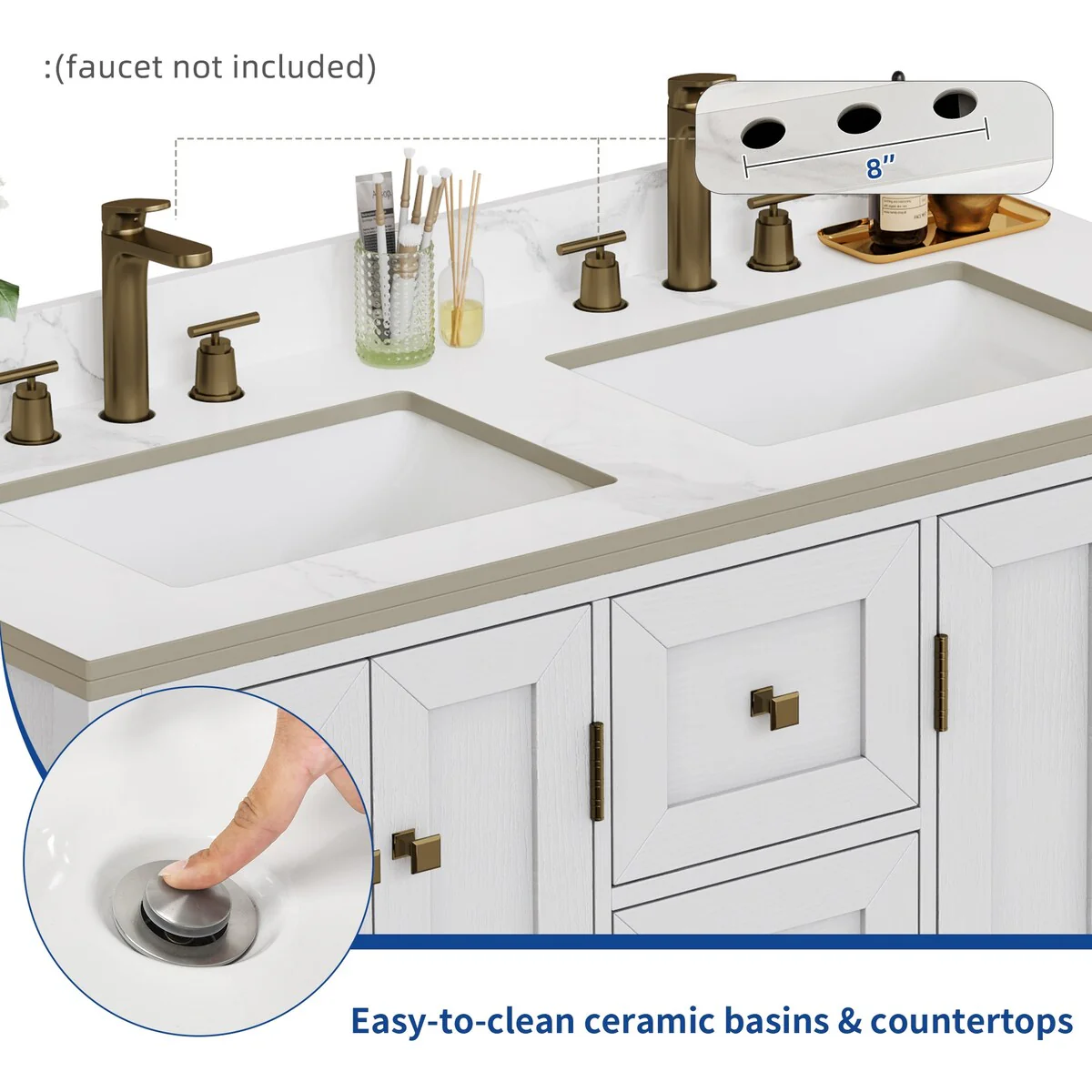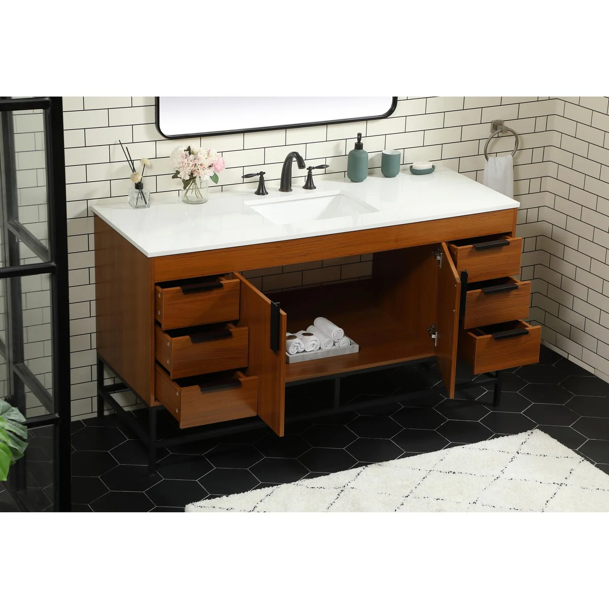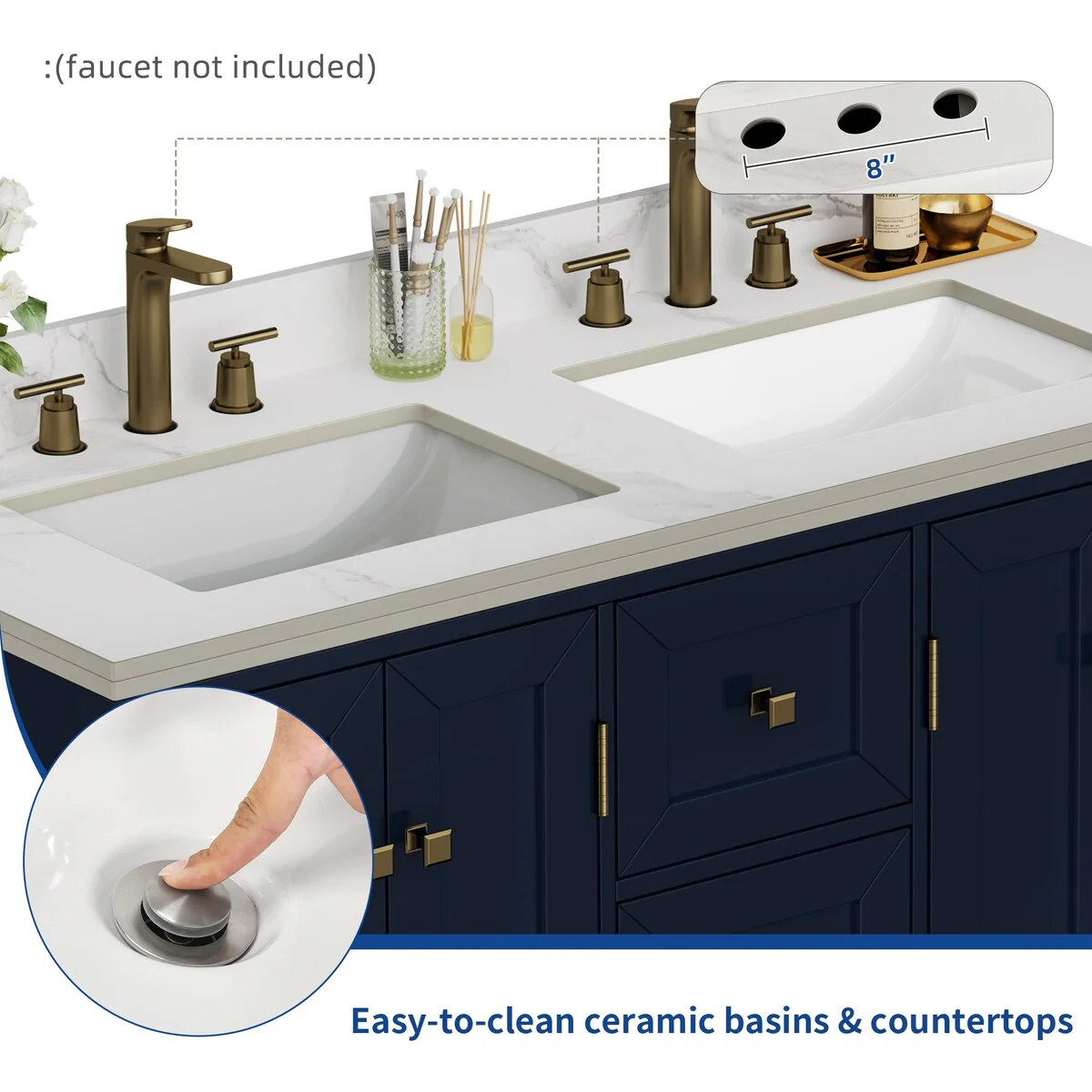 60" Bathroom Vanity Cabinet with Resin Drop in Sink Top Matte Black Faucet