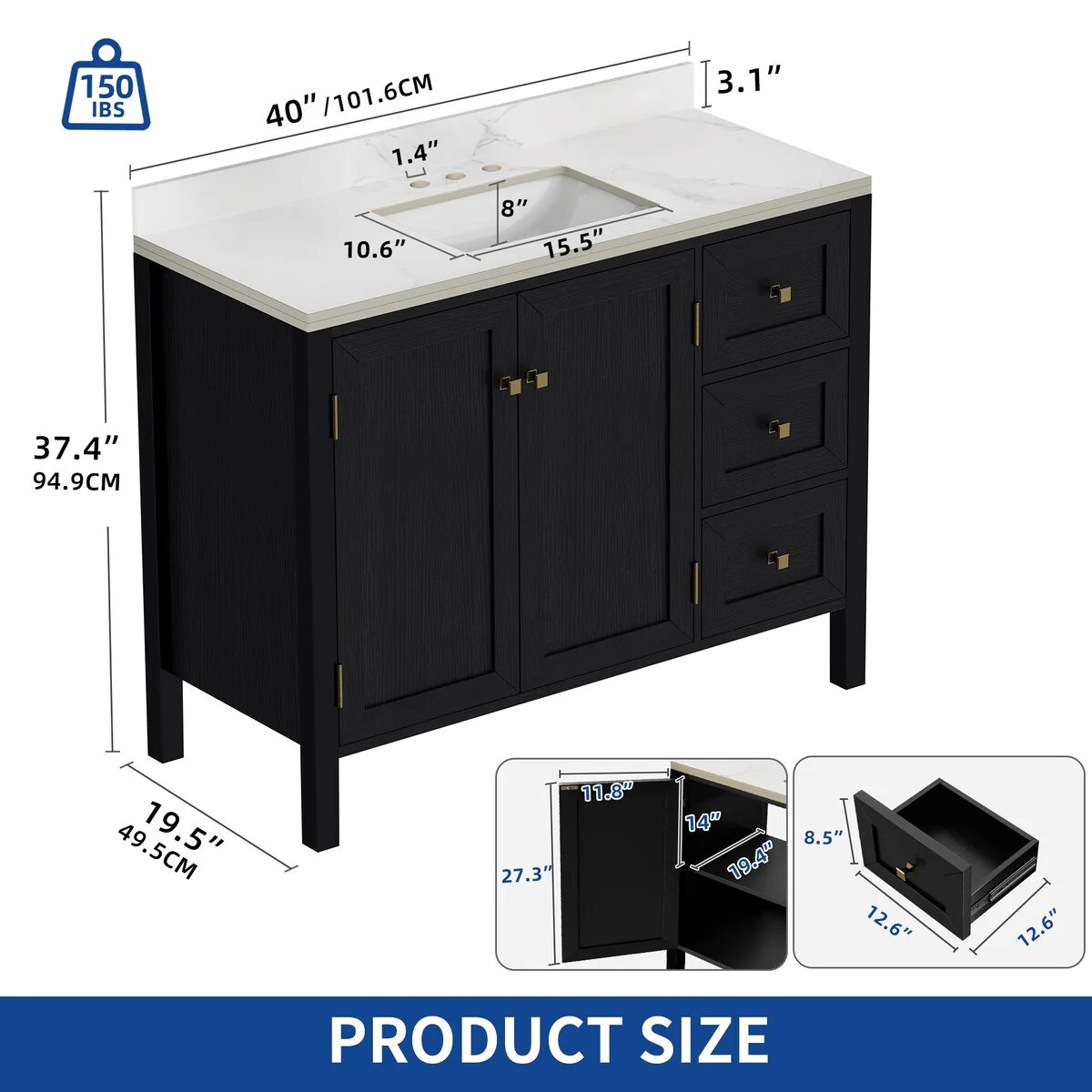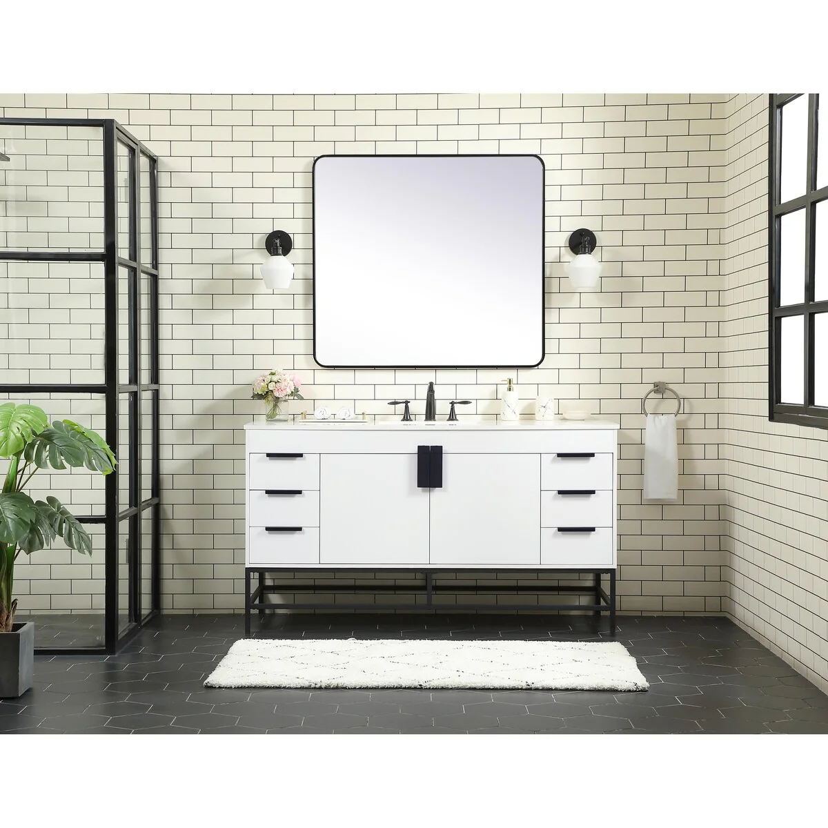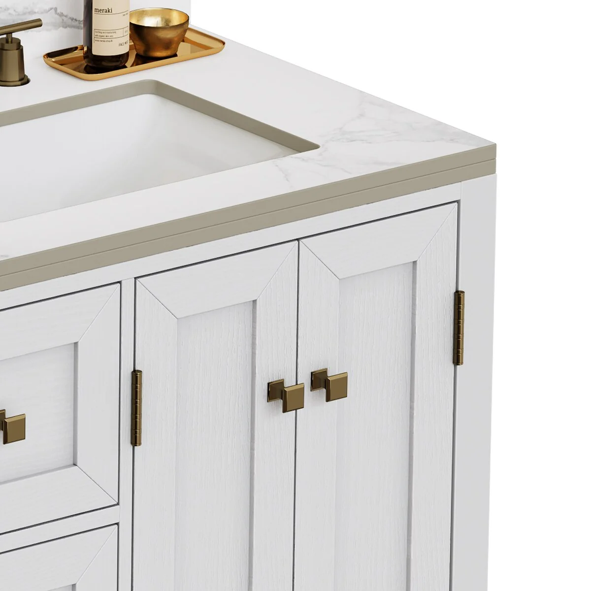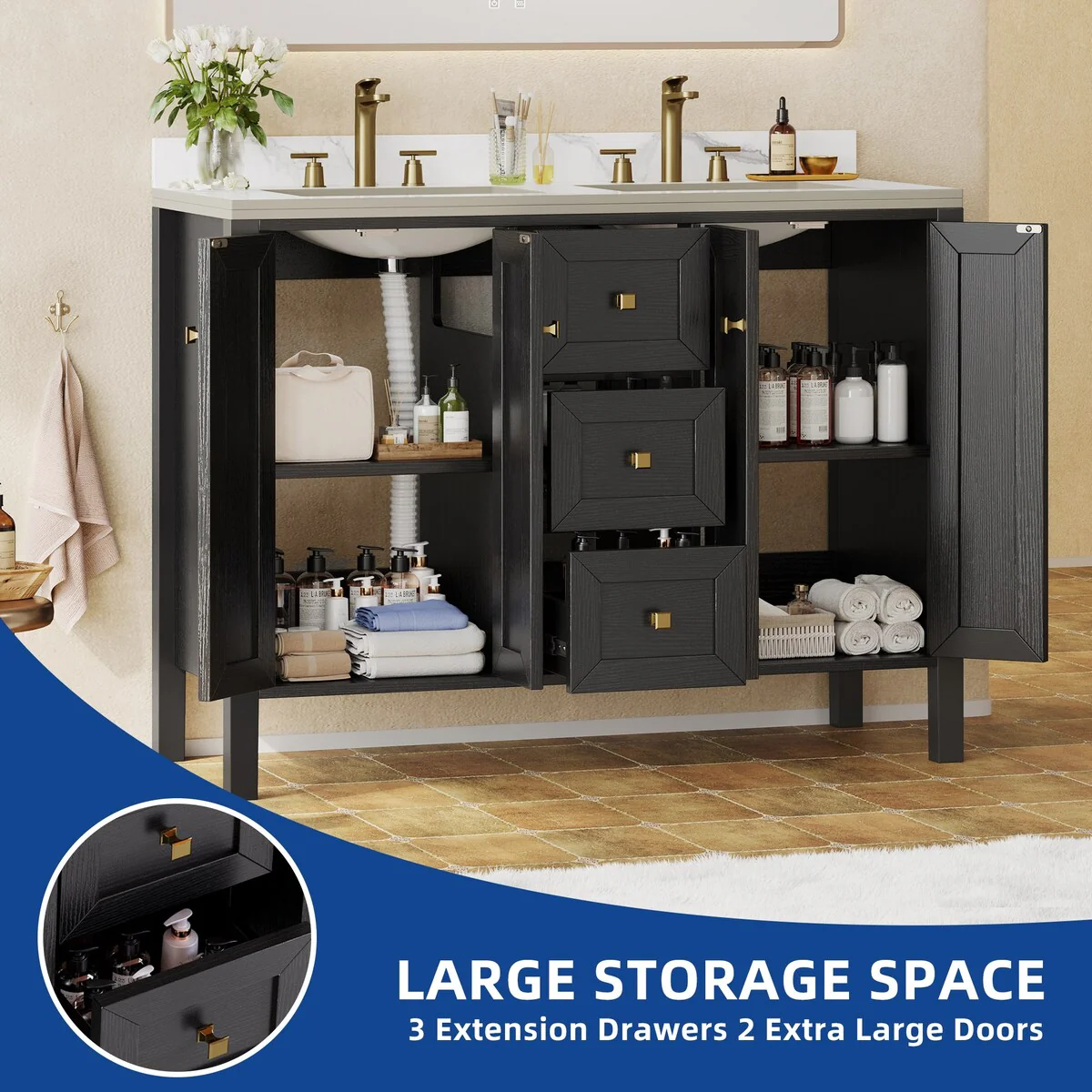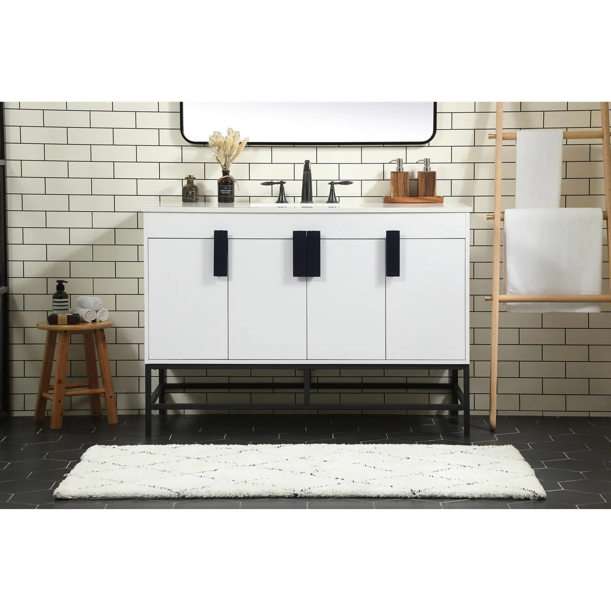 60" Bathroom Vanity Cabinet with Resin Drop in Sink Top Matte Black Faucet
