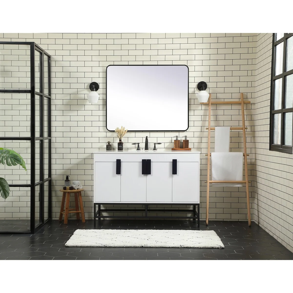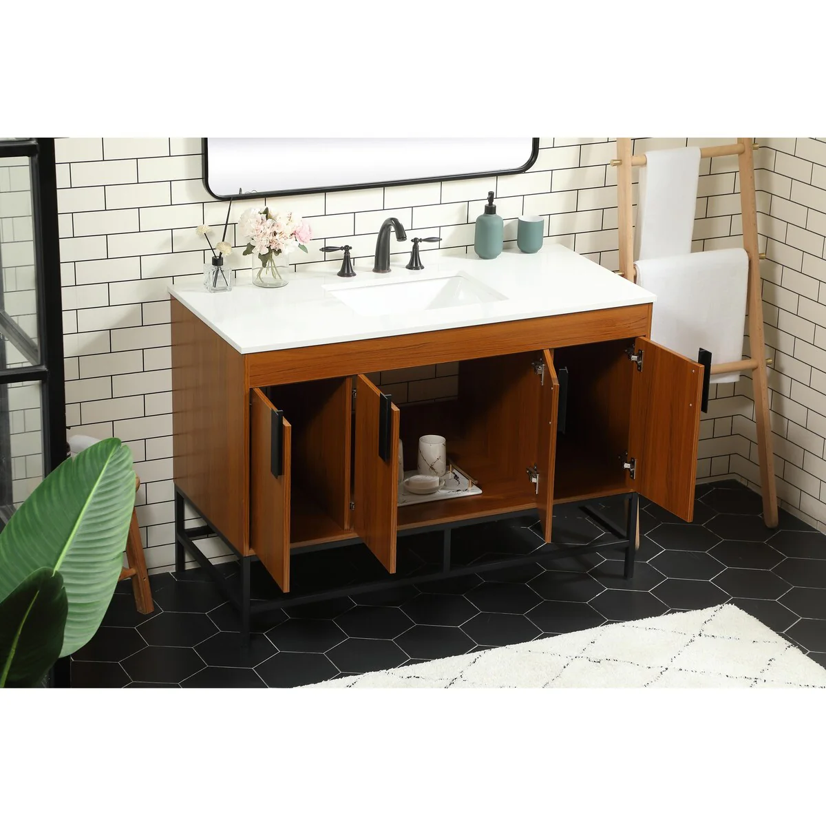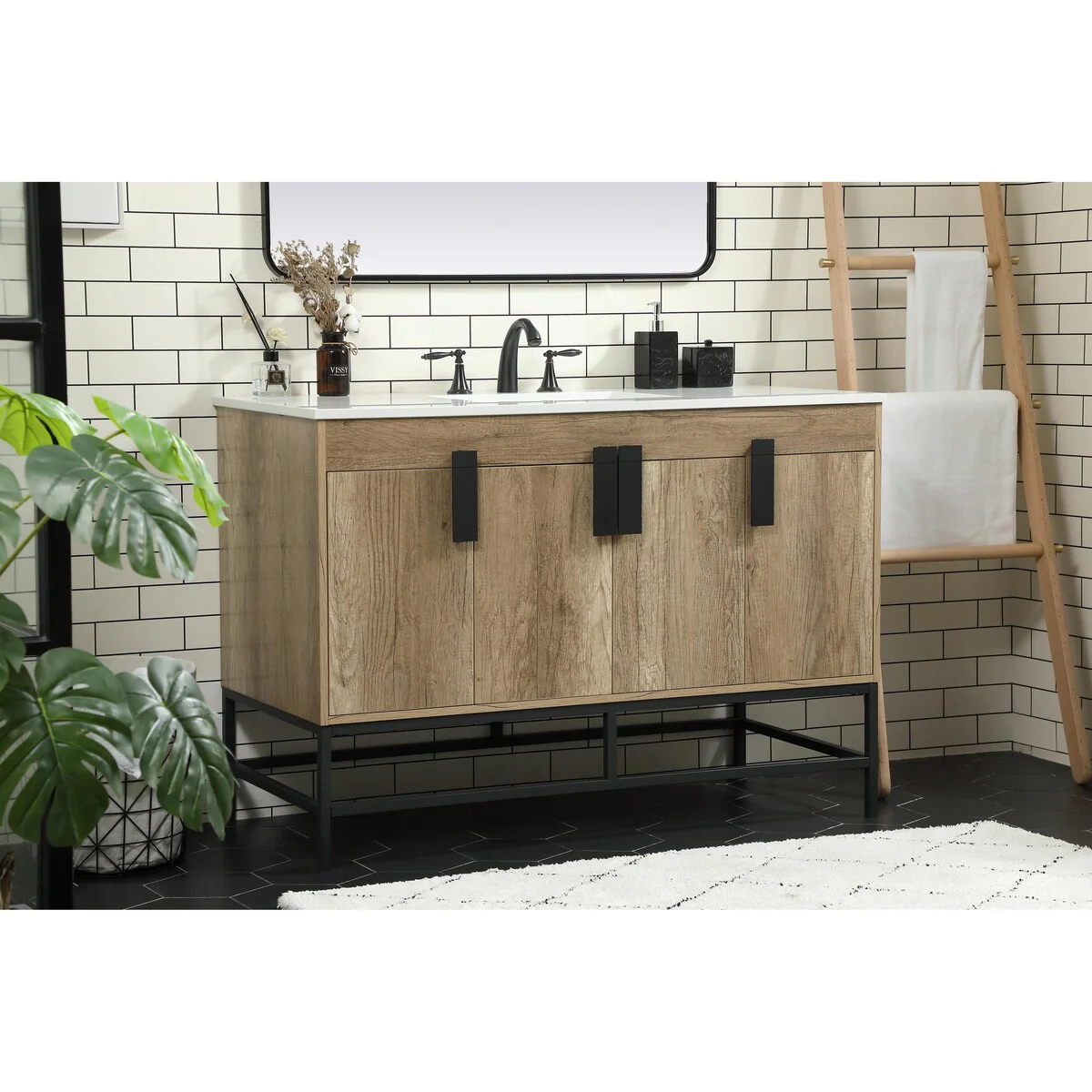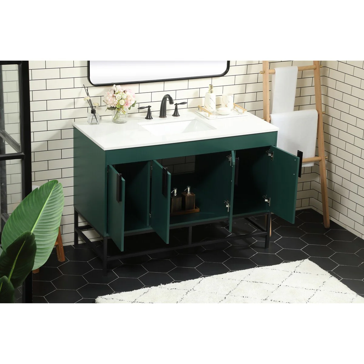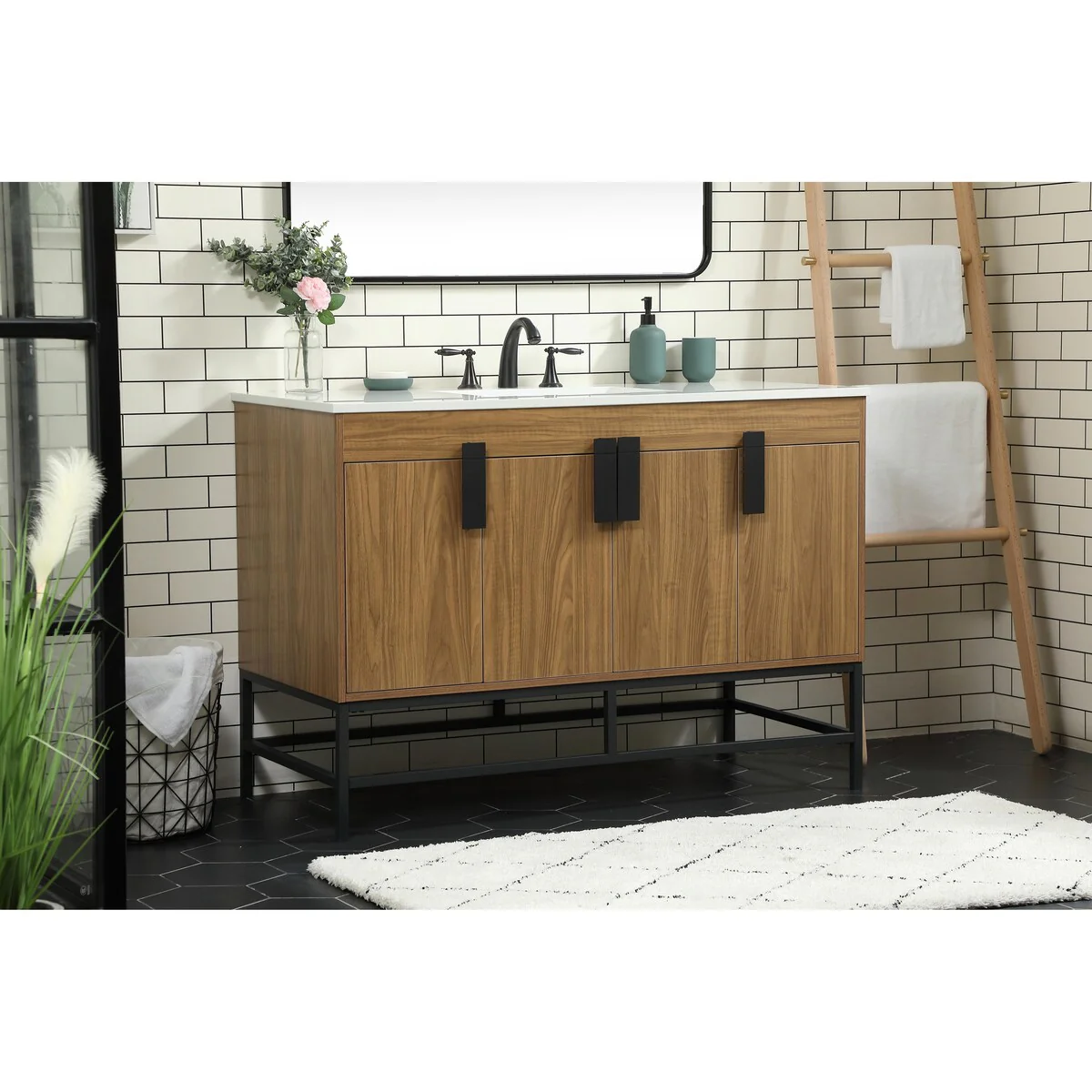 60" Bathroom Vanity Cabinet with Resin Drop in Sink Top Matte Black Faucet