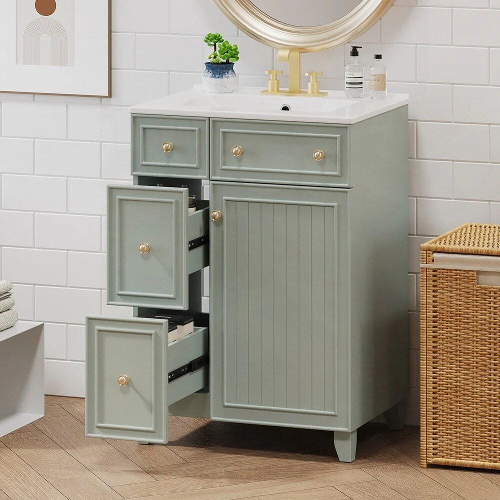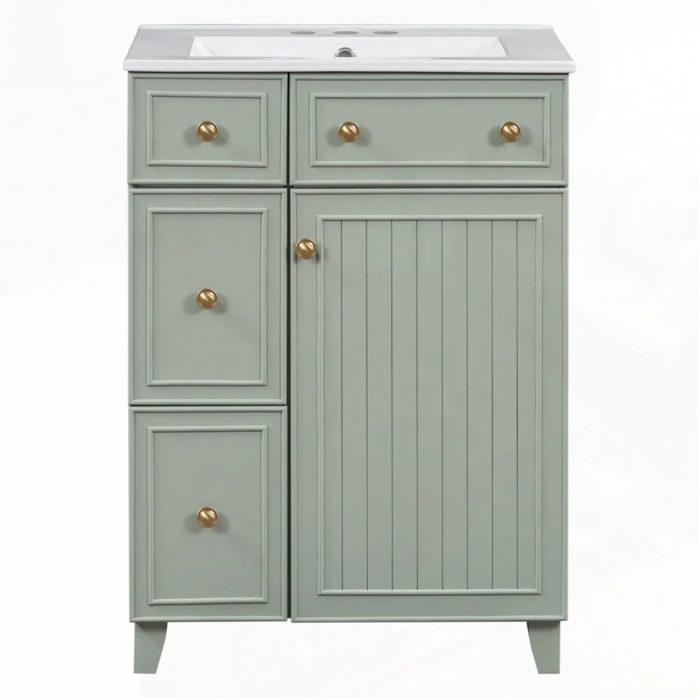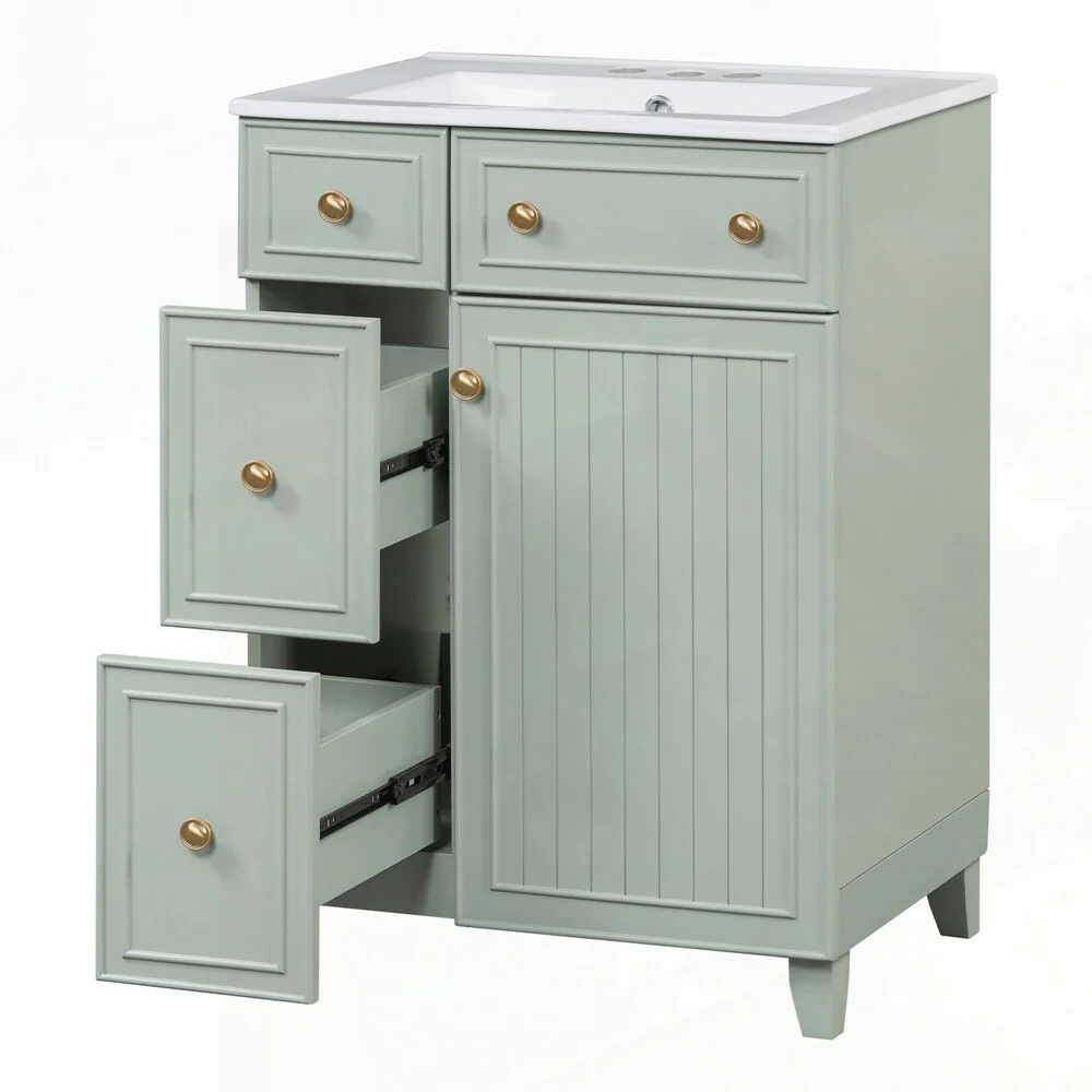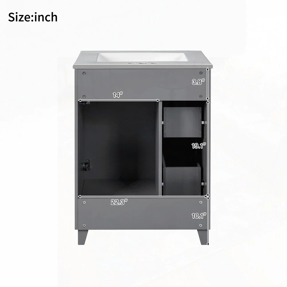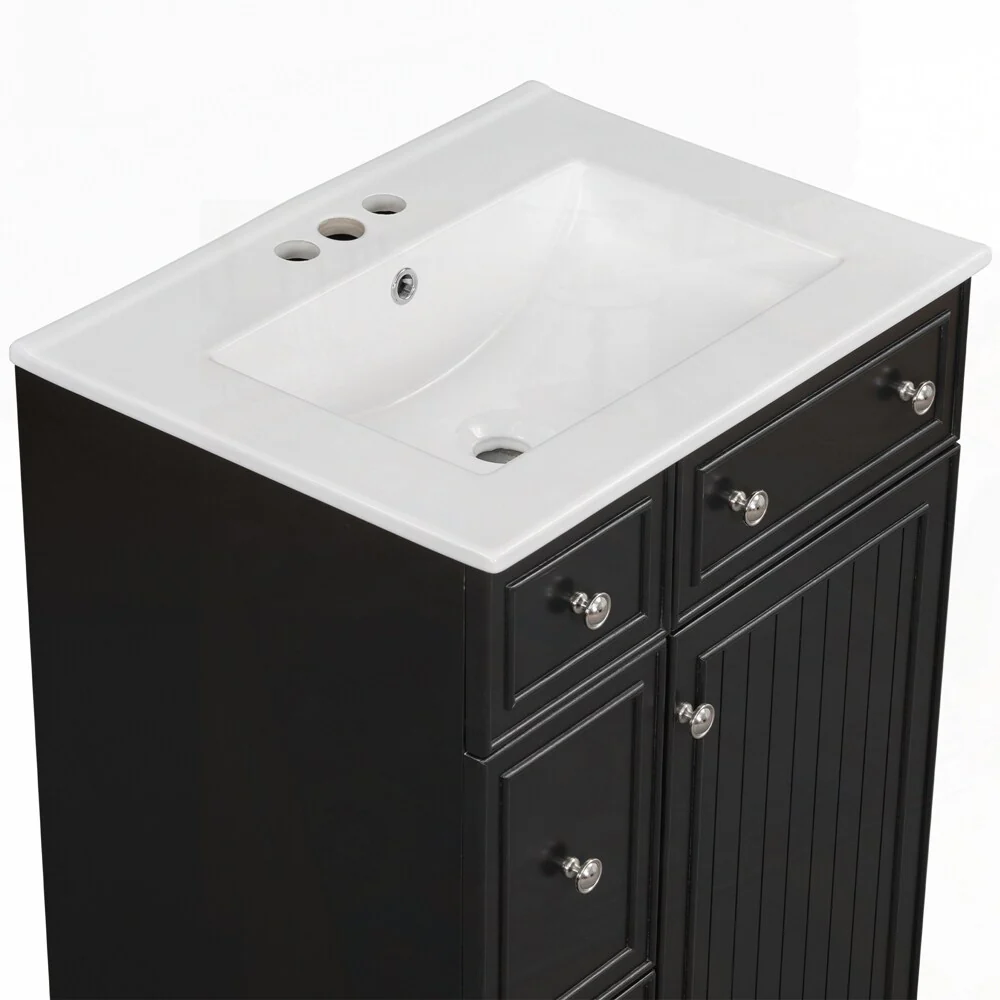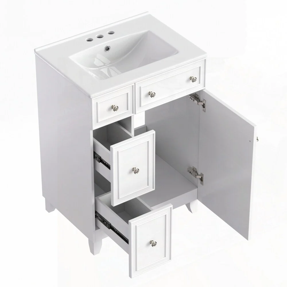 24'' Bathroom Vanity with Top Sink: Modern 2-Tier Storage Cabinet, Single Sink, Large Shelves