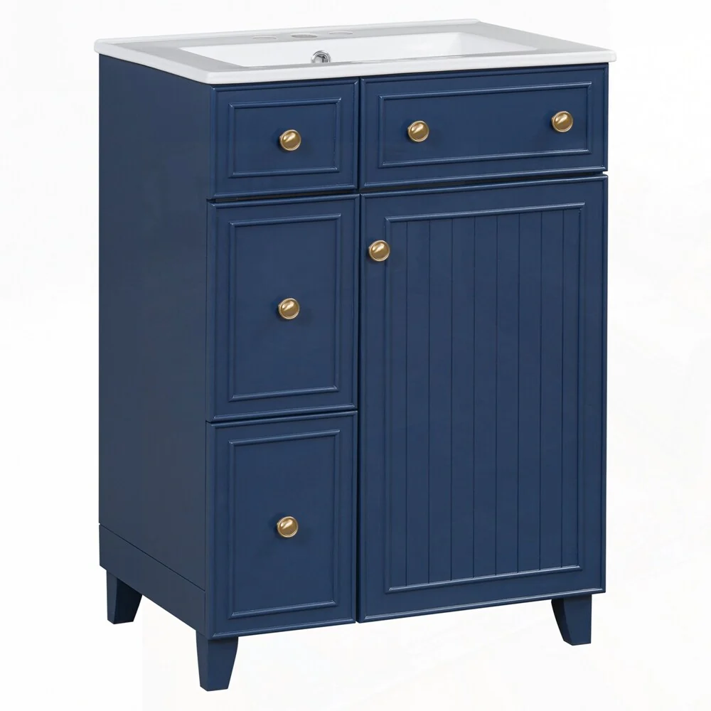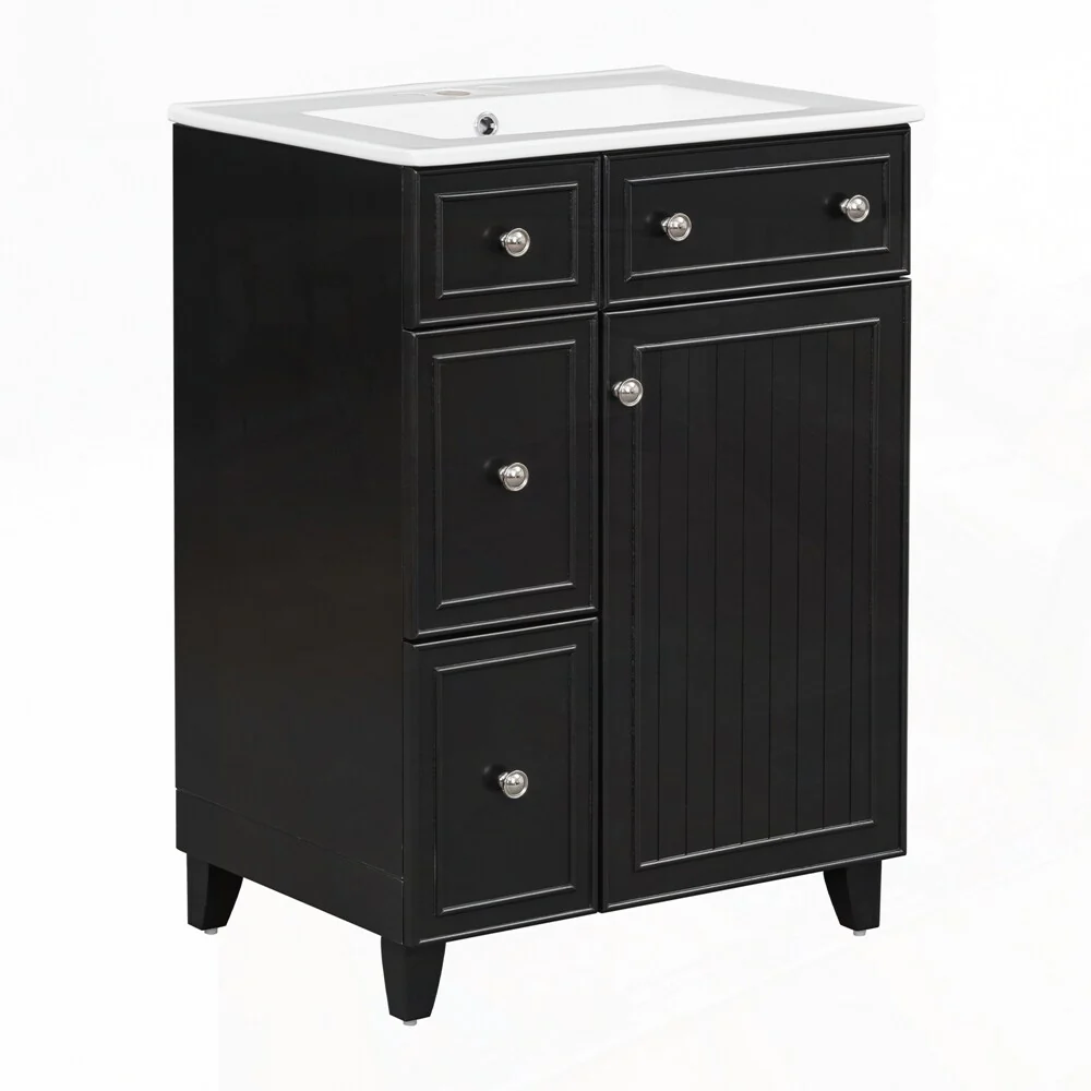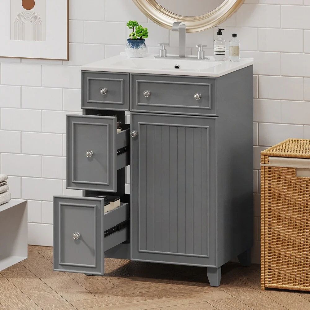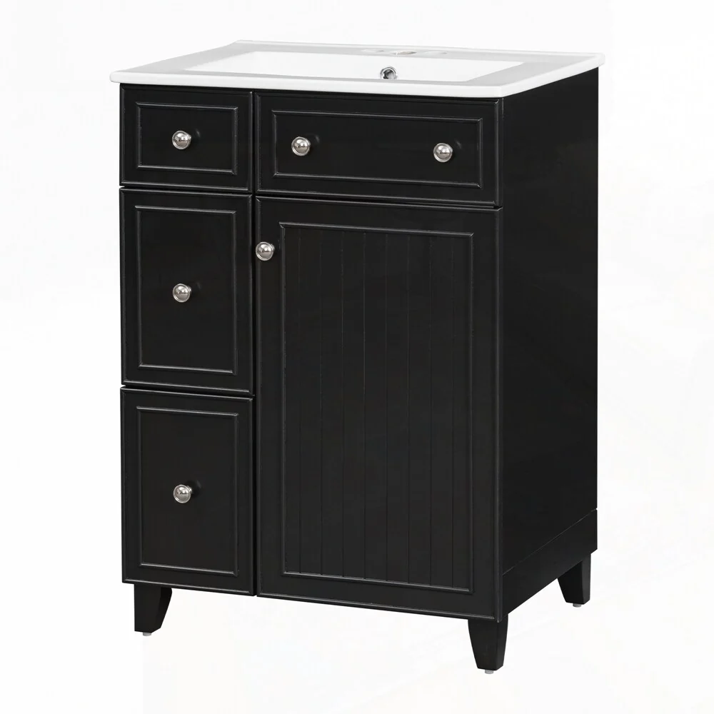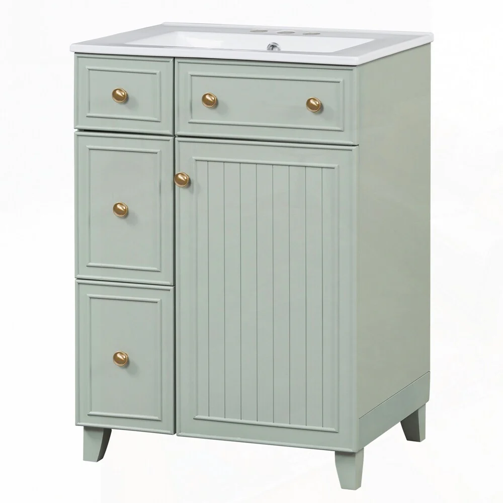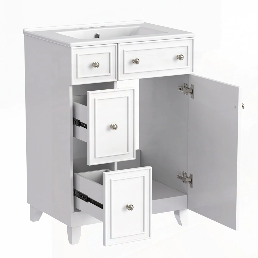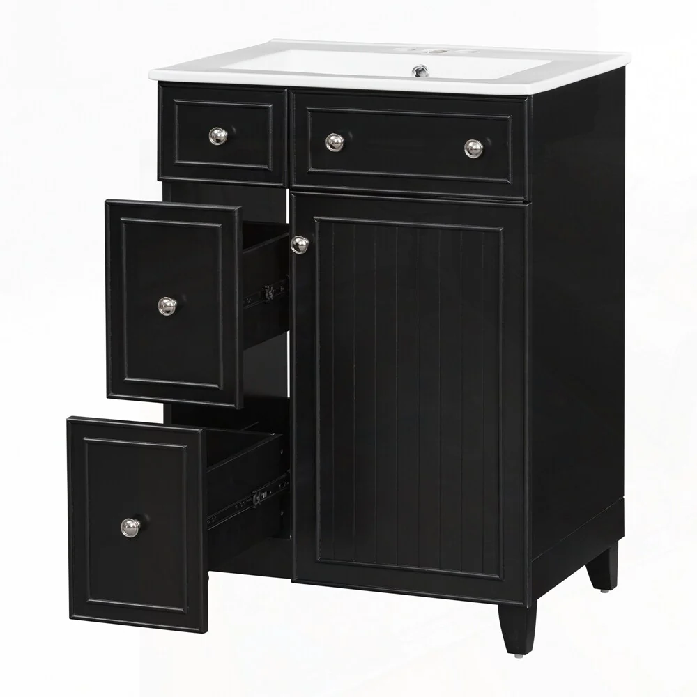 24'' Bathroom Vanity with Top Sink: Modern 2-Tier Storage Cabinet, Single Sink, Large Shelves