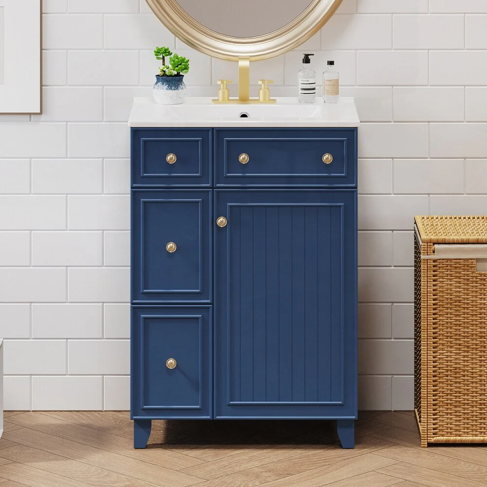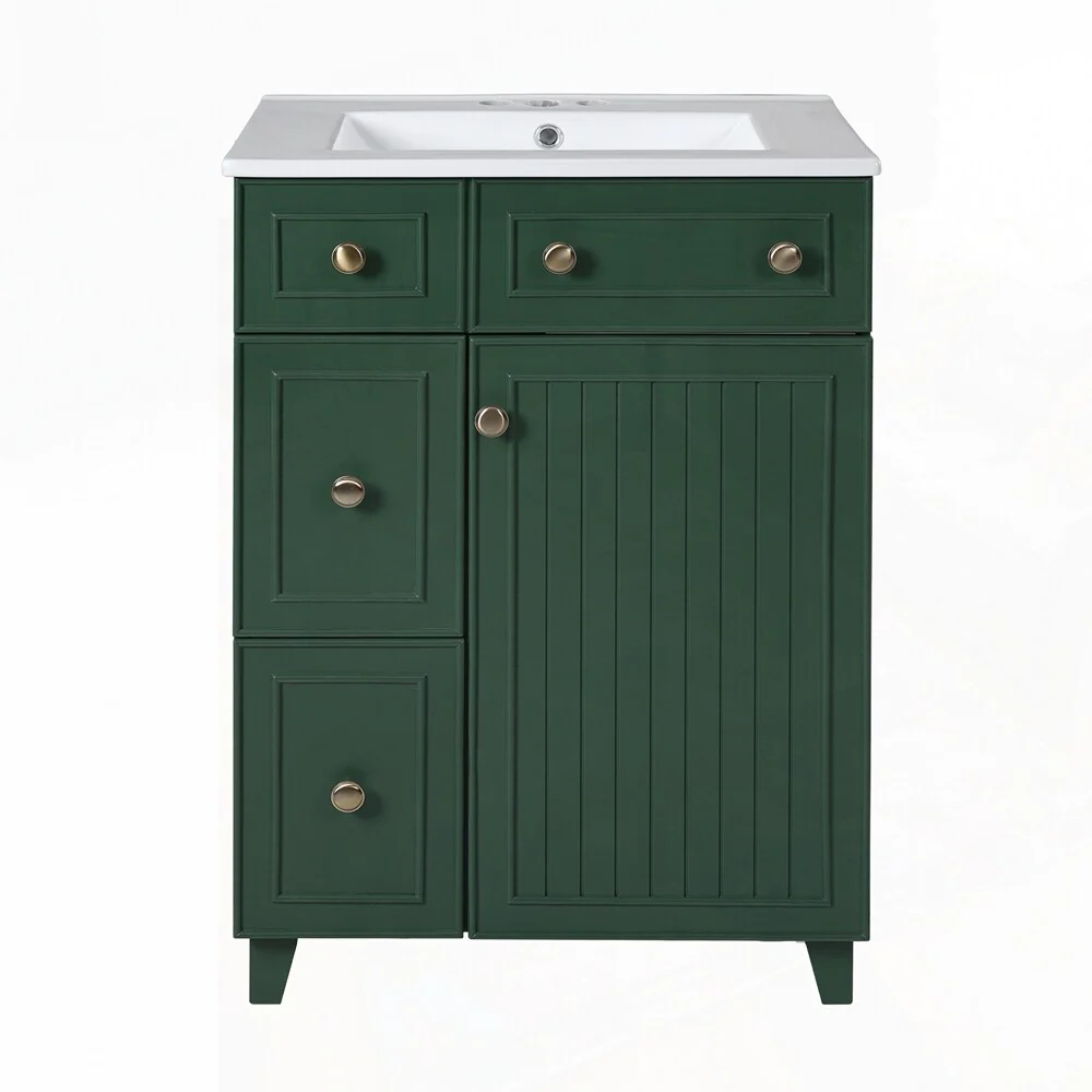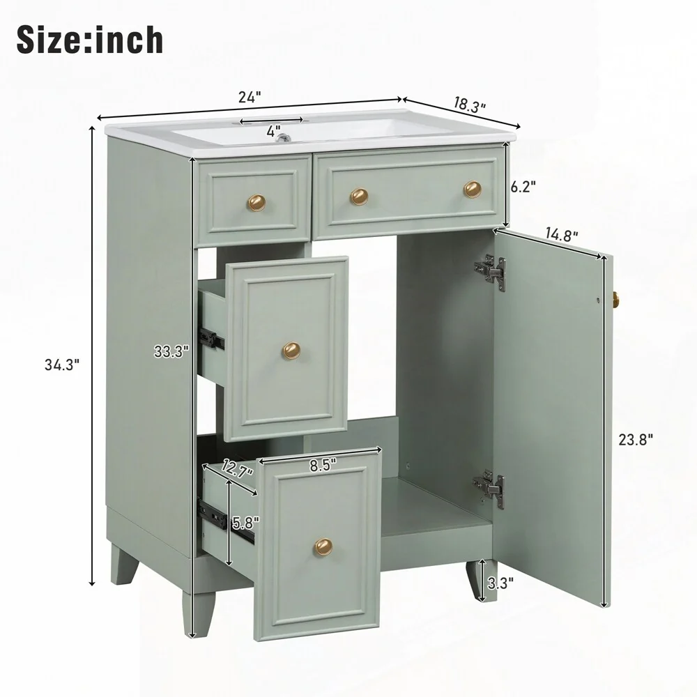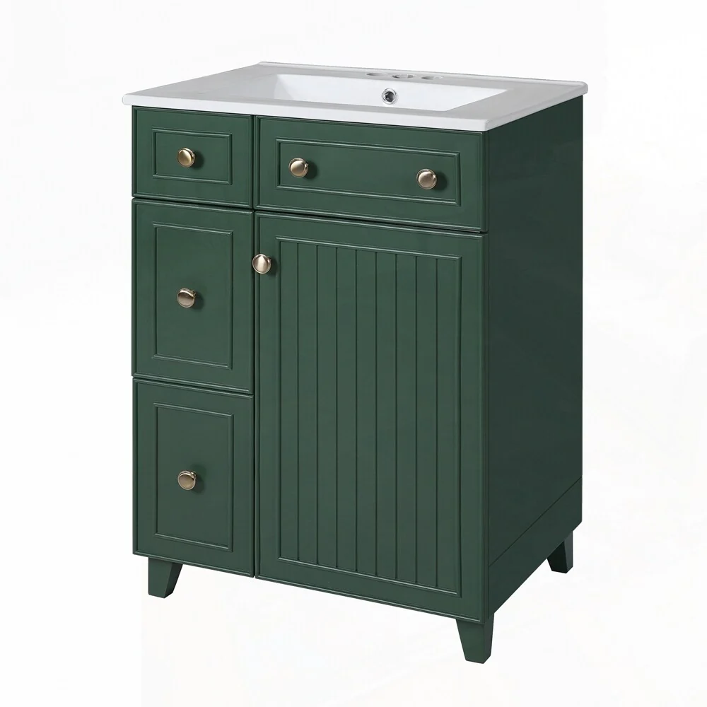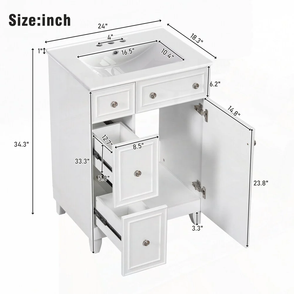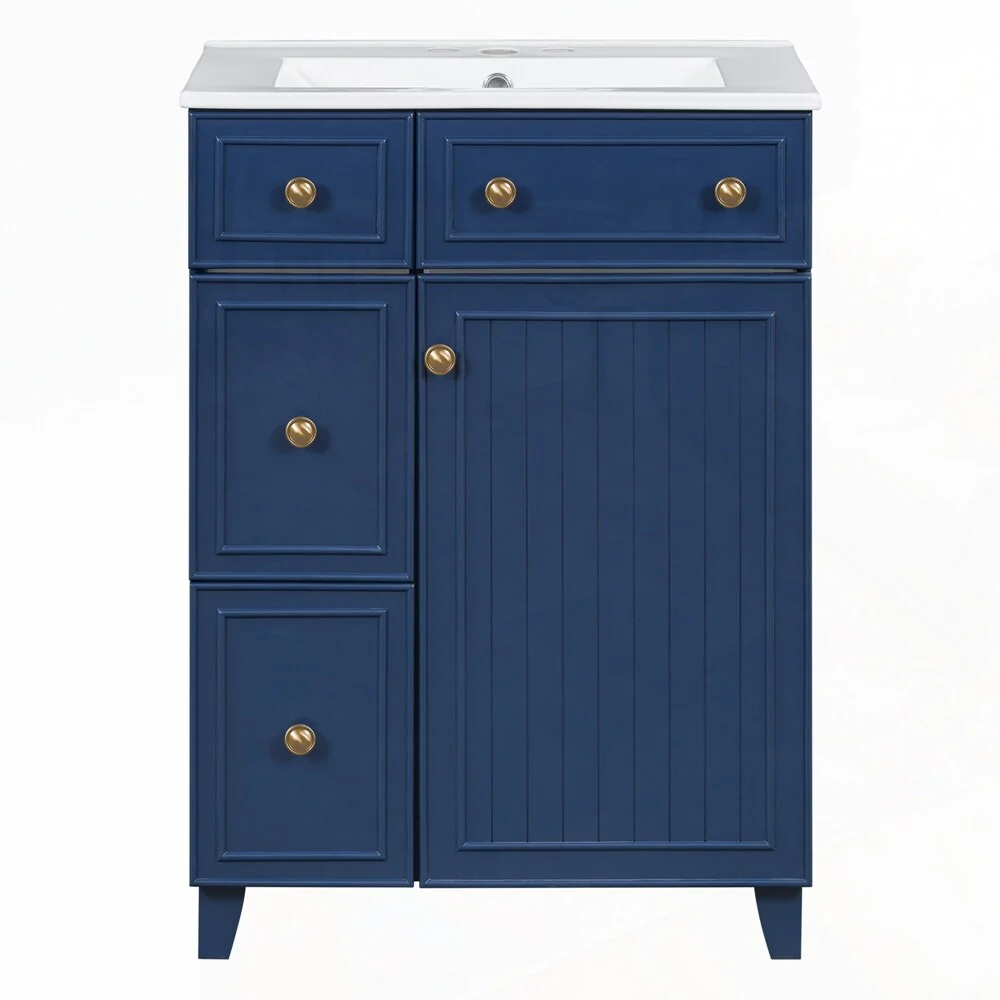 24'' Bathroom Vanity with Top Sink: Modern 2-Tier Storage Cabinet, Single Sink, Large Shelves