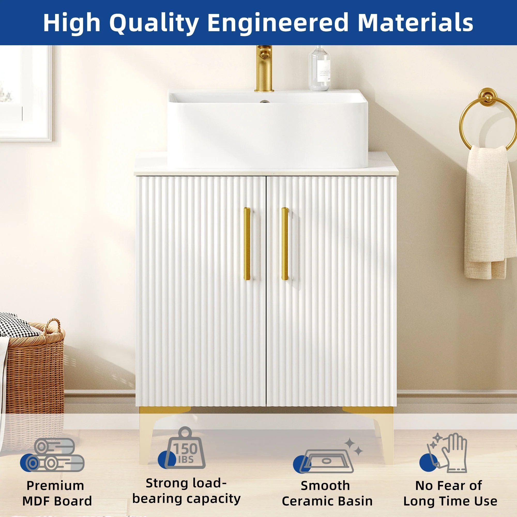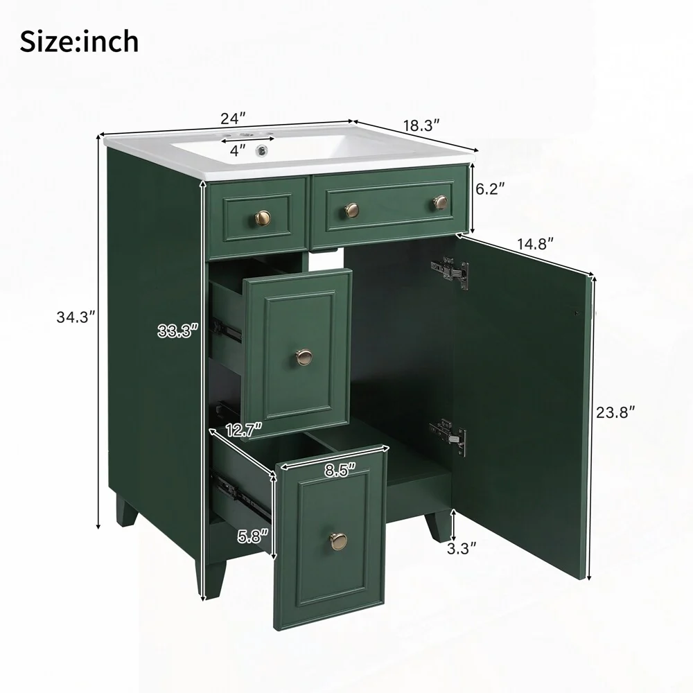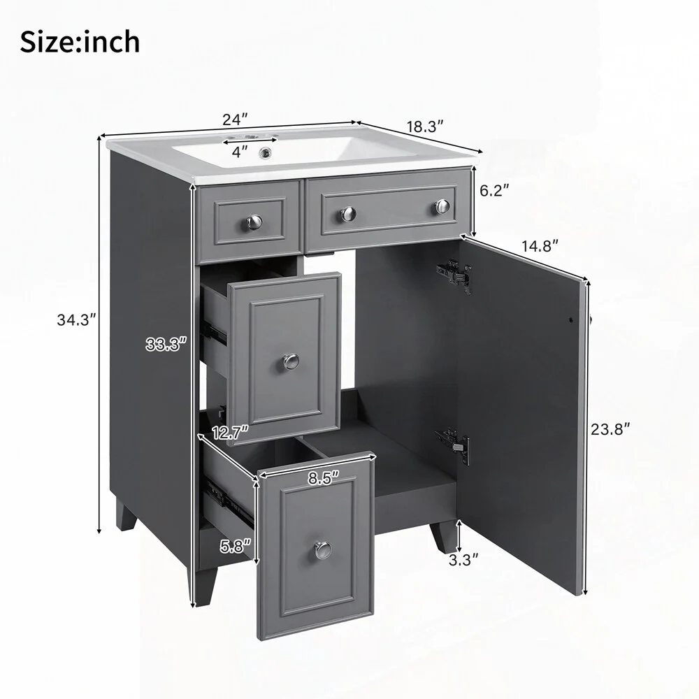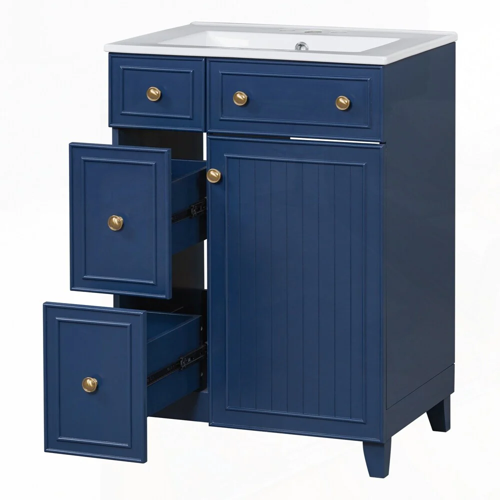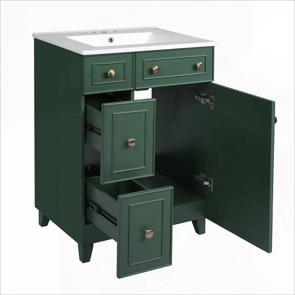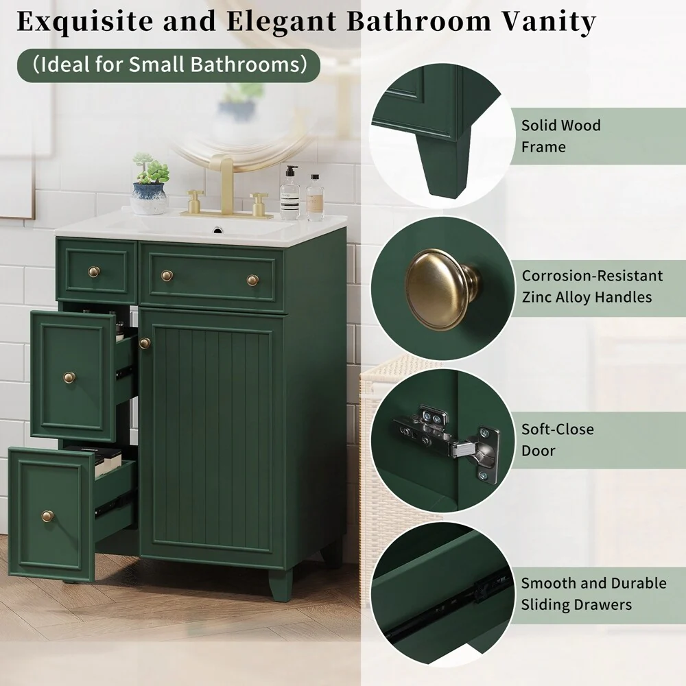 24'' Bathroom Vanity with Top Sink: Modern 2-Tier Storage Cabinet, Single Sink, Large Shelves