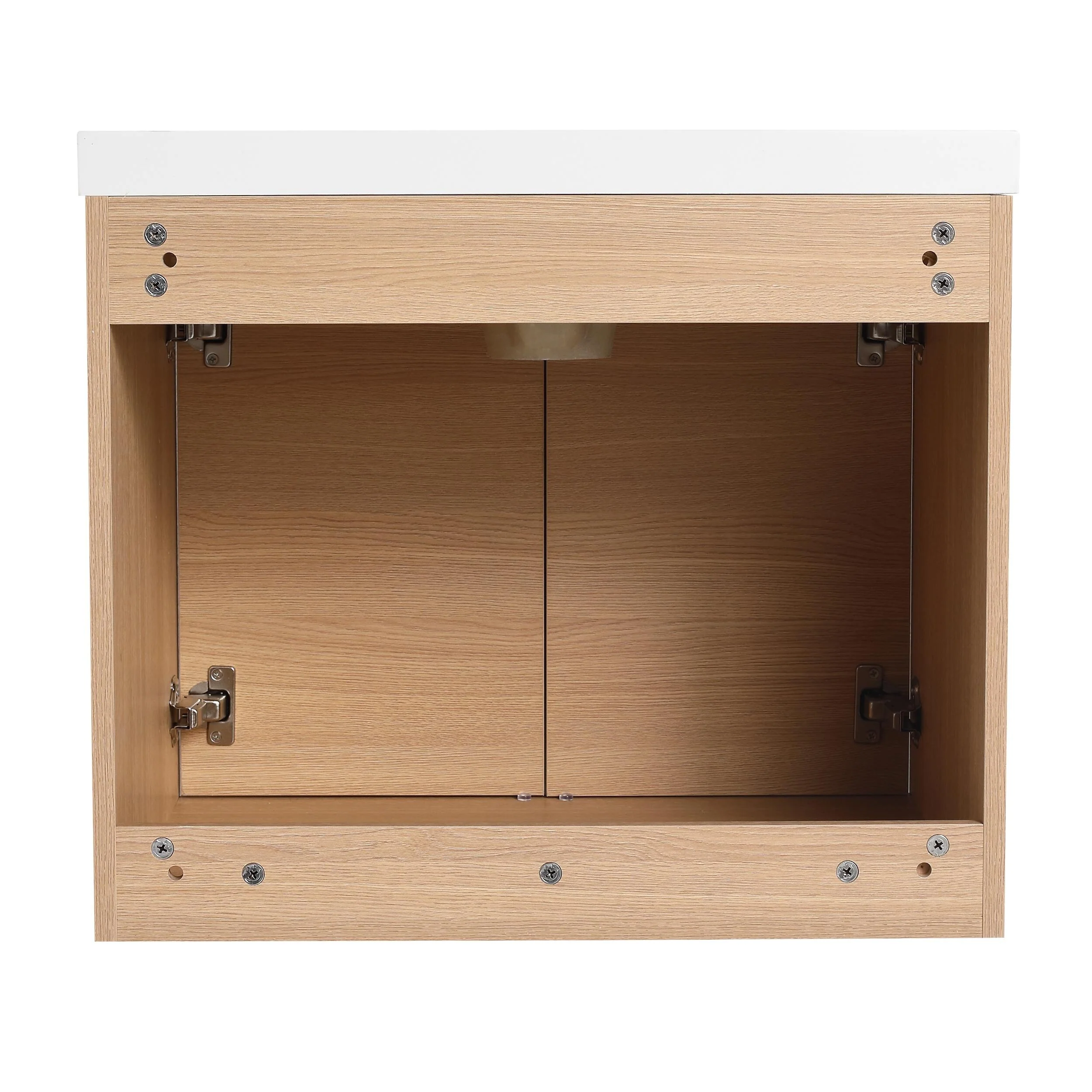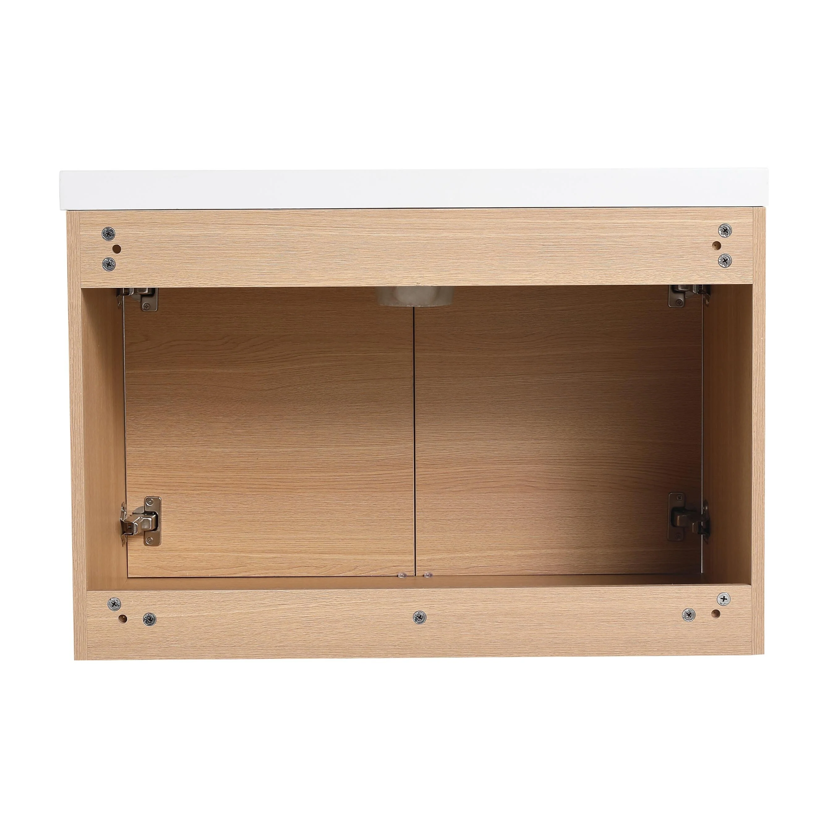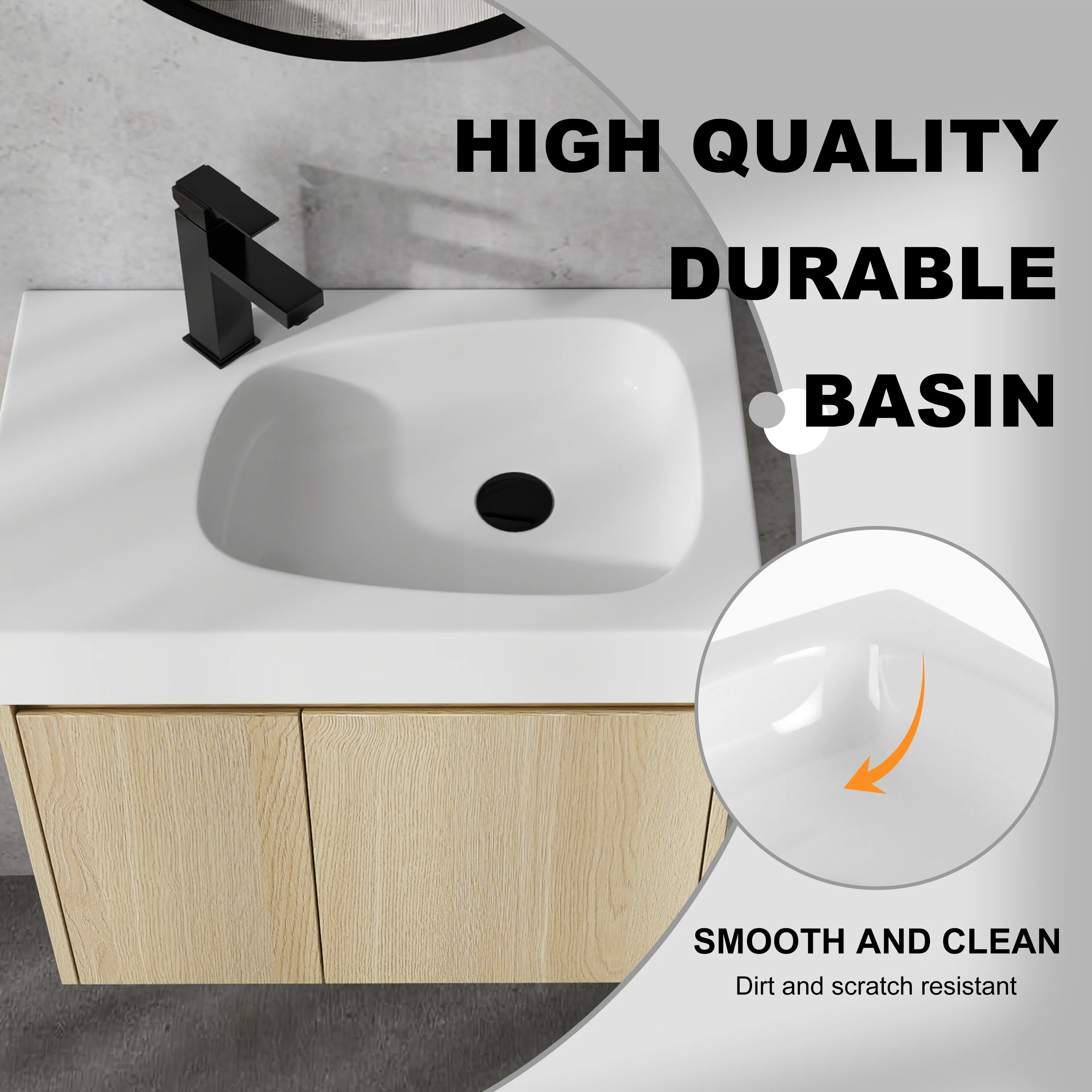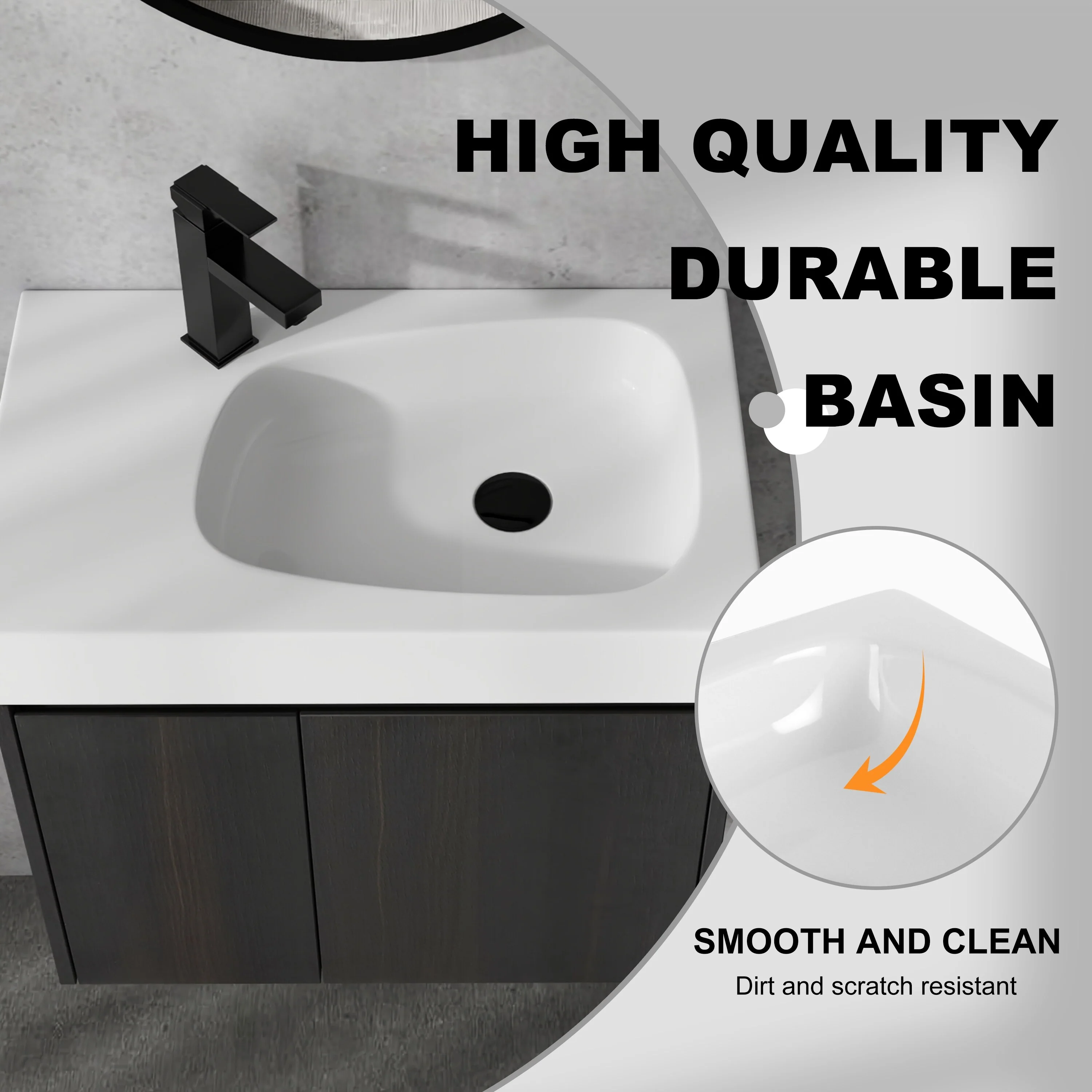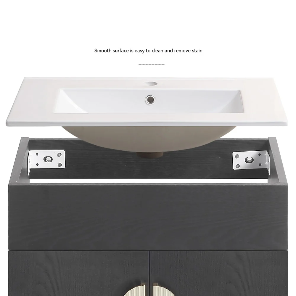 30" Wall-Mounted Floating Bathroom Vanity Pre-Assembled Curved Edge Storage Bathroom Cabinet with White Ceramic Basin