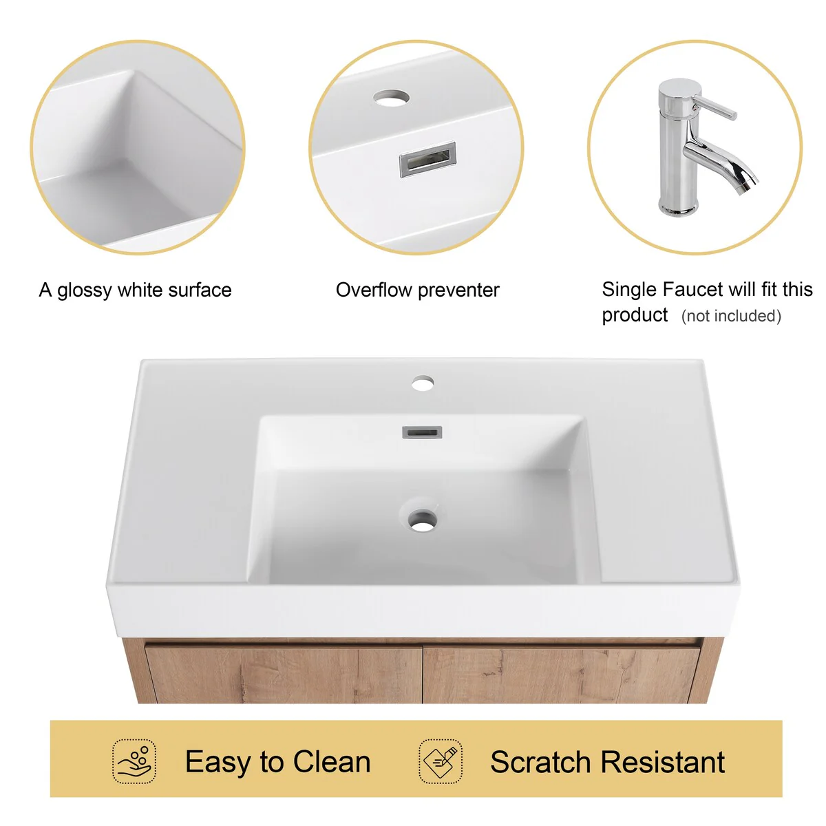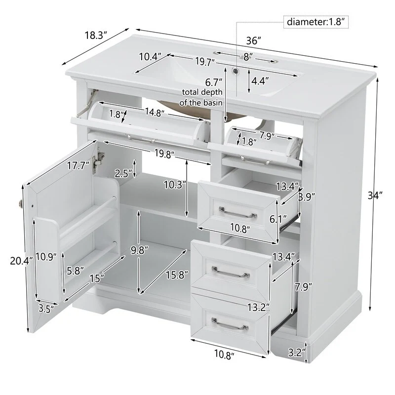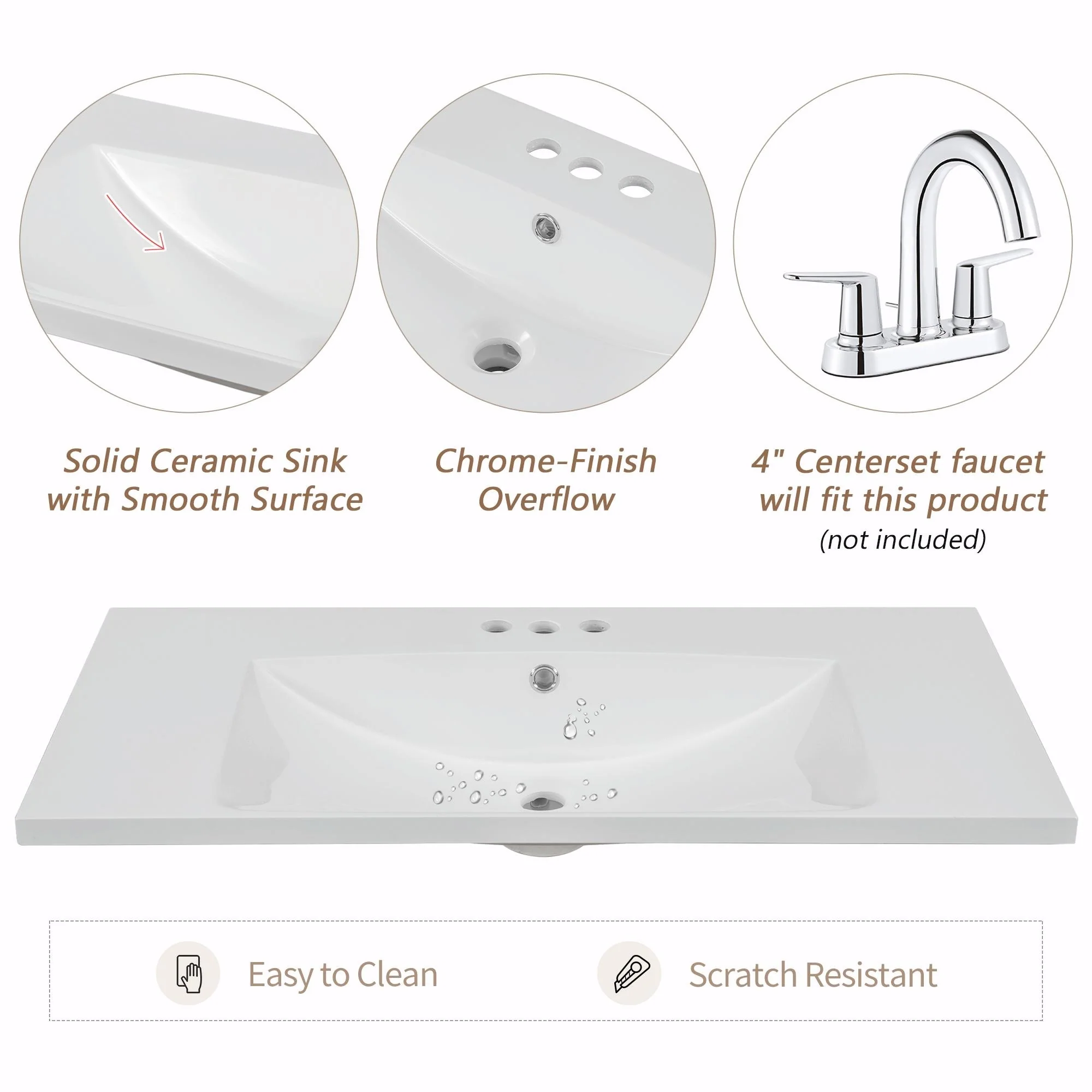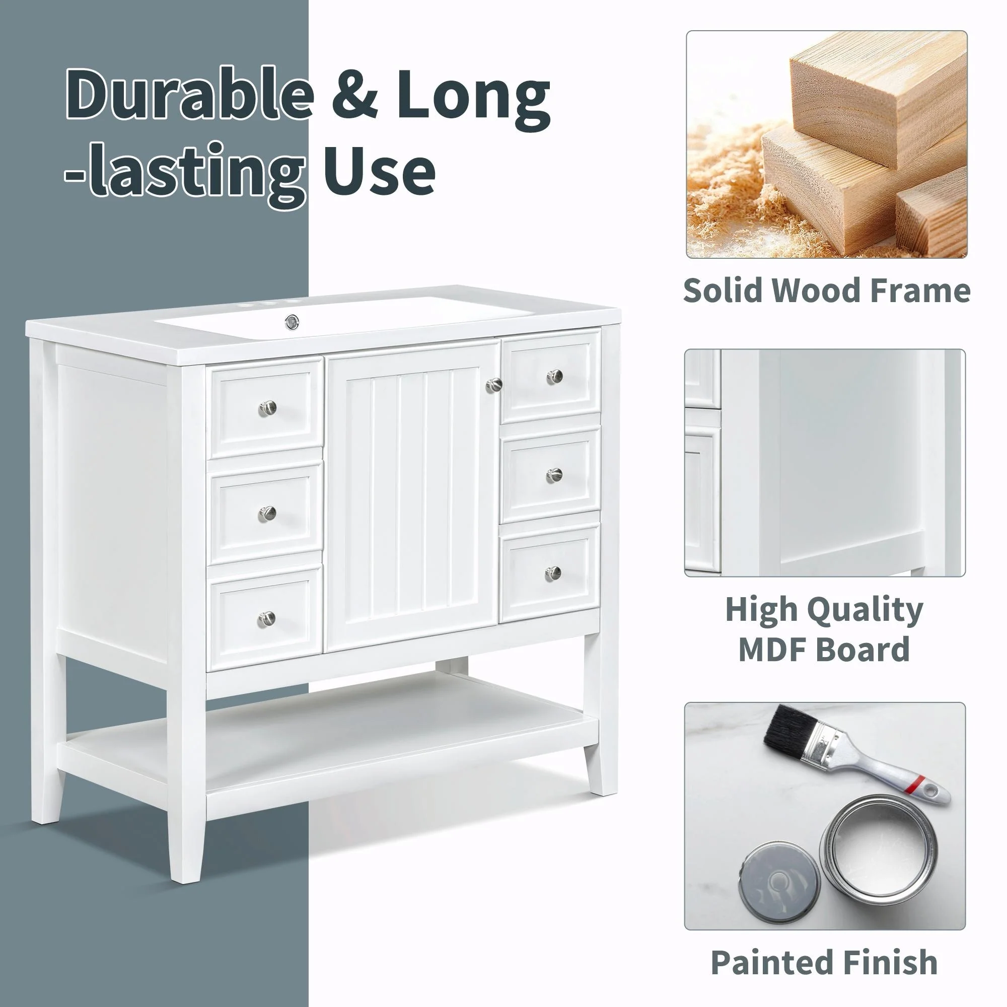 36" Modern Bathroom Vanity with Ceramic Sink