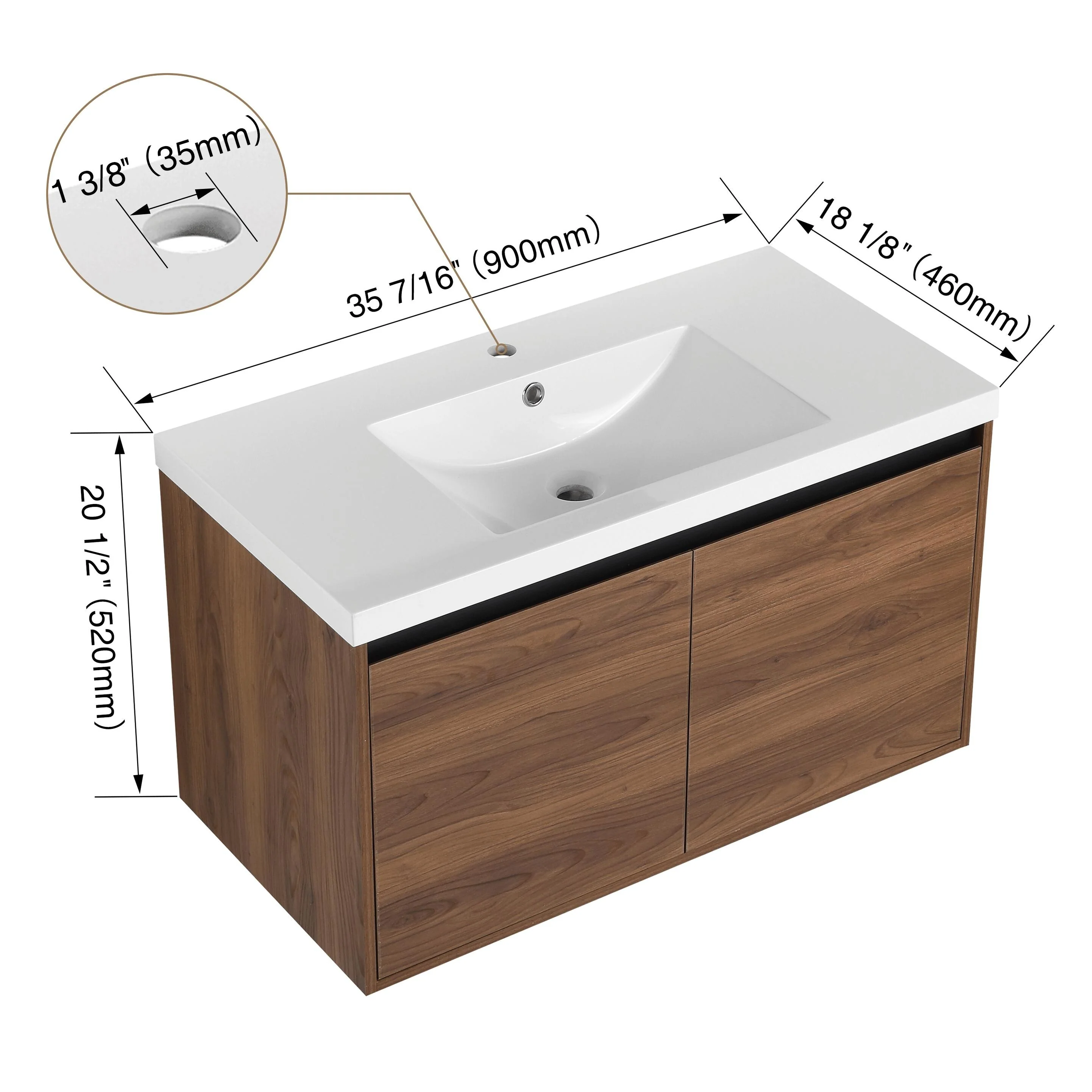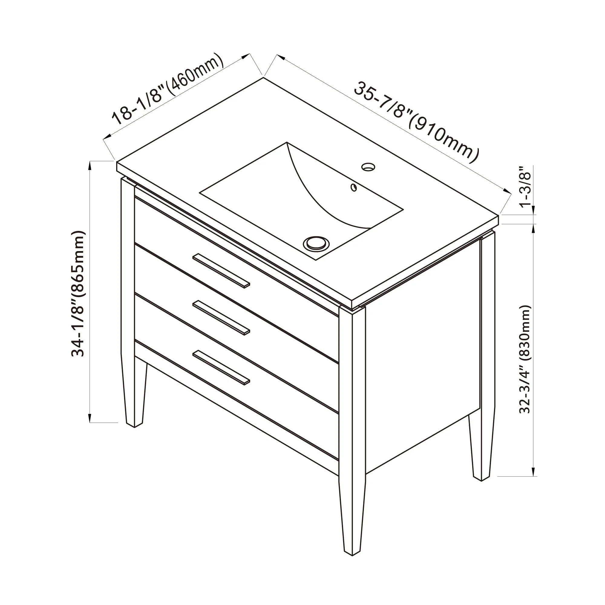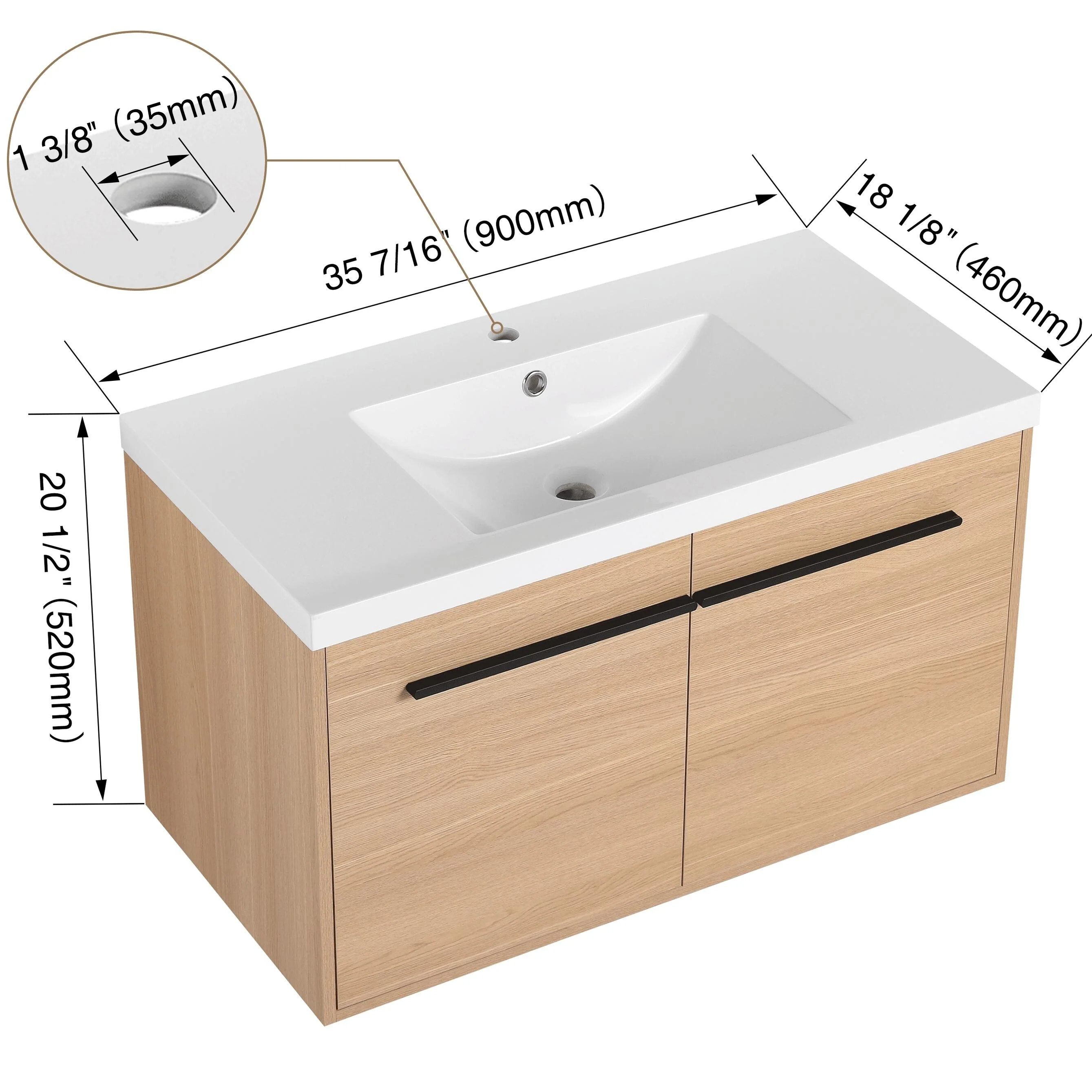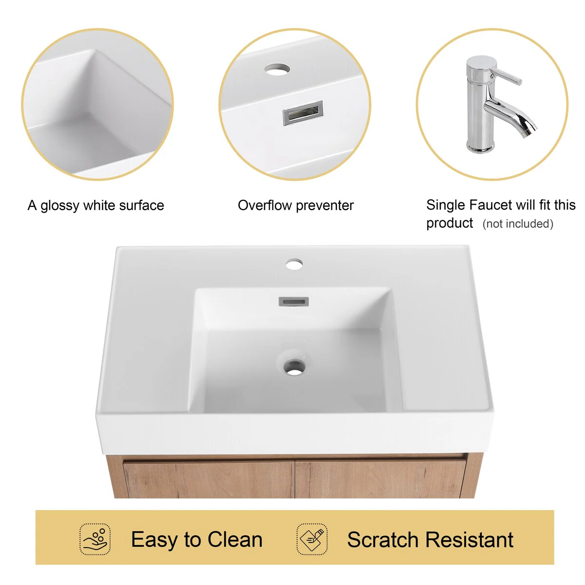 36" Modern Bathroom Vanity with Ceramic Sink