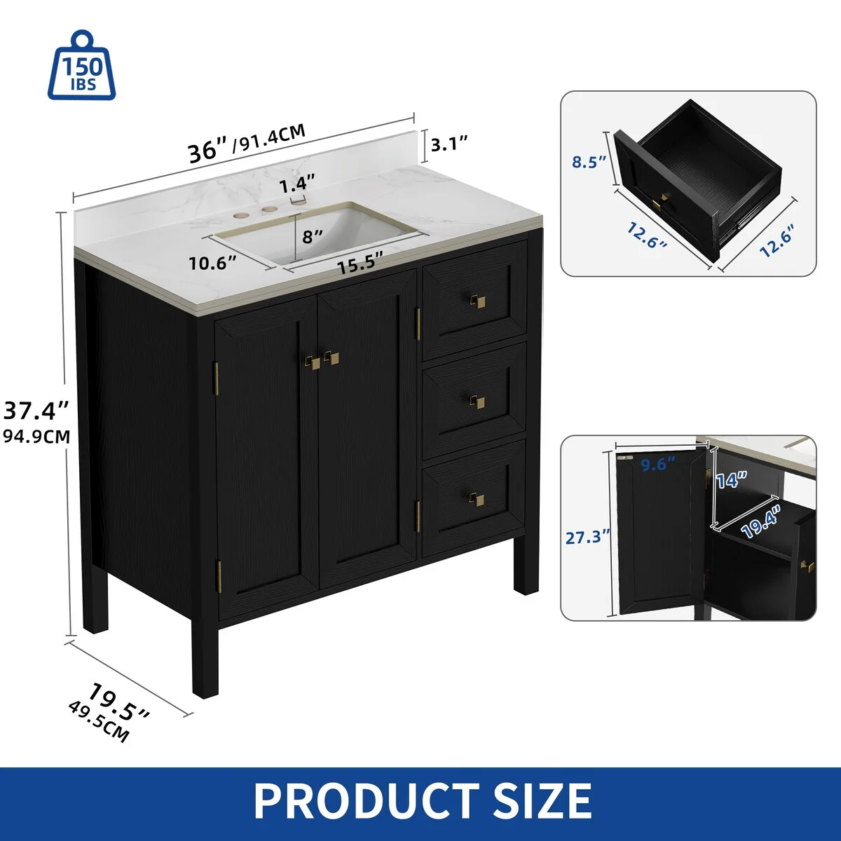 36" Bathroom Vanity with Sink Combo