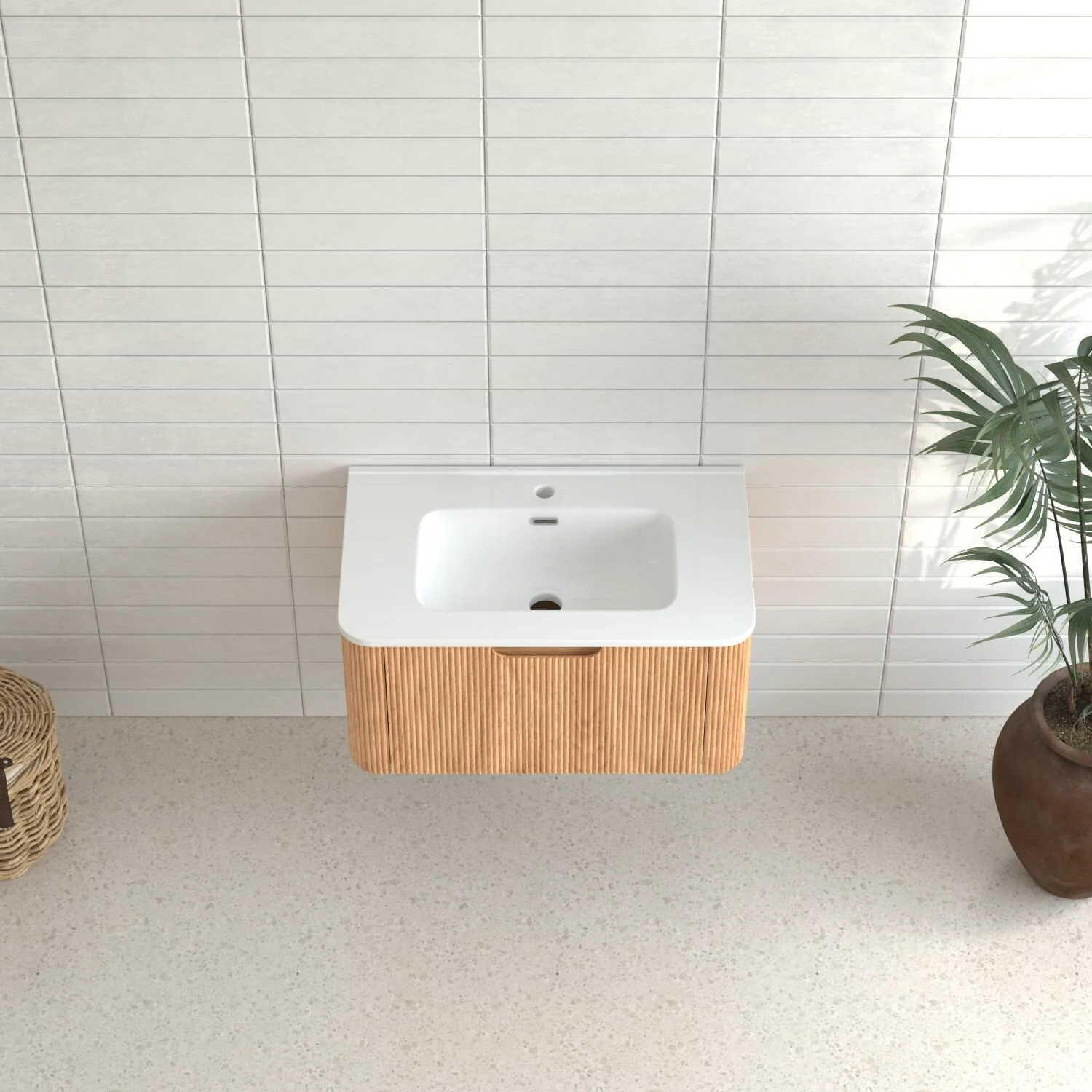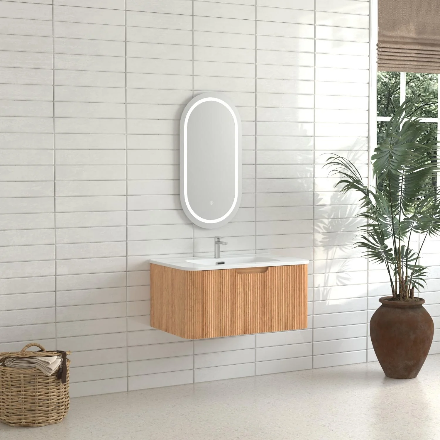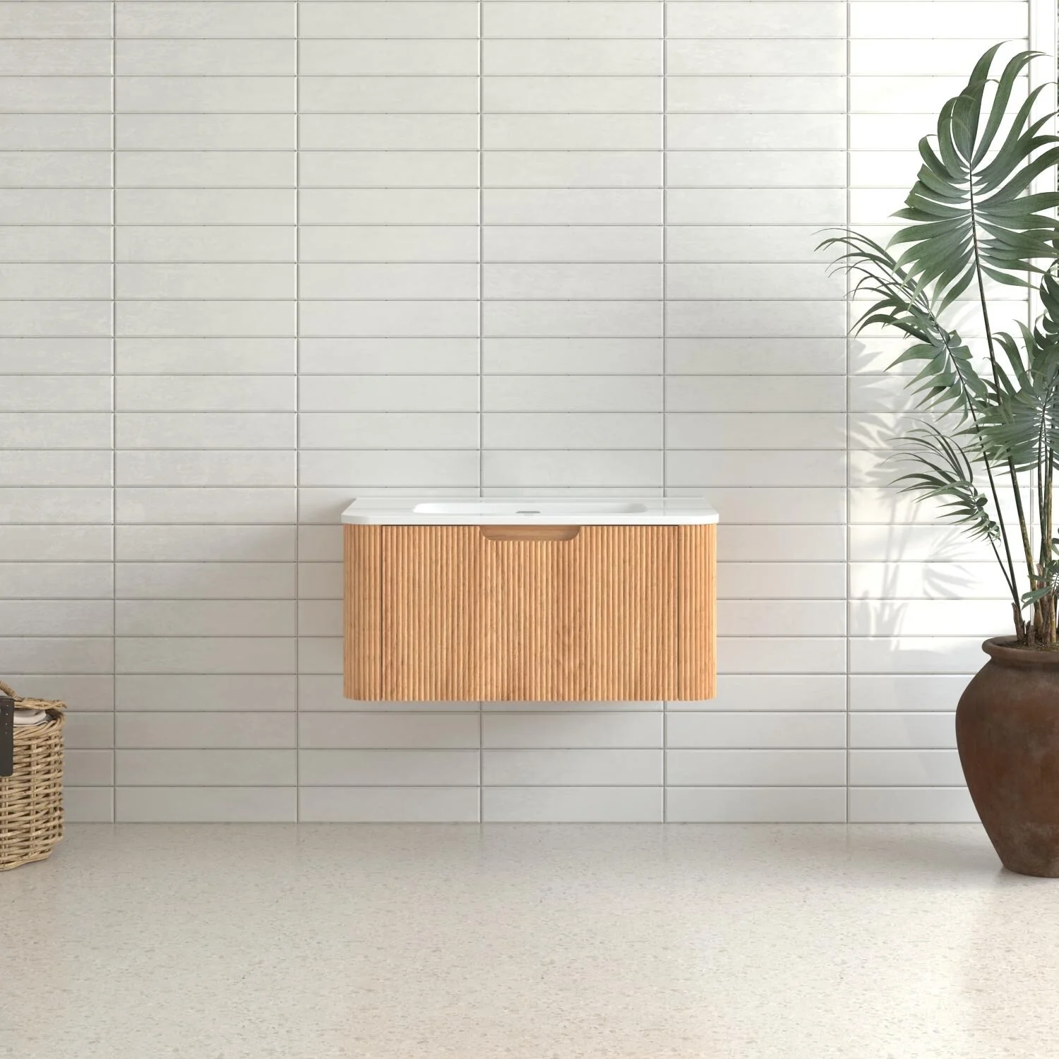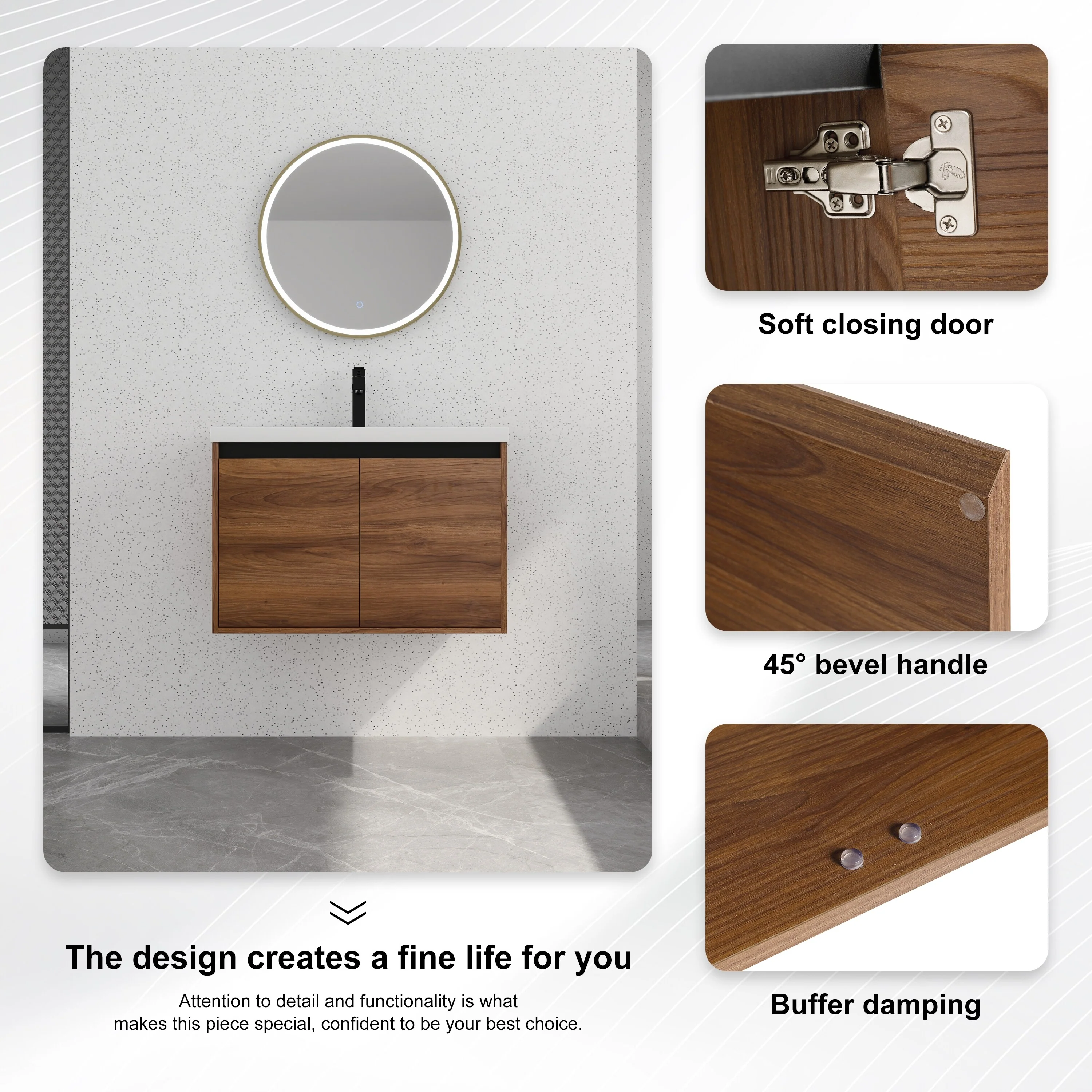 36" Bathroom Vanity with Basin, Wall-Mounted Floating Curved Edges Striped Bathroom Large Storage Cabinet with 2 Side Drawers