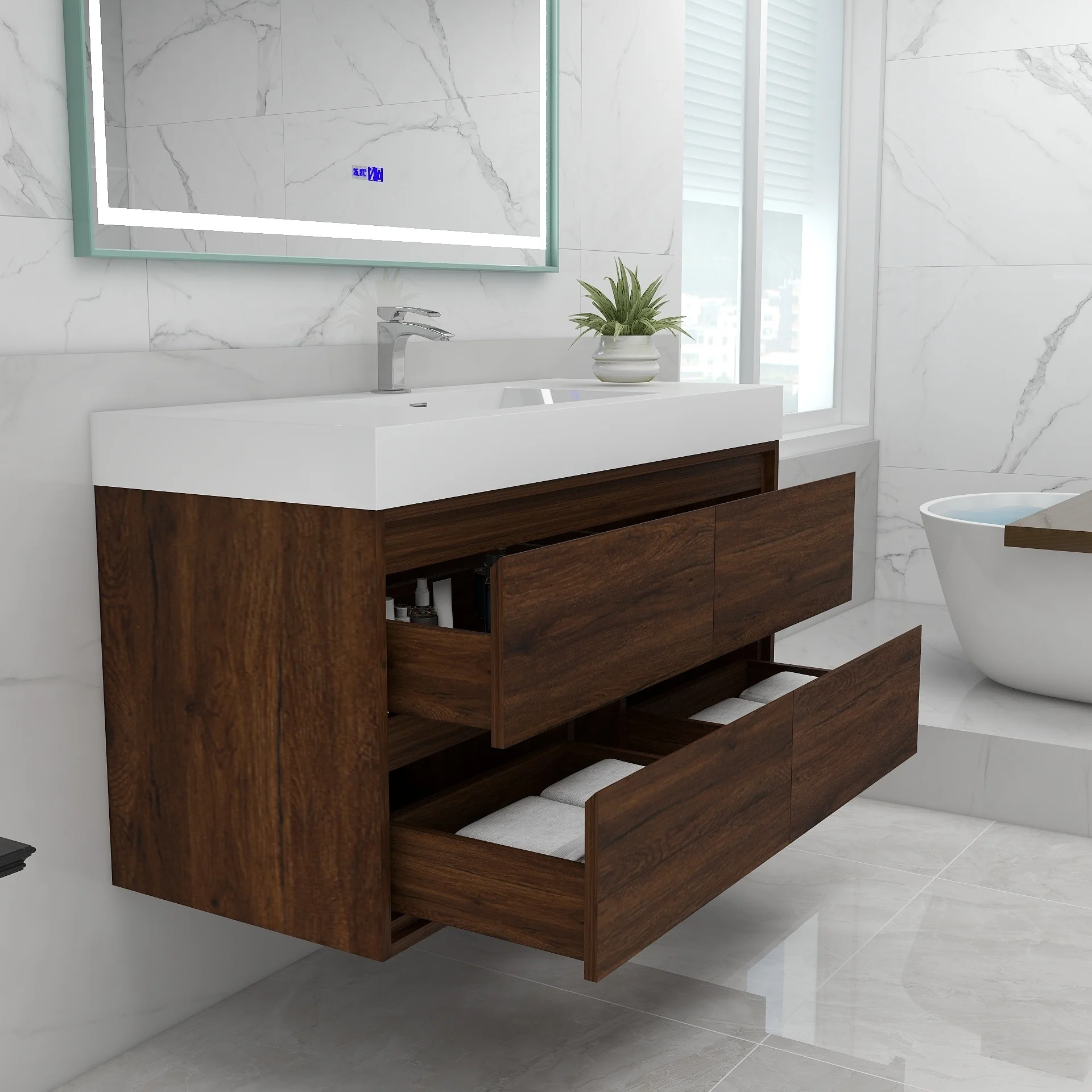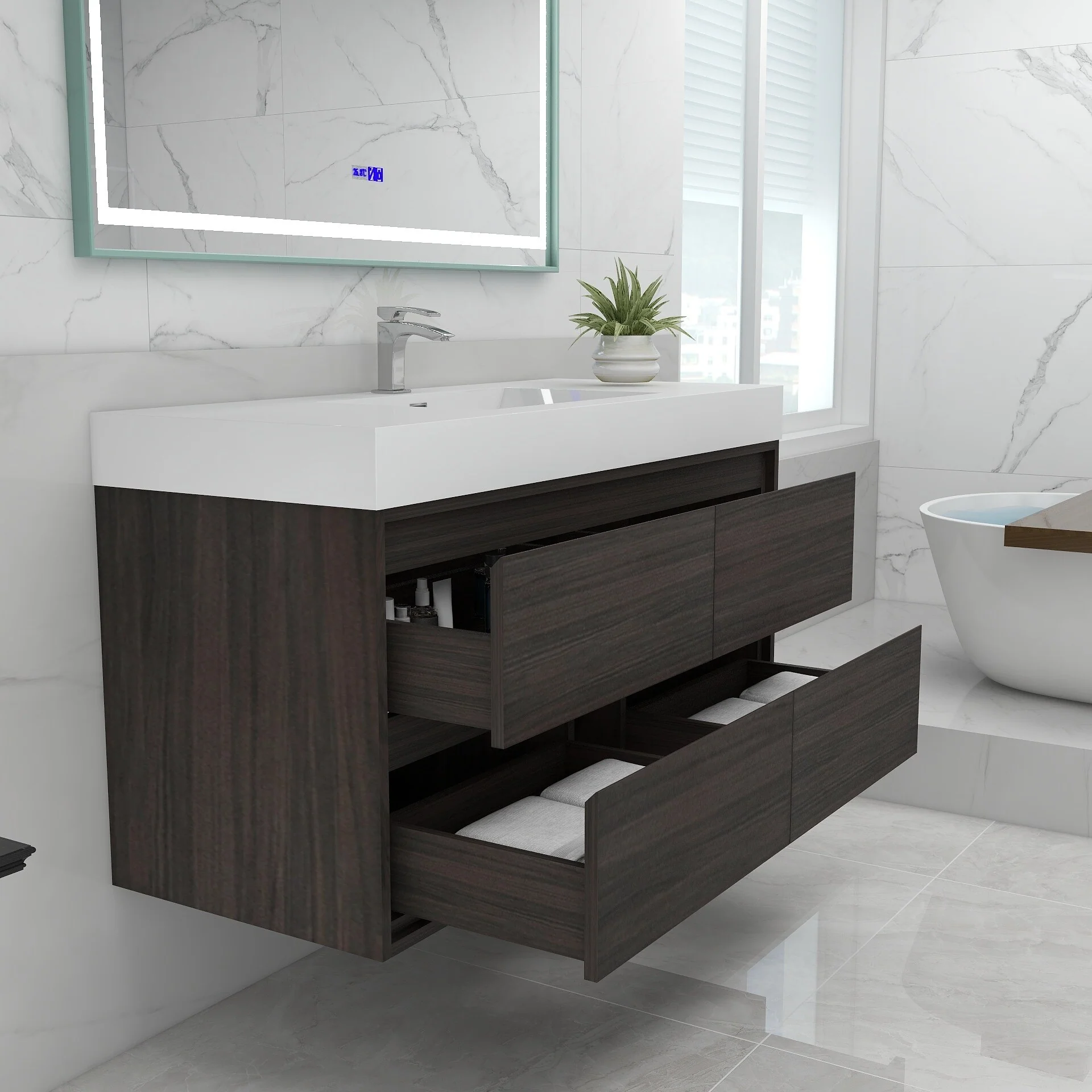 Malwee 24"/30"/36"/48" Floating Bathroom Vanity with Sink