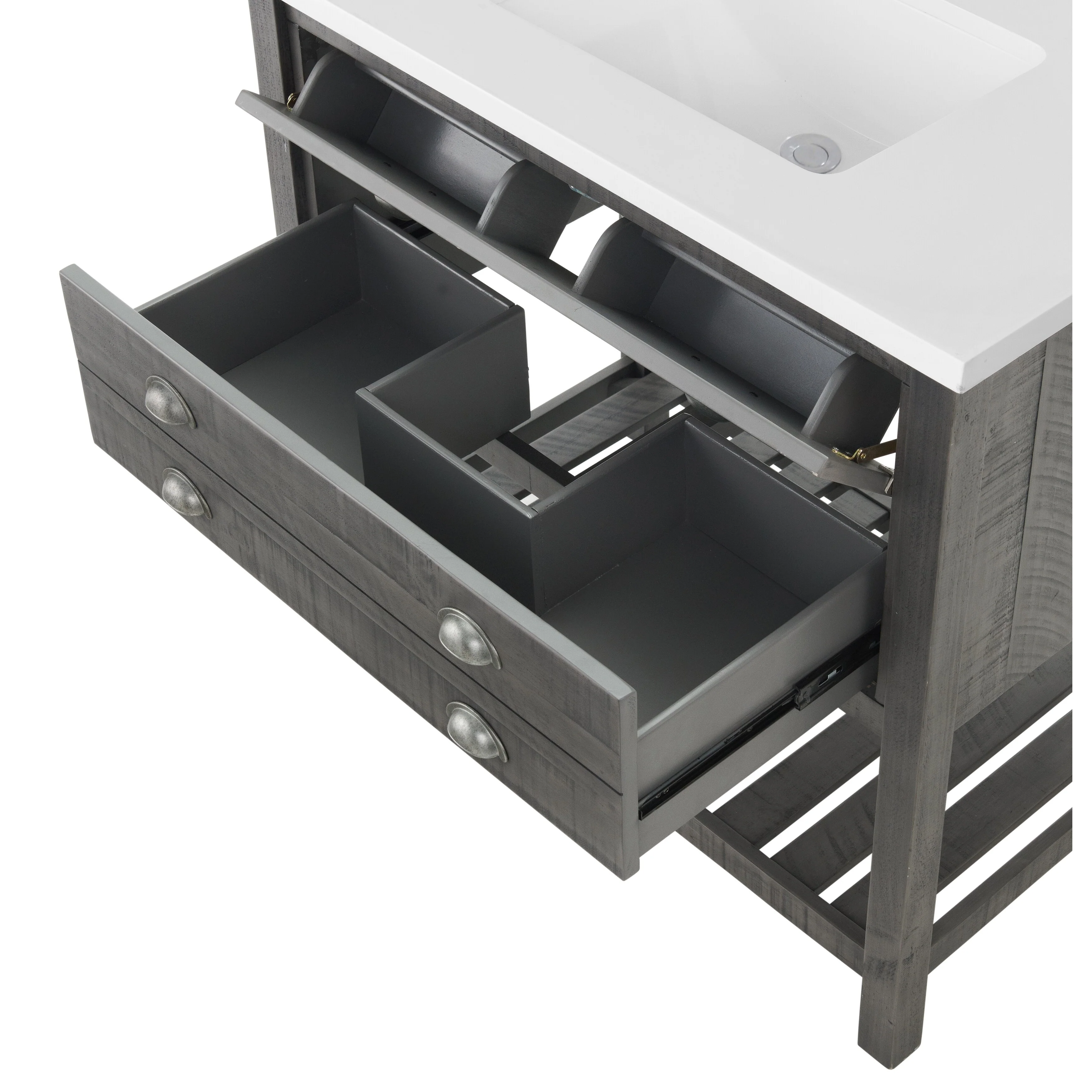 Dark Gray / White Cultured Marble Top / Brushed
