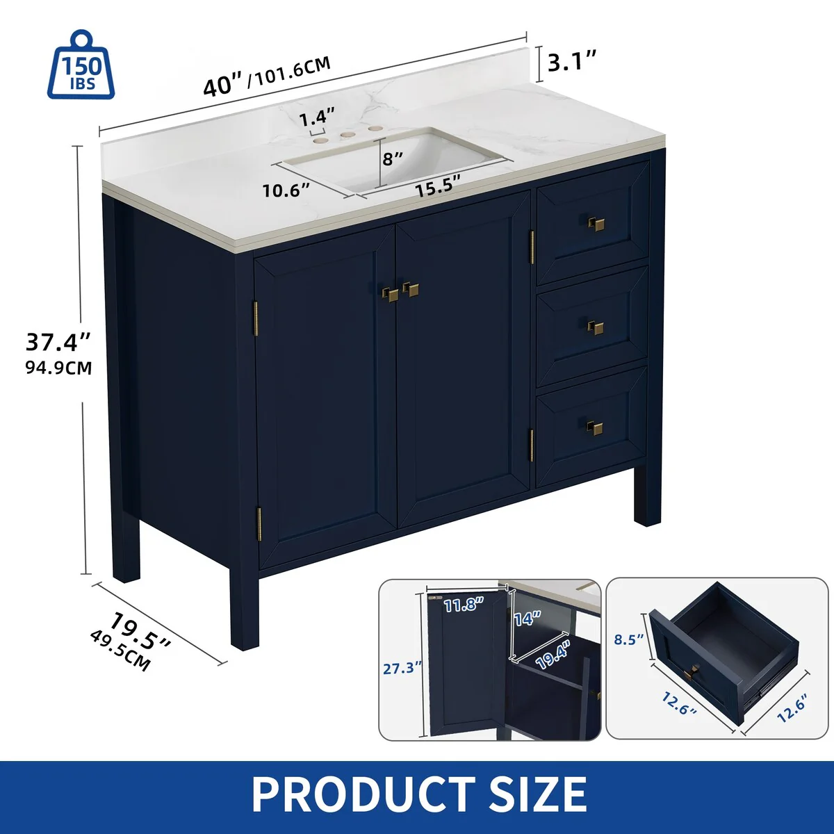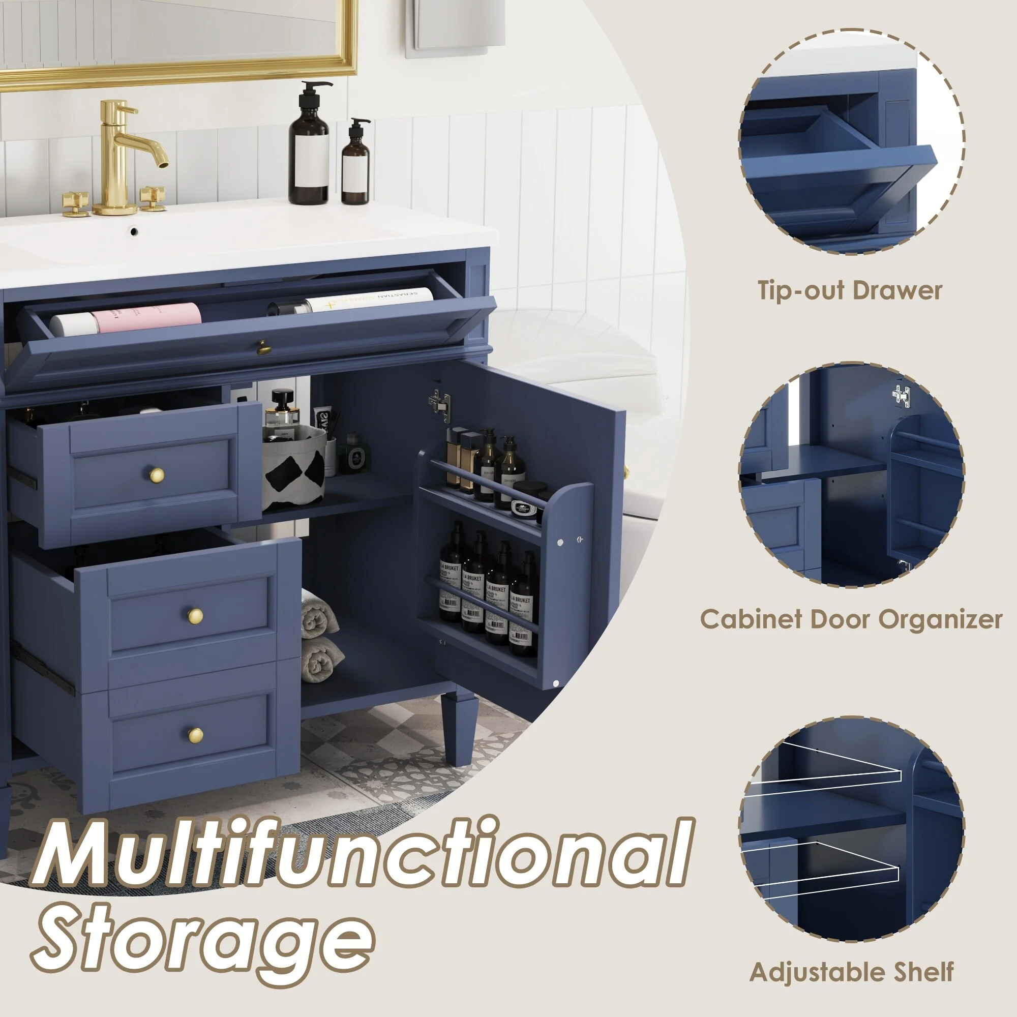 Moasis 36"/40"/ 47" Bathroom Vanity Cabinet with Sink
