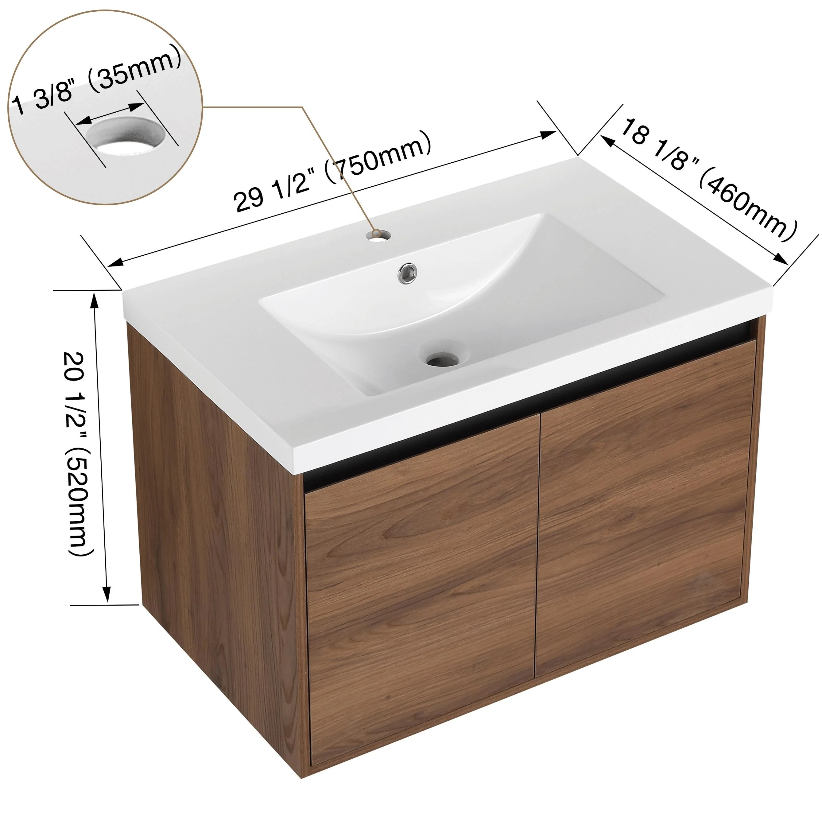 30 in W Ceramic,Solid Wood+MDF