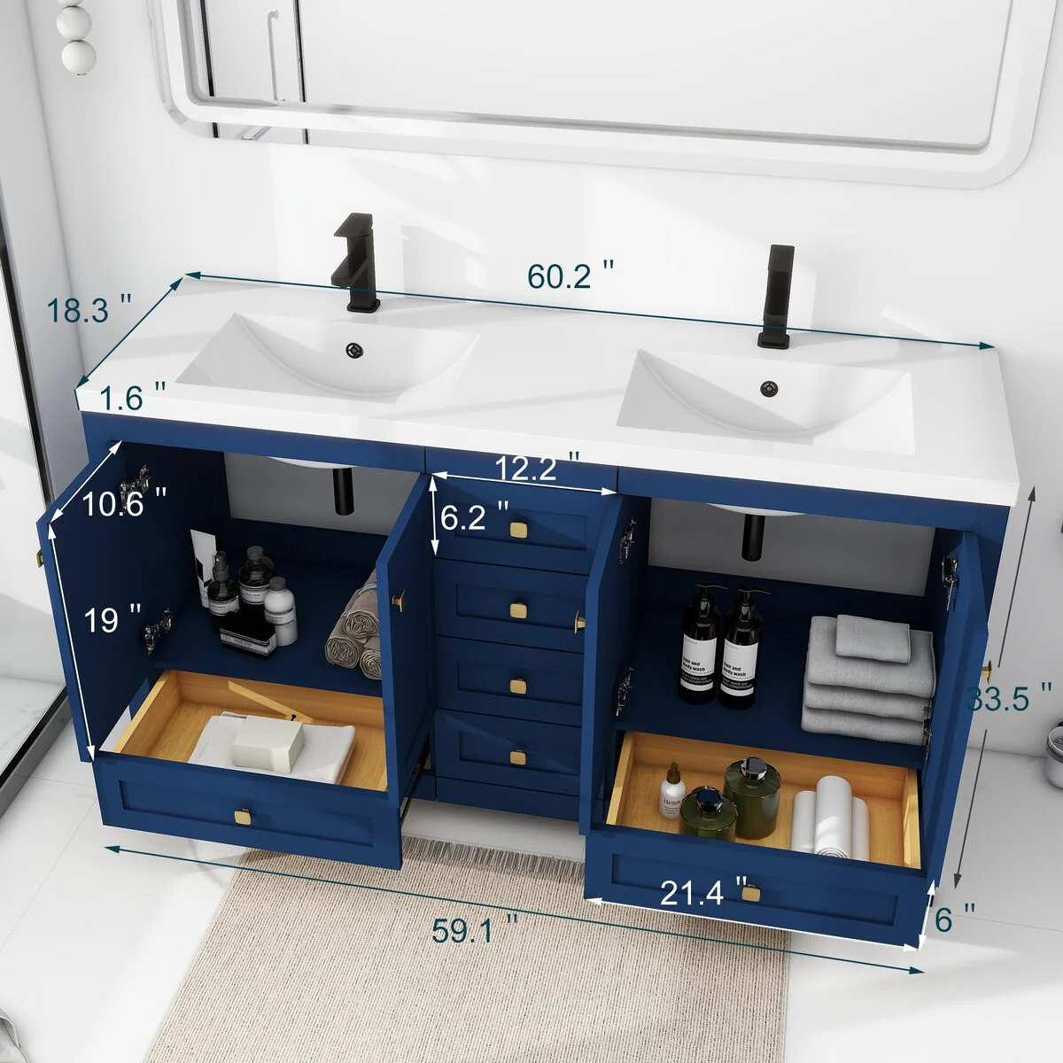 Victoria 60'' Freestanding Vanity with Double Reinforced Acrylic Sink - 59.5