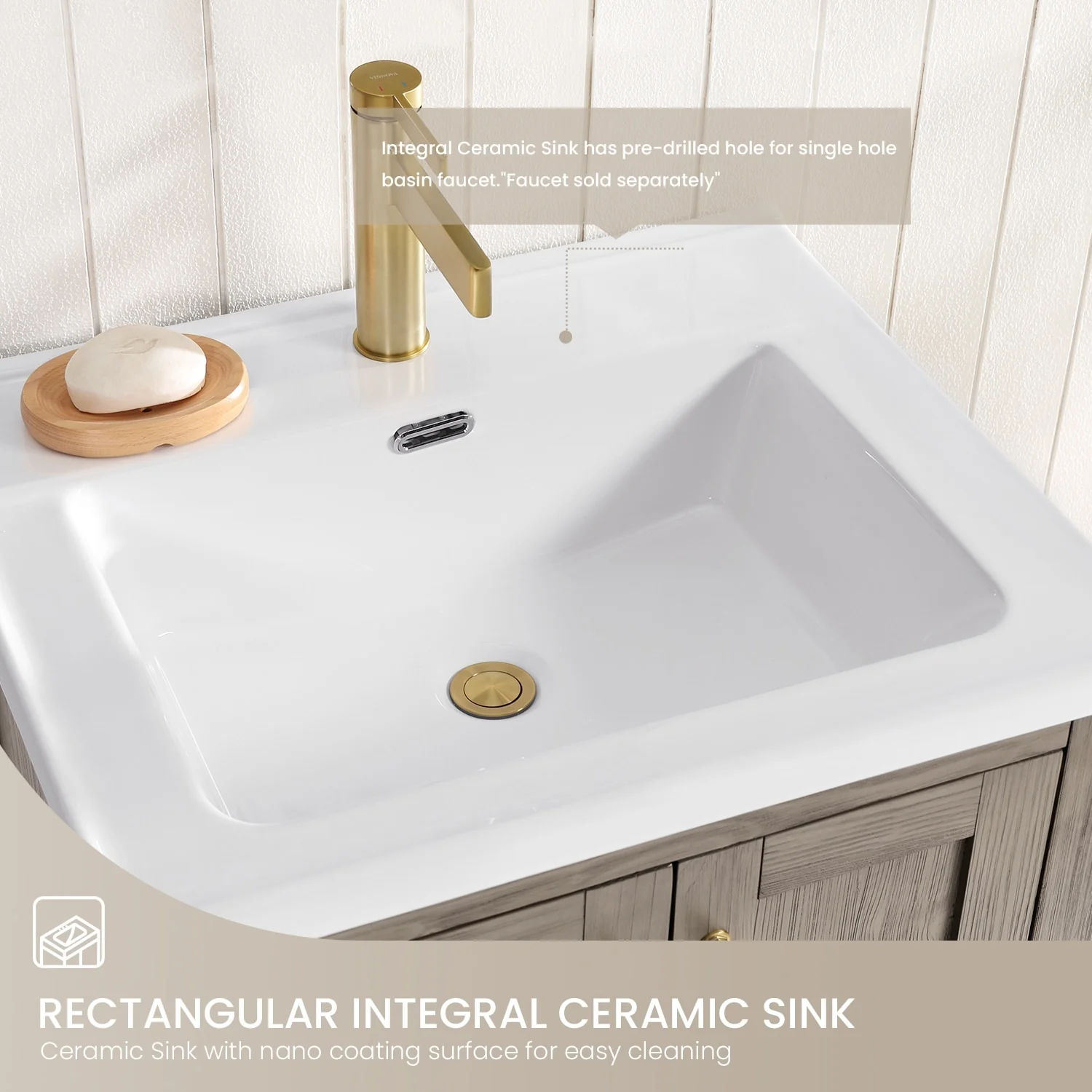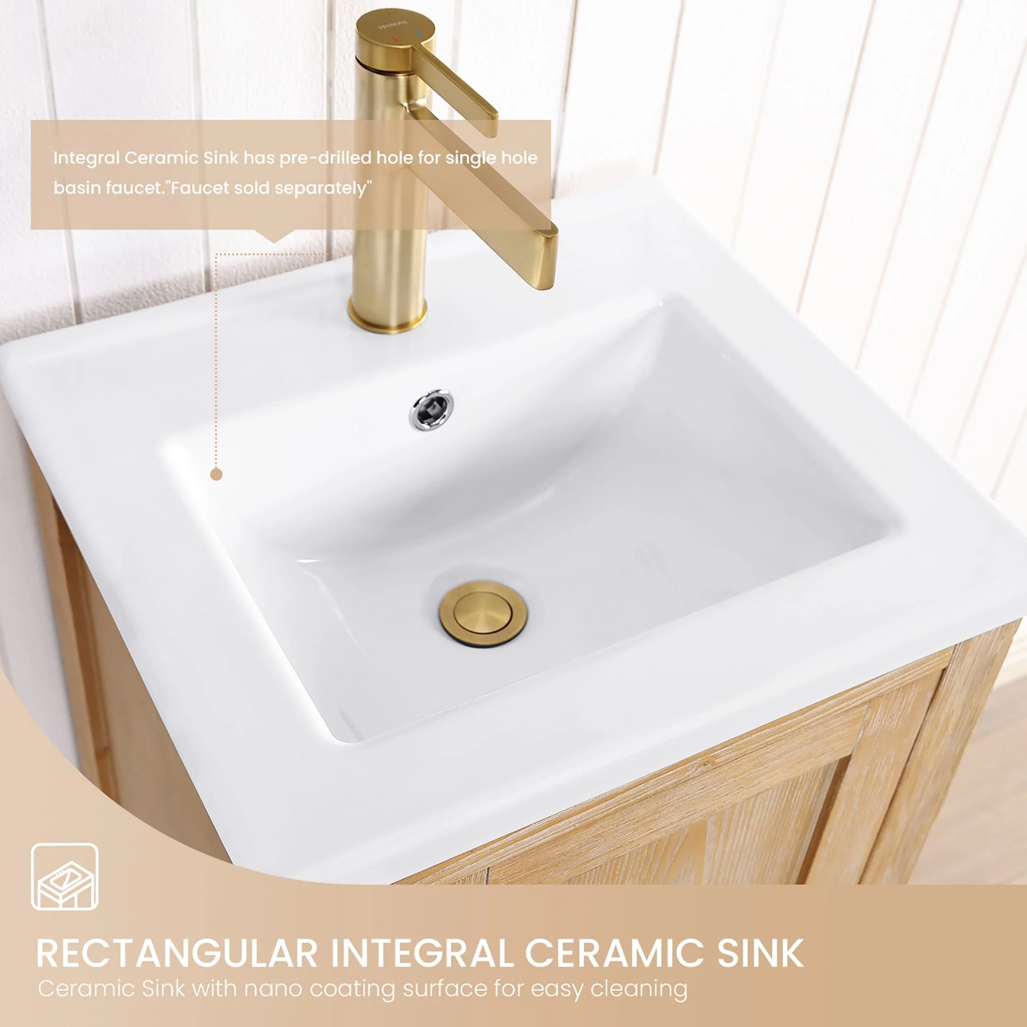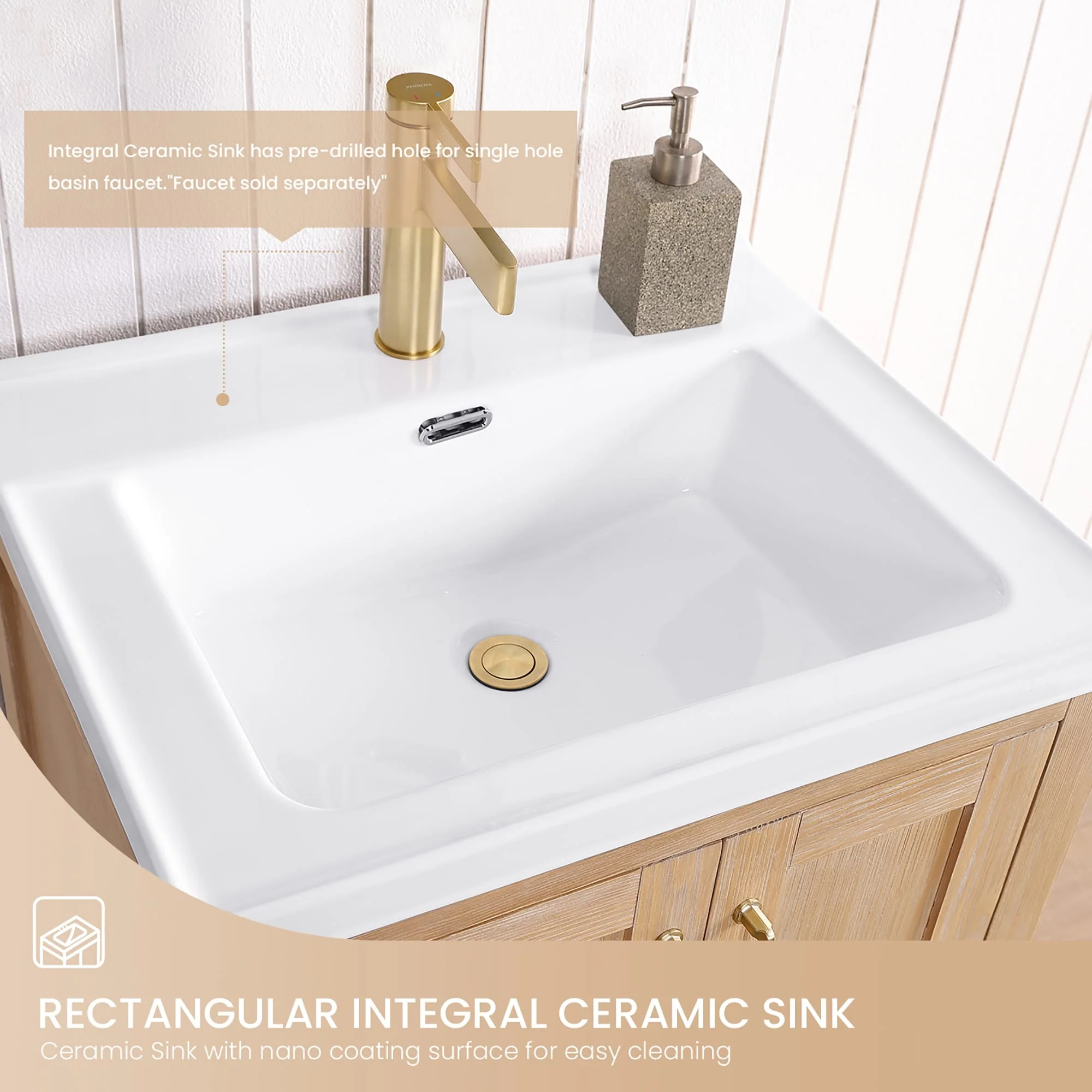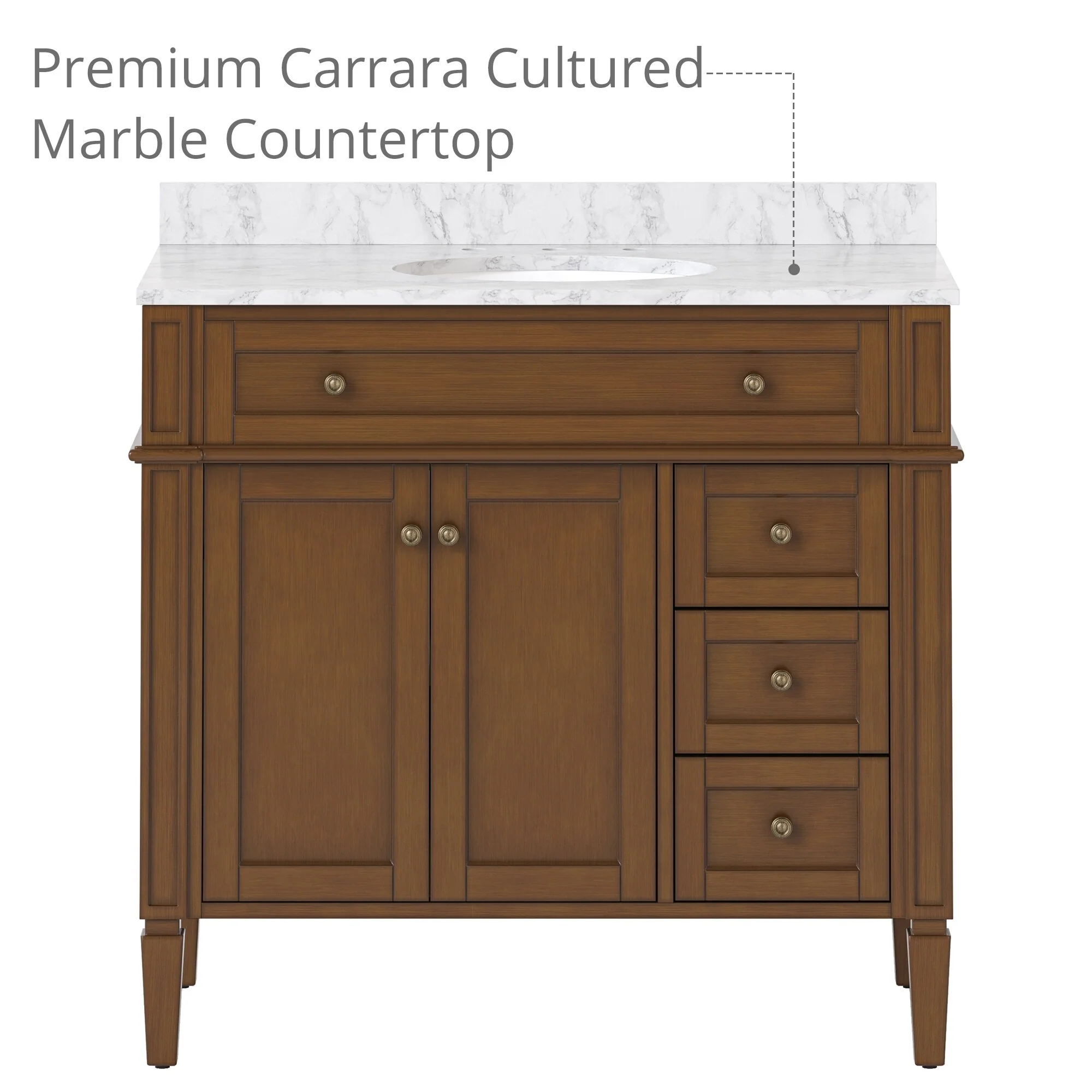 Brandy Integrated Ceramic Sink Top Vanity in Honey Walnut