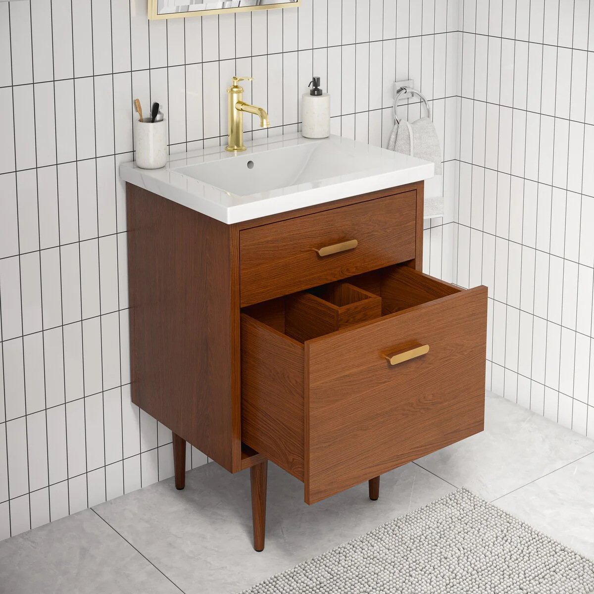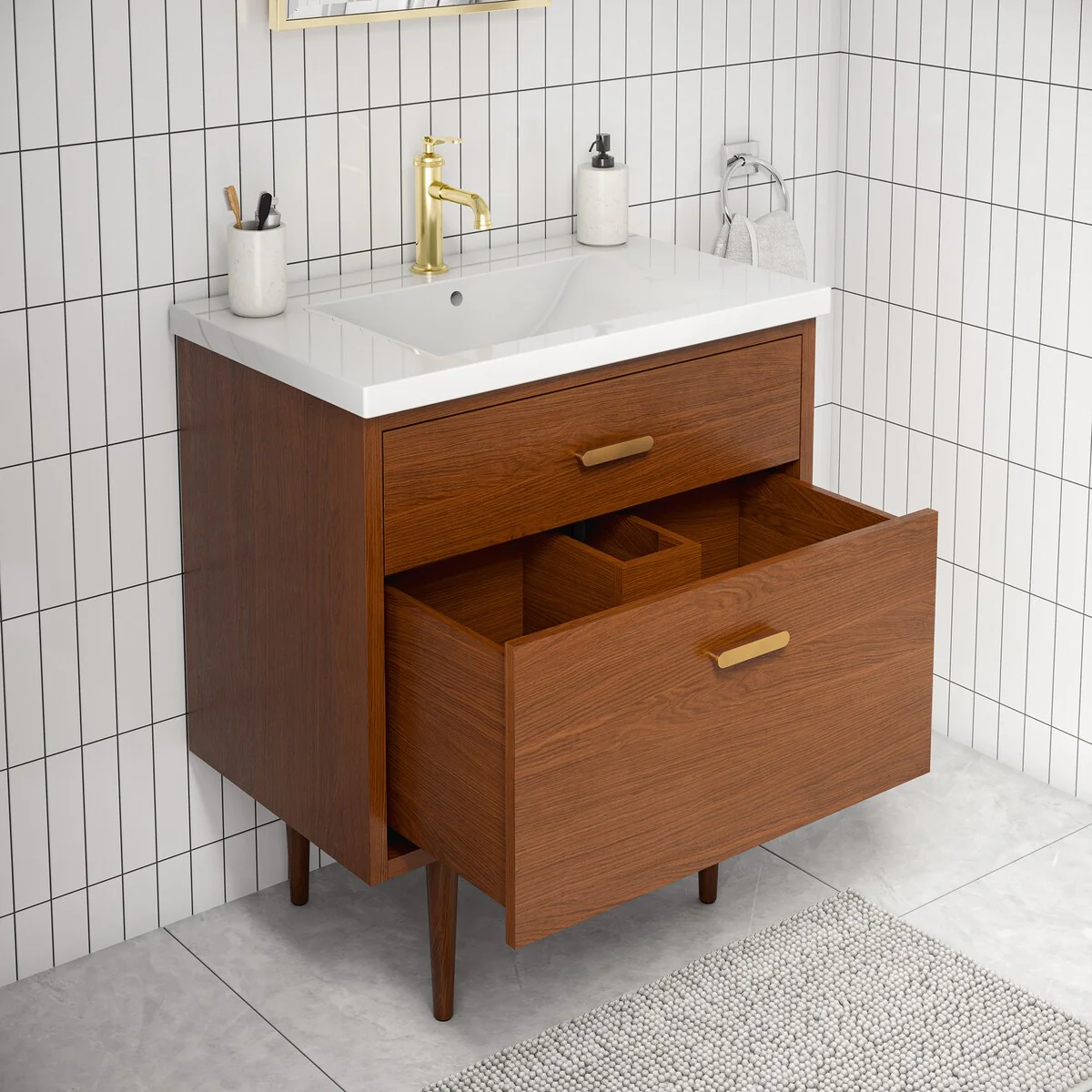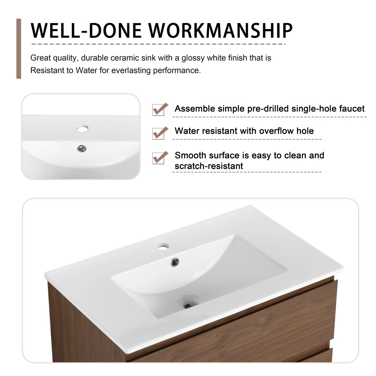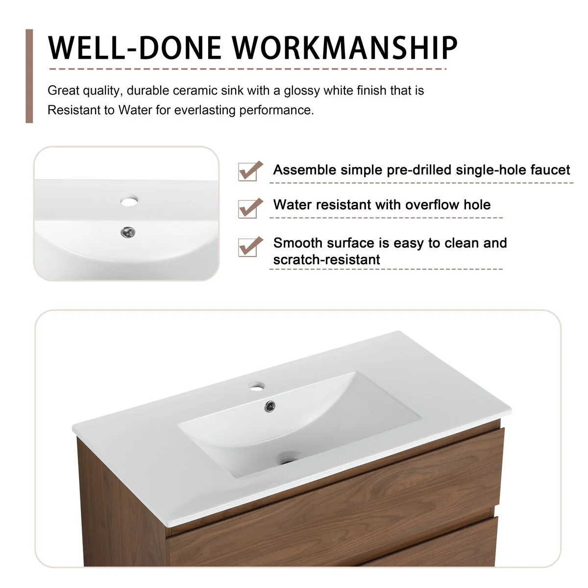 Brandy Integrated Ceramic Sink Top Vanity in Honey Walnut