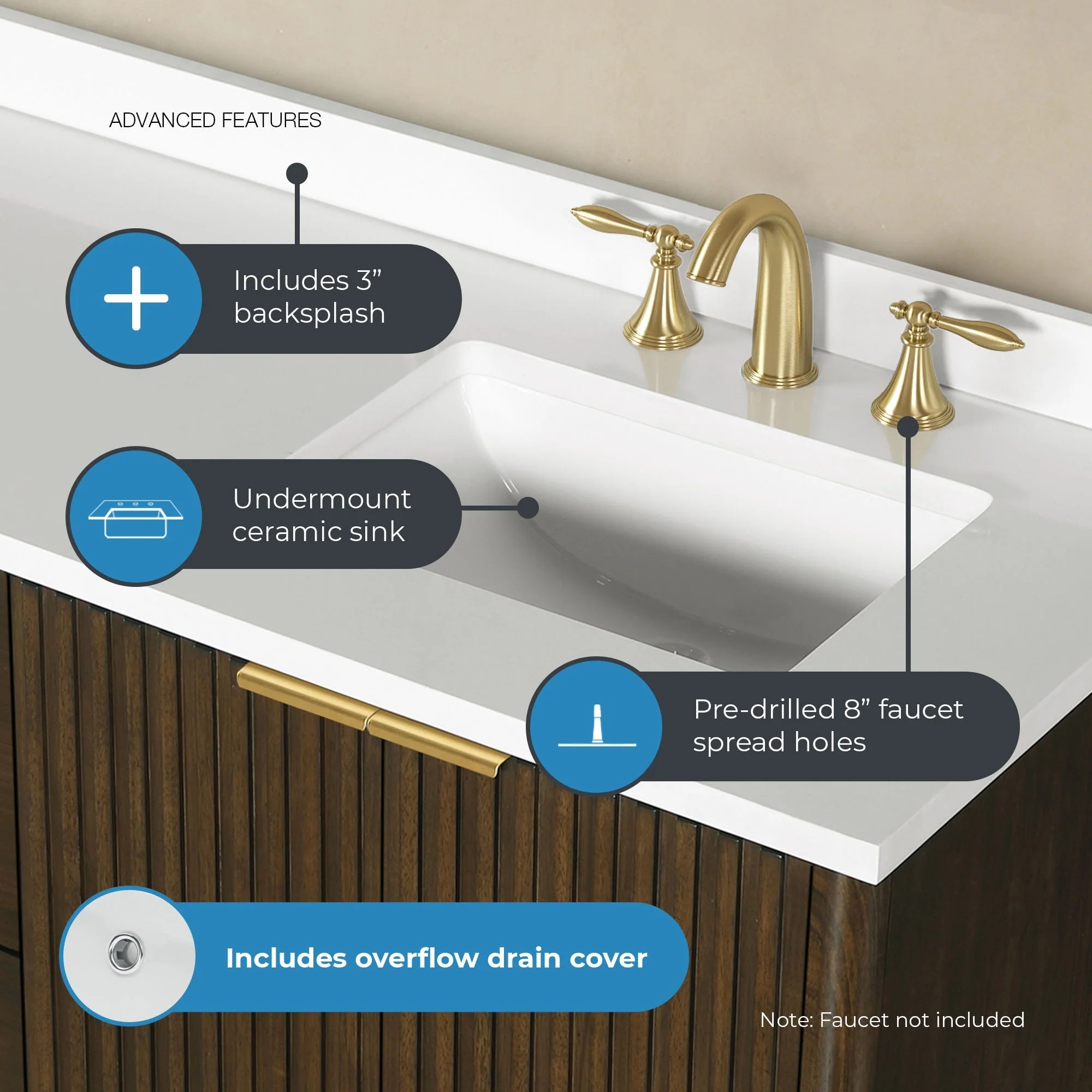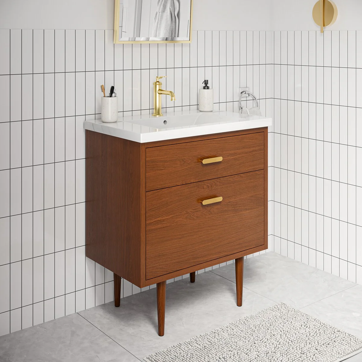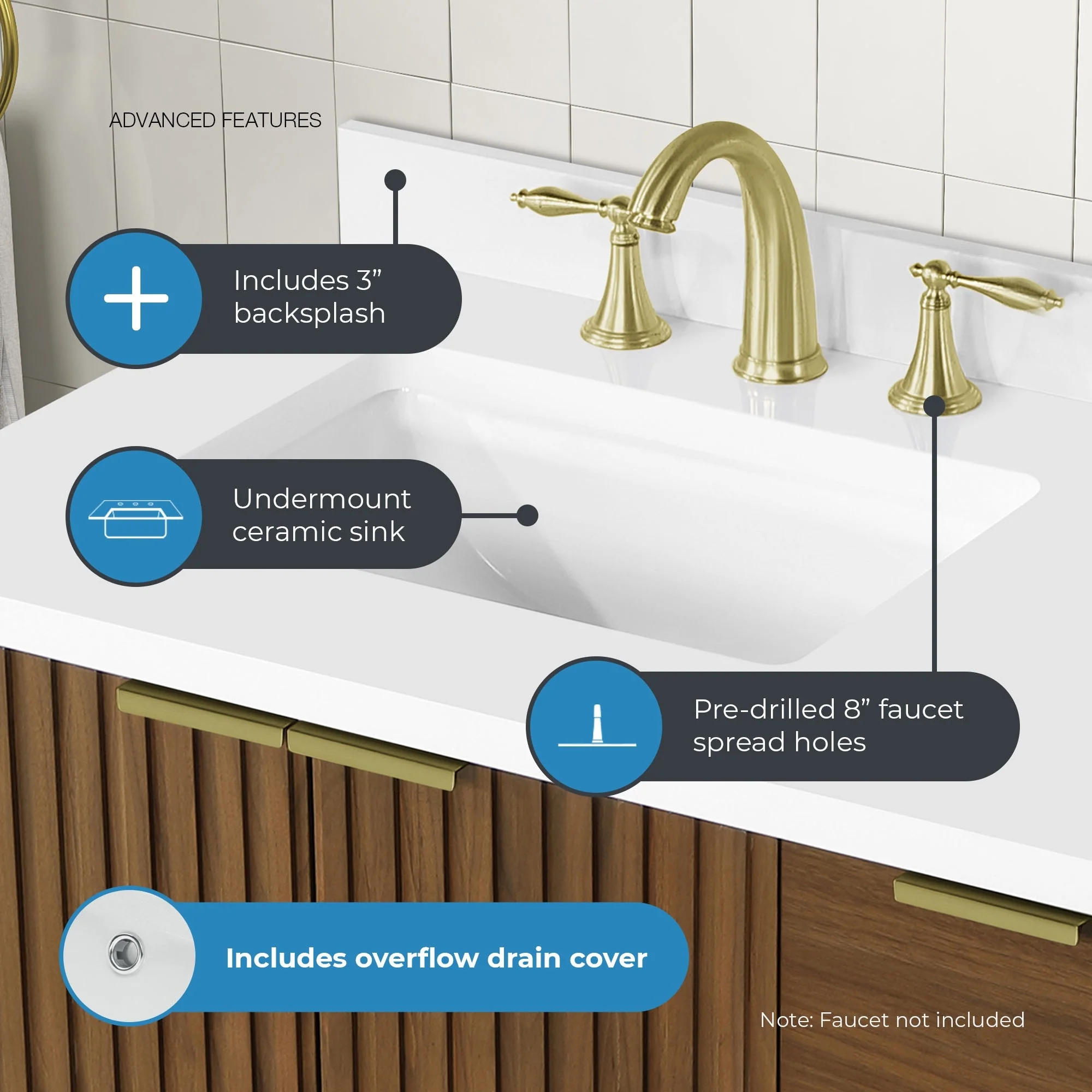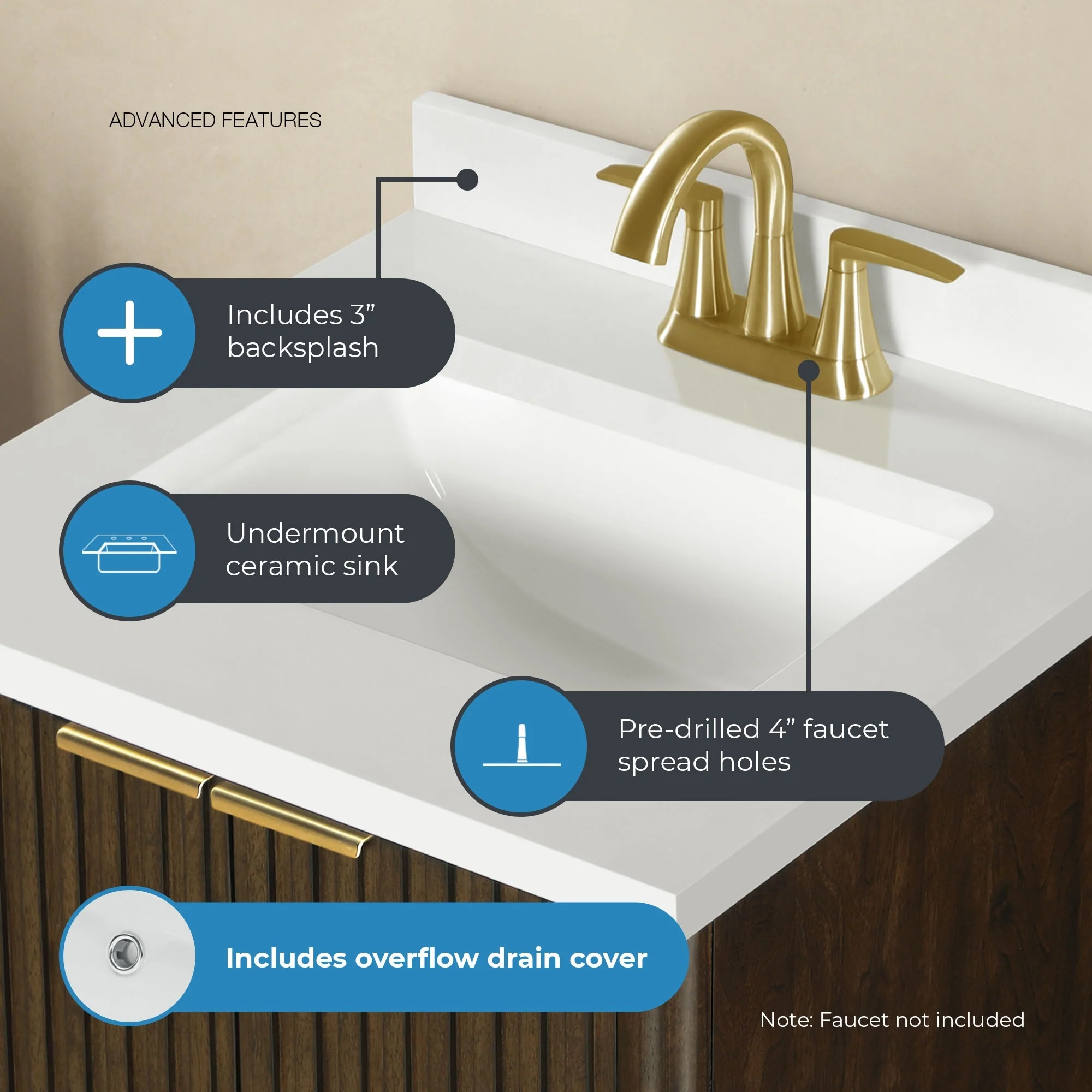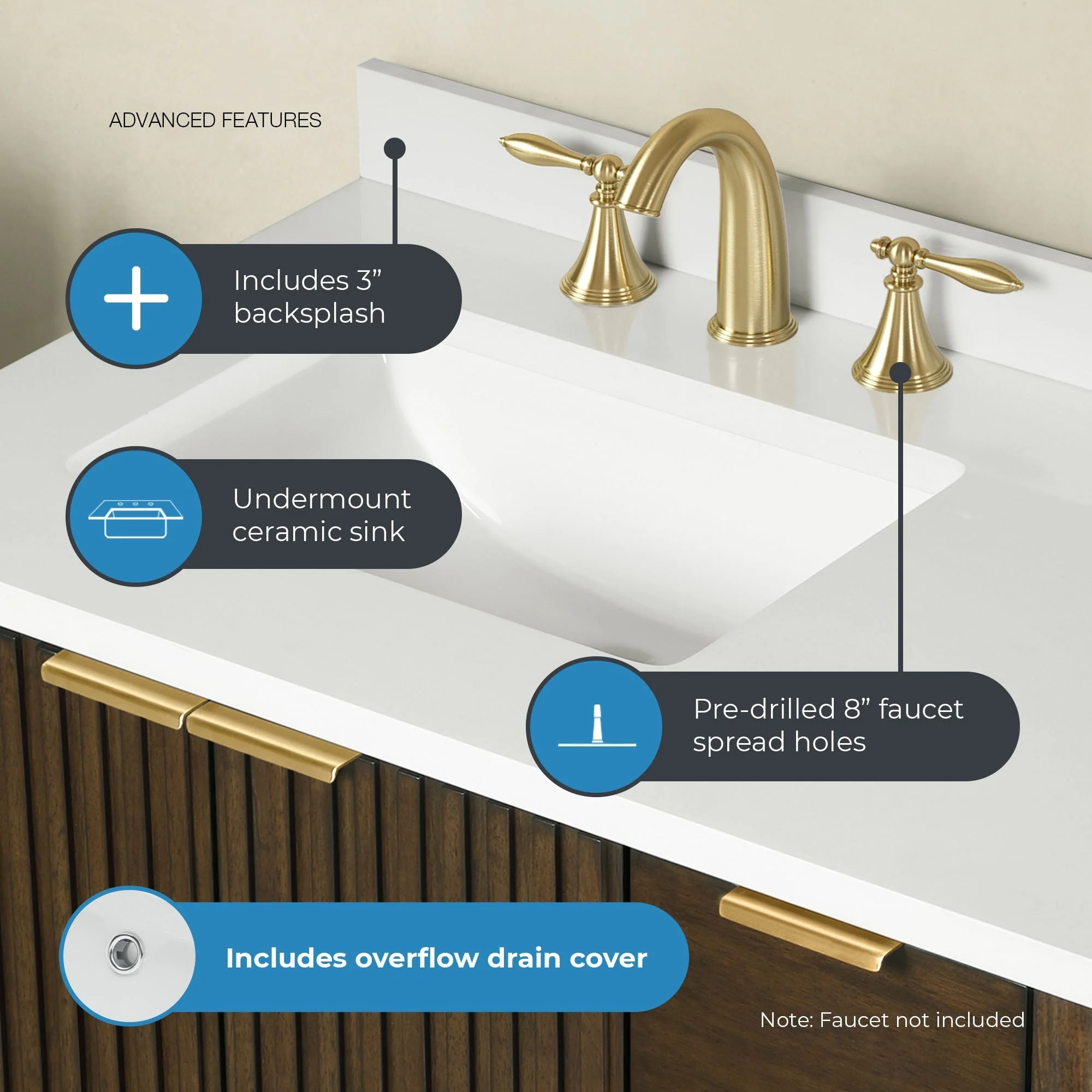 Brandy Integrated Ceramic Sink Top Vanity in Honey Walnut