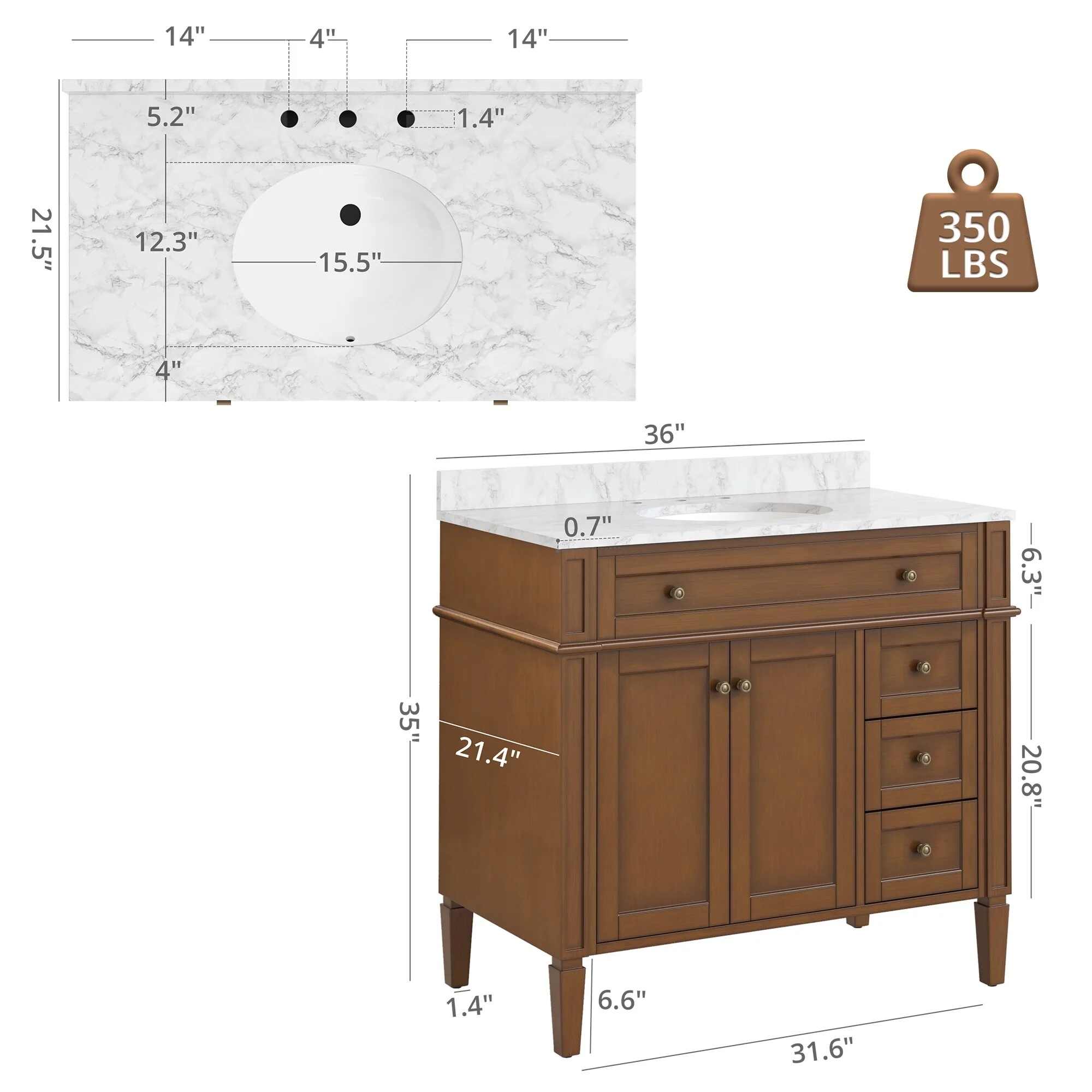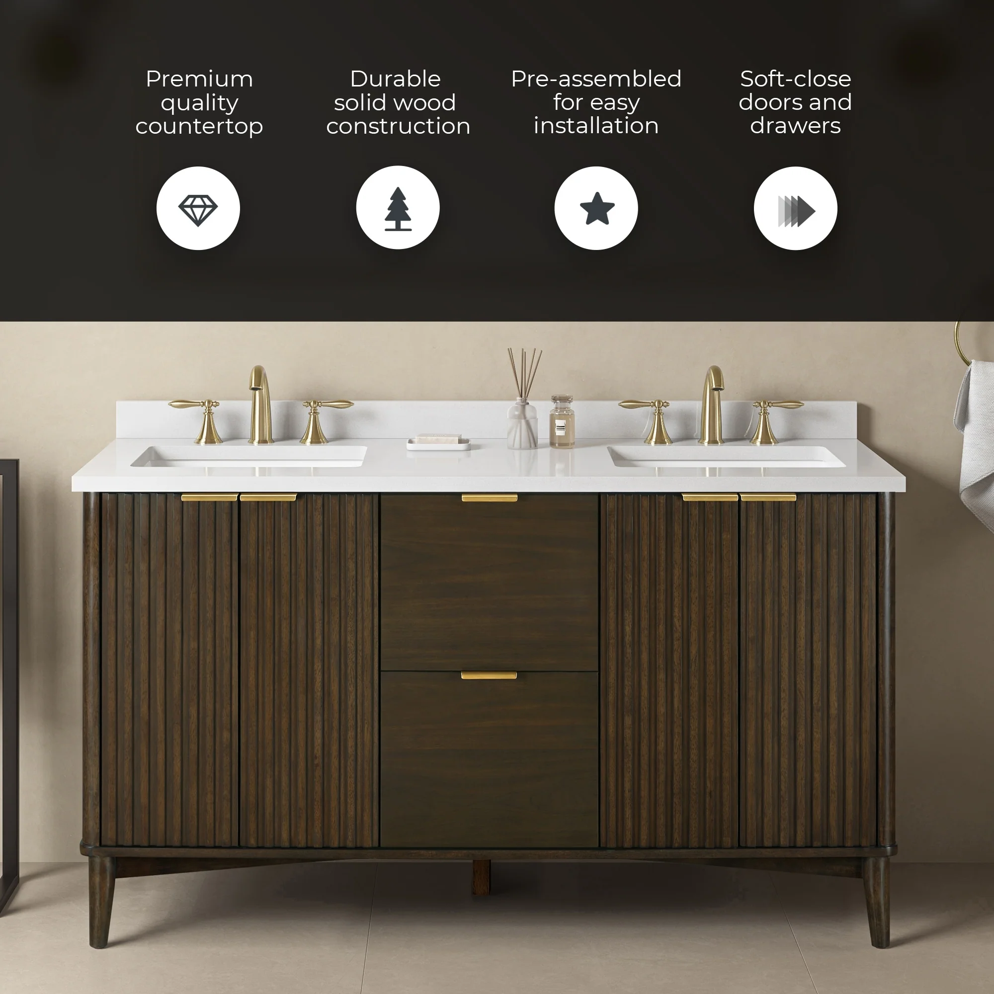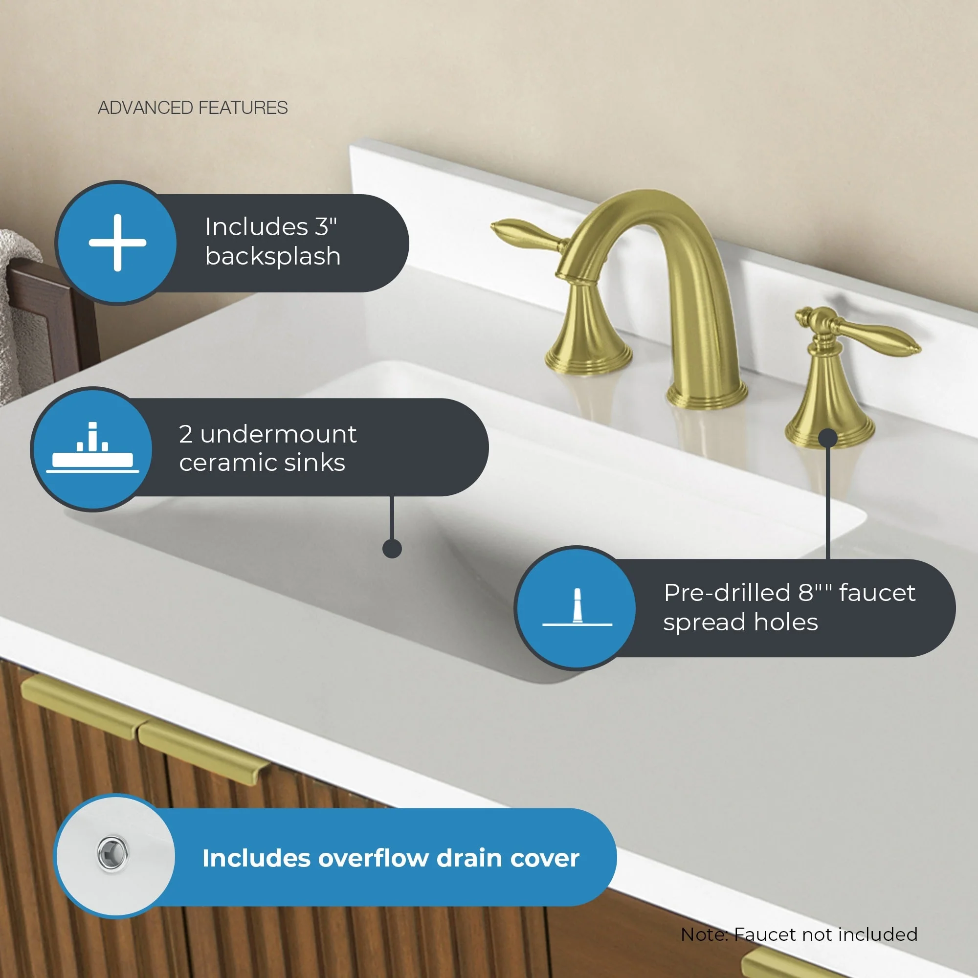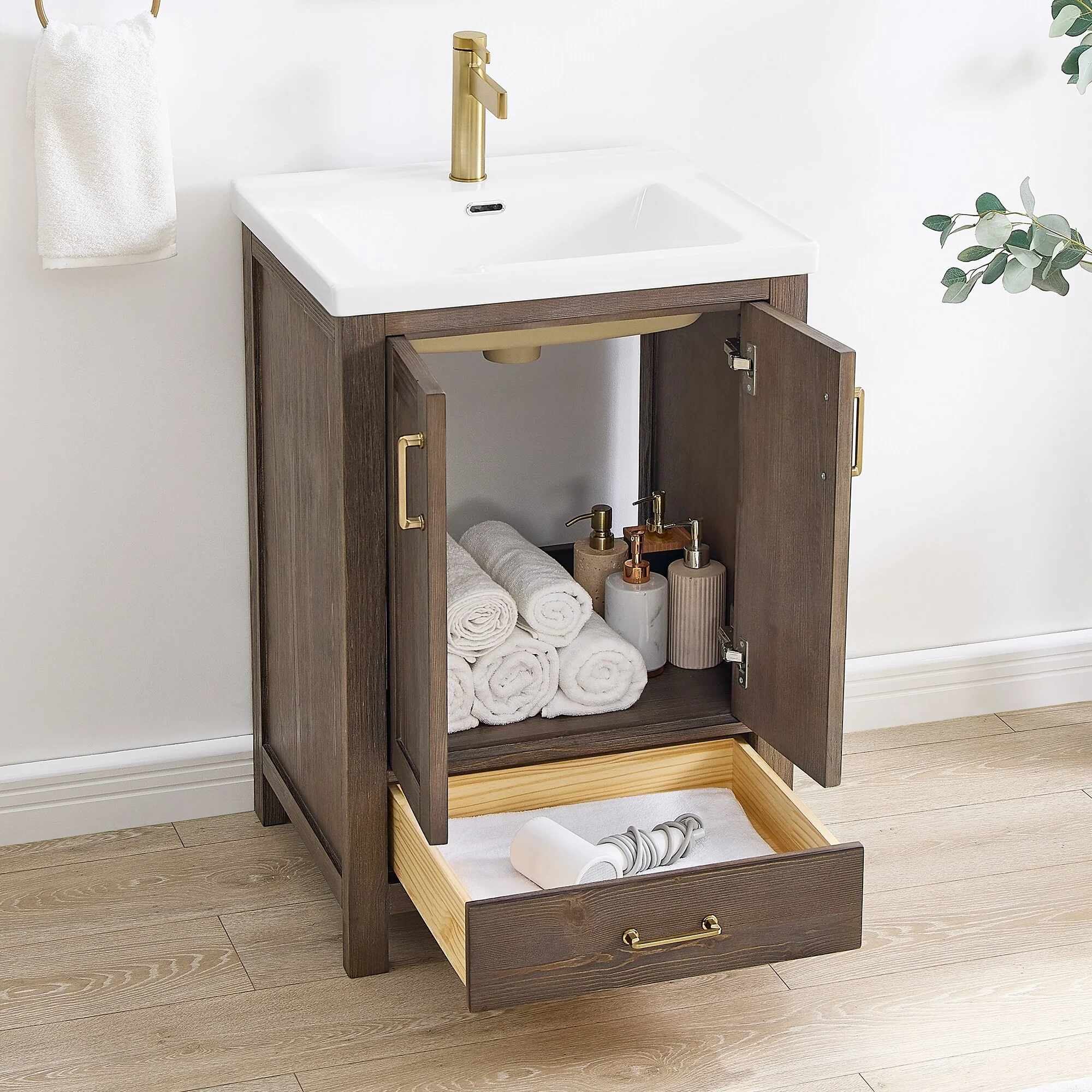 Brandy Integrated Ceramic Sink Top Vanity in Honey Walnut