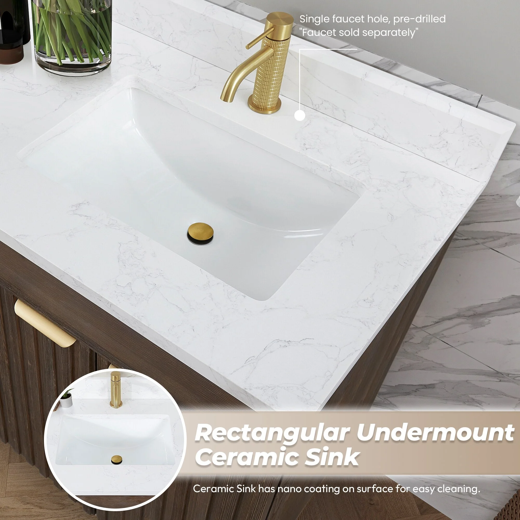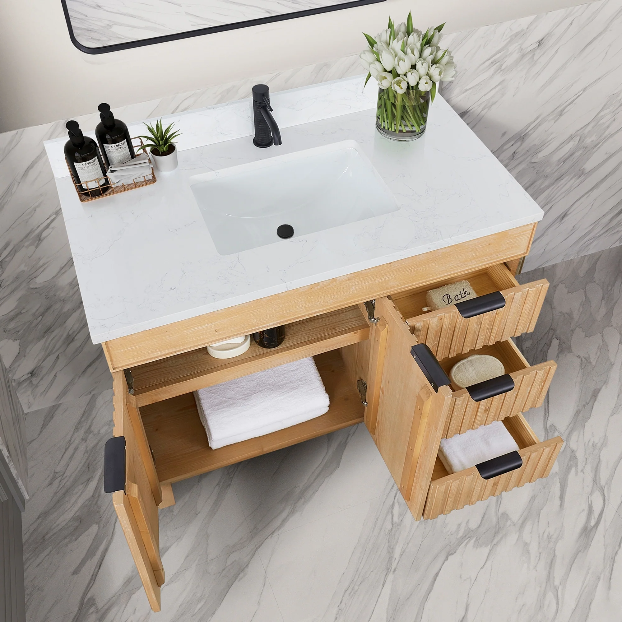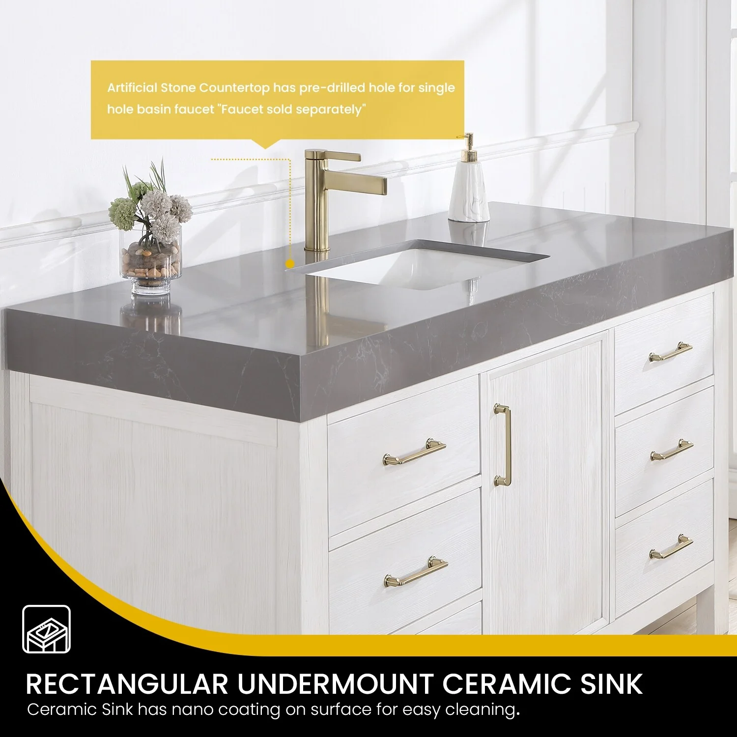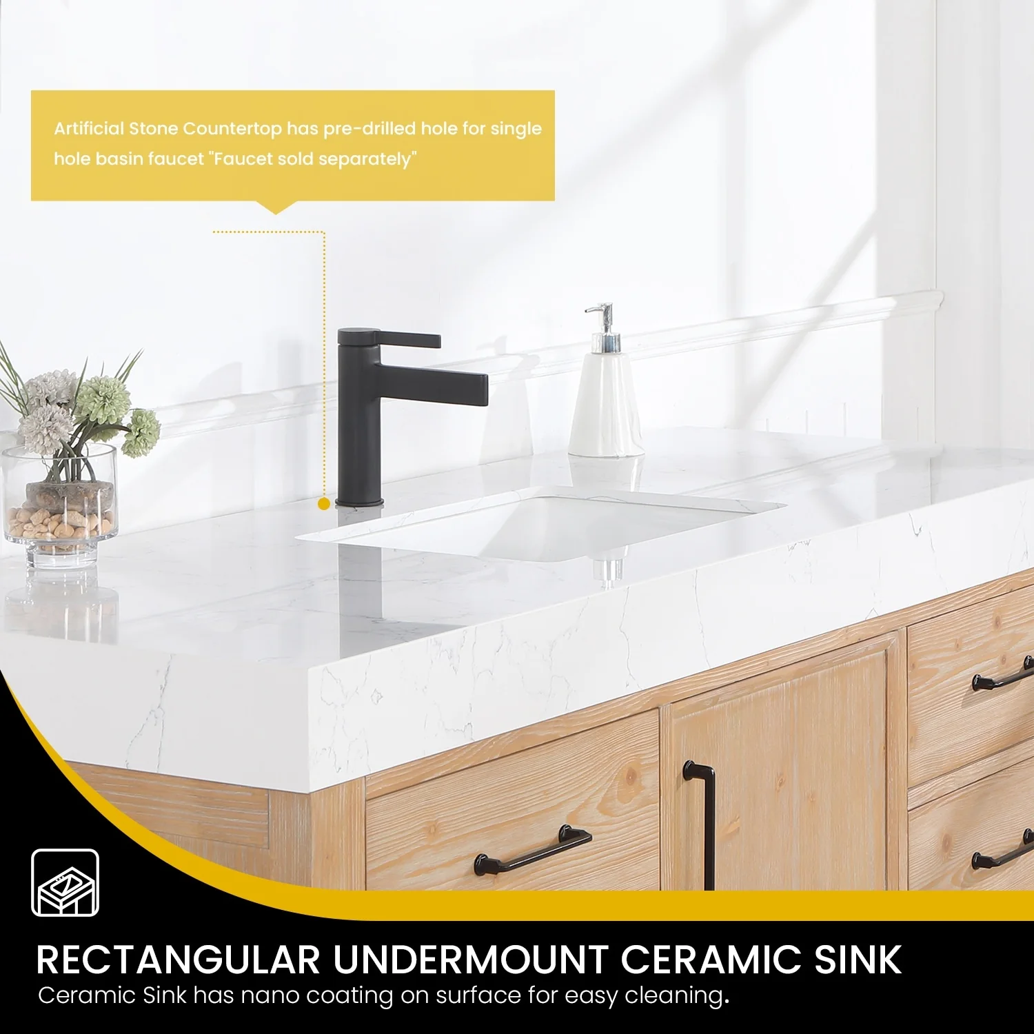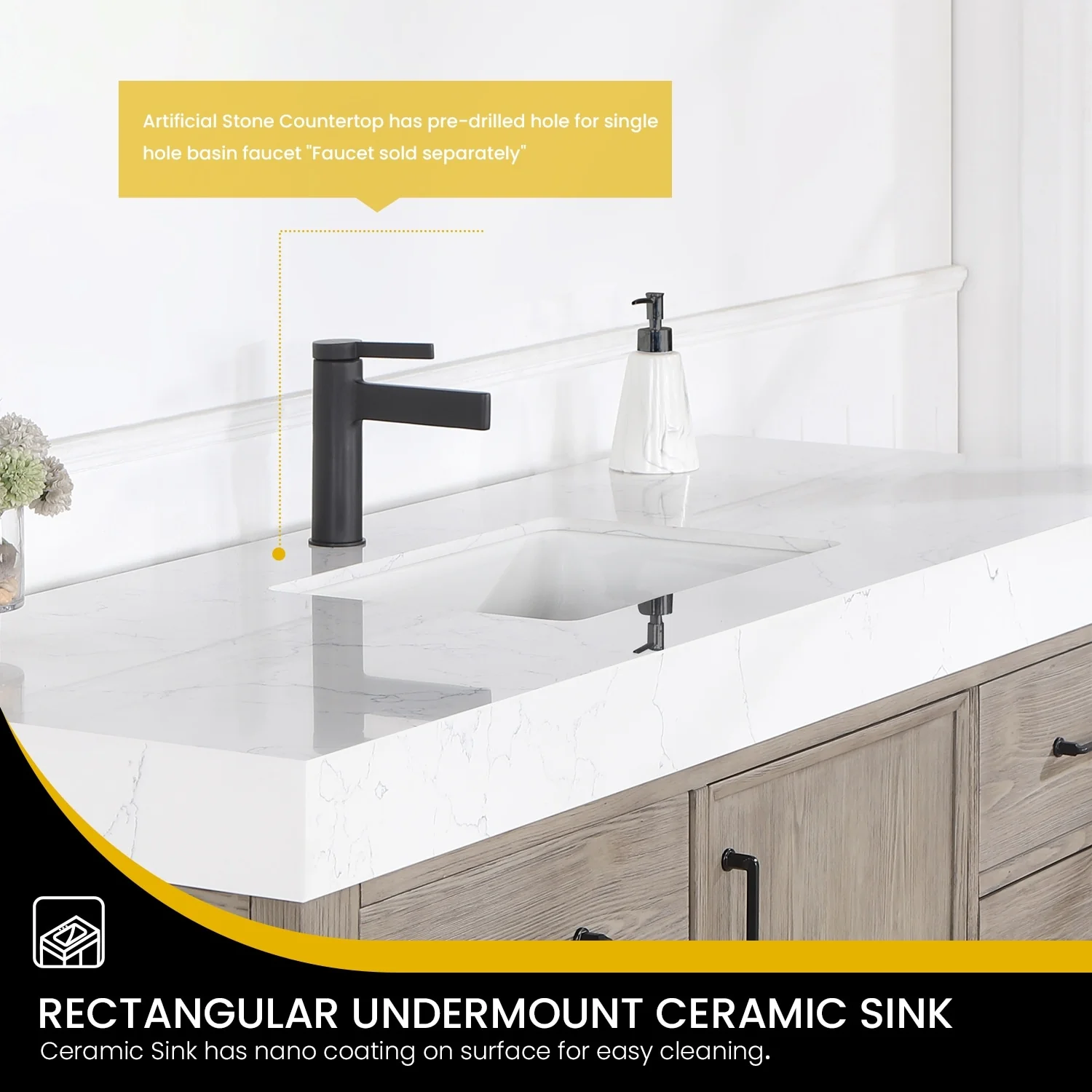 Javier Bath Vanity with Composite Stone Top without Mirror