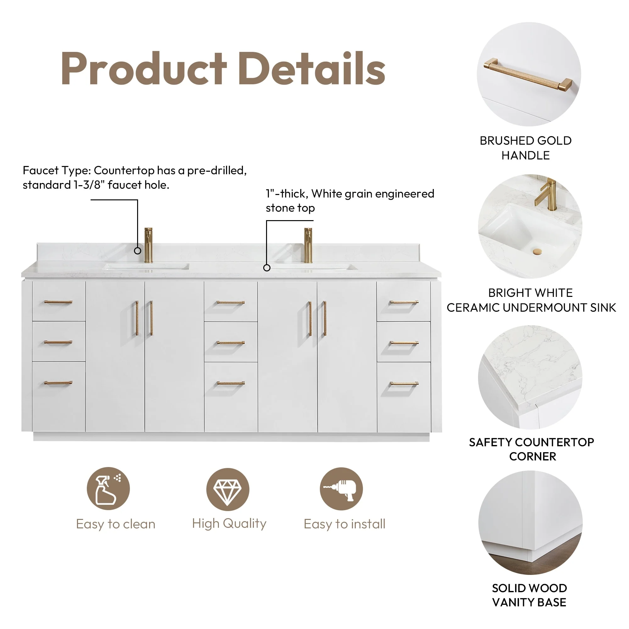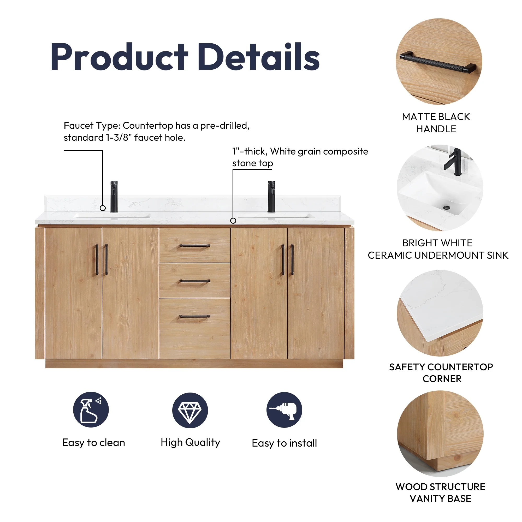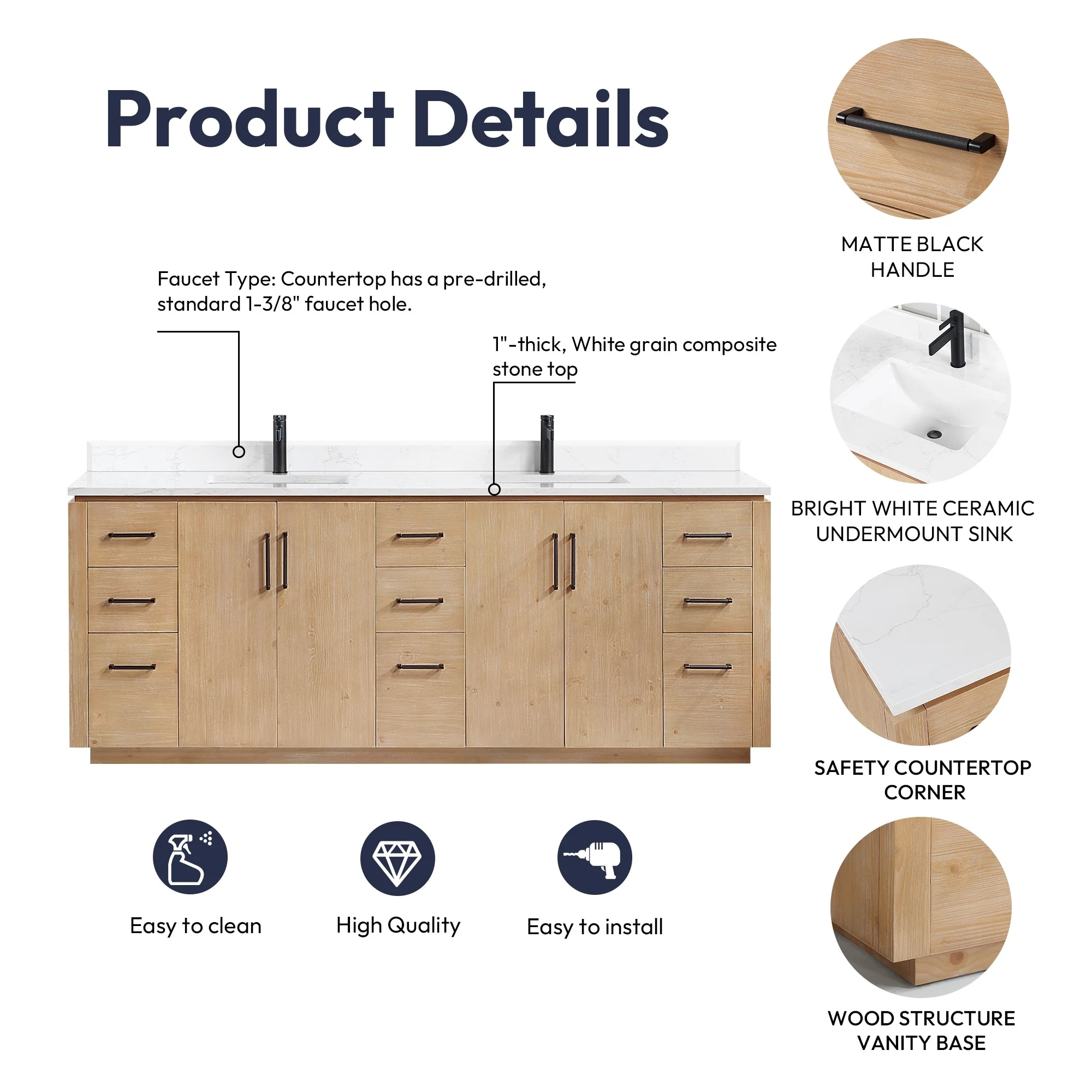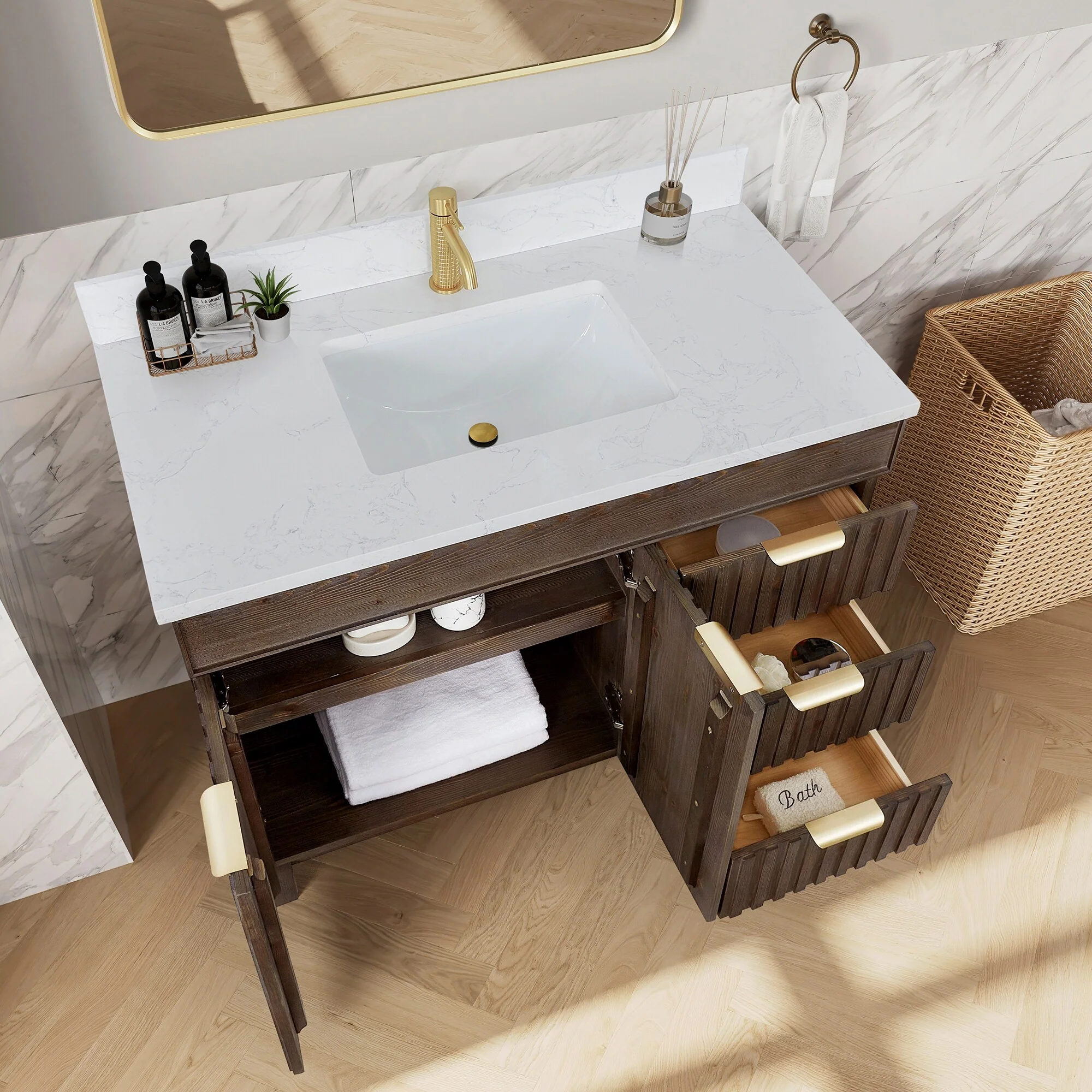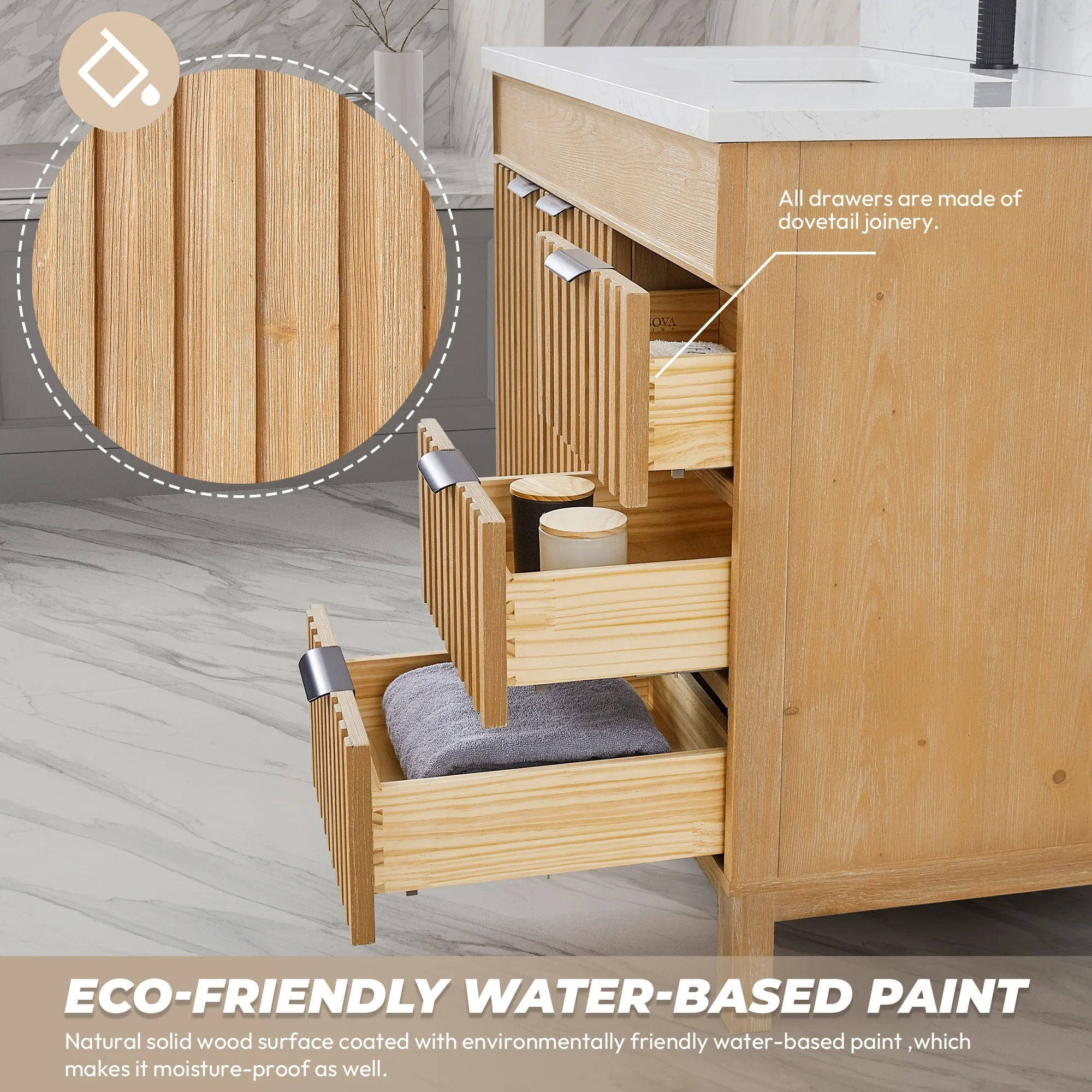 Javier Bath Vanity with Composite Stone Top without Mirror