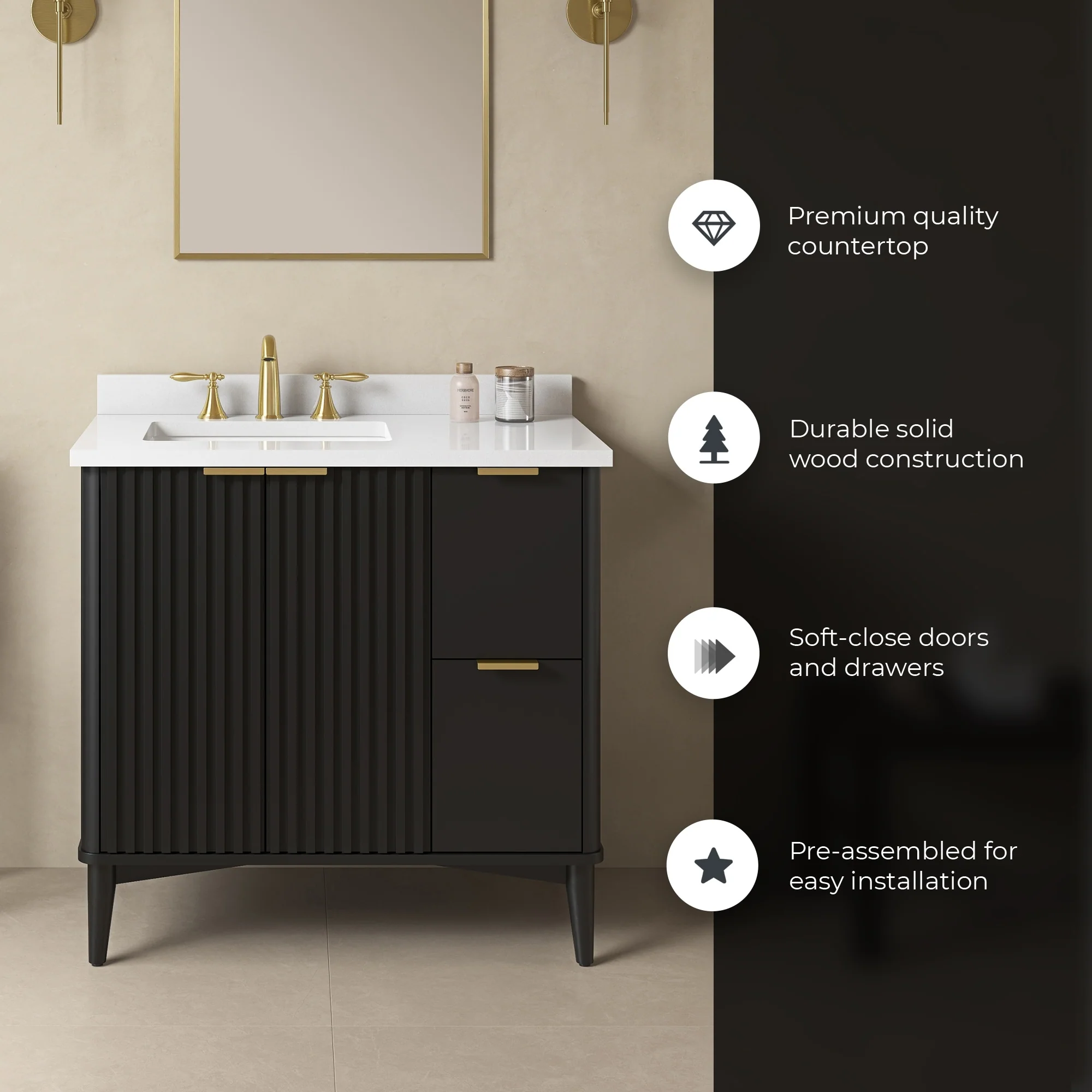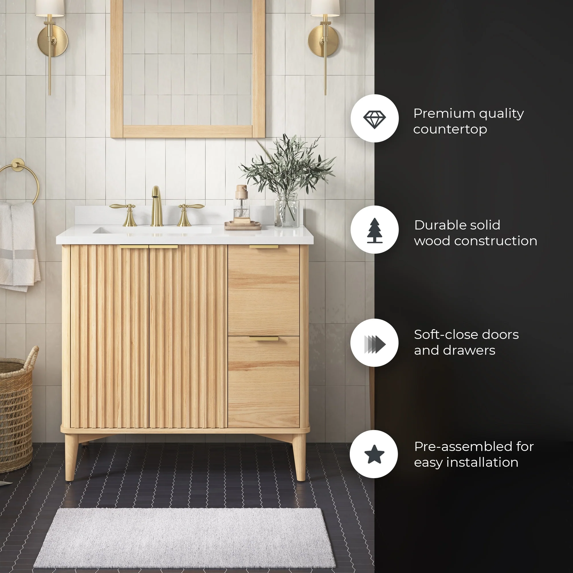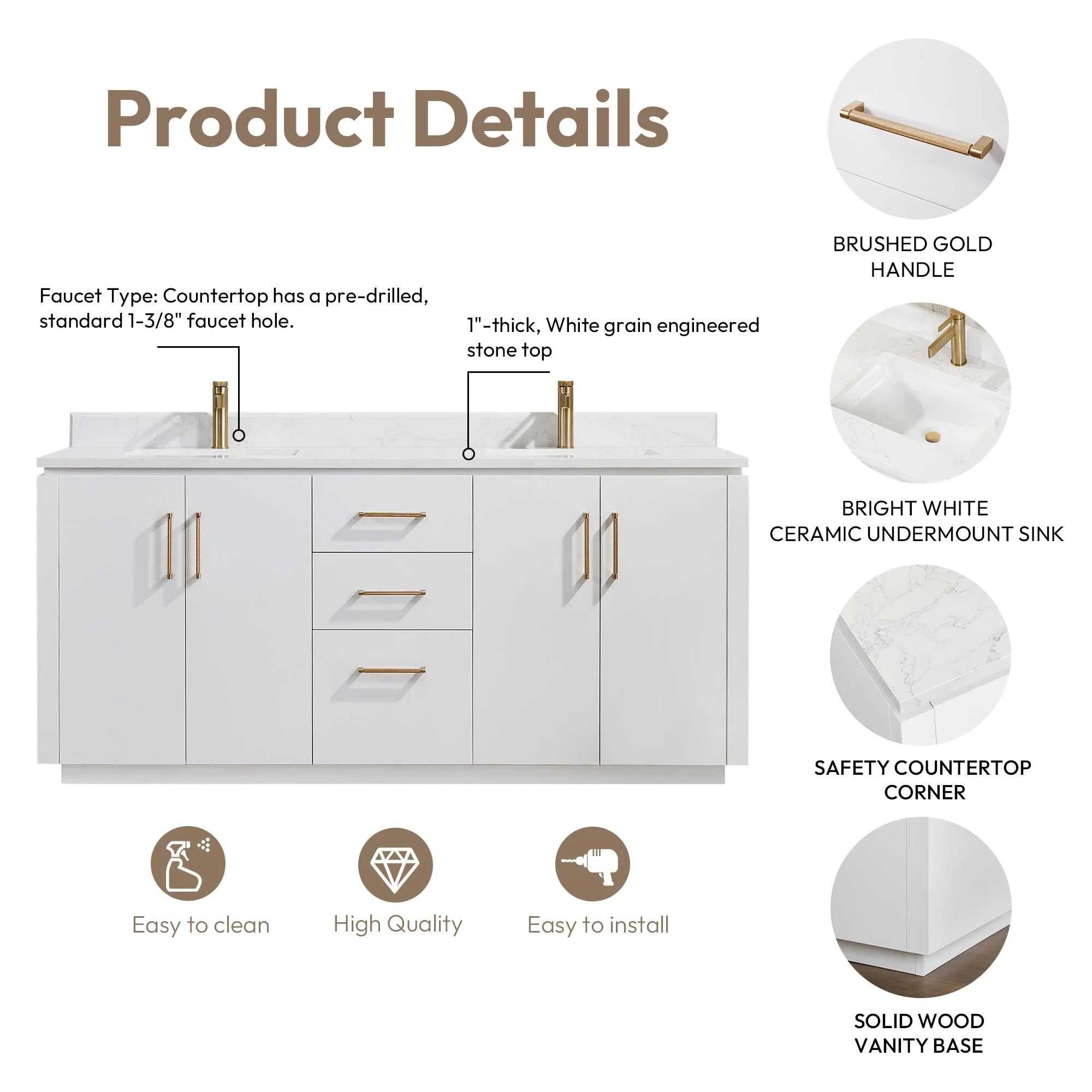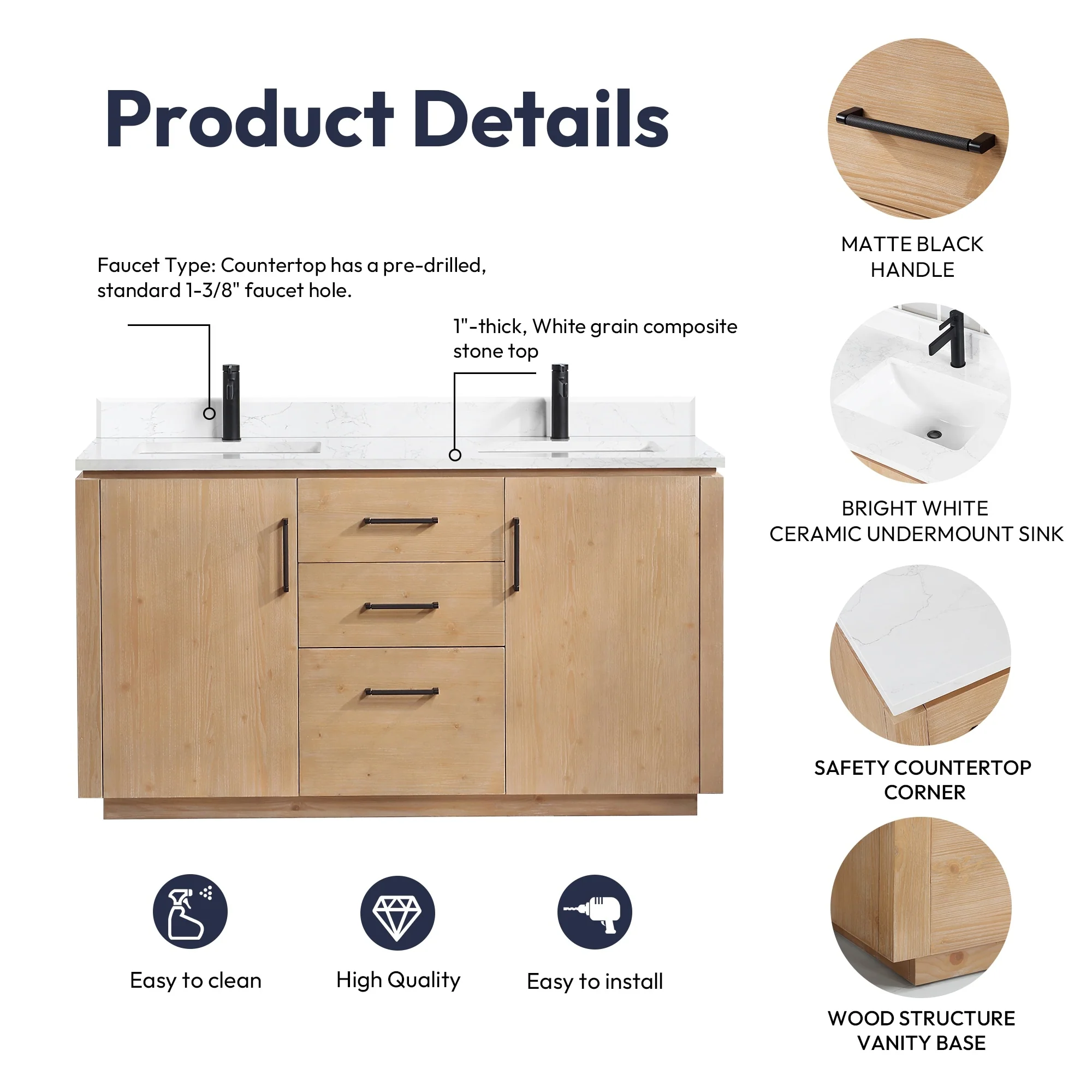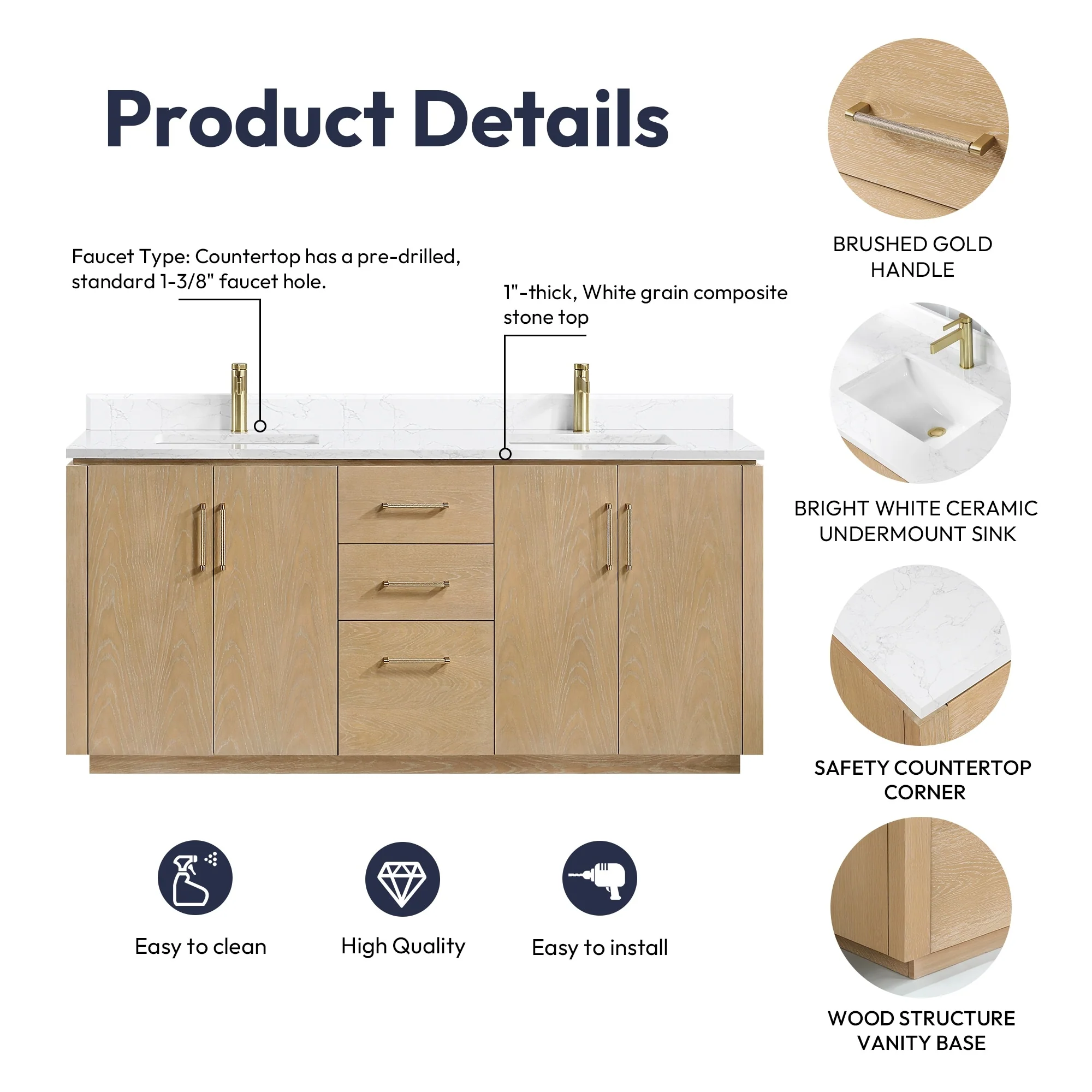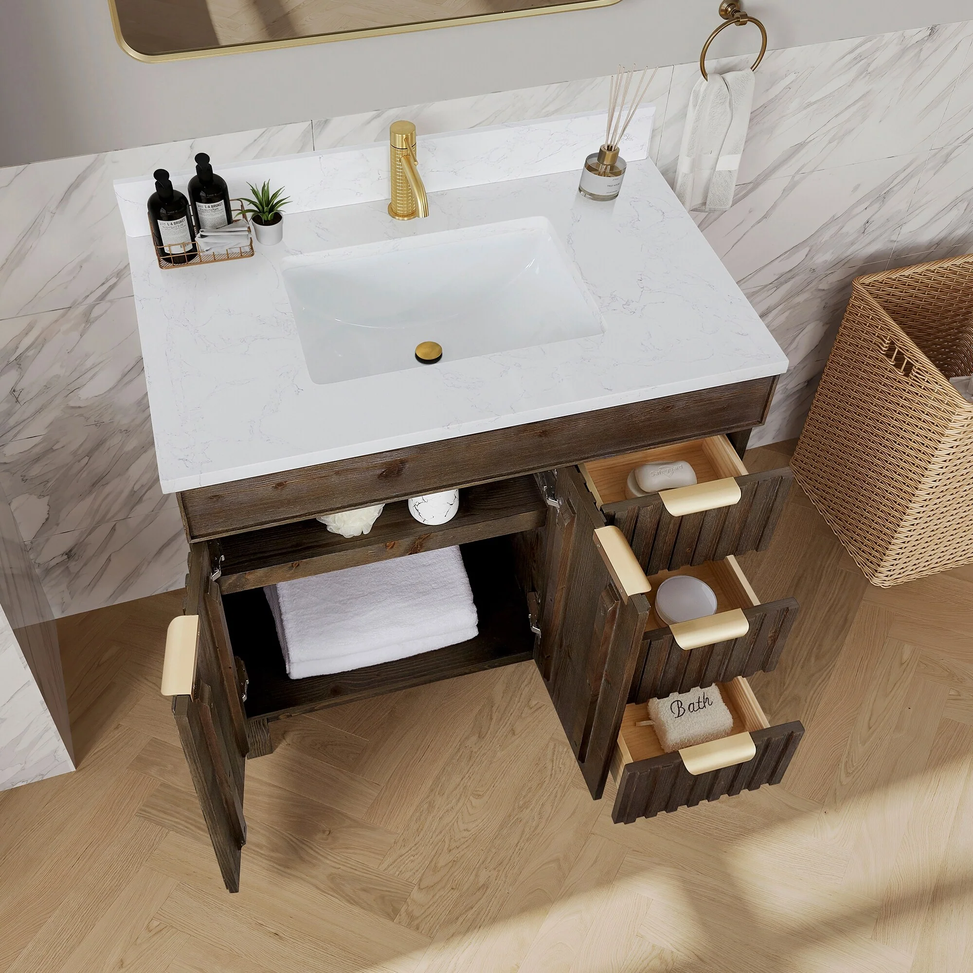 Javier Bath Vanity with Composite Stone Top without Mirror