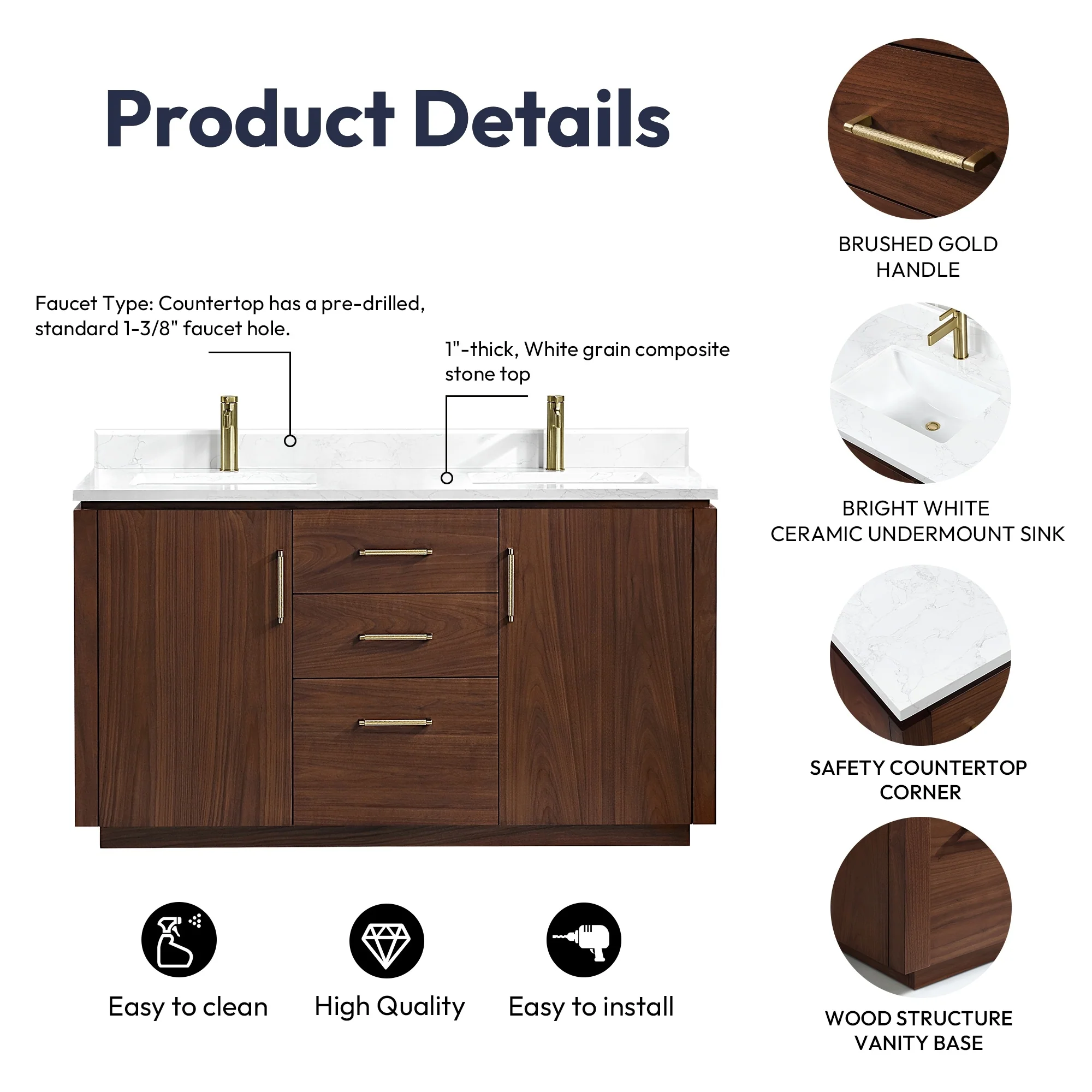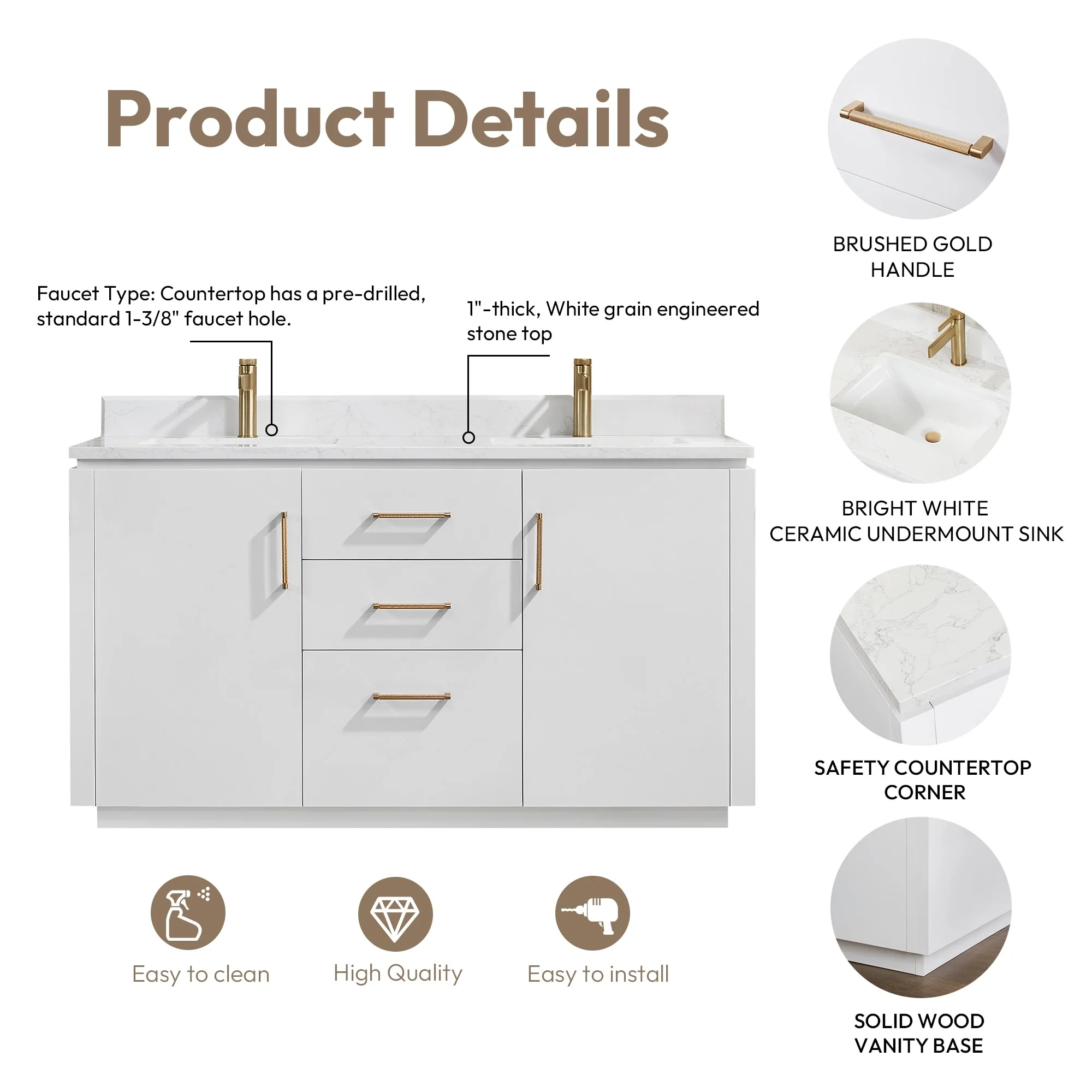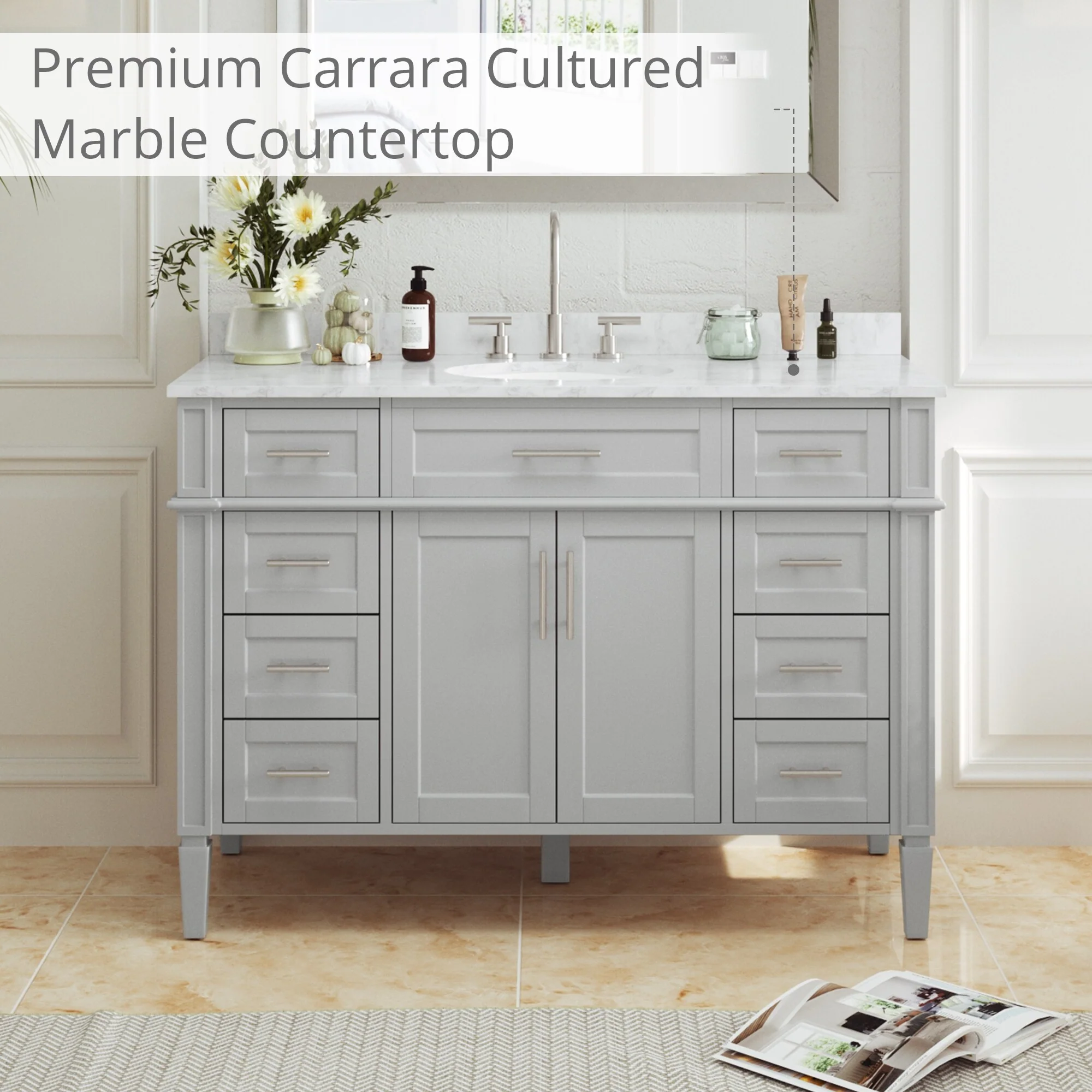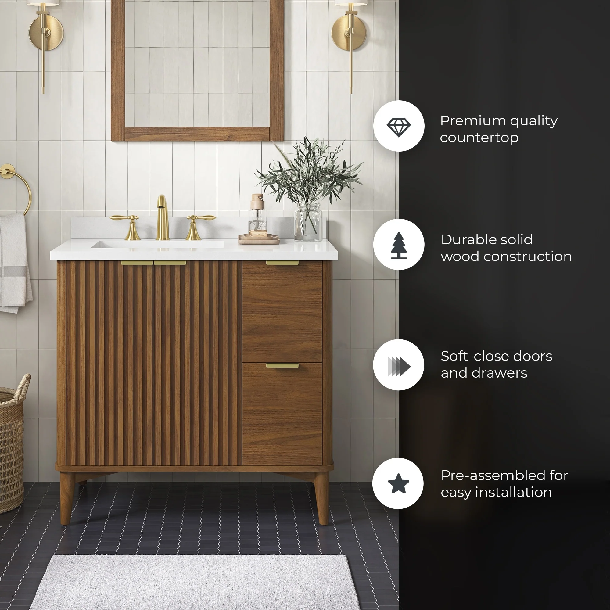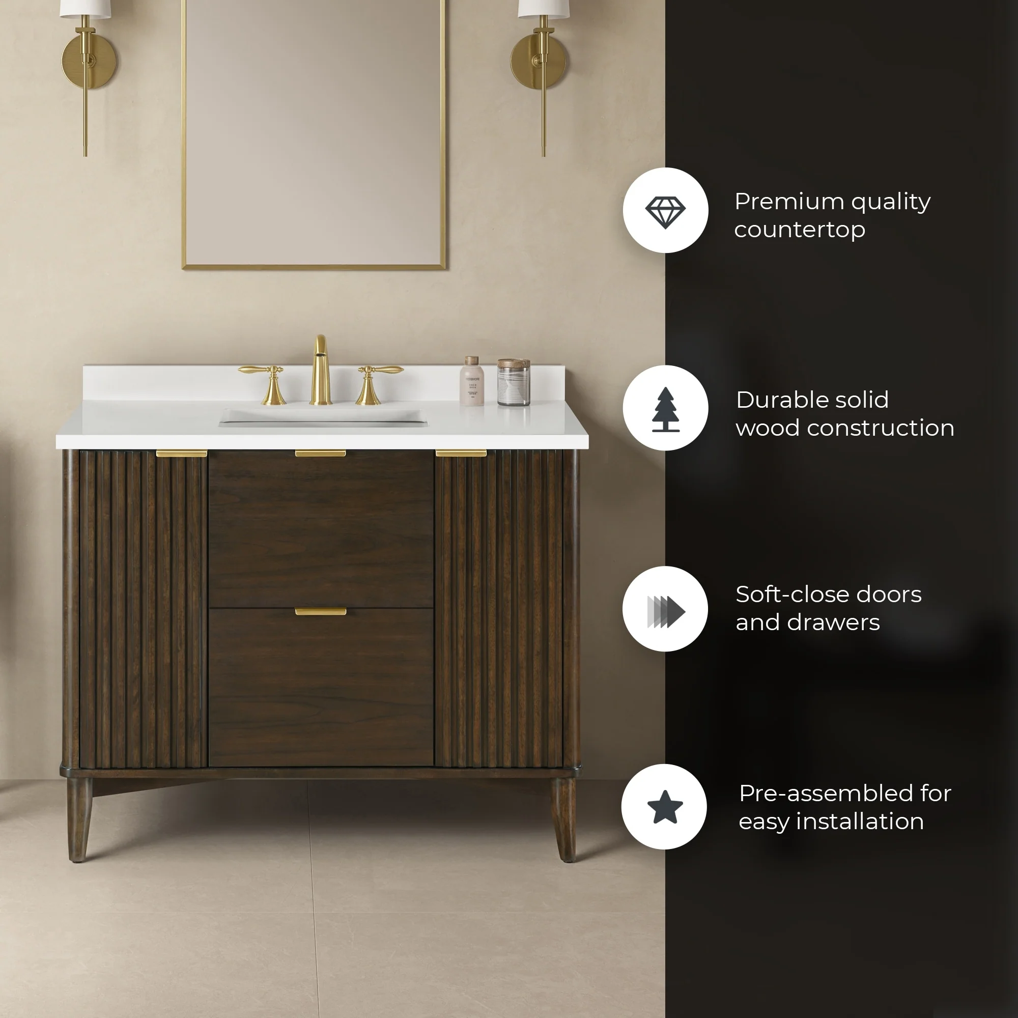 Javier Bath Vanity with Composite Stone Top without Mirror