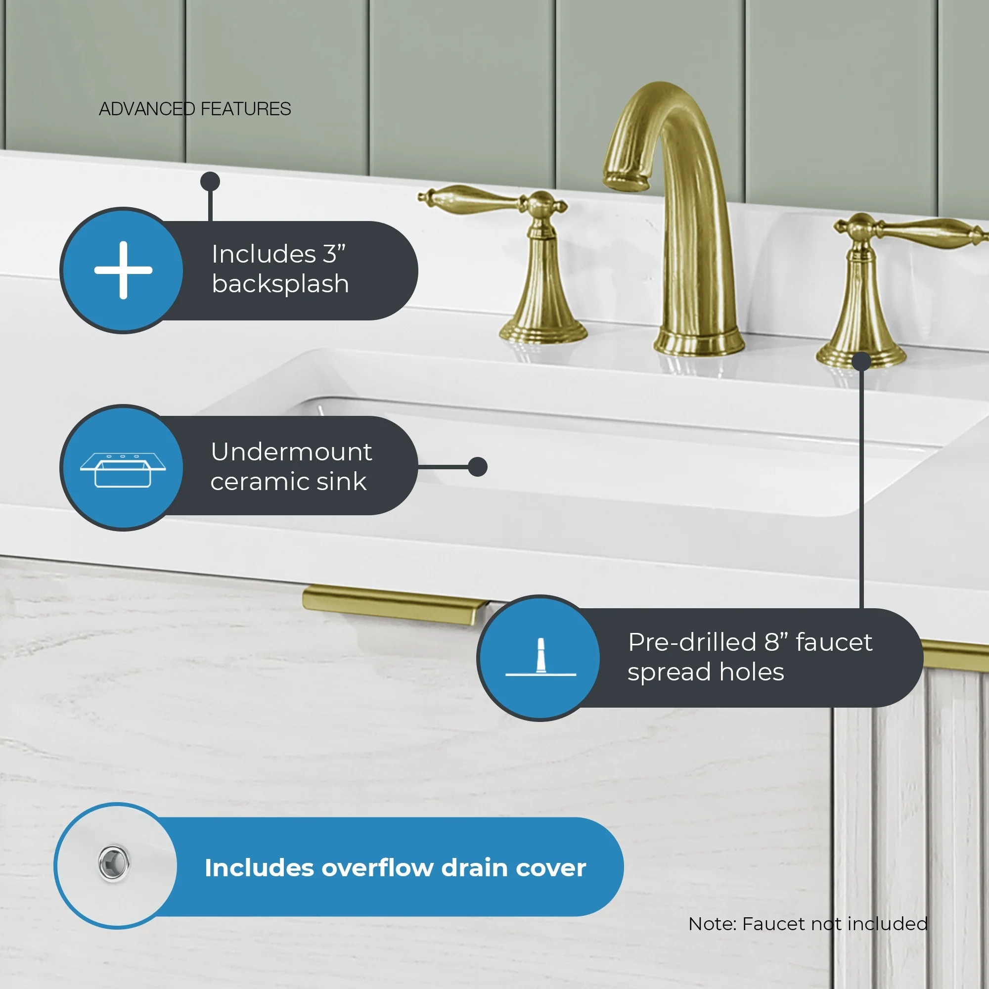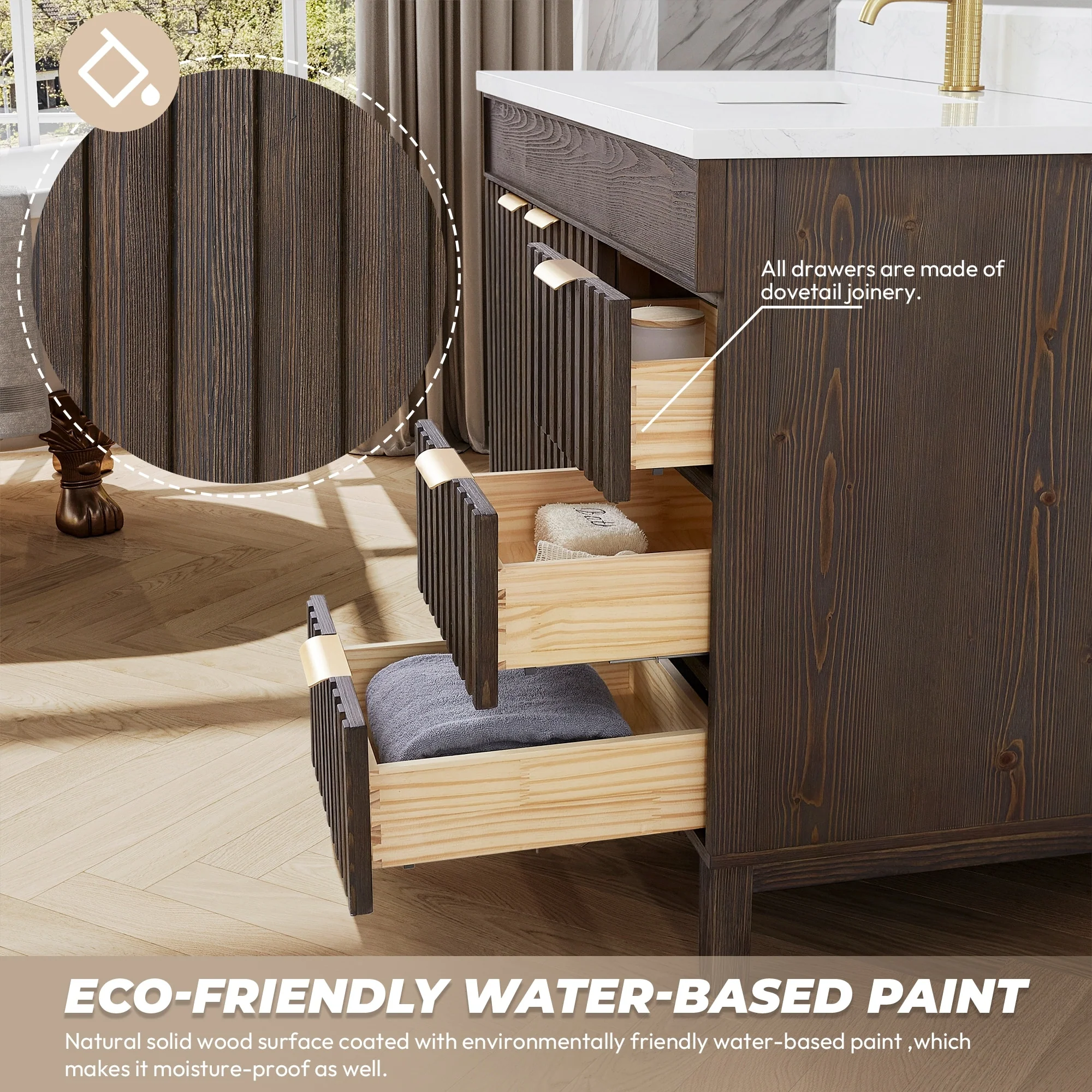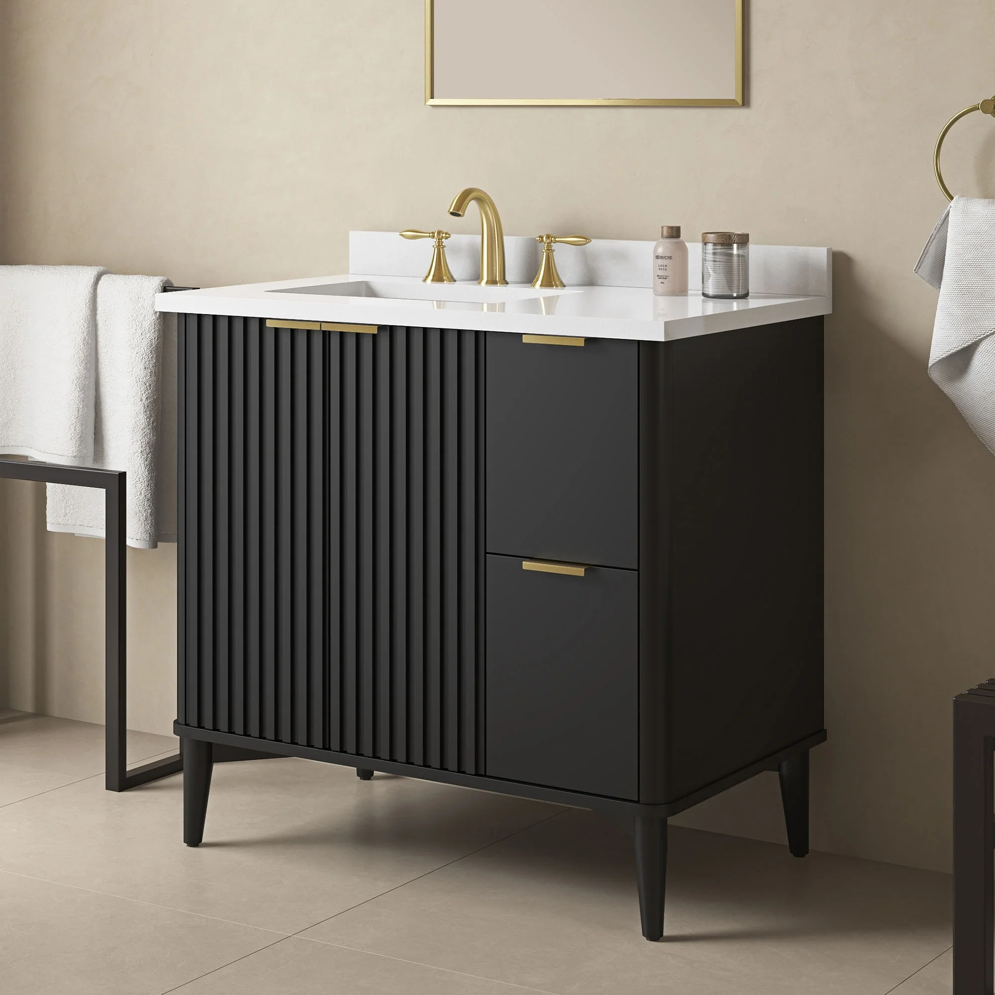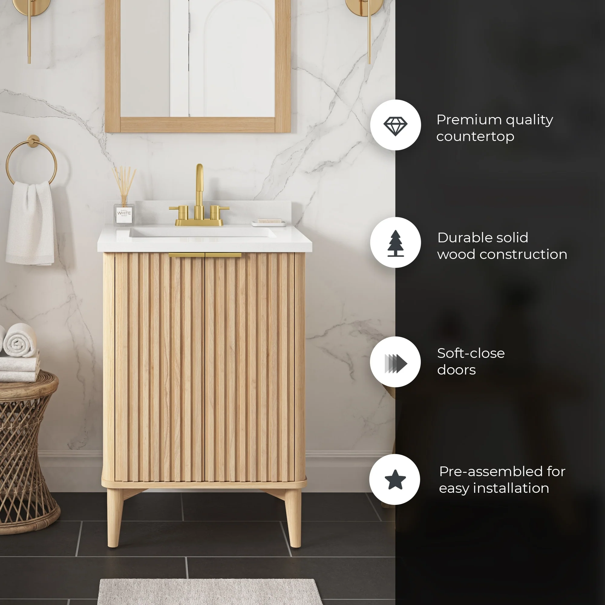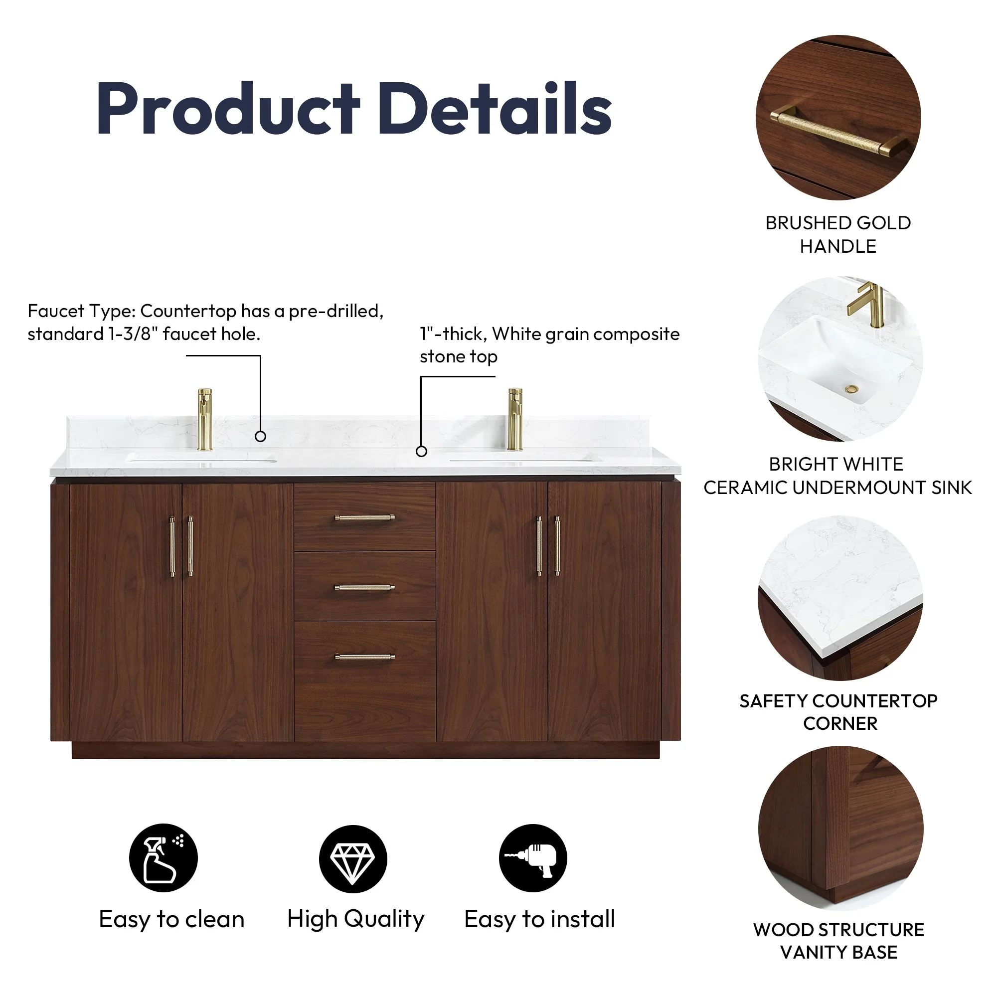 Javier Bath Vanity with Composite Stone Top without Mirror