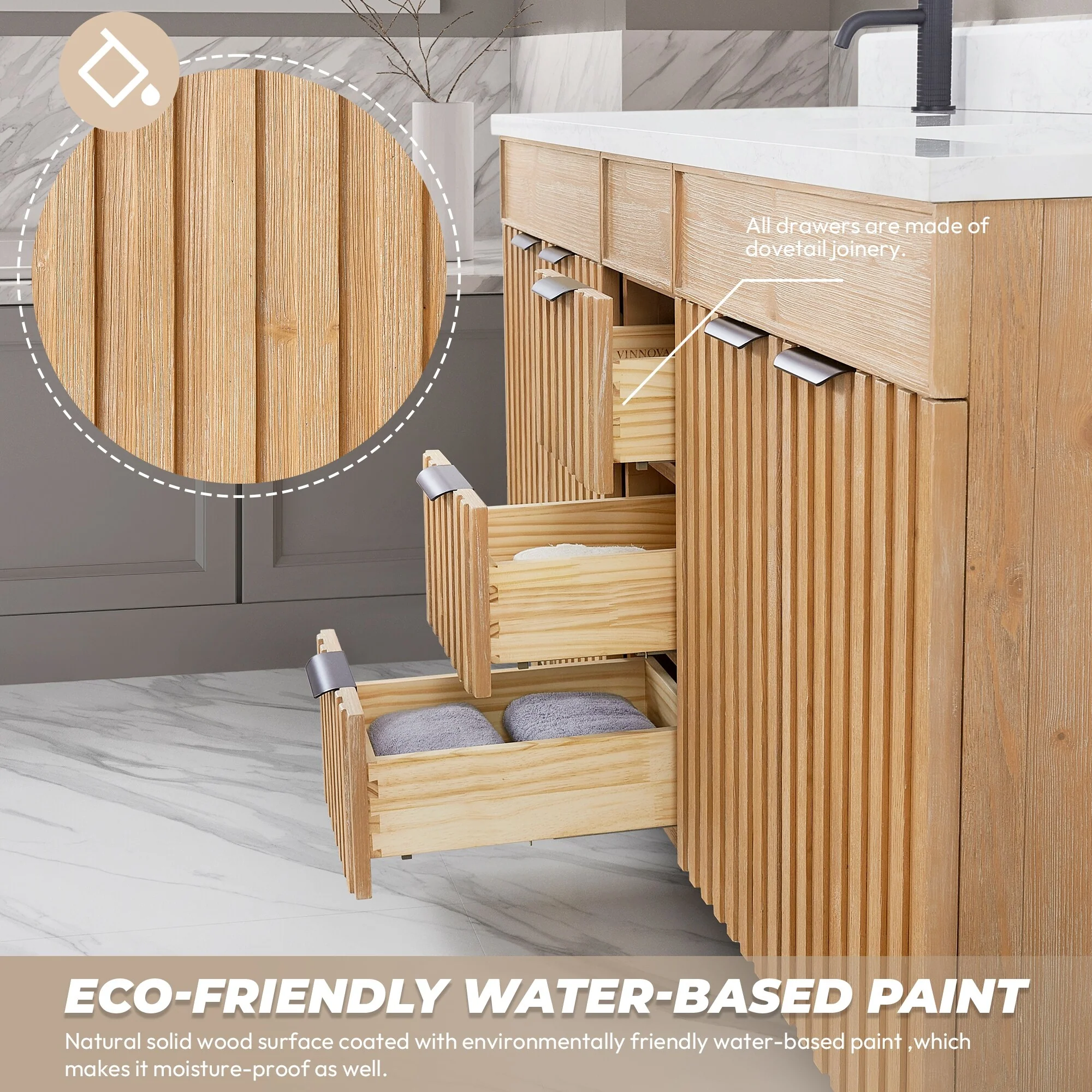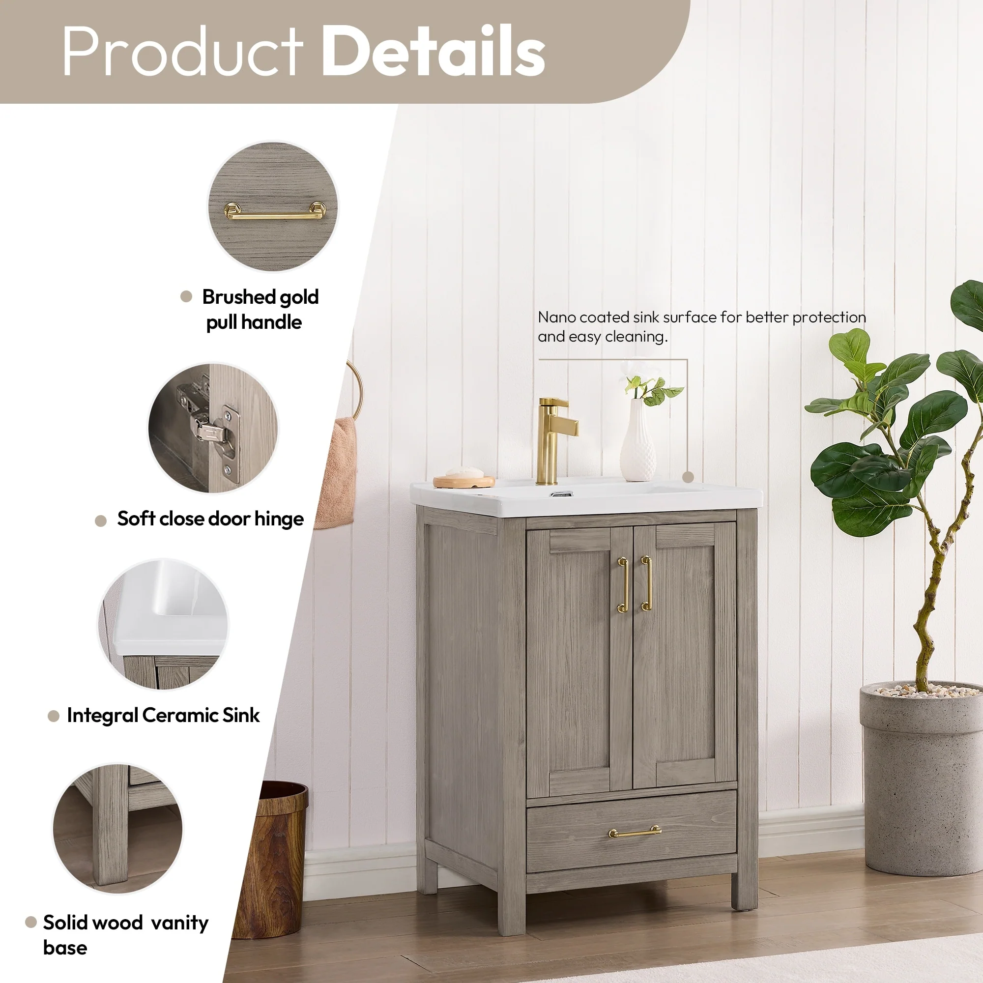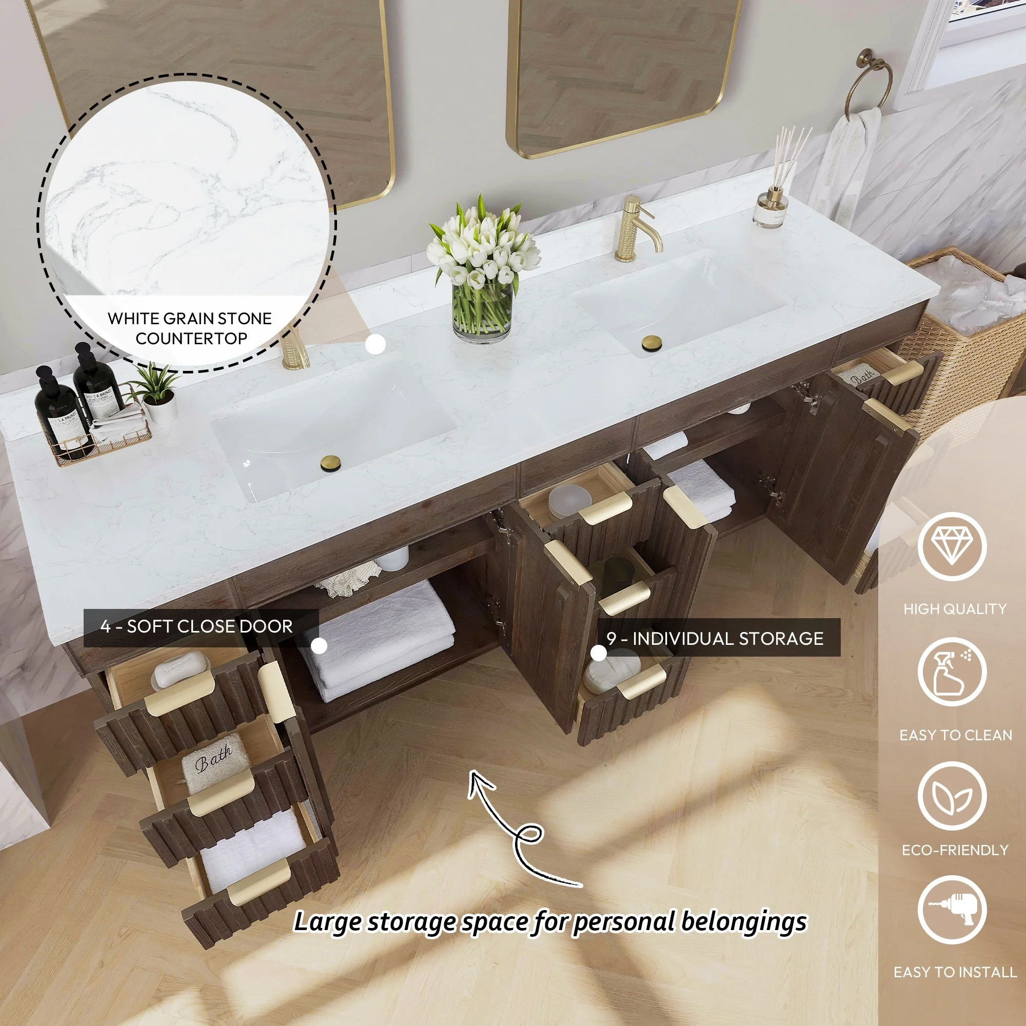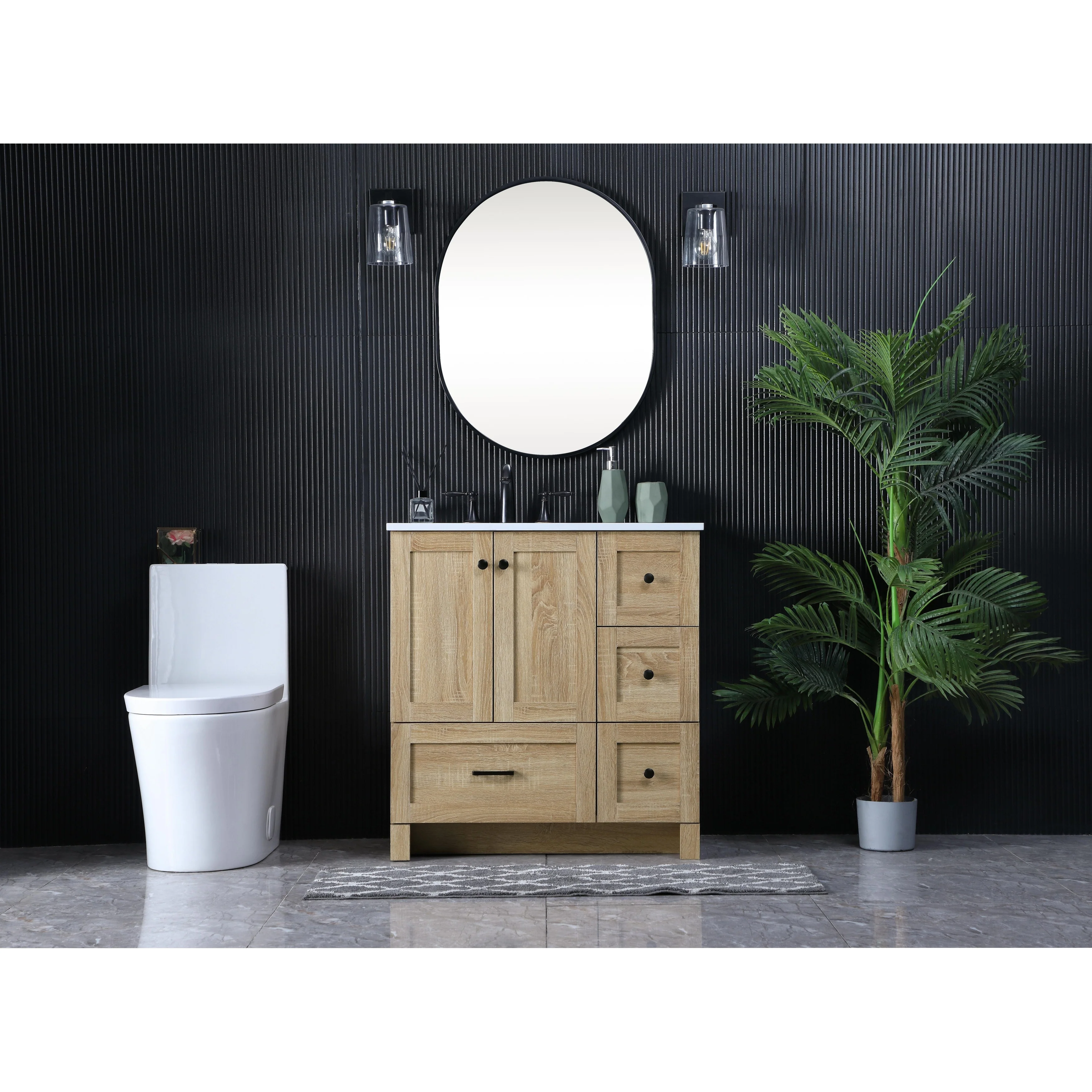 Palos Bath Vanity with Grain Composite Stone Top without Mirror