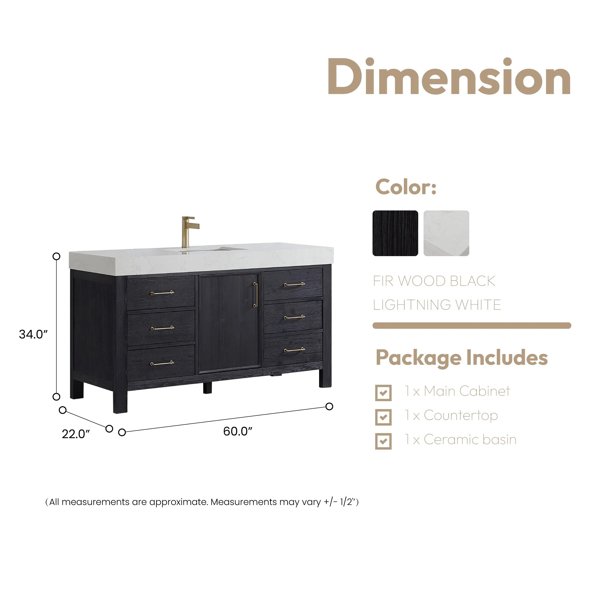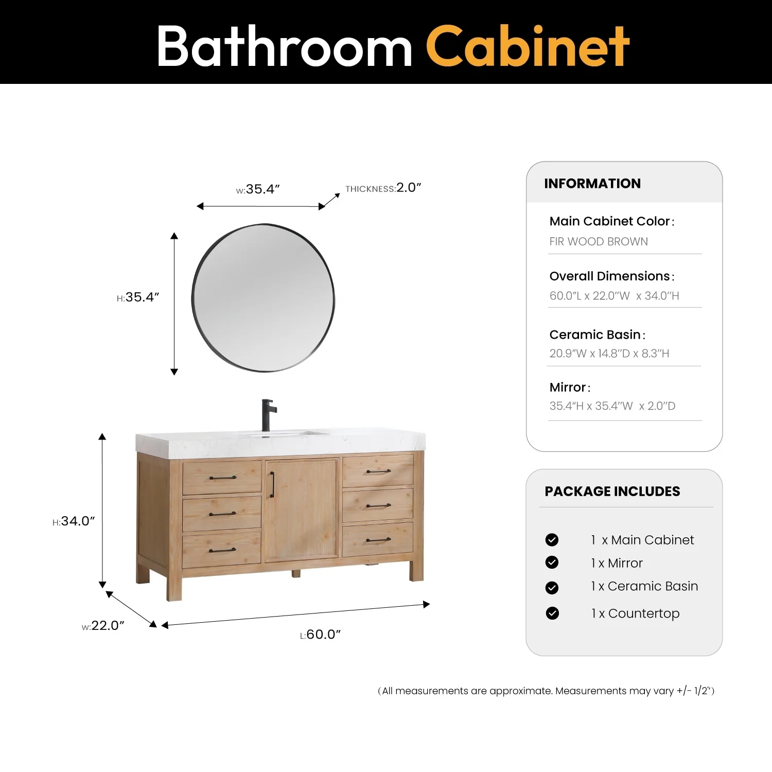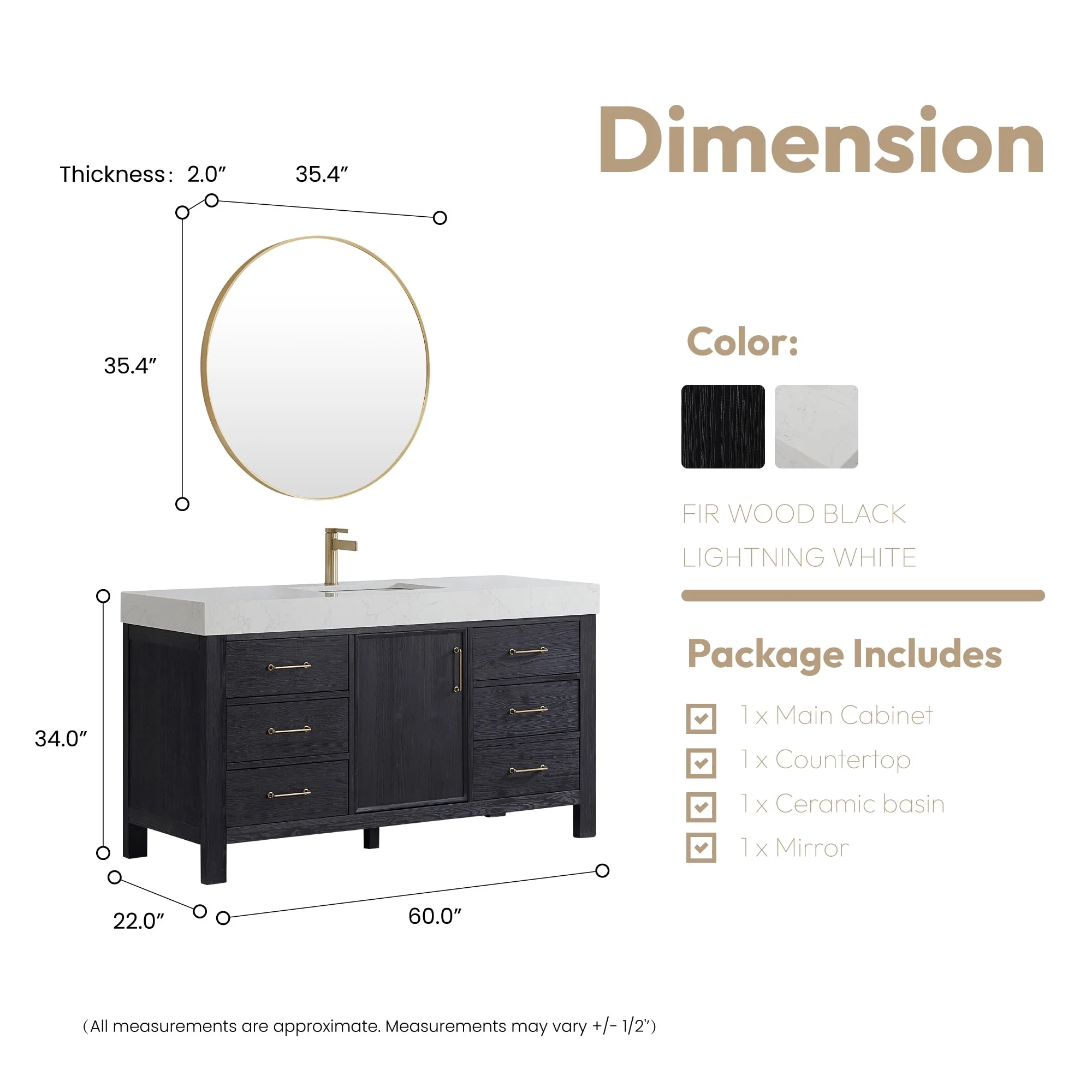 60 in. - Black - No Mirror