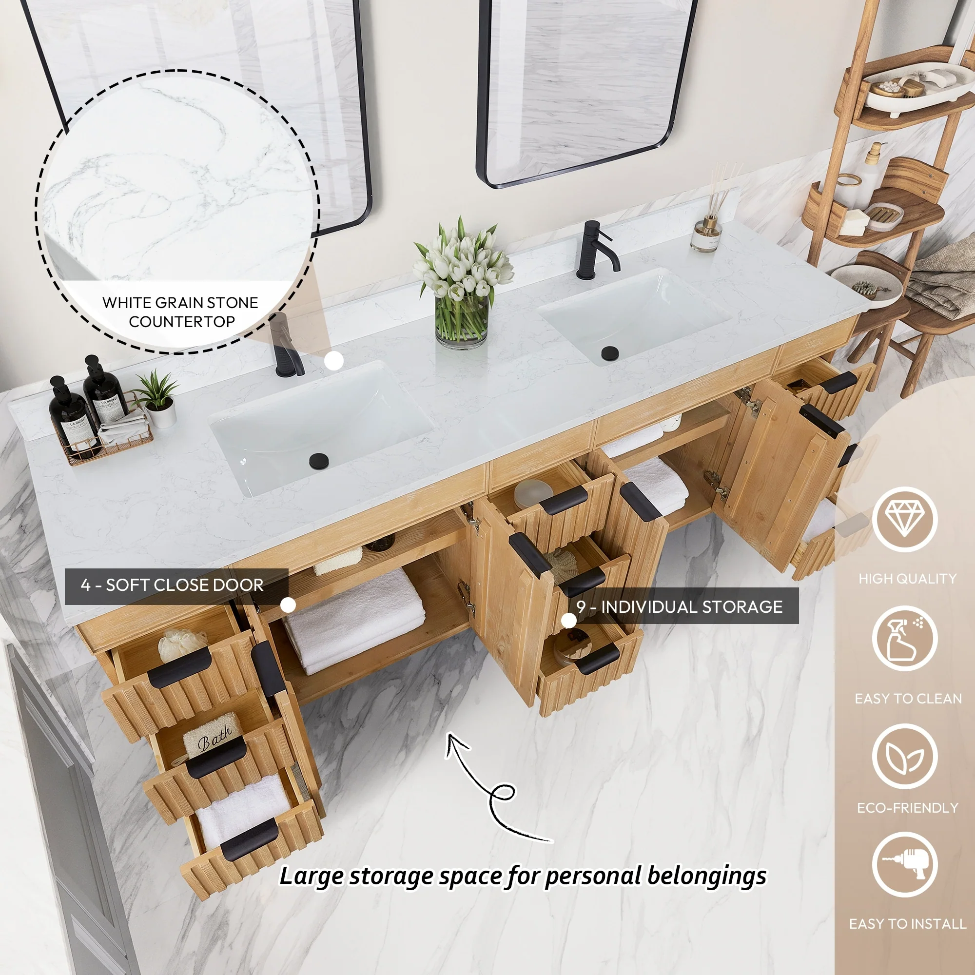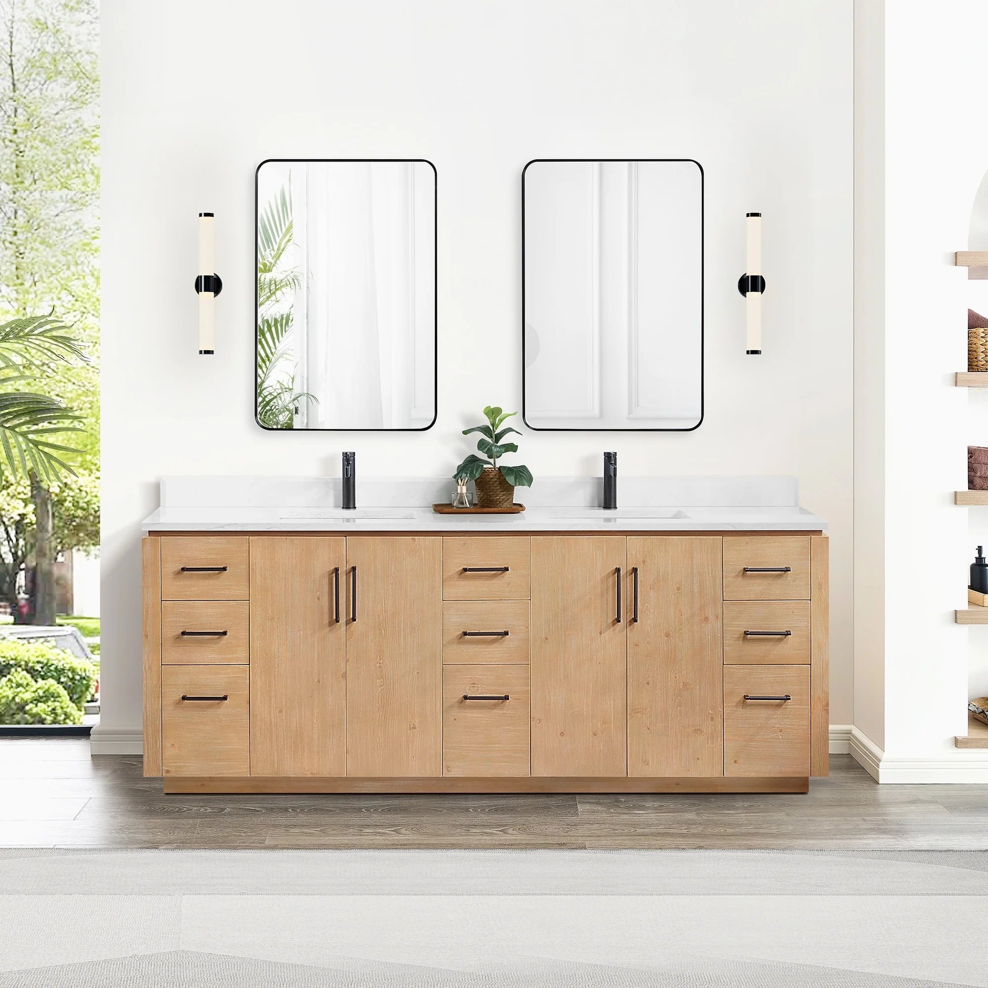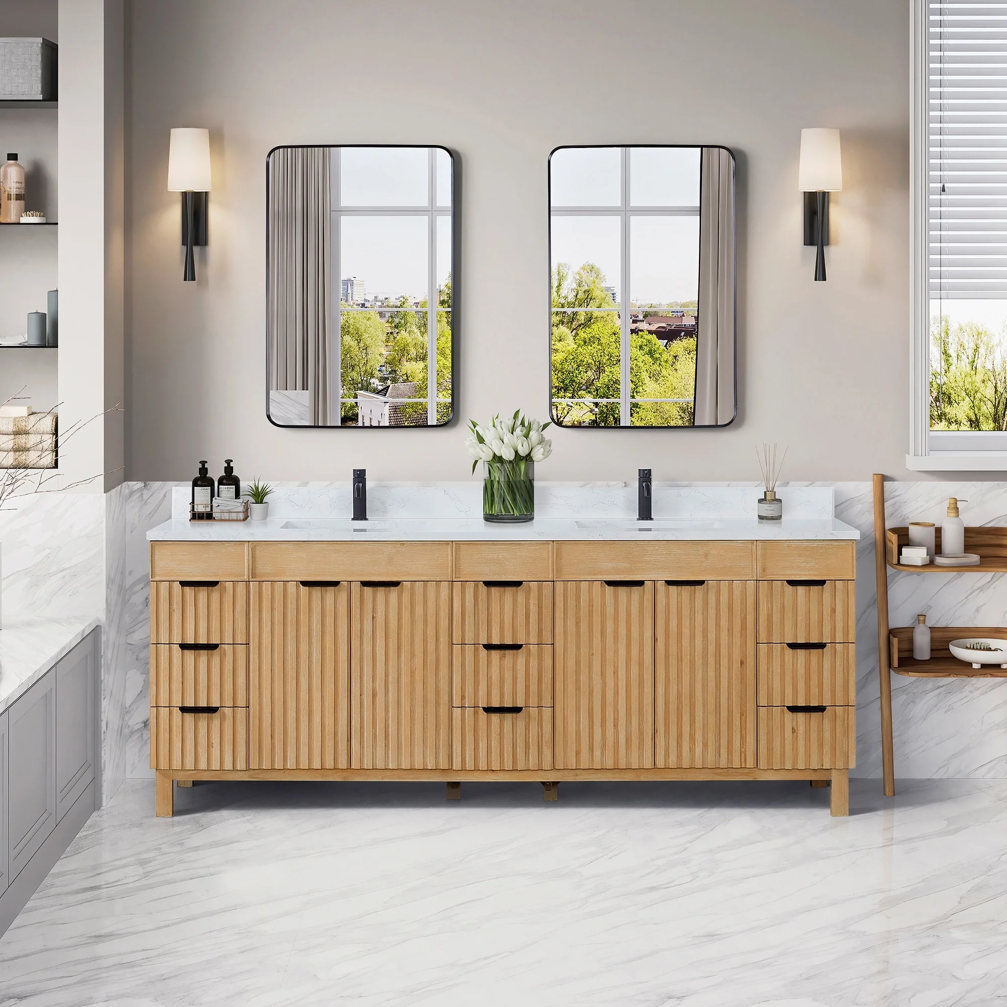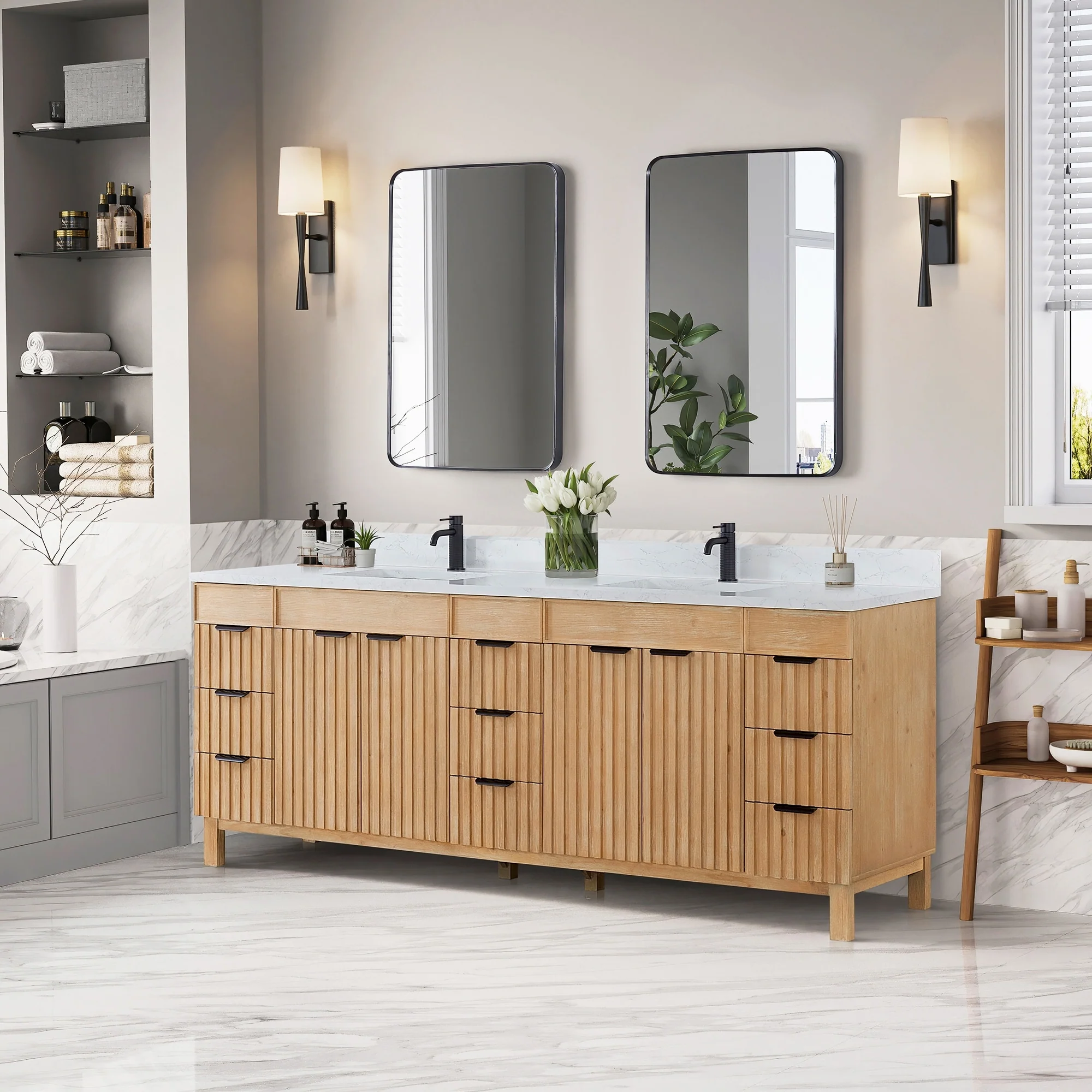 Leon 84 in. Double Bathroom Vanity with Composite Stone Top