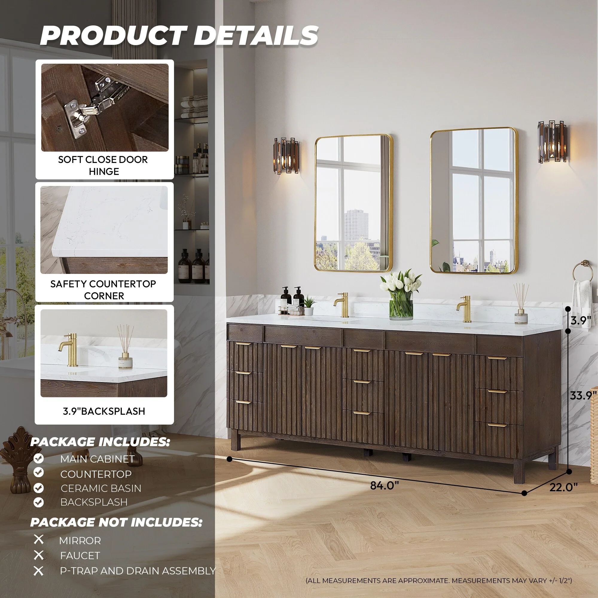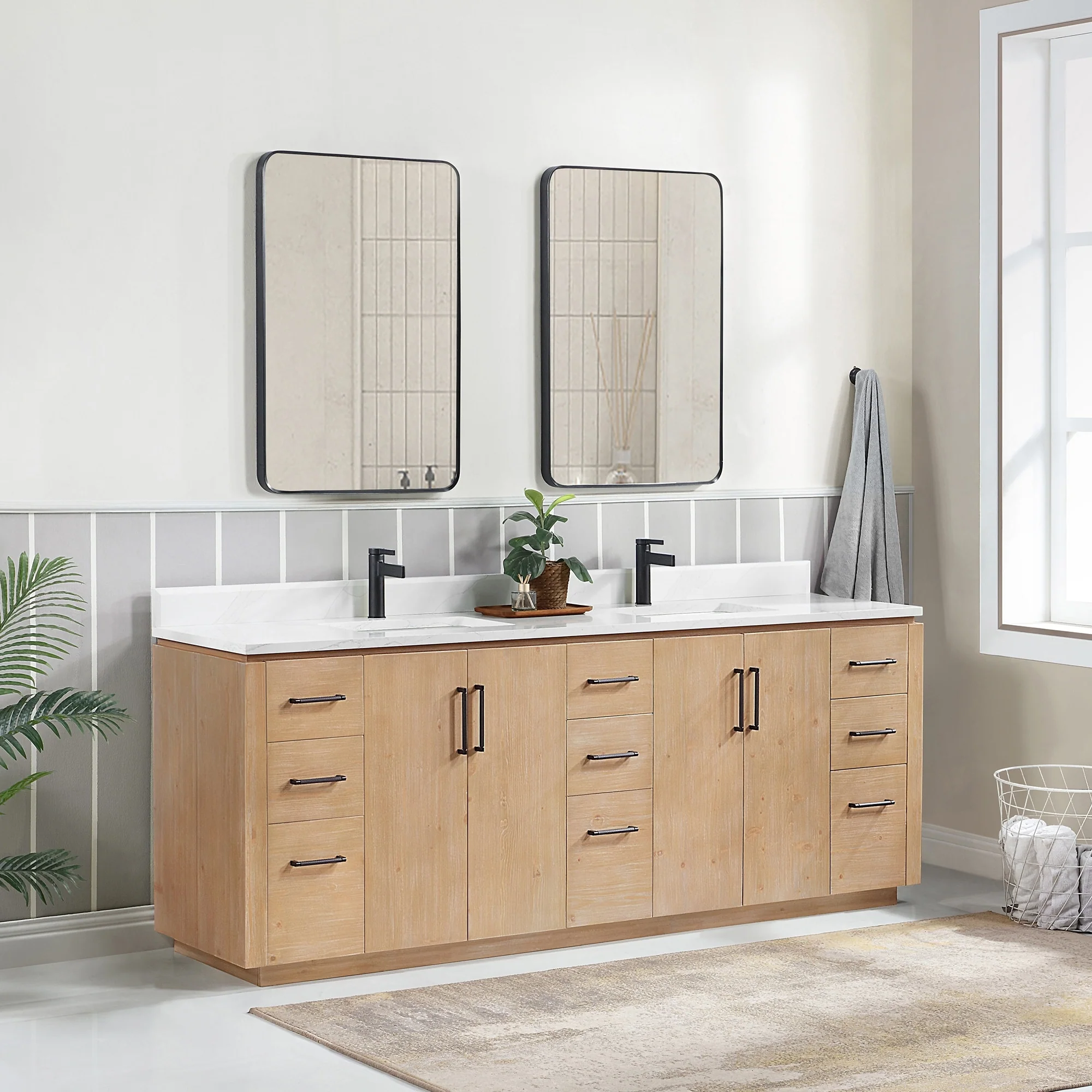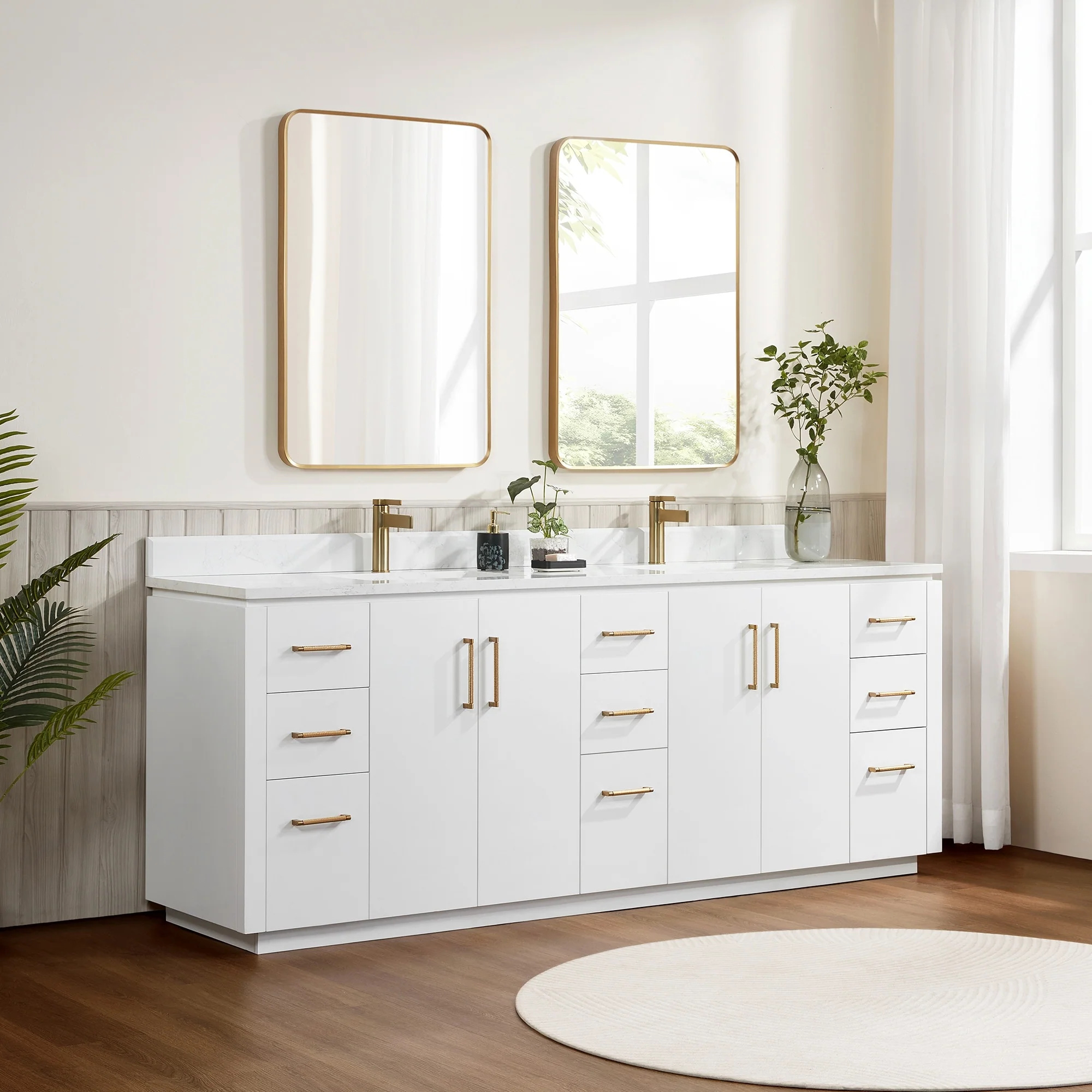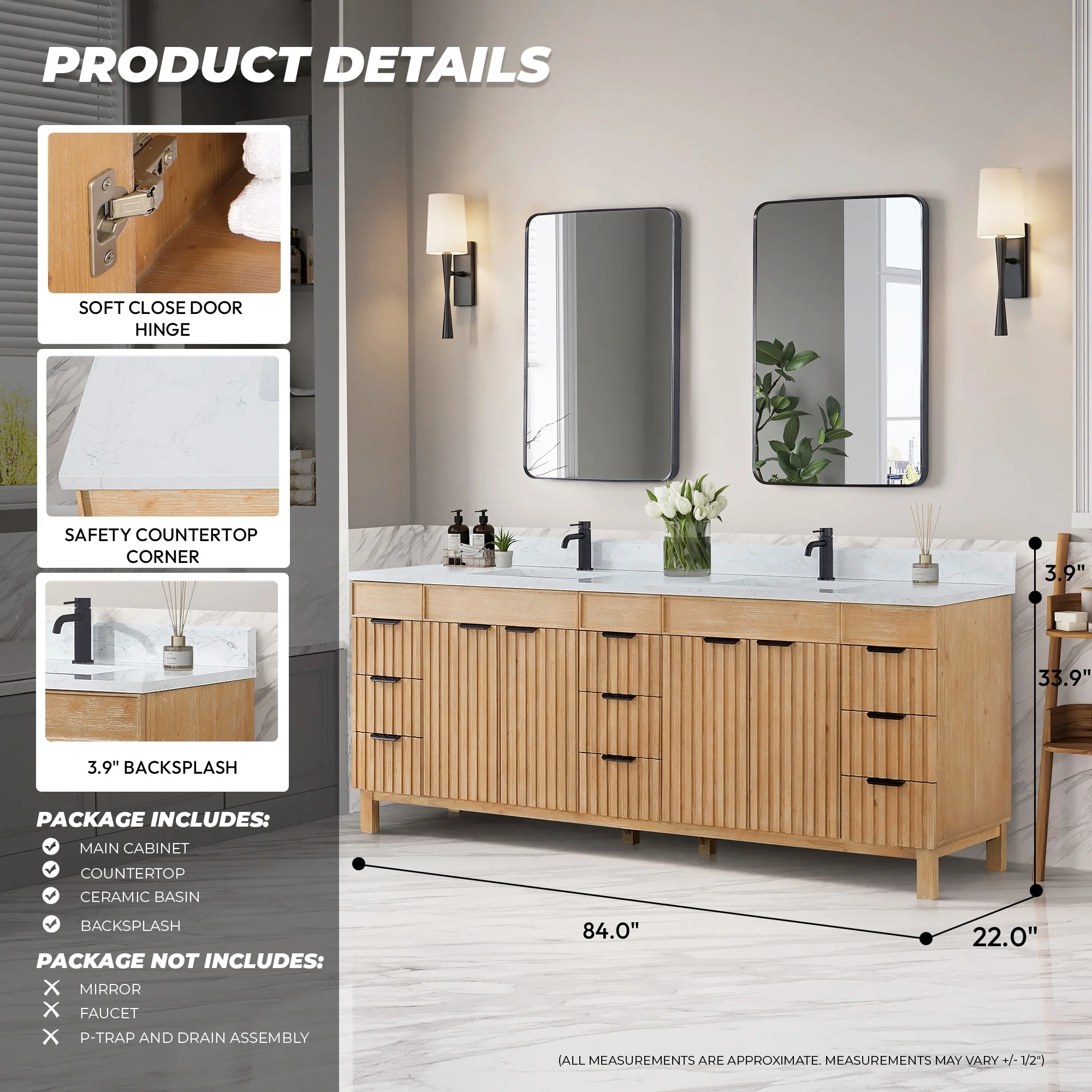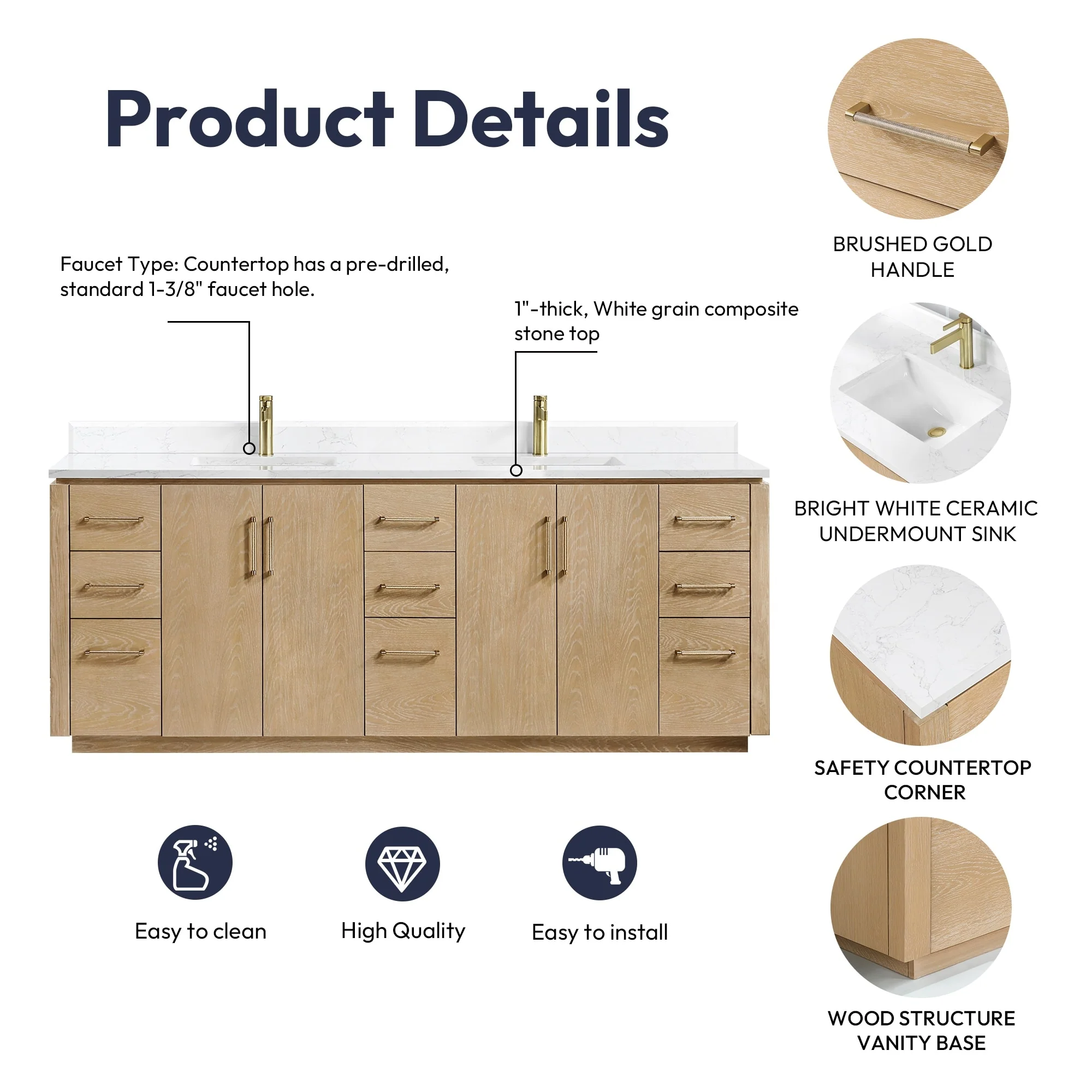 Leon 84 in. Double Bathroom Vanity with Composite Stone Top