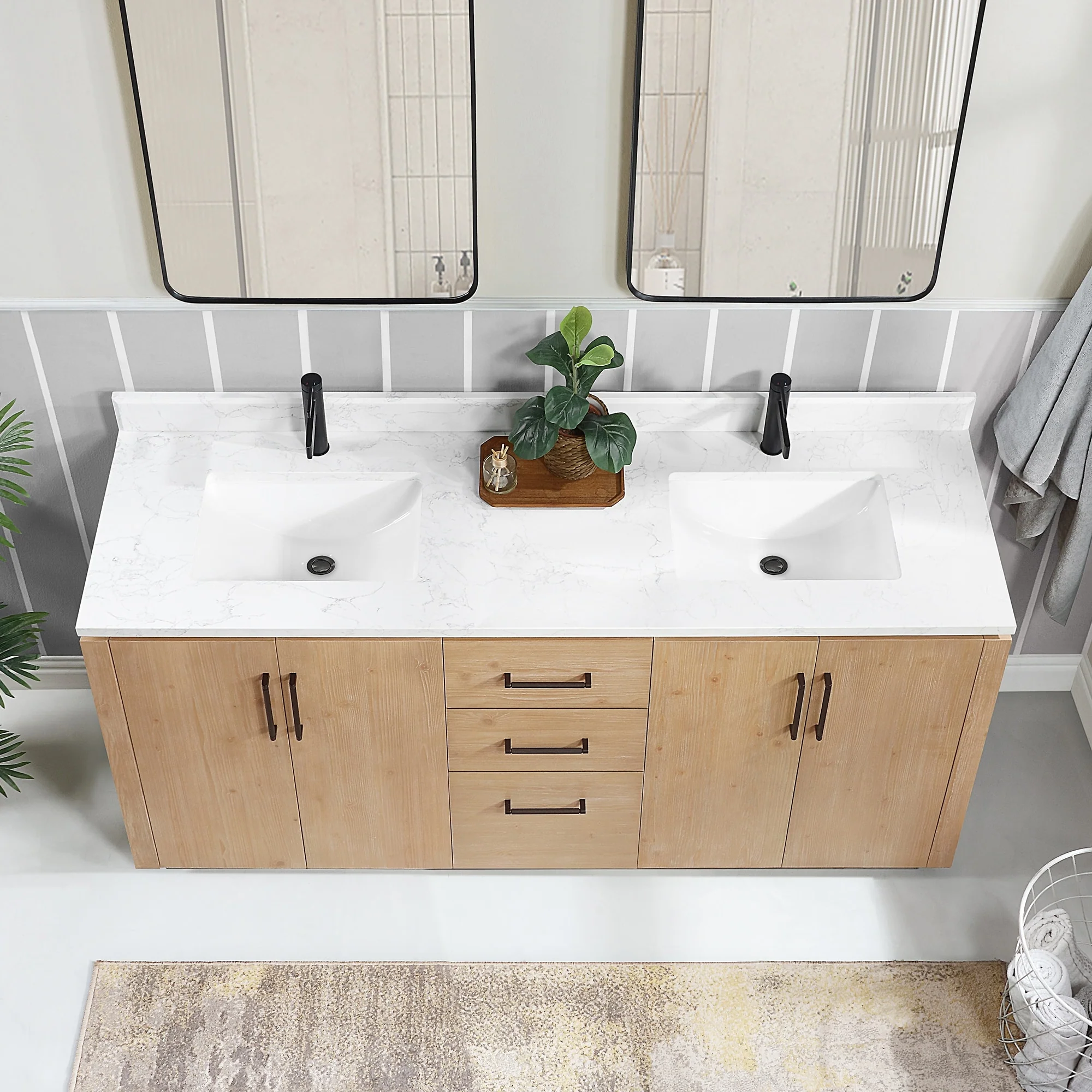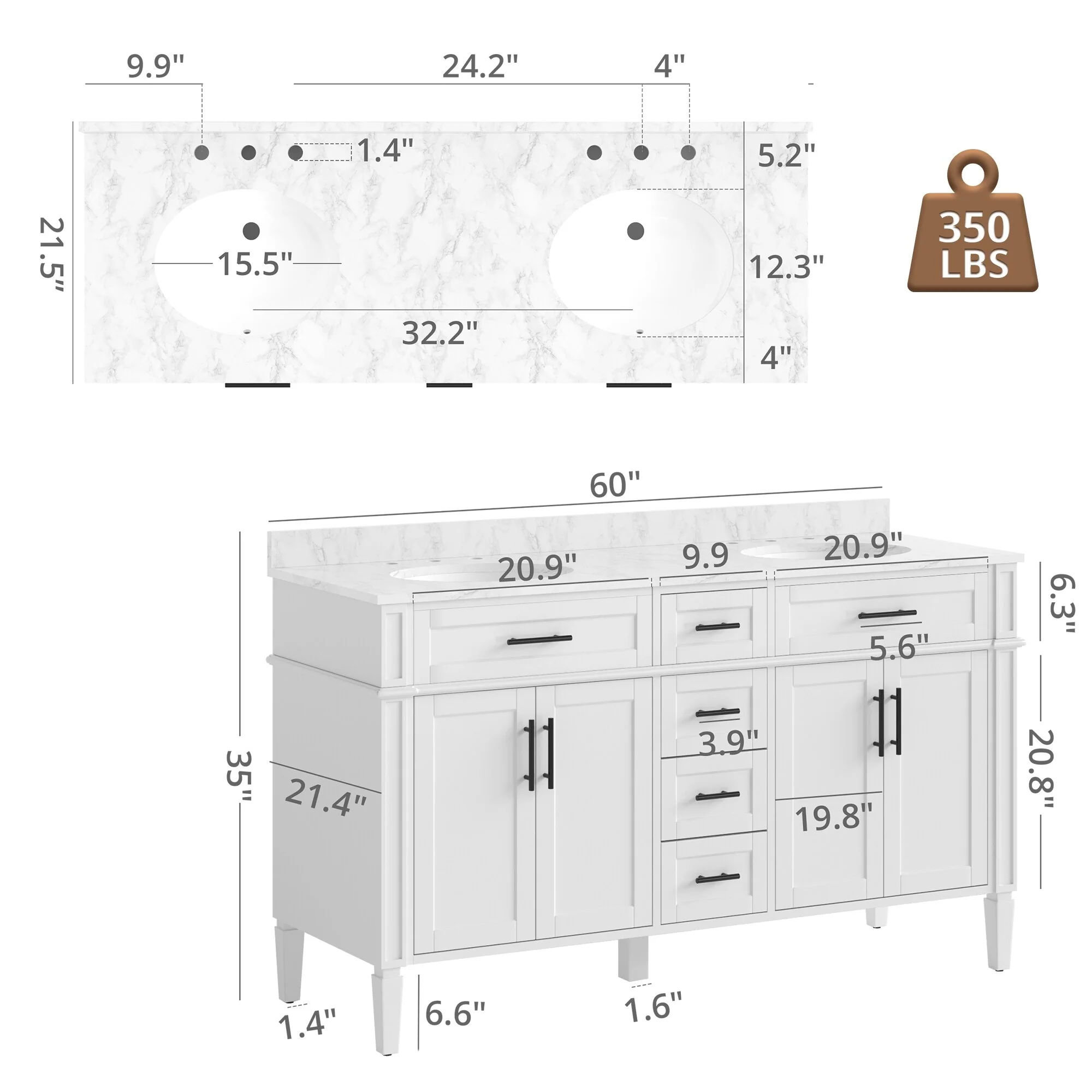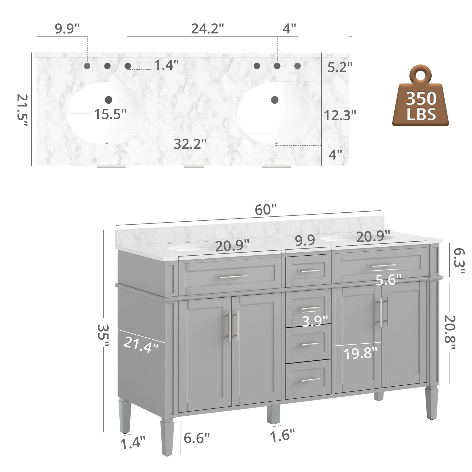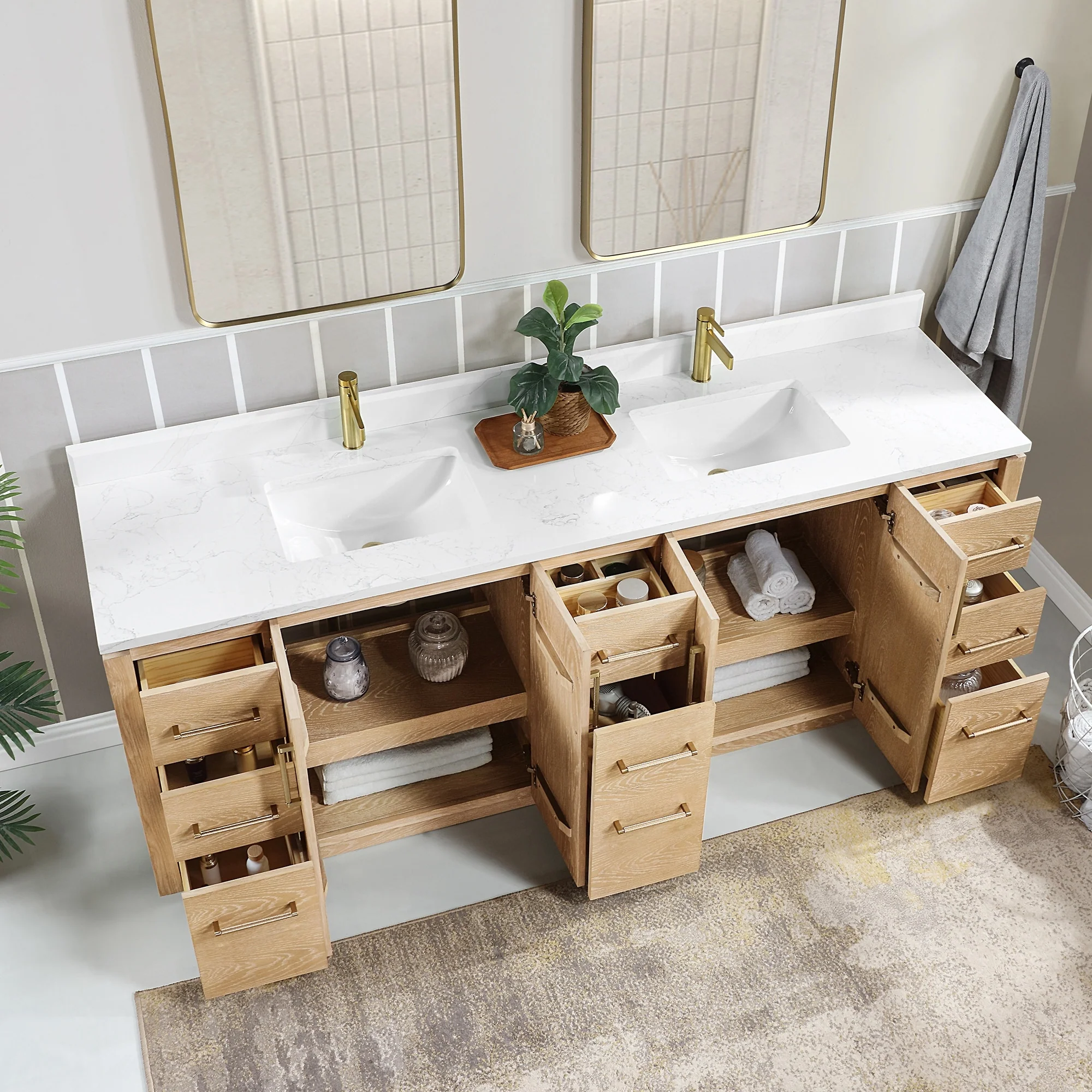 San Double Bath Vanity with Composite Stone Top without Mirror