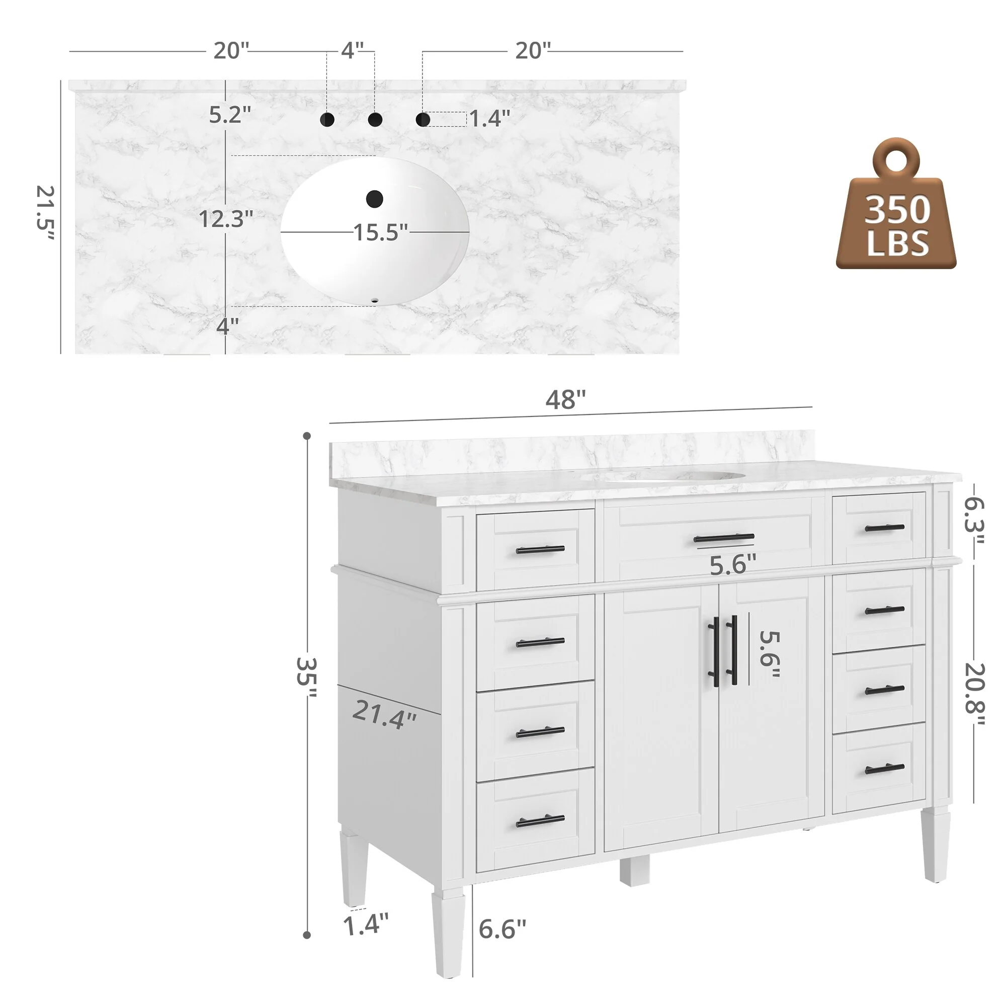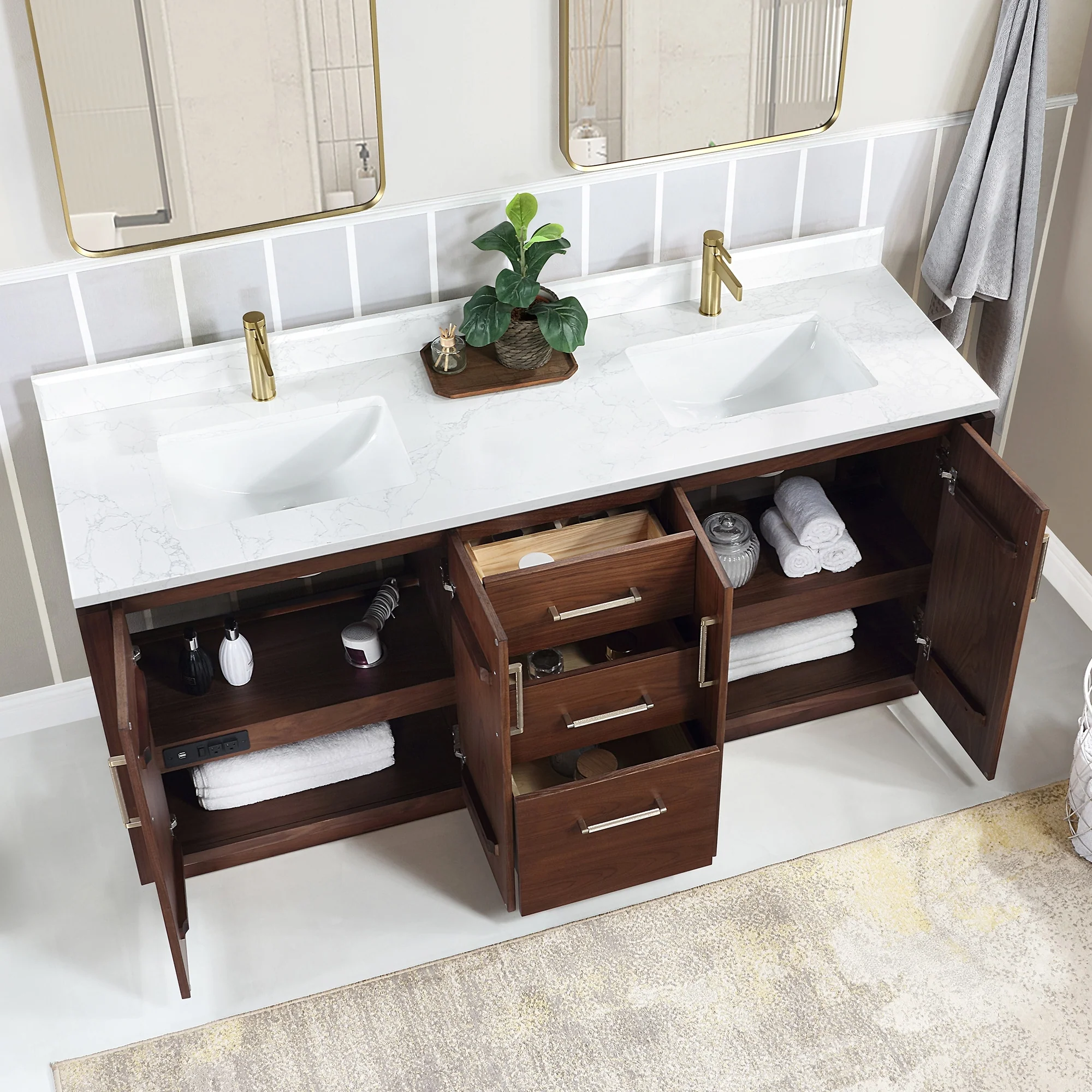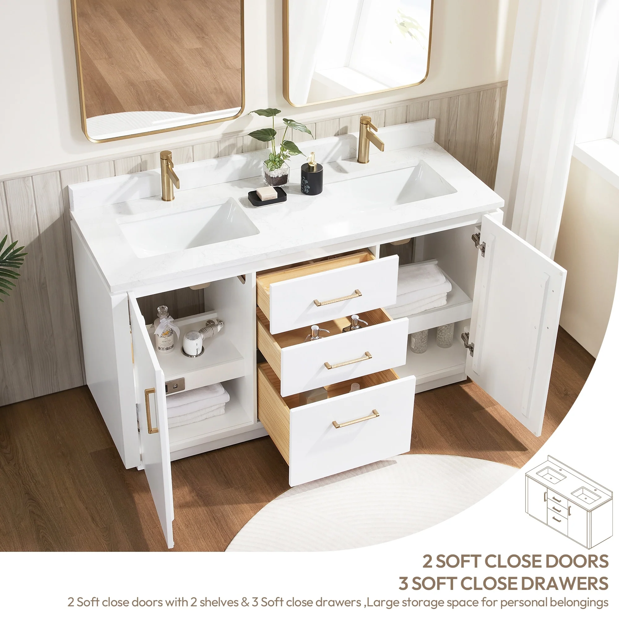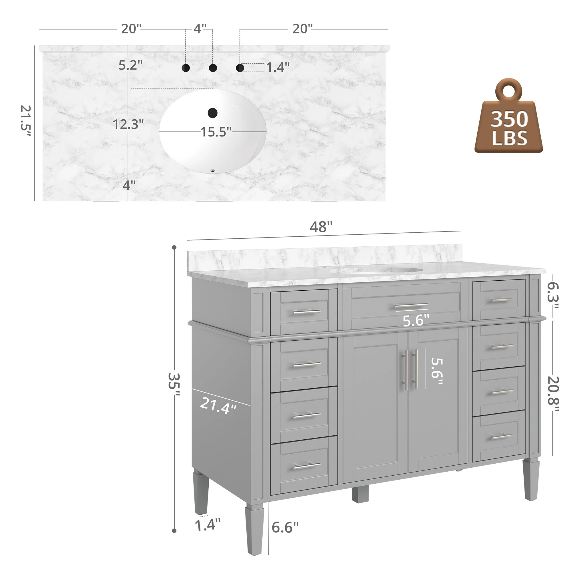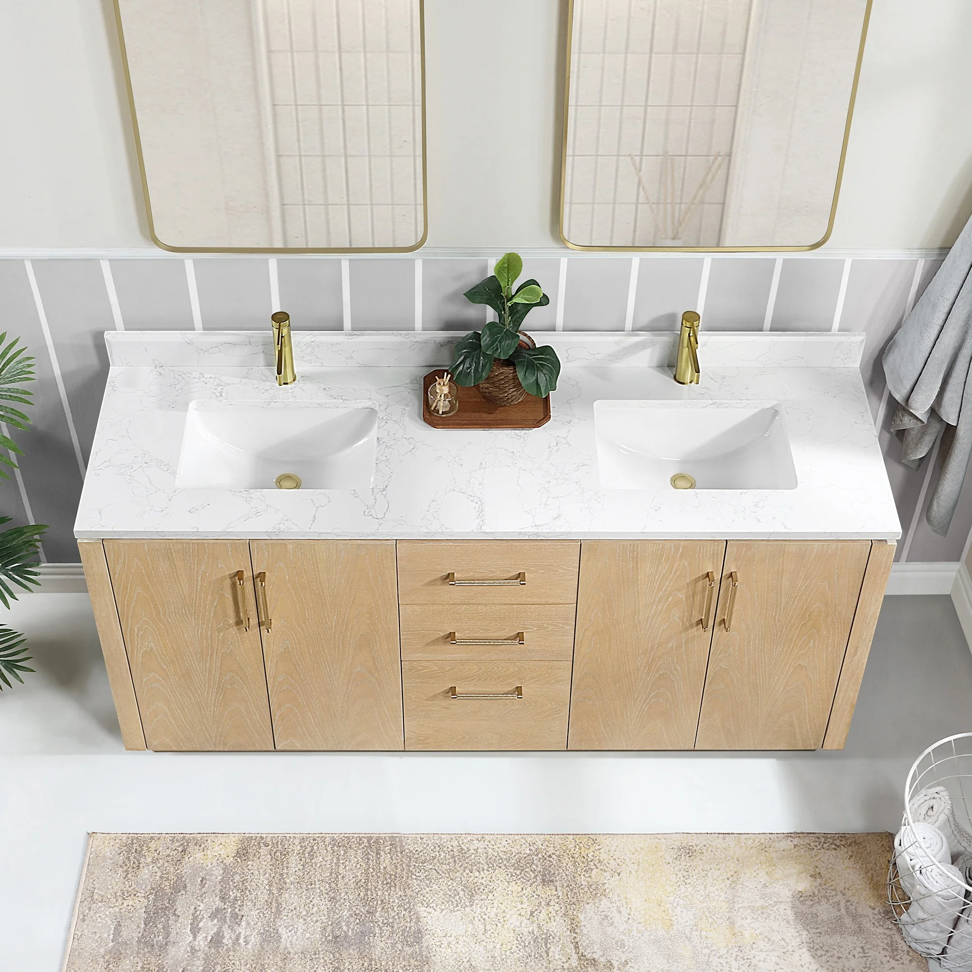 San Double Bath Vanity with Composite Stone Top without Mirror