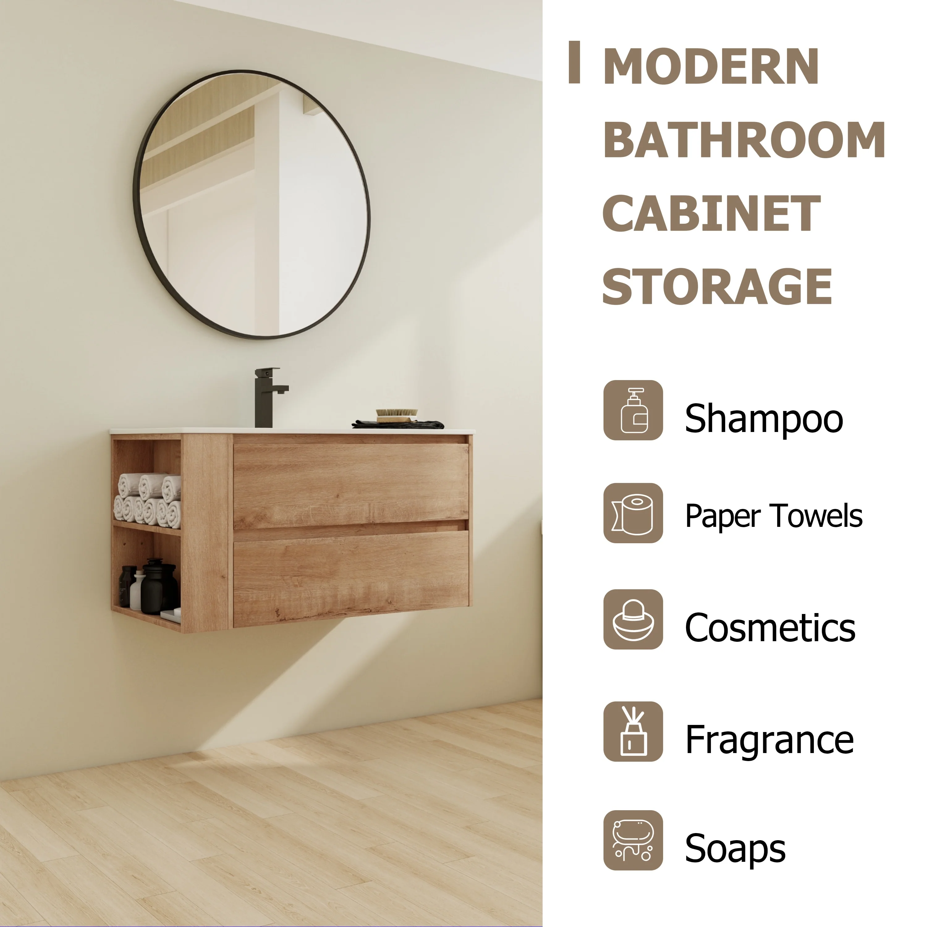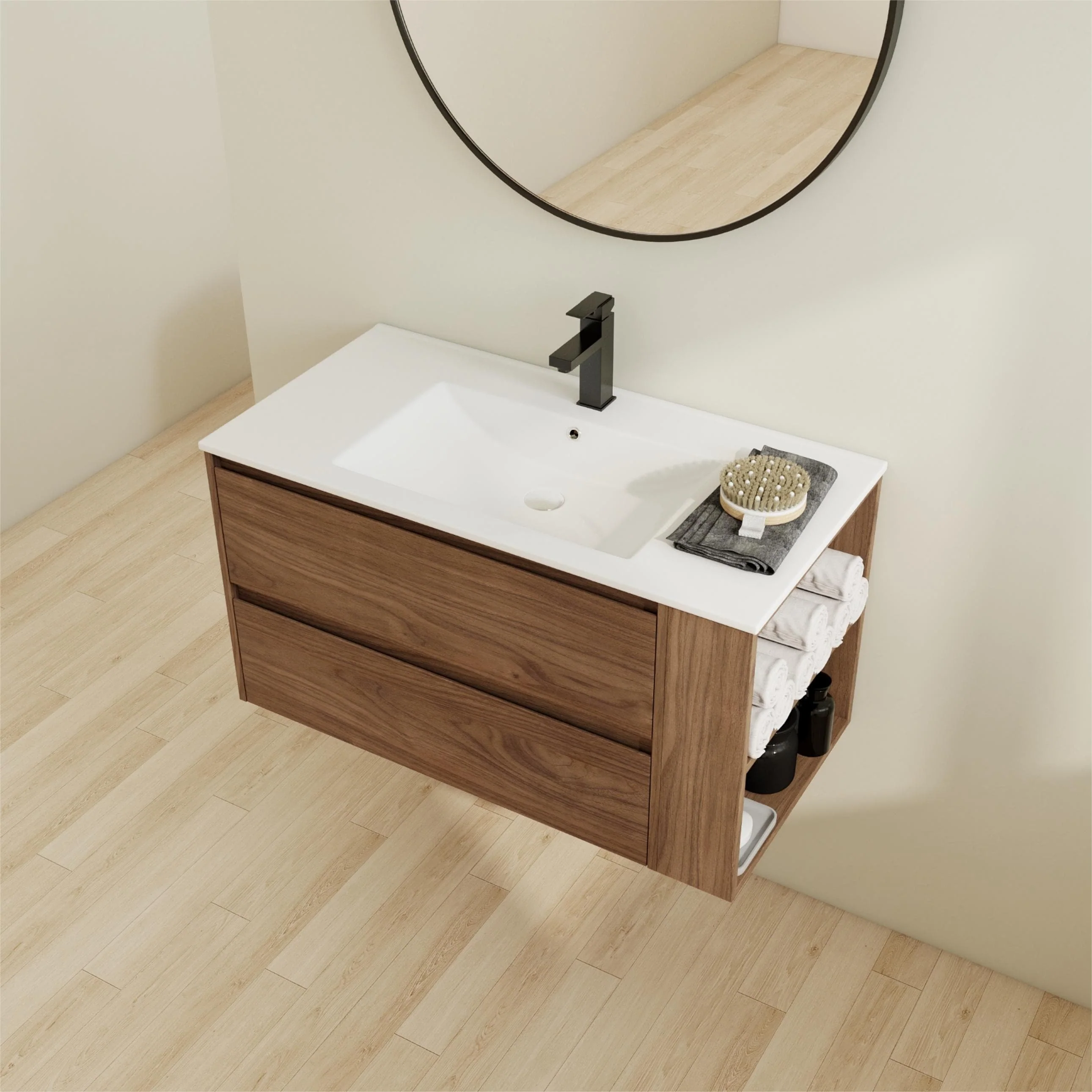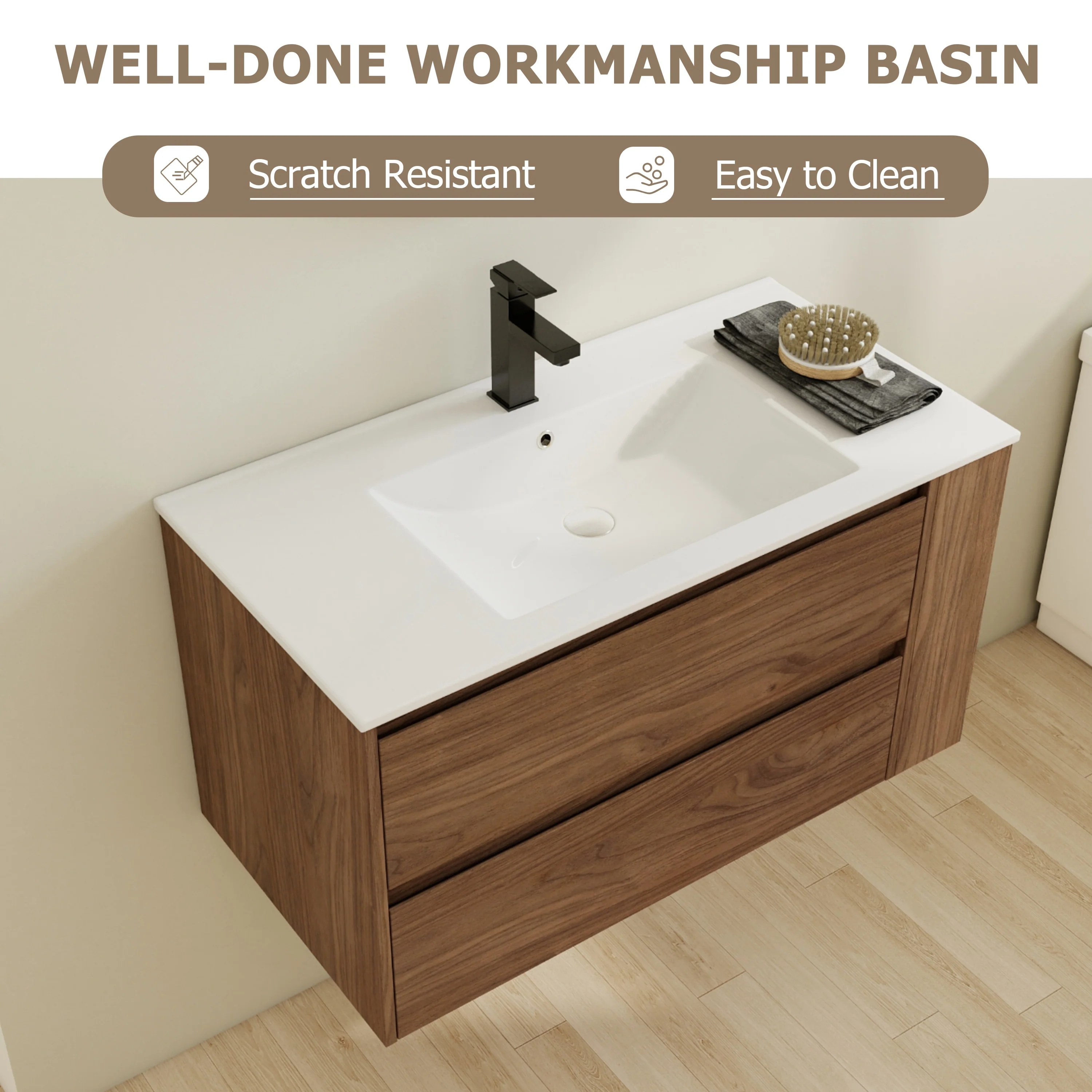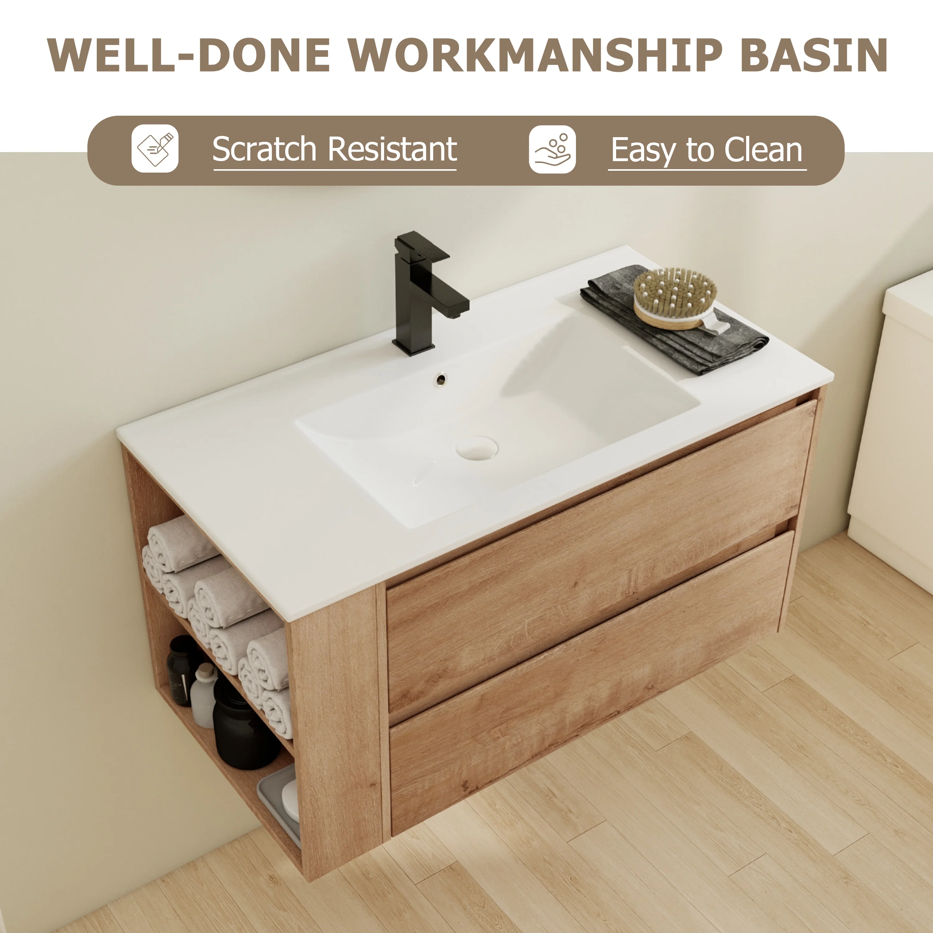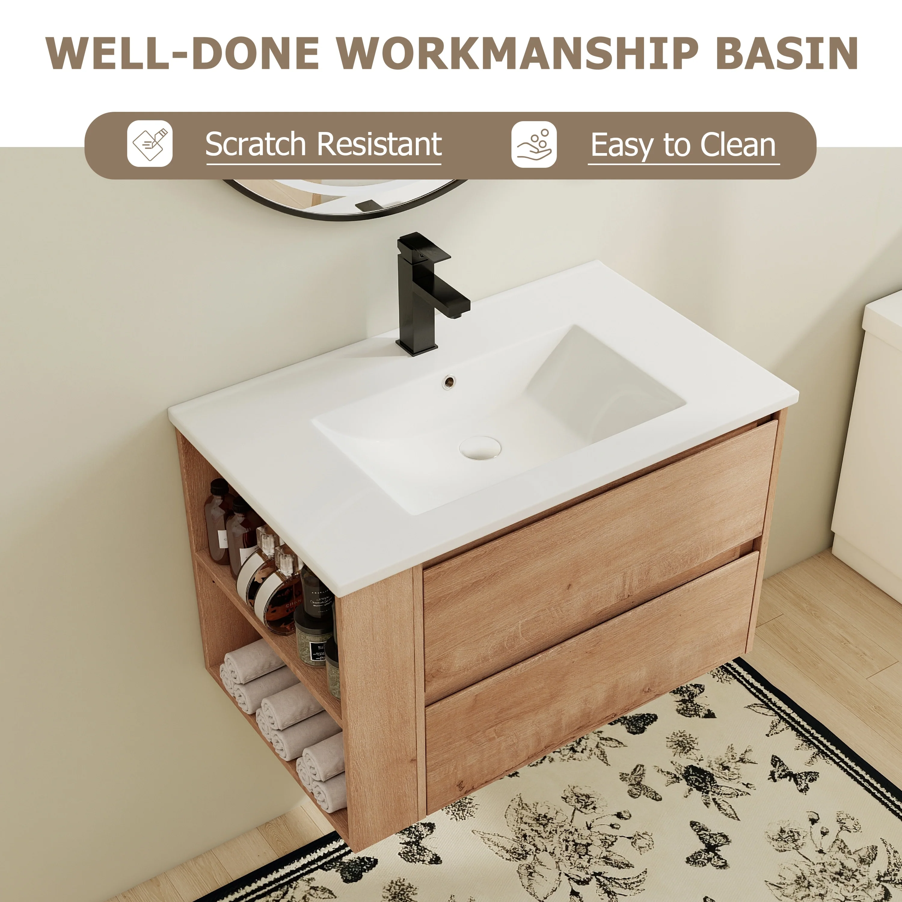 Bathroom Vanity With Sink In 24/30/36 Inch, Floating Bathroom Vanity With Soft Close Drawer
