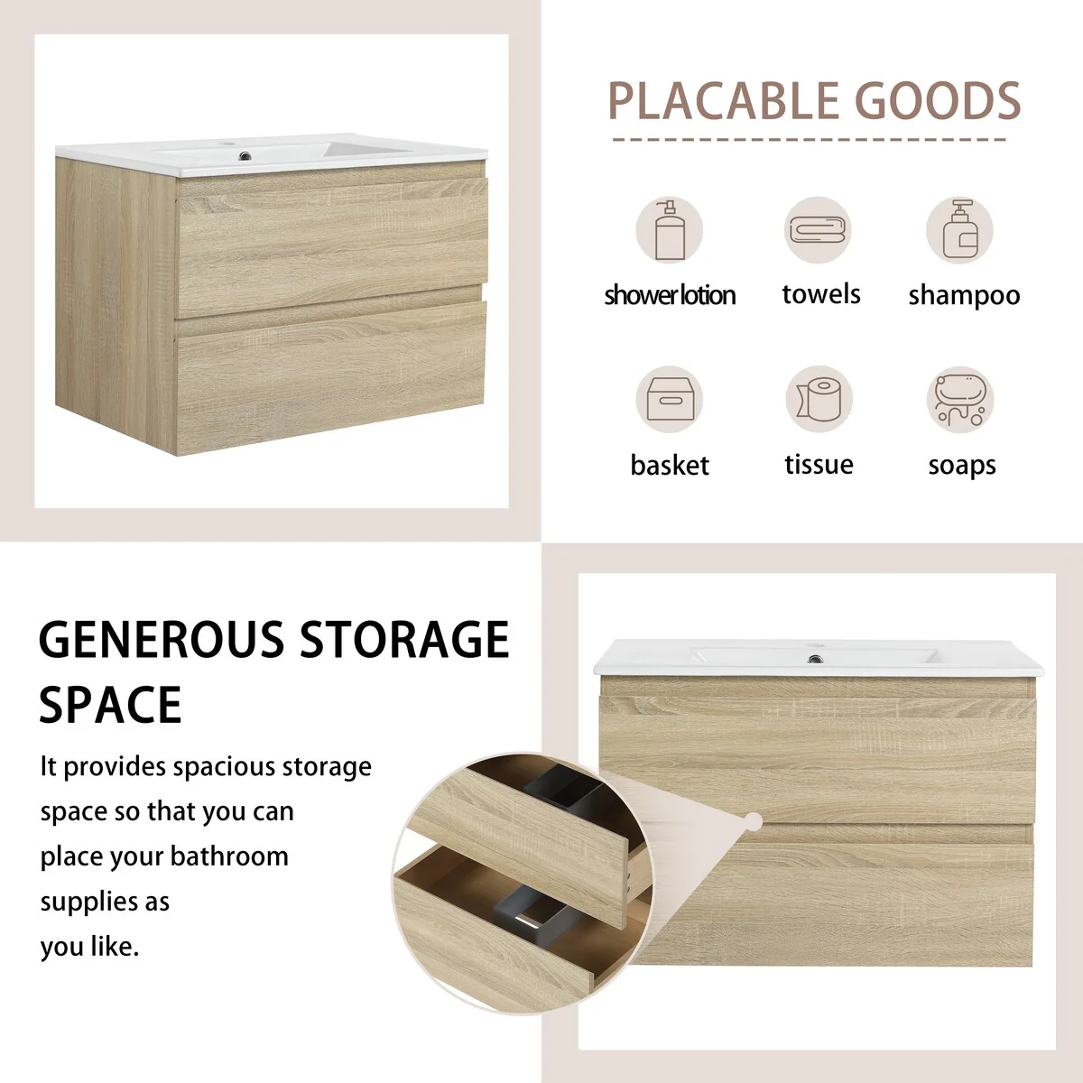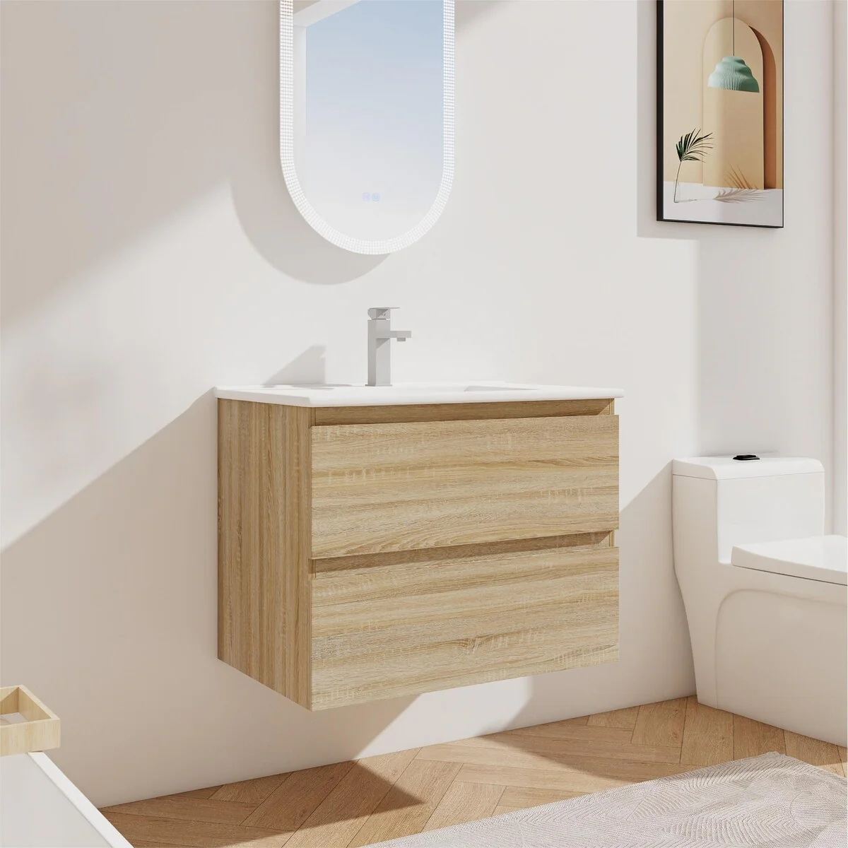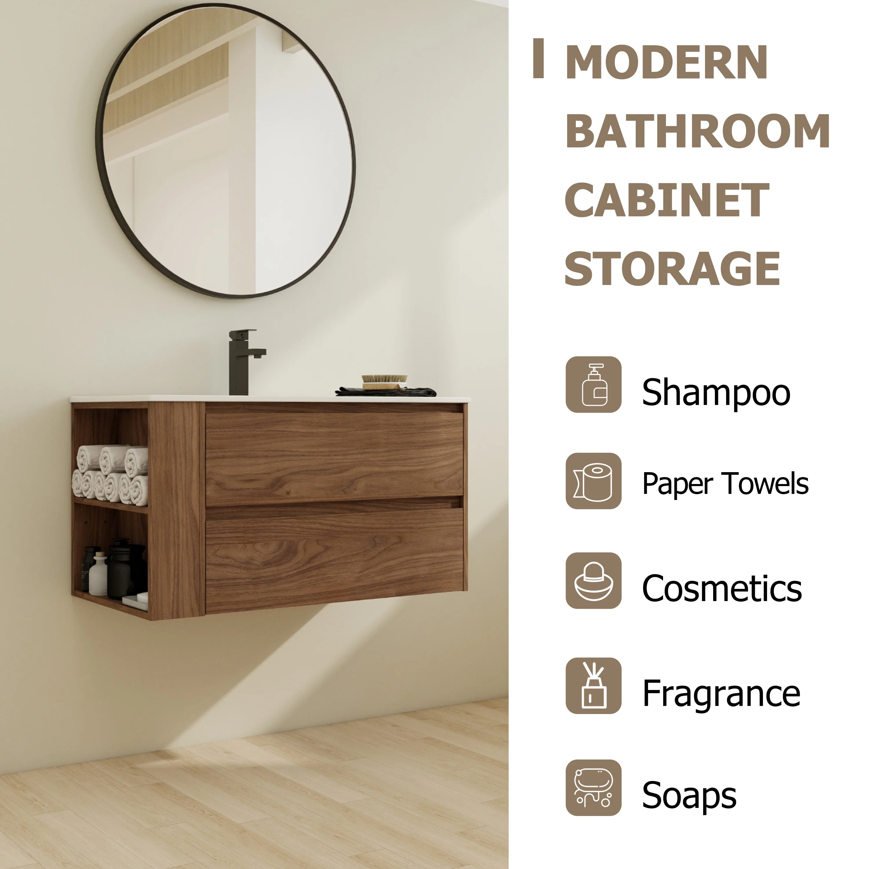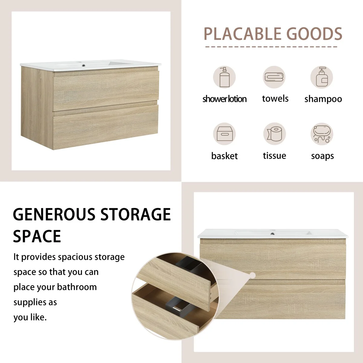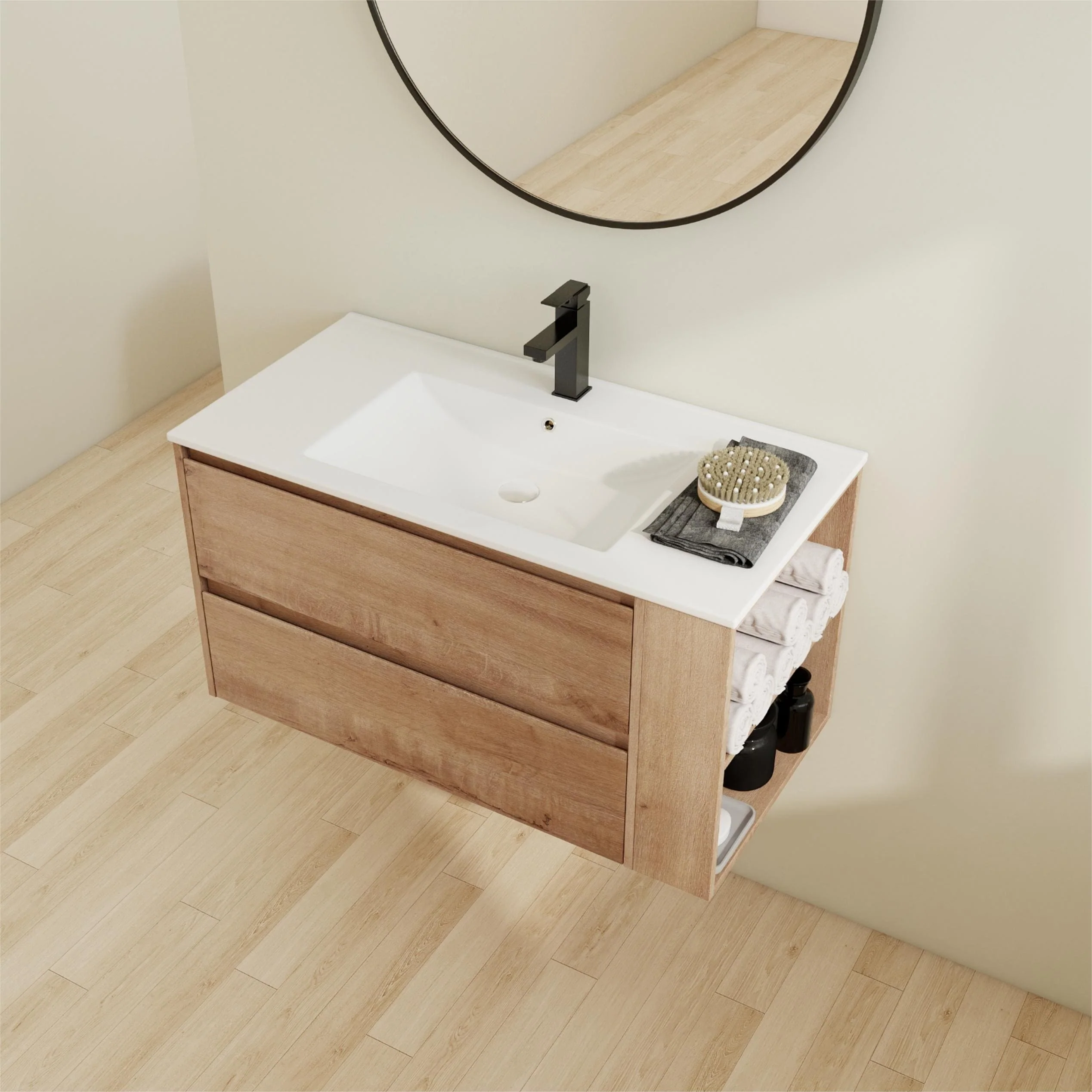 Bathroom Vanity With Sink In 24/30/36 Inch, Floating Bathroom Vanity With Soft Close Drawer
