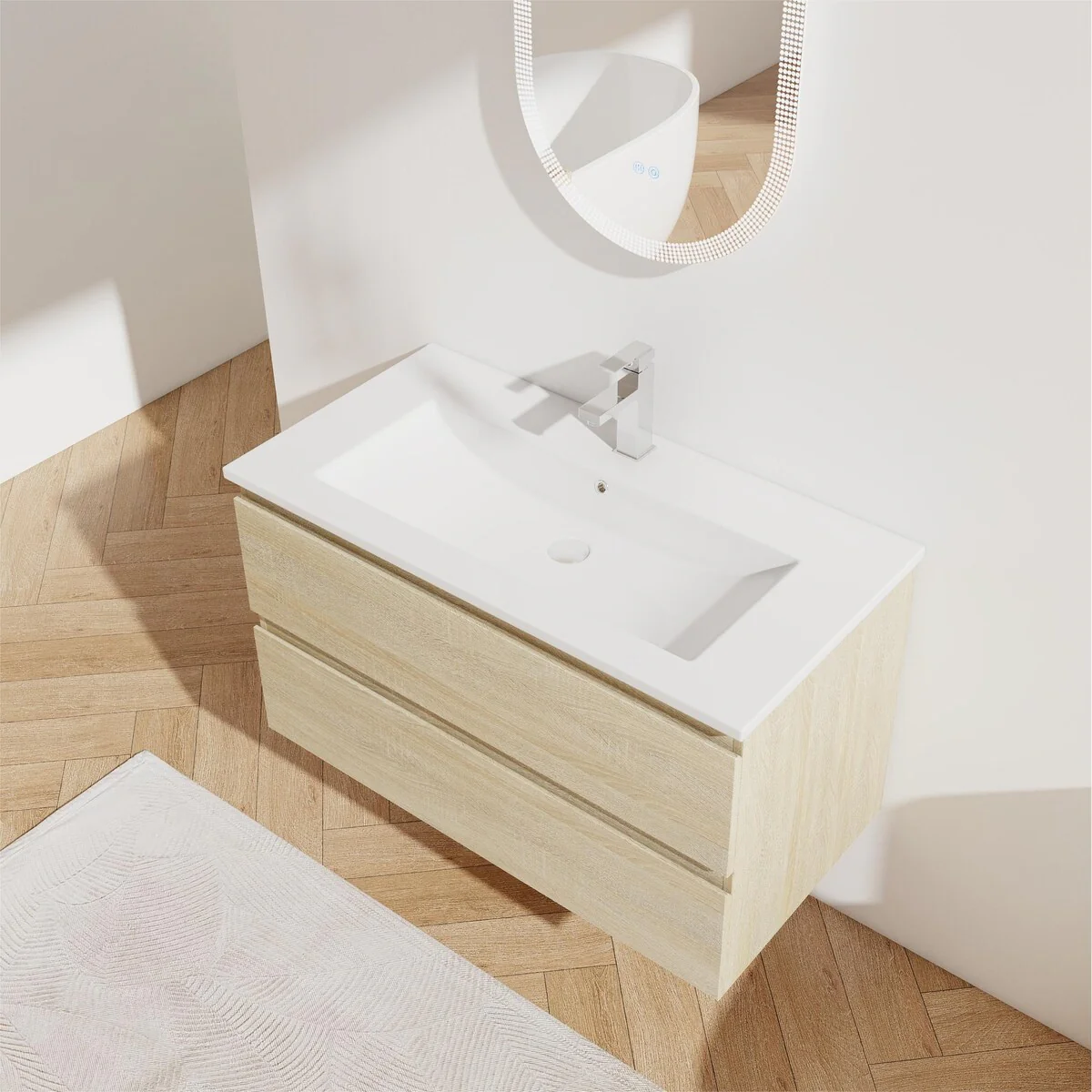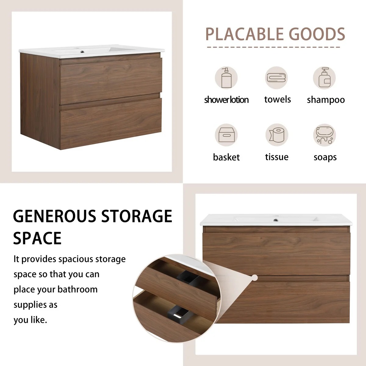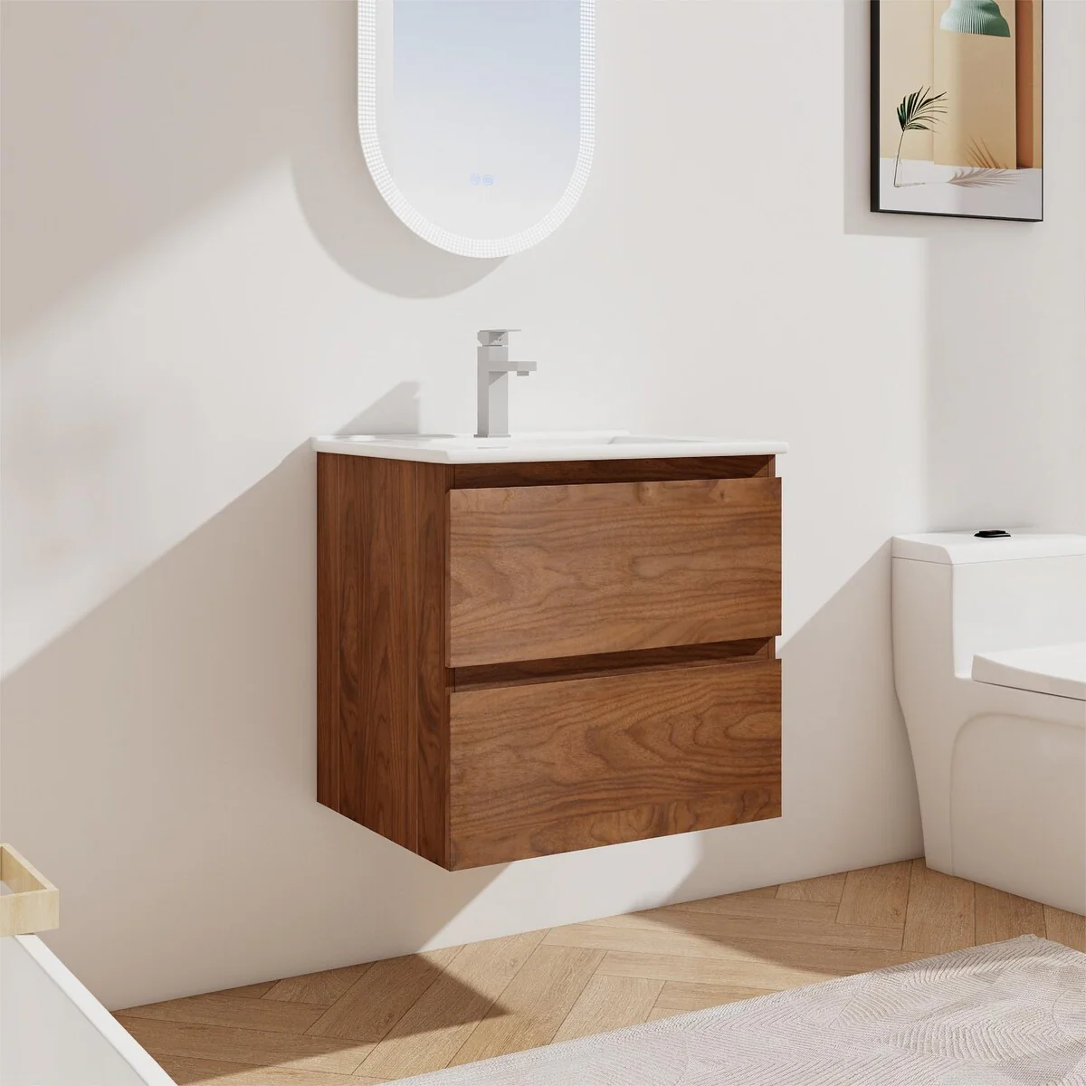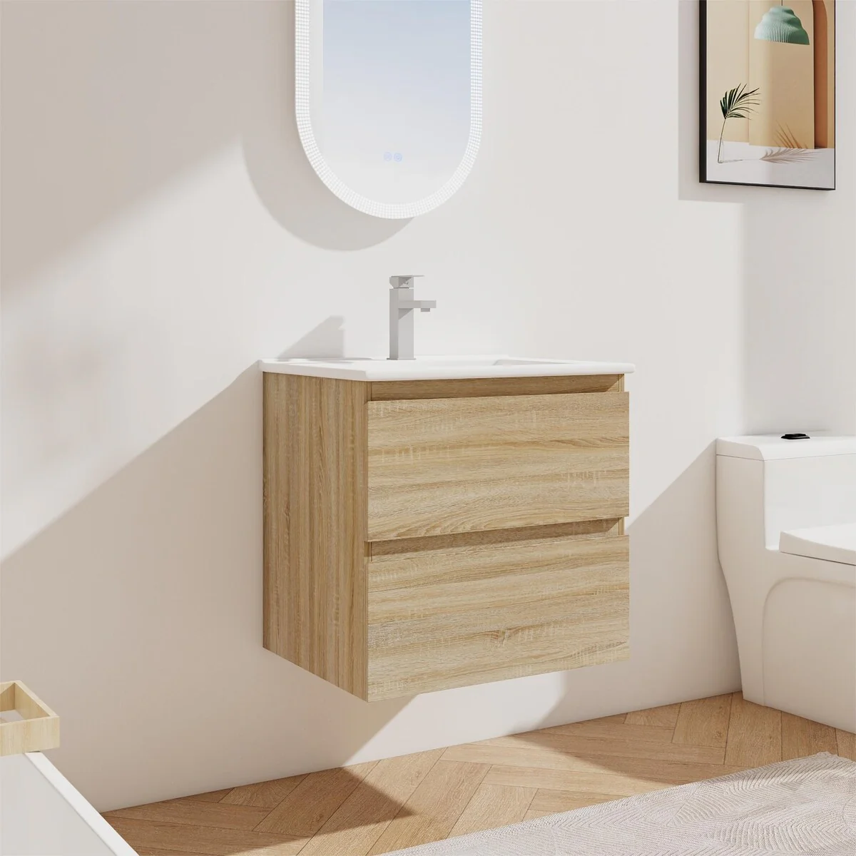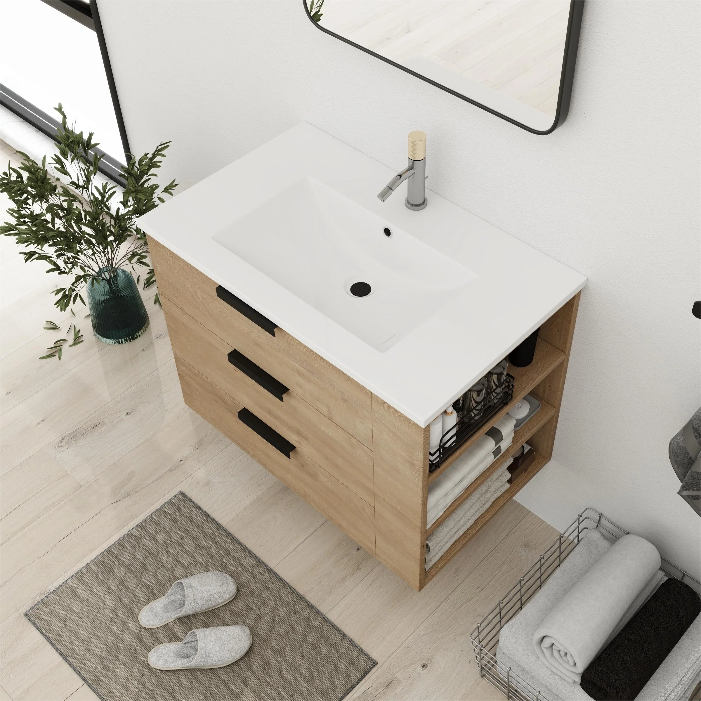 Bathroom Vanity With Sink In 24/30/36 Inch, Floating Bathroom Vanity With Soft Close Drawer