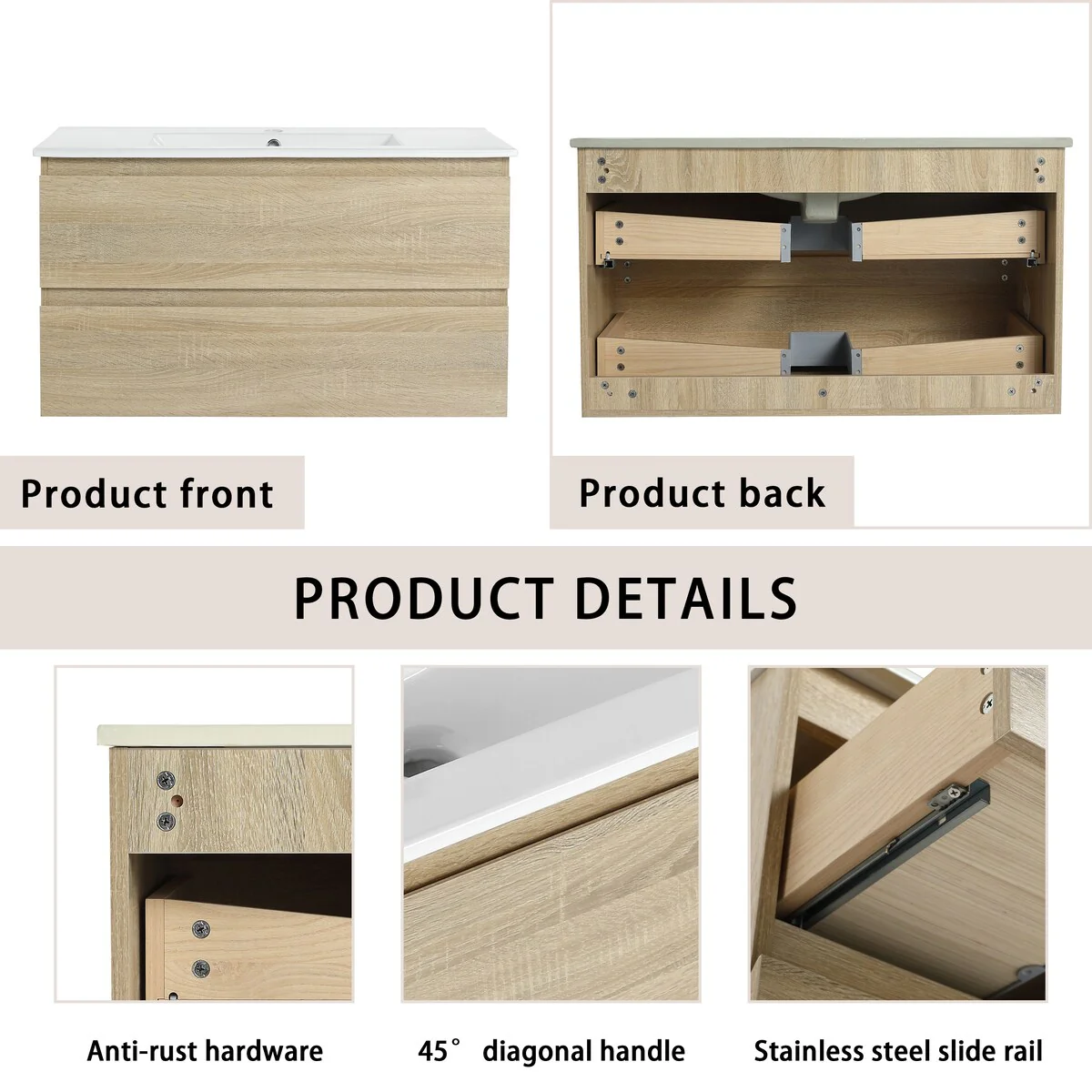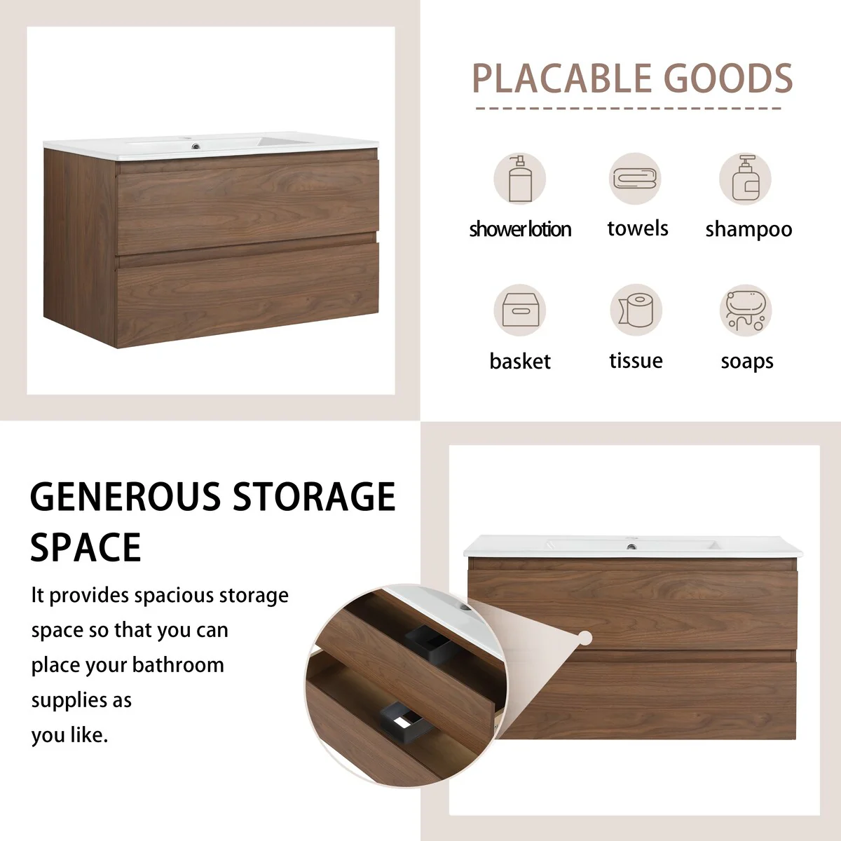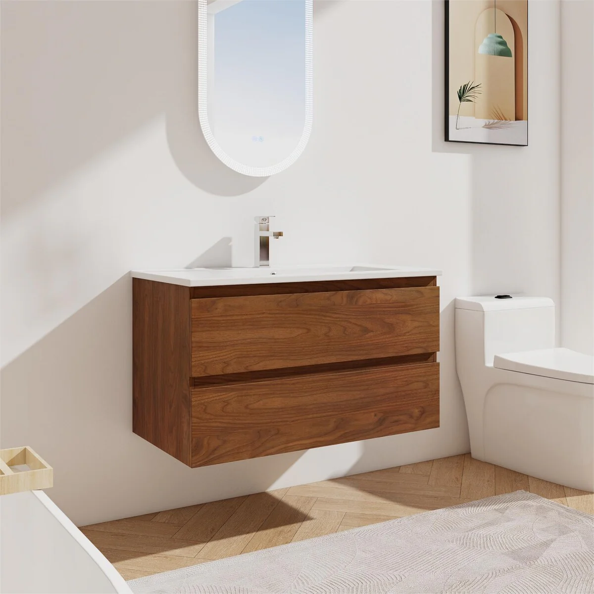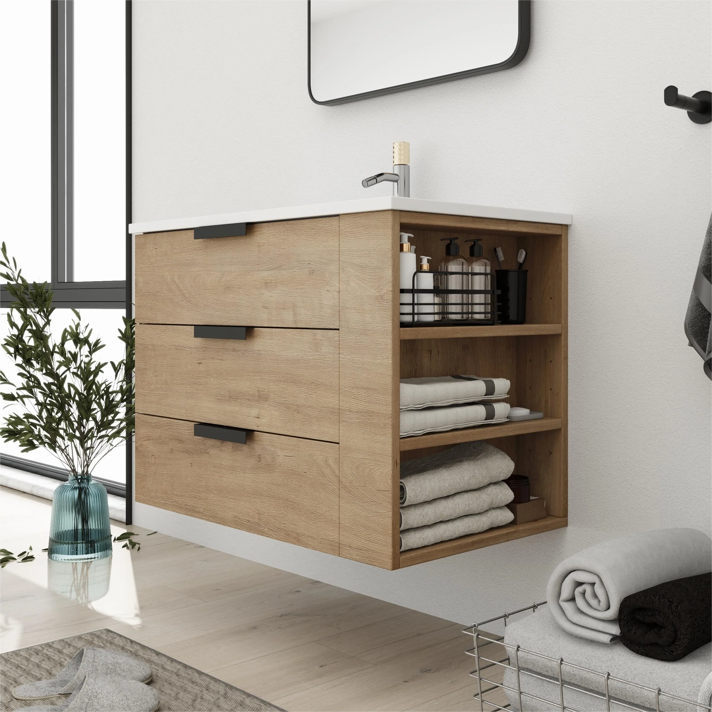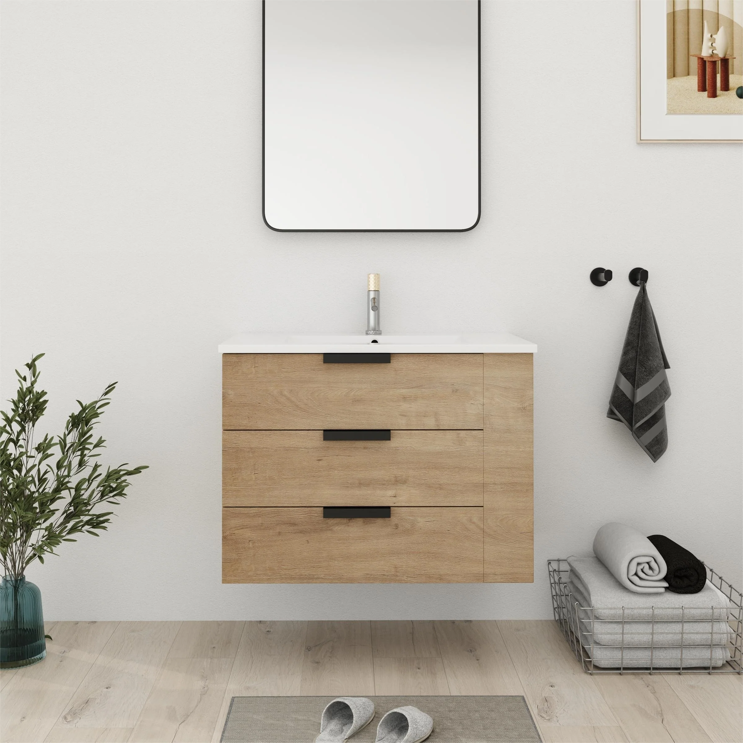 Bathroom Vanity With Sink In 24/30/36 Inch, Floating Bathroom Vanity With Soft Close Drawer