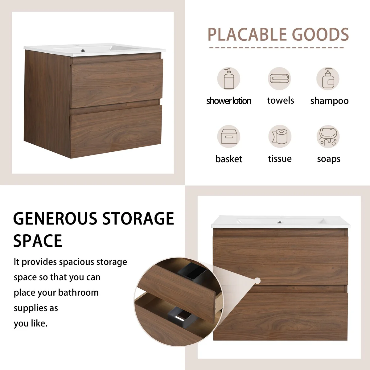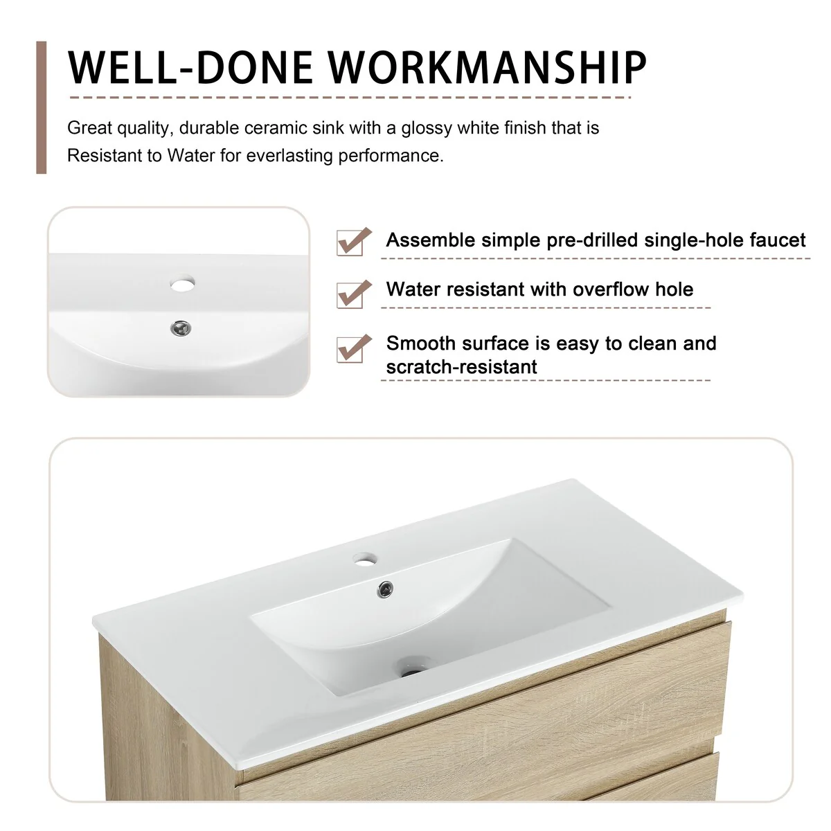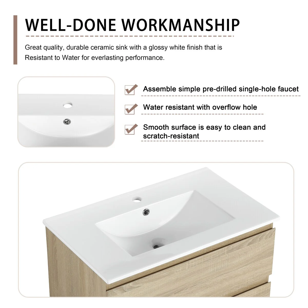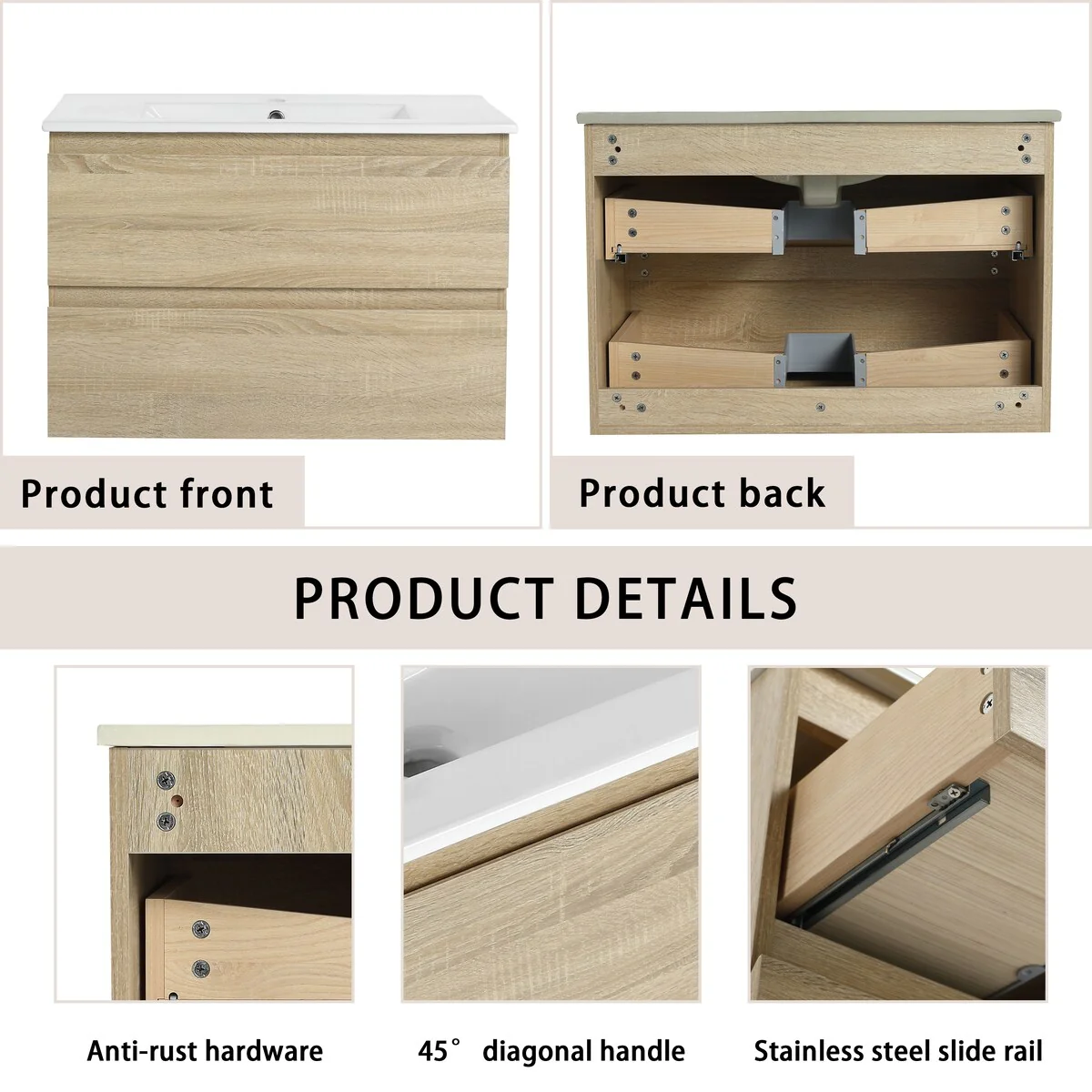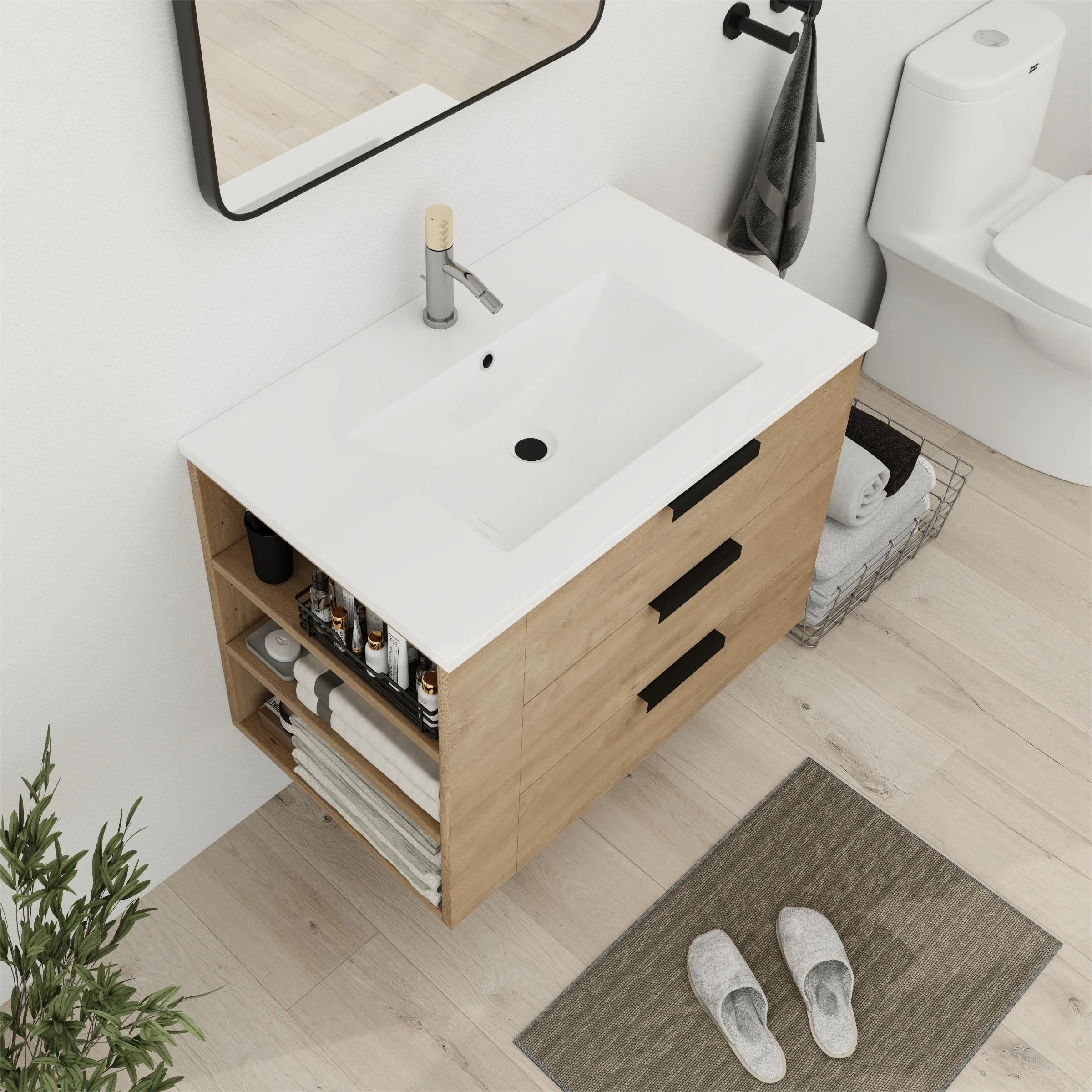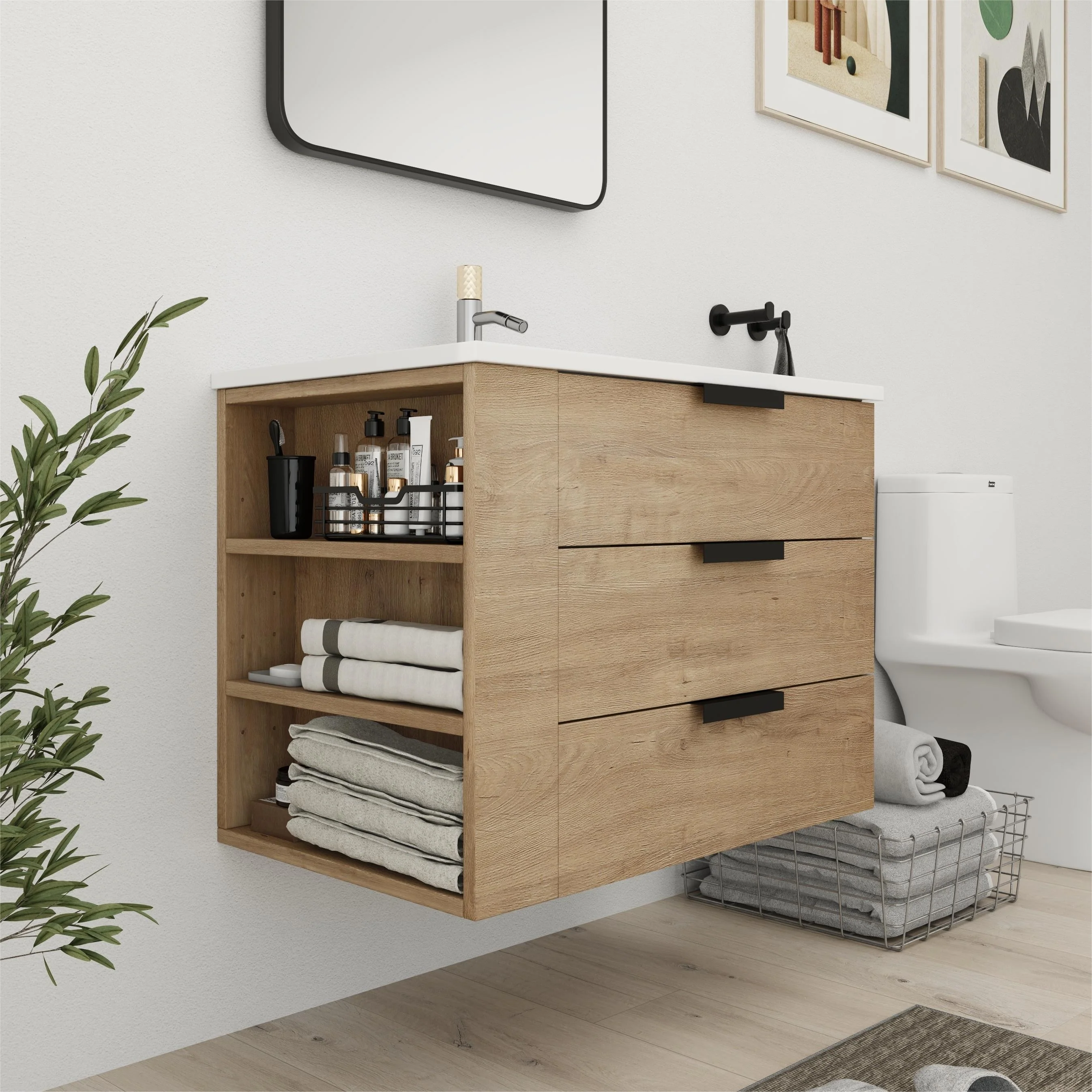 Bathroom Vanity With Sink In 24/30/36 Inch, Floating Bathroom Vanity With Soft Close Drawer